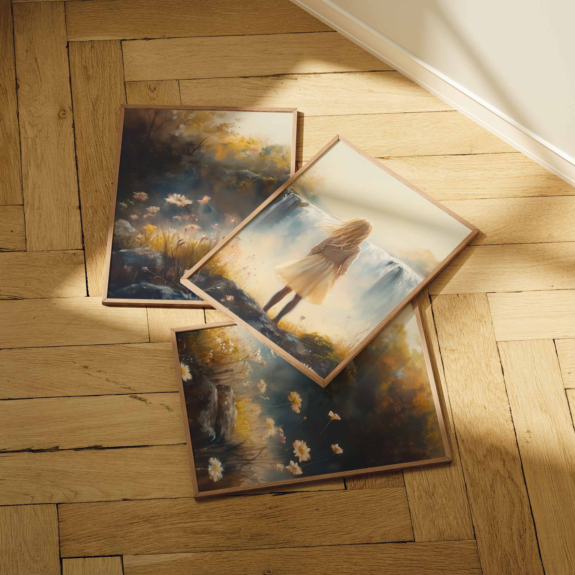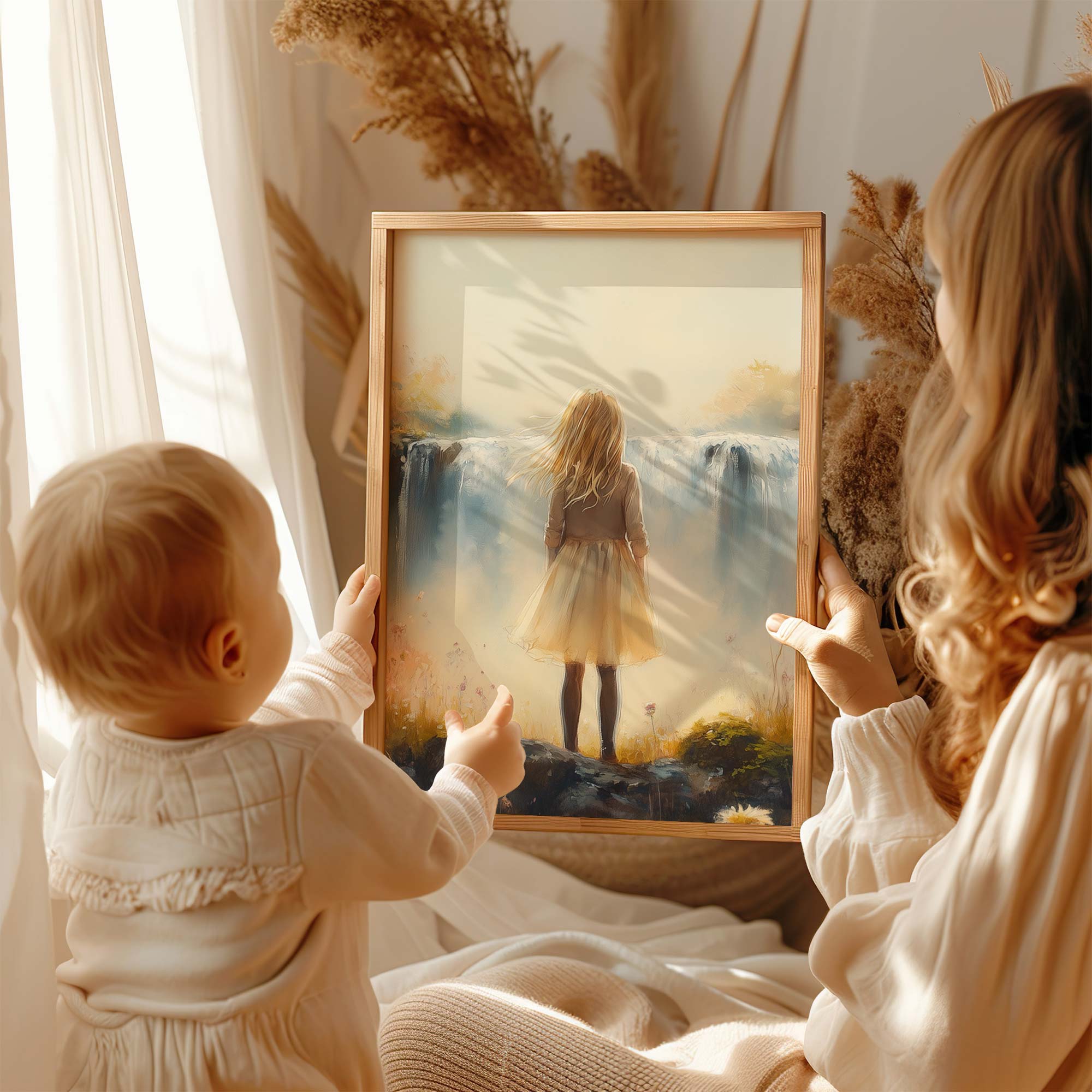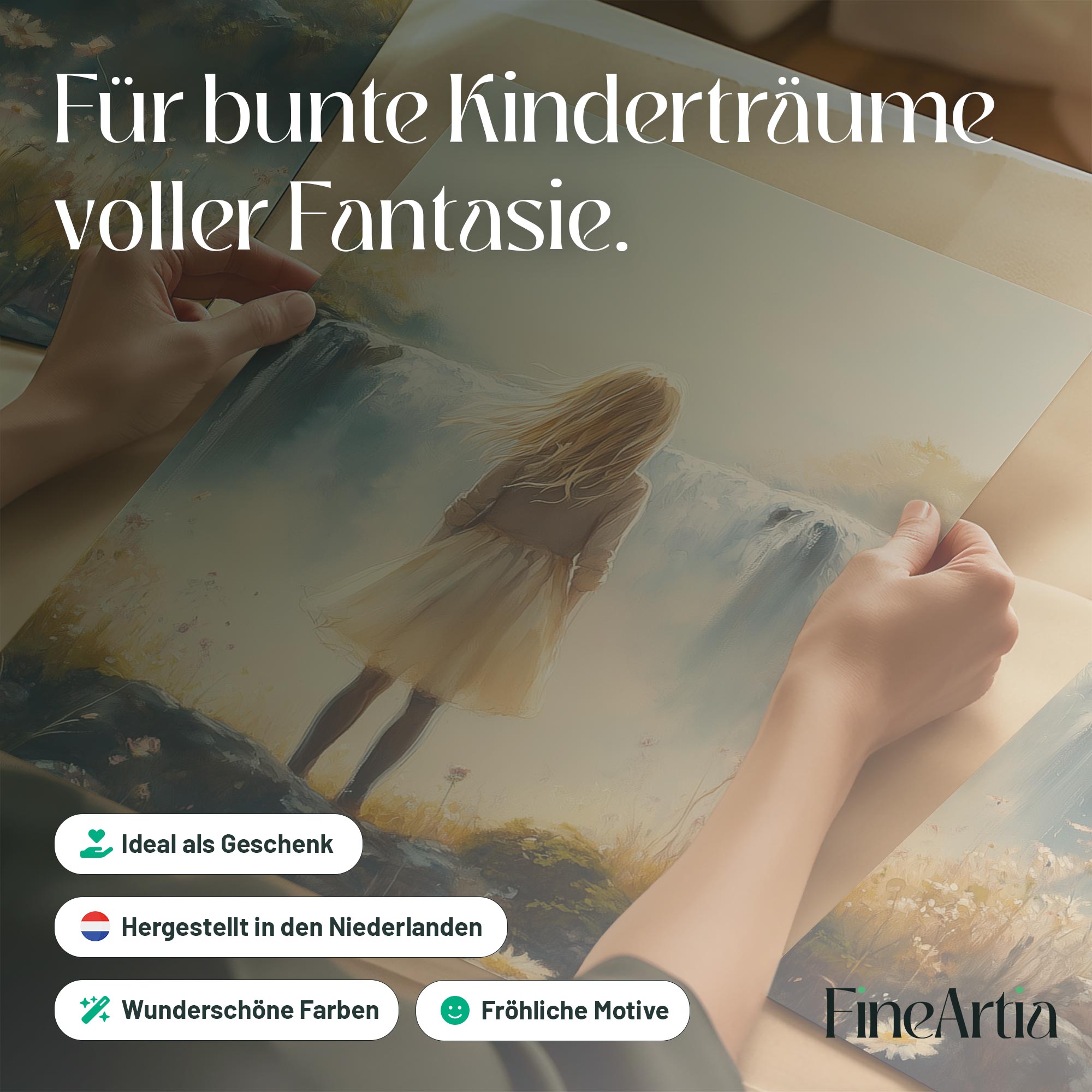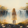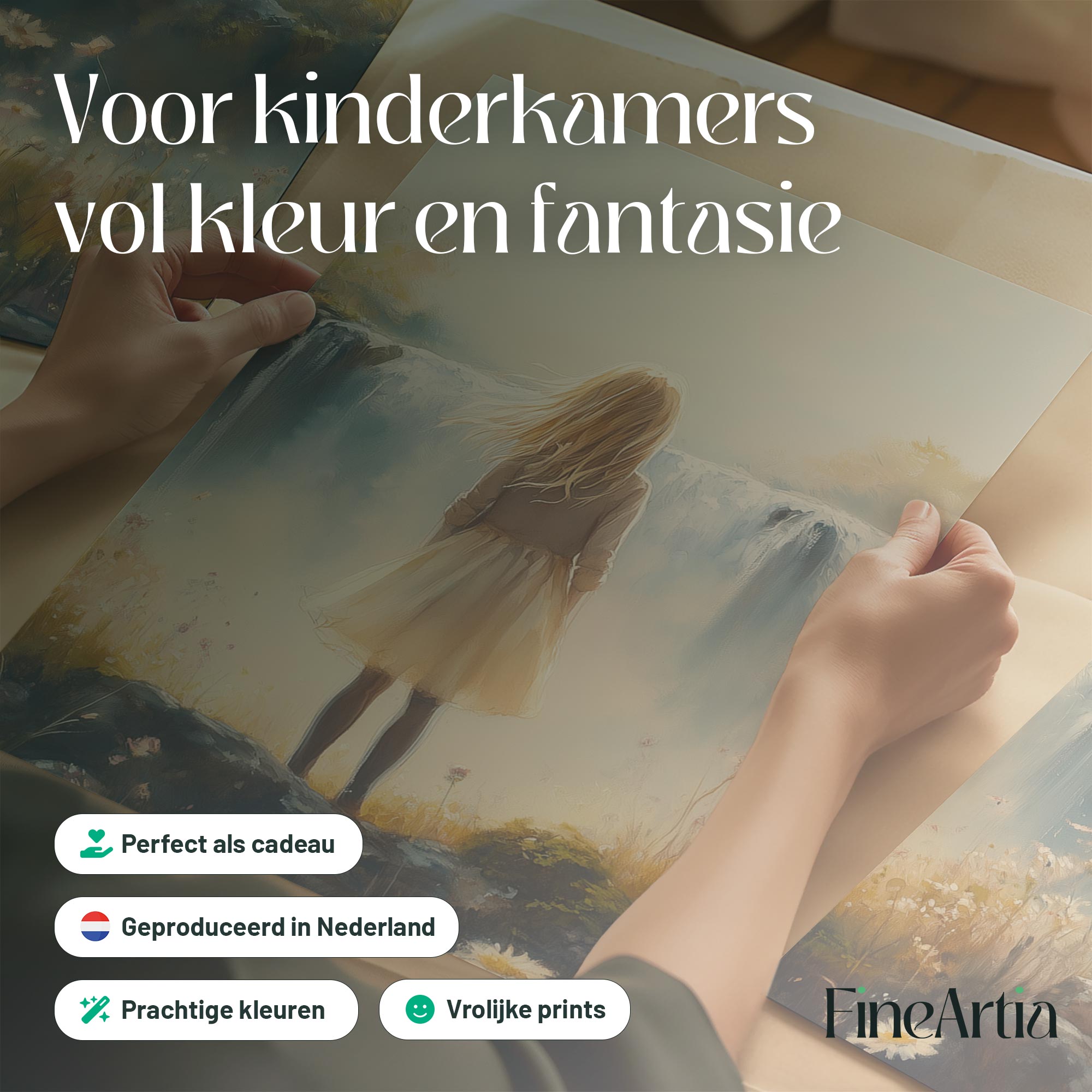 Terug naar collectie Posters Magisch Meisje bij de Waterval in Bloemenveld