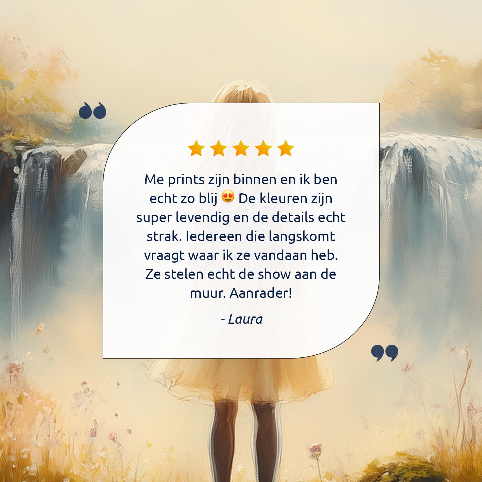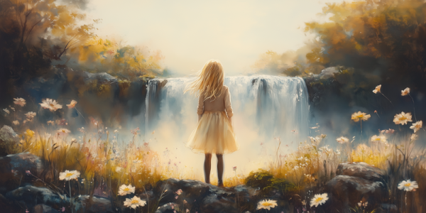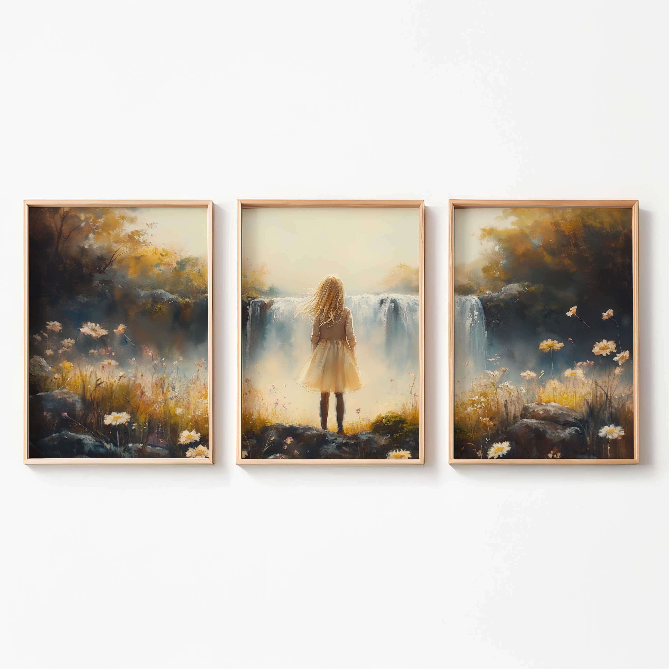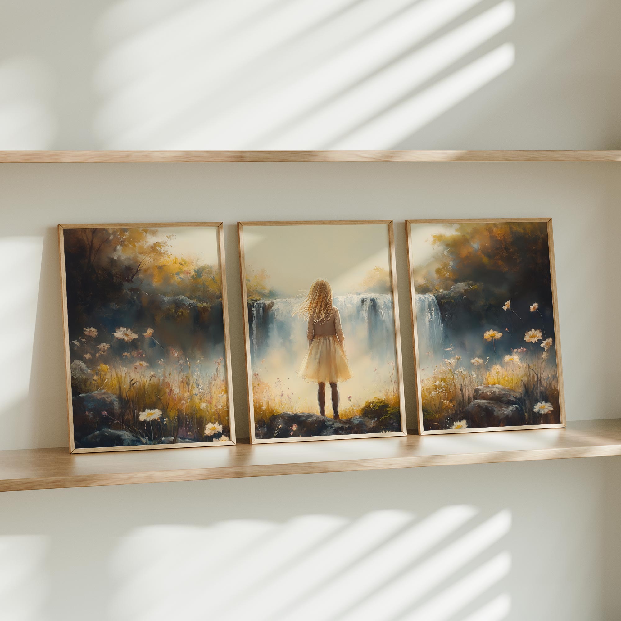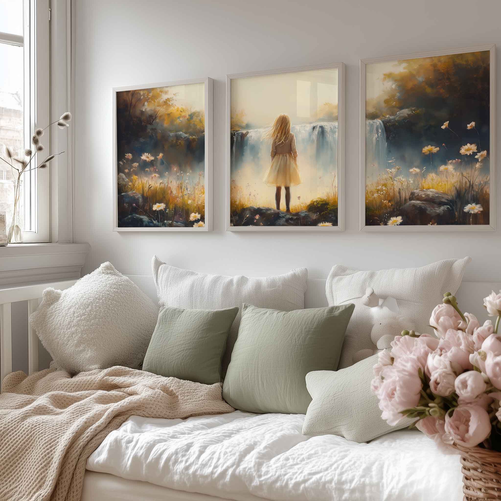 Terug naar collectie Posters Magisch Meisje bij de Waterval in Bloemenveld