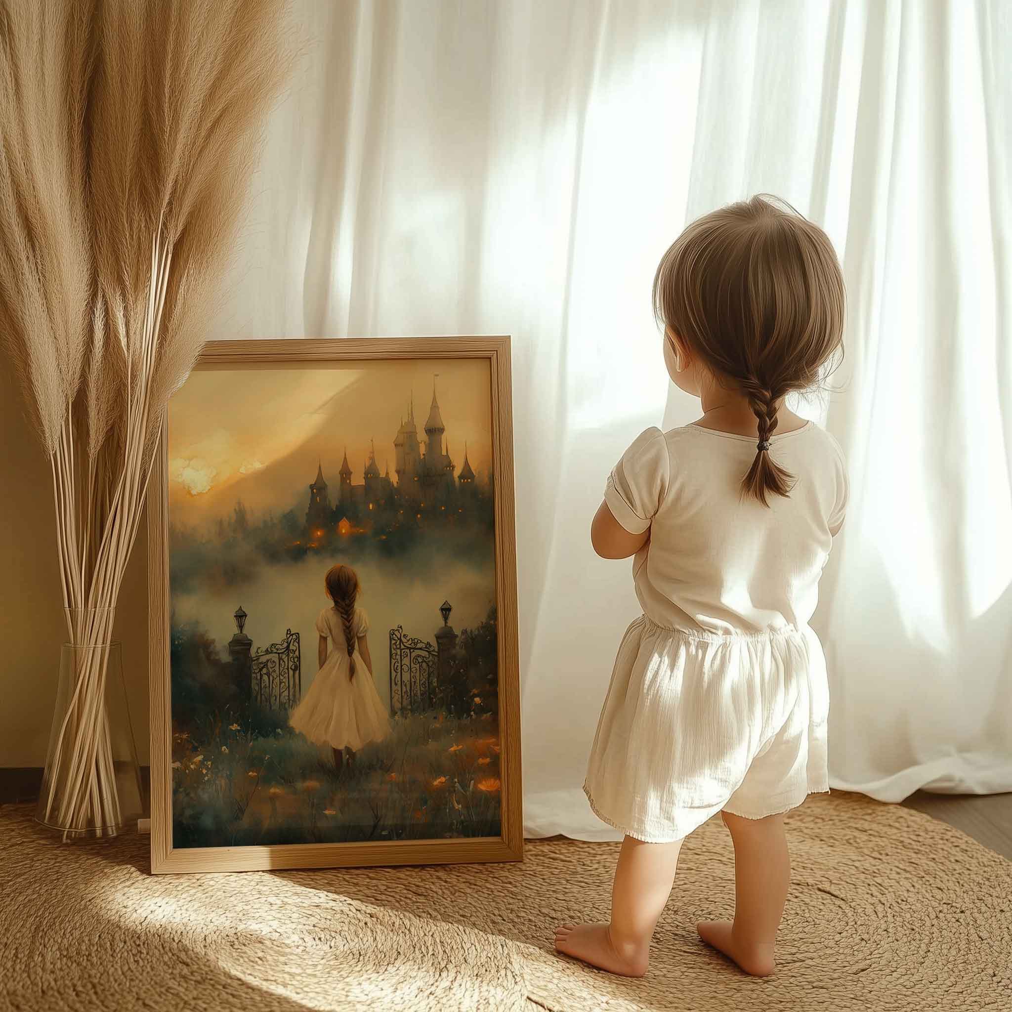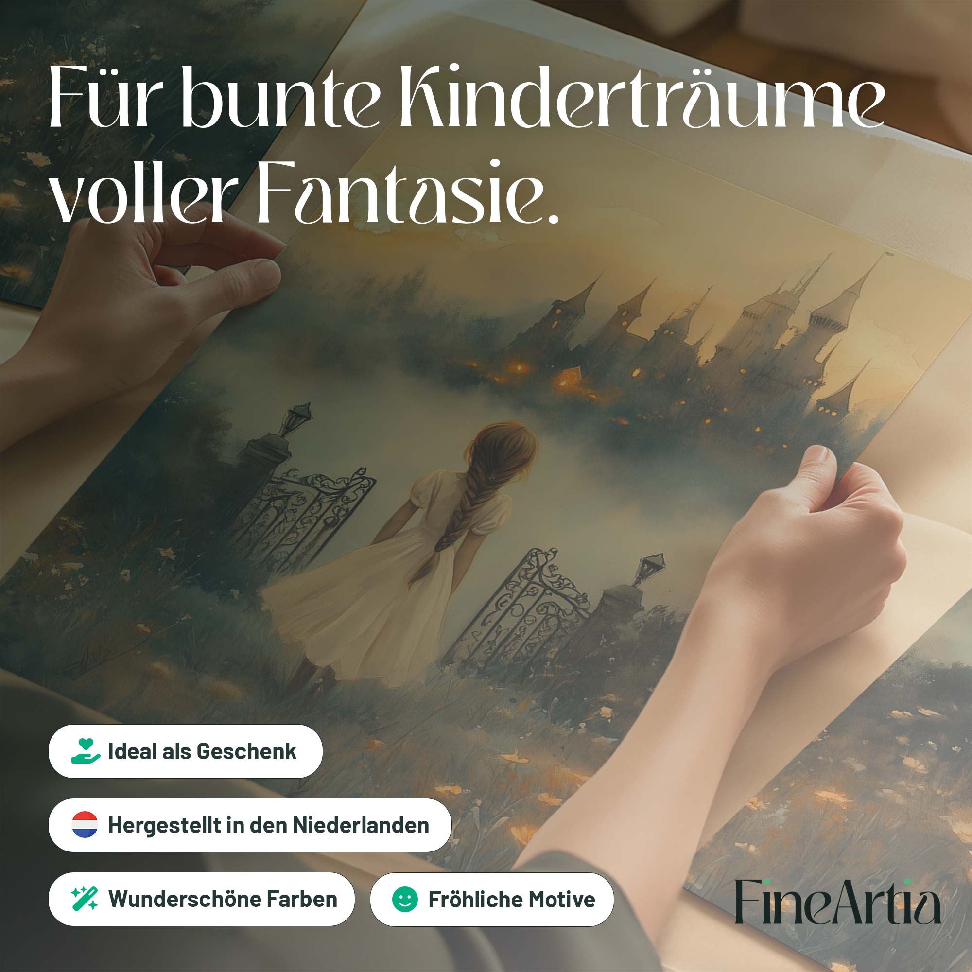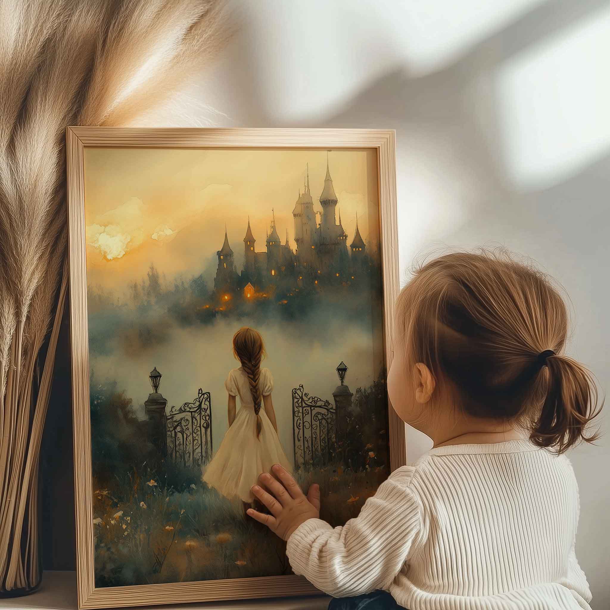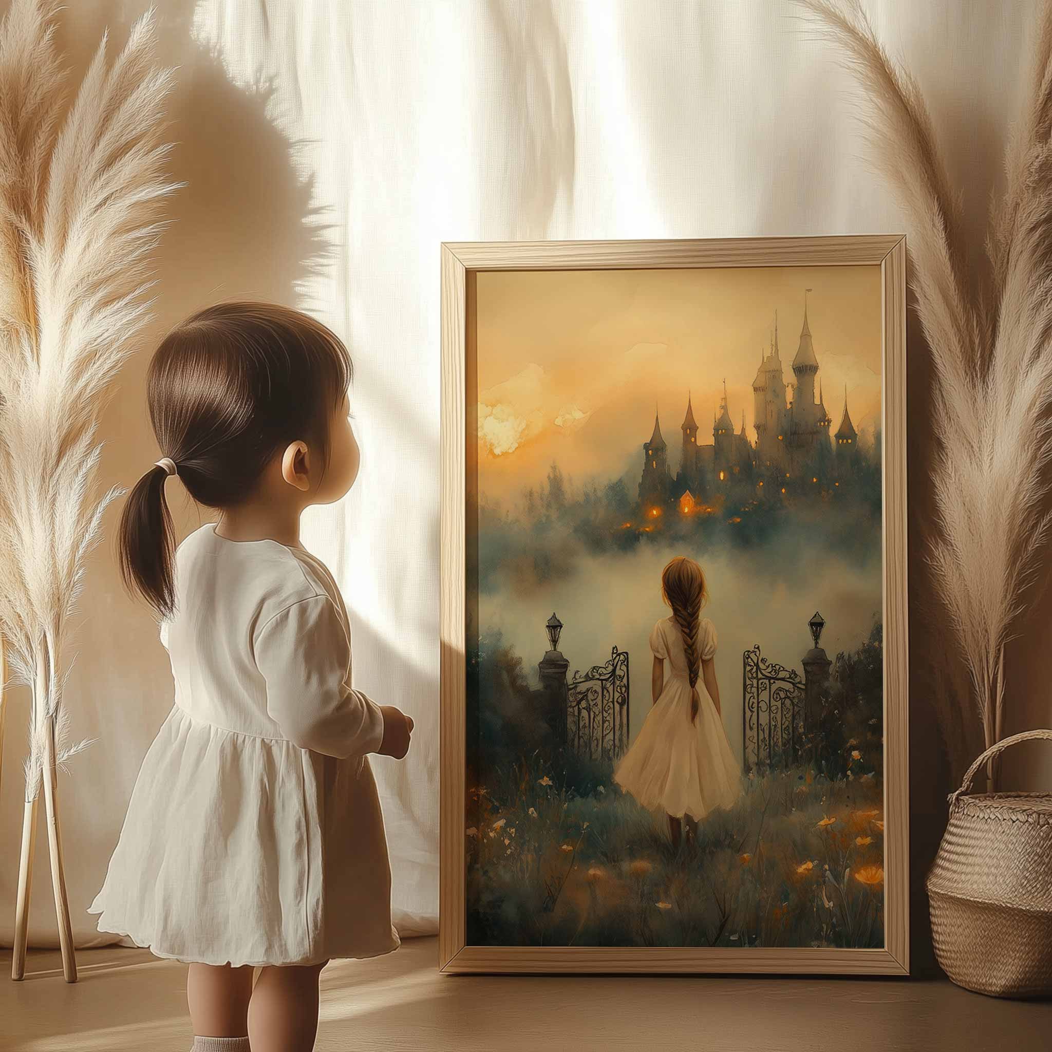Terug naar collectie Posters Magisch Meisje bij Dromenkasteel in Gouden Gloed