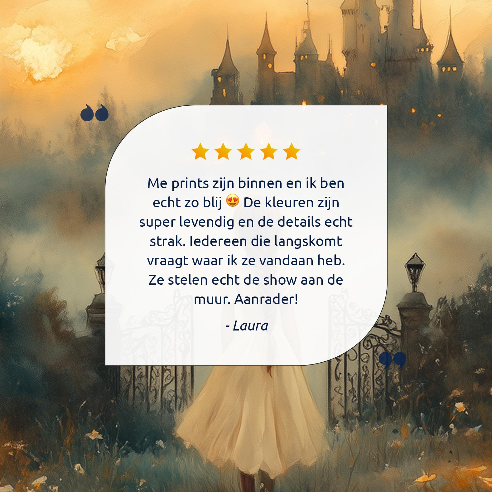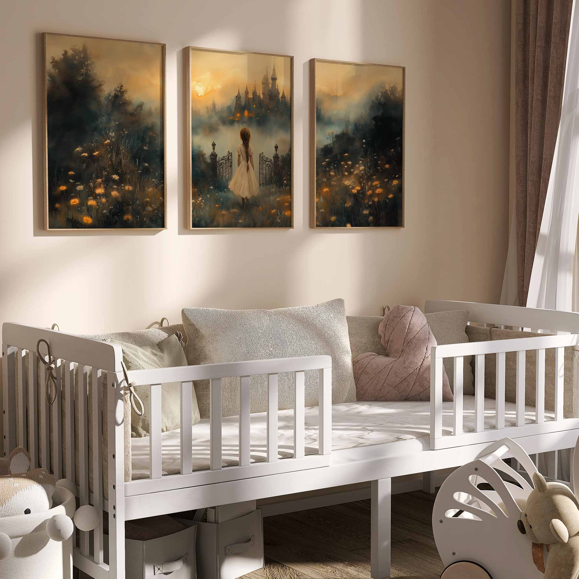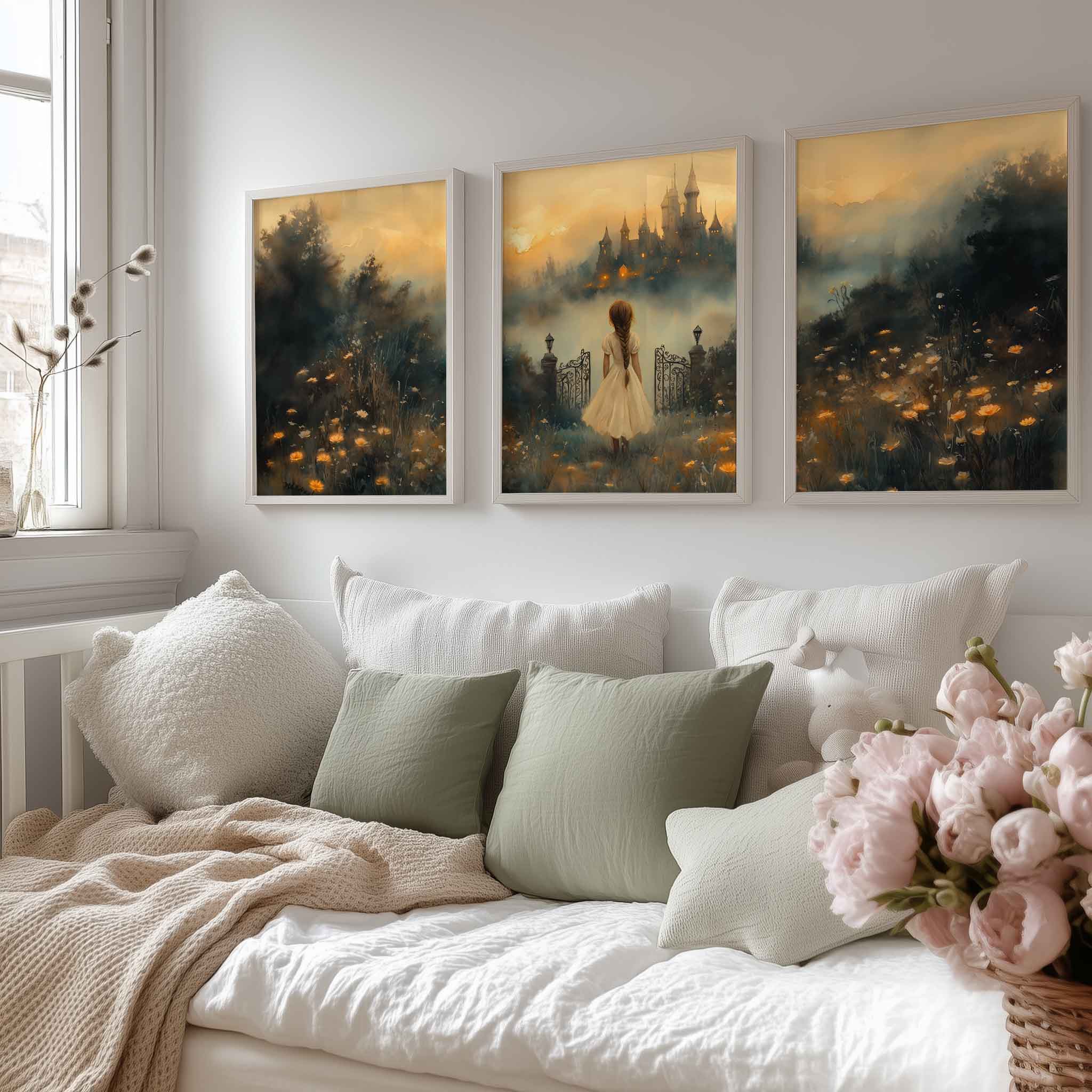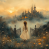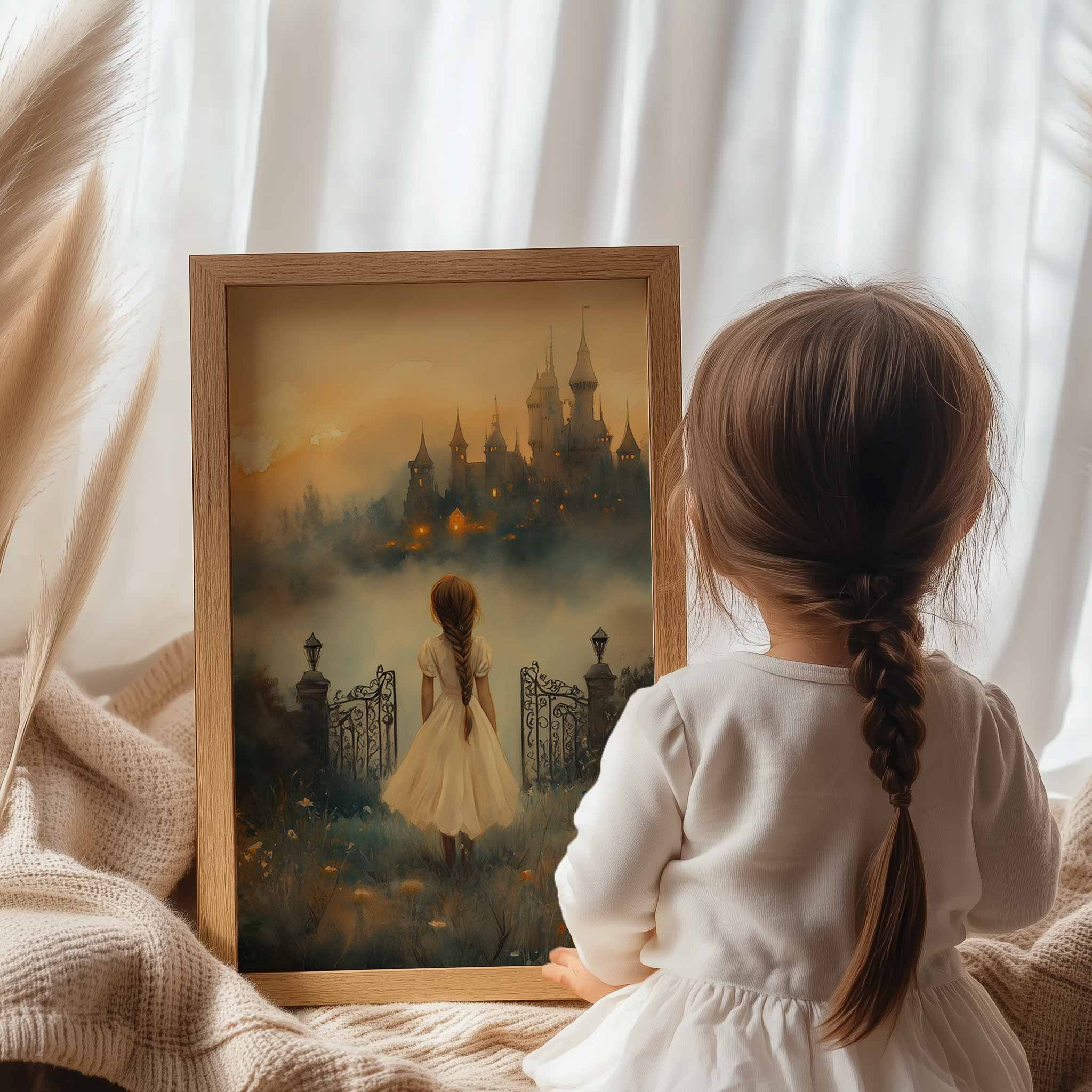 Terug naar collectie Posters Magisch Meisje bij Dromenkasteel in Gouden Gloed