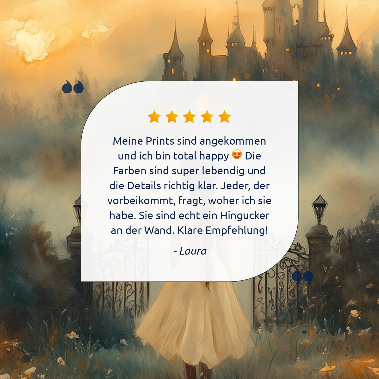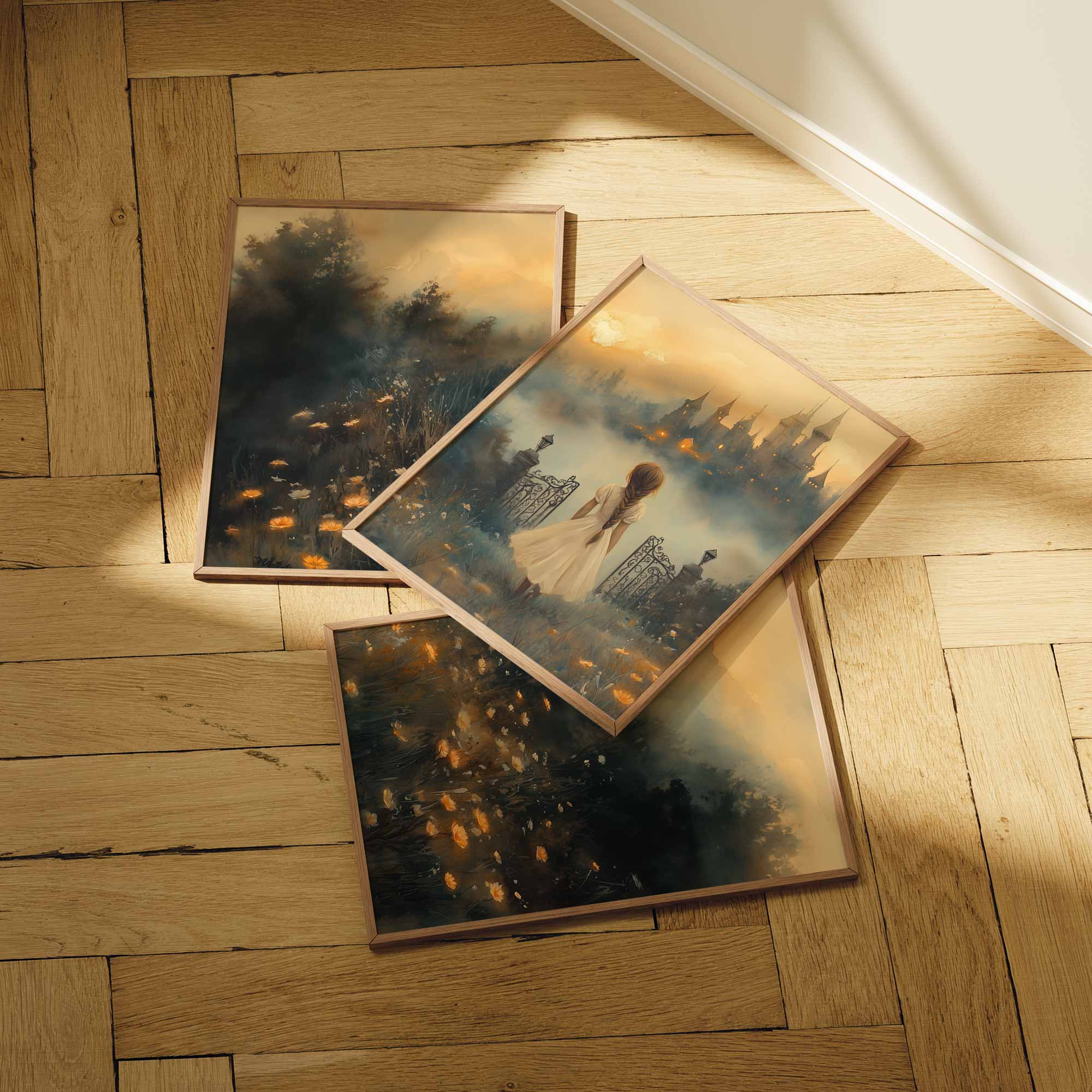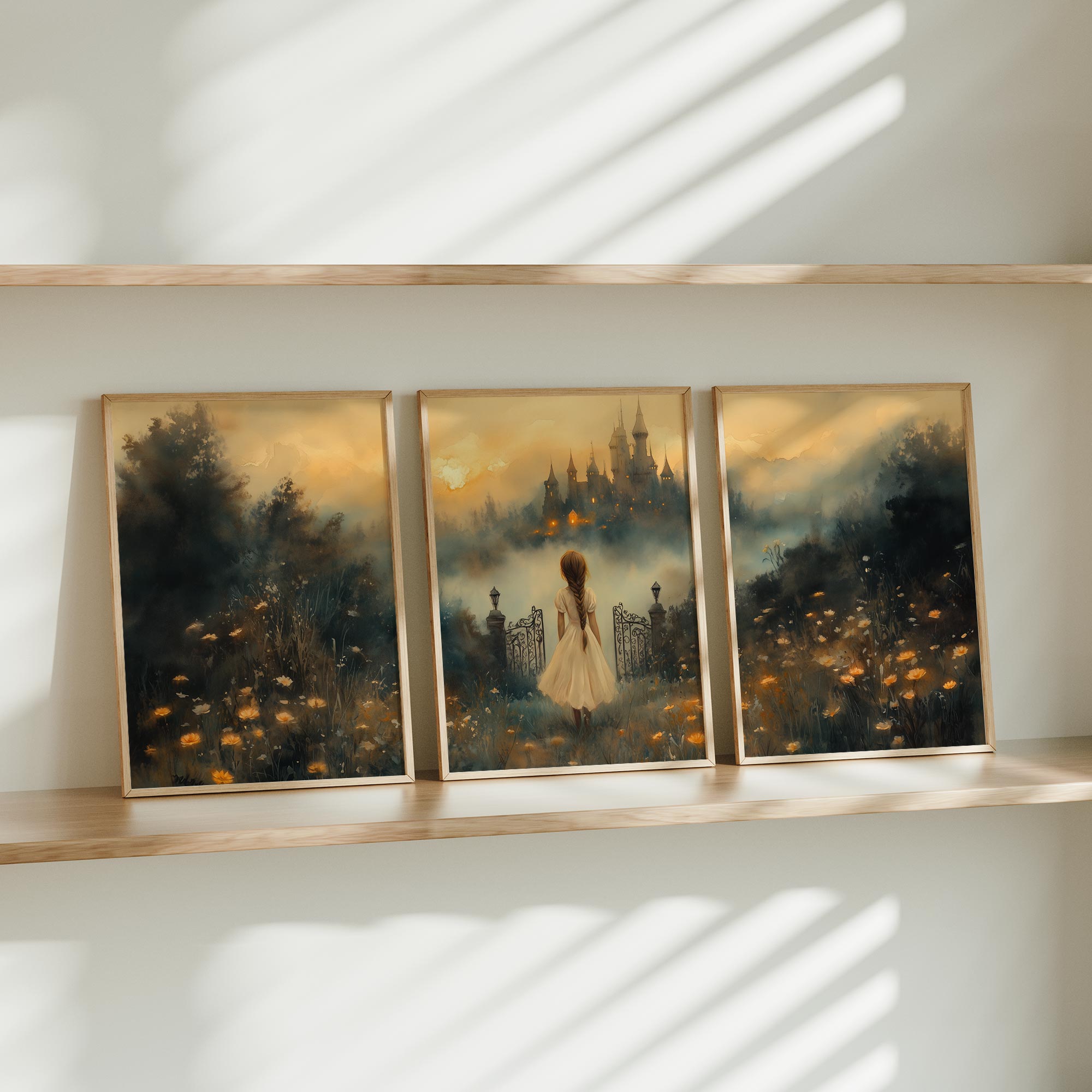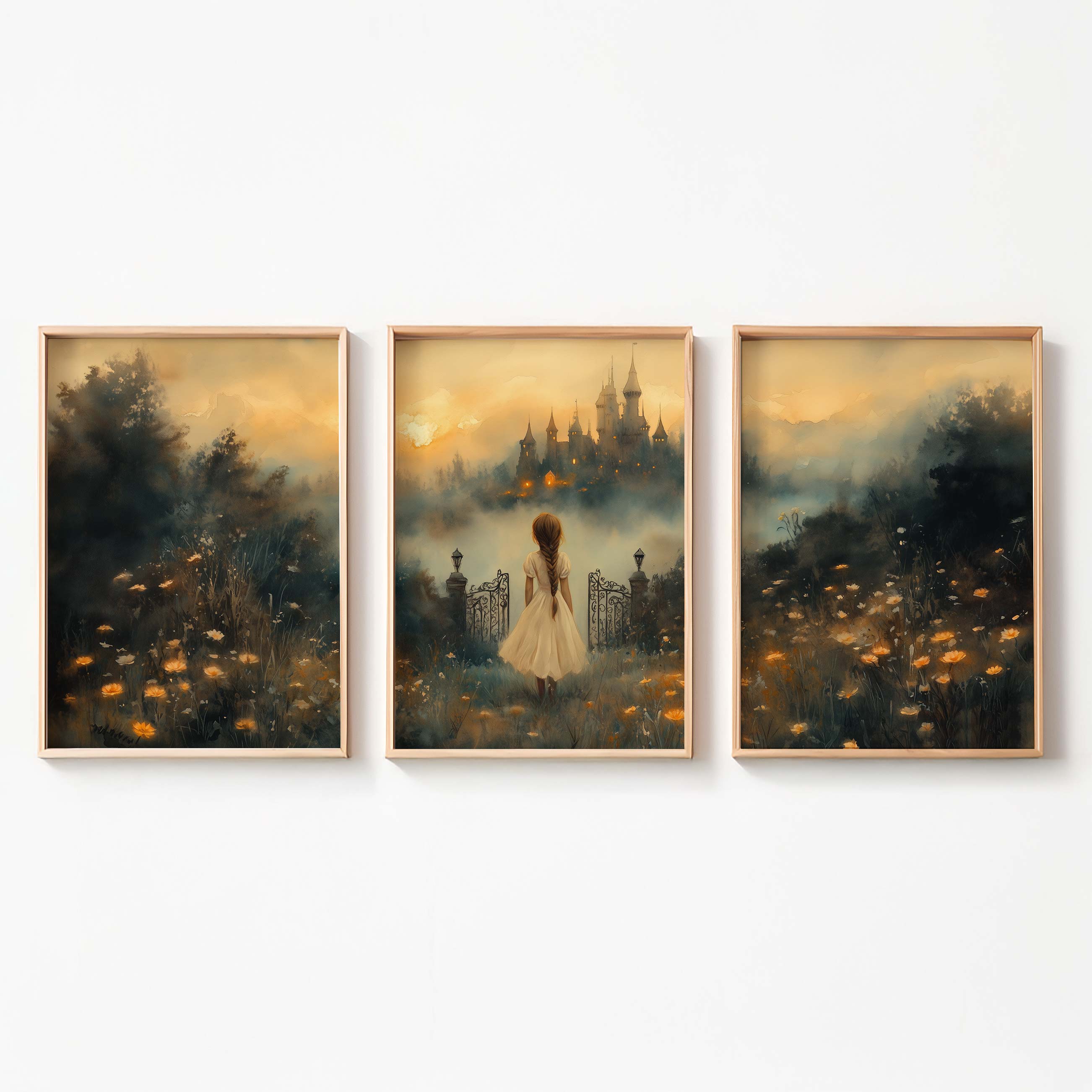 Terug naar collectie Posters Magisch Meisje bij Dromenkasteel in Gouden Gloed