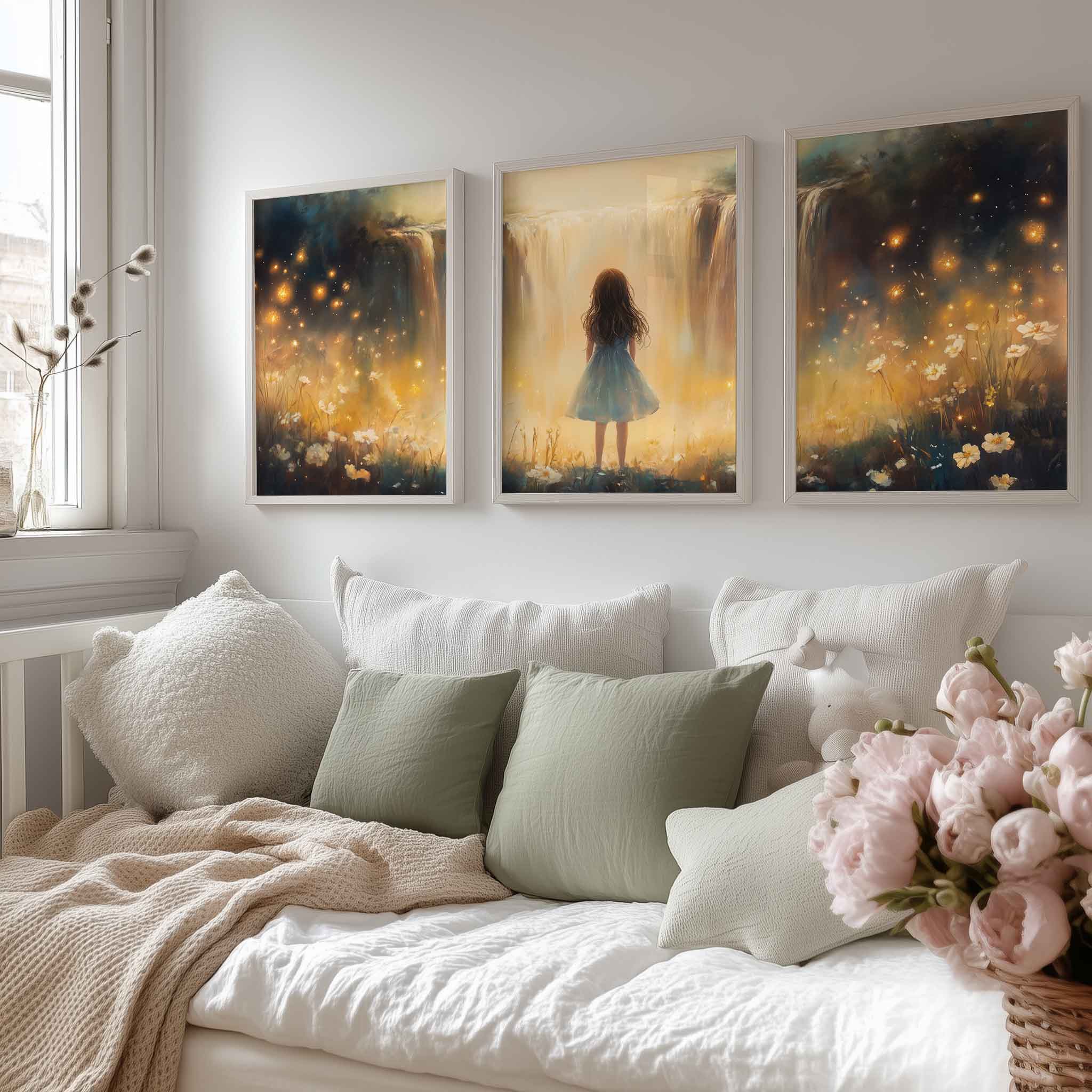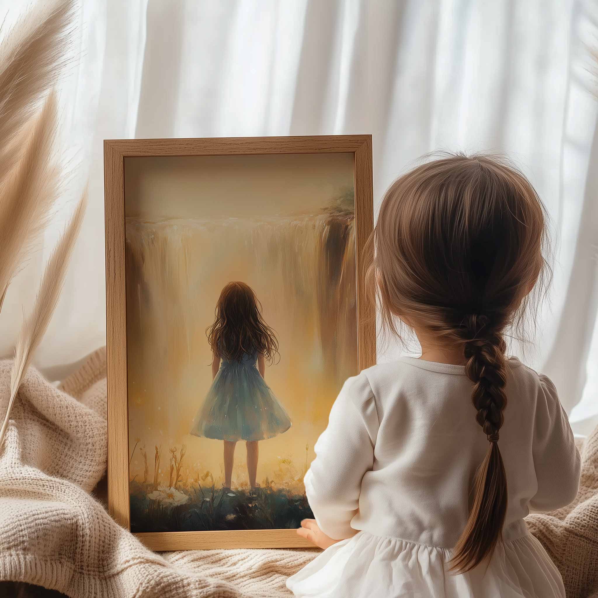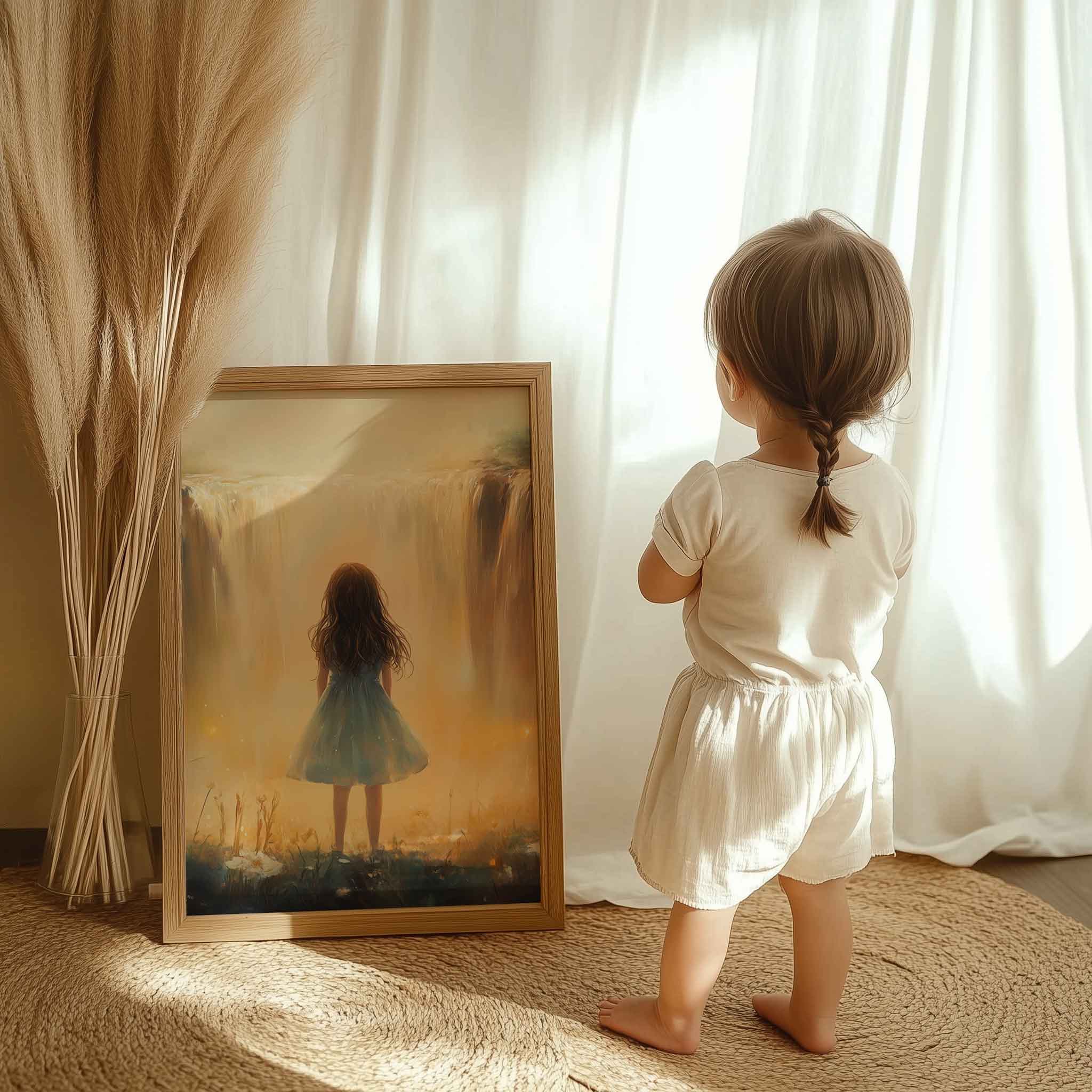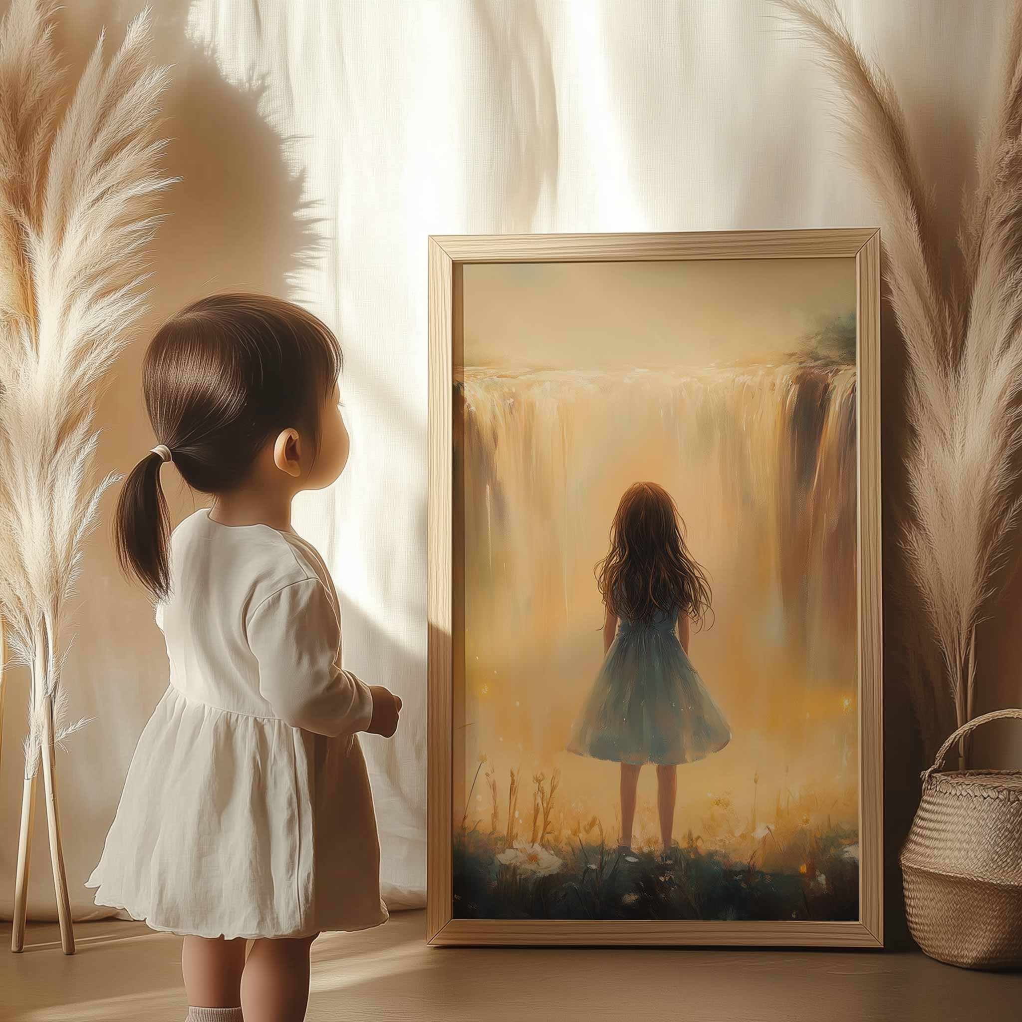 Terug naar collectie Posters Magisch Meisje bij Gouden Waterval en Bloemenveld