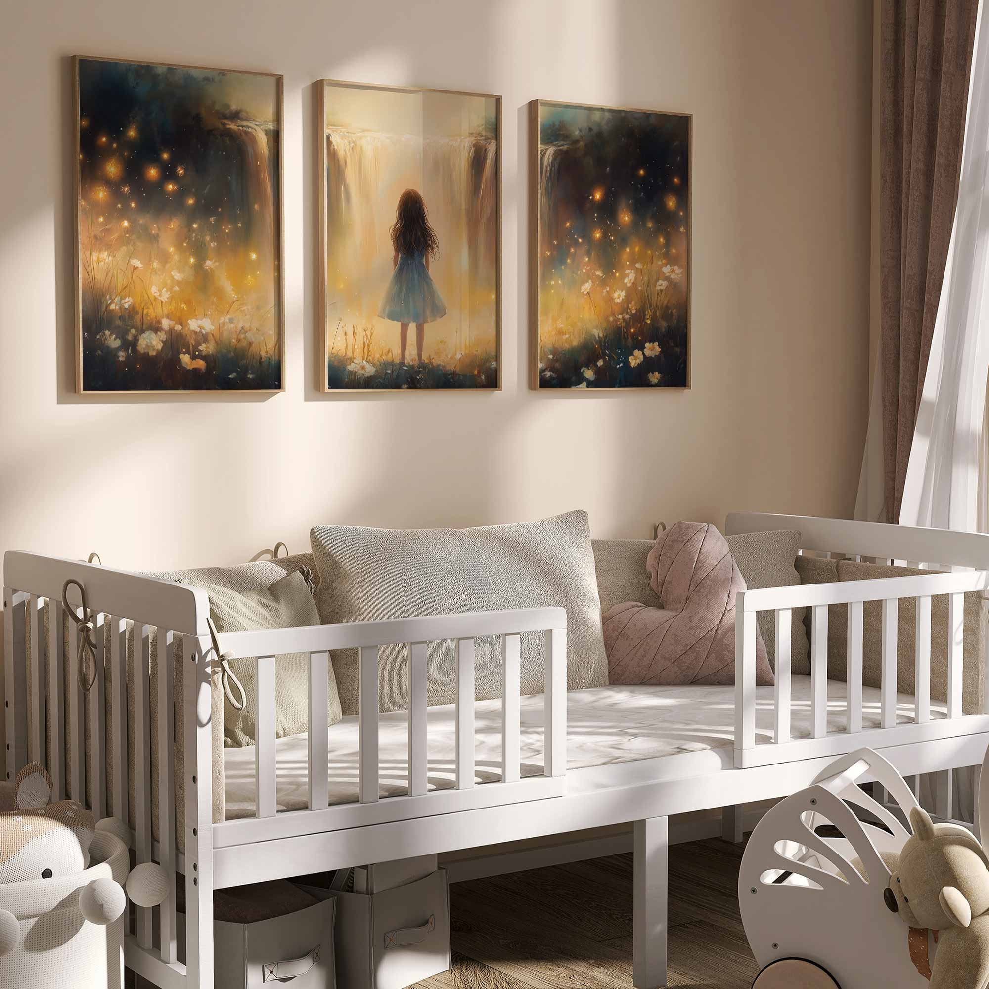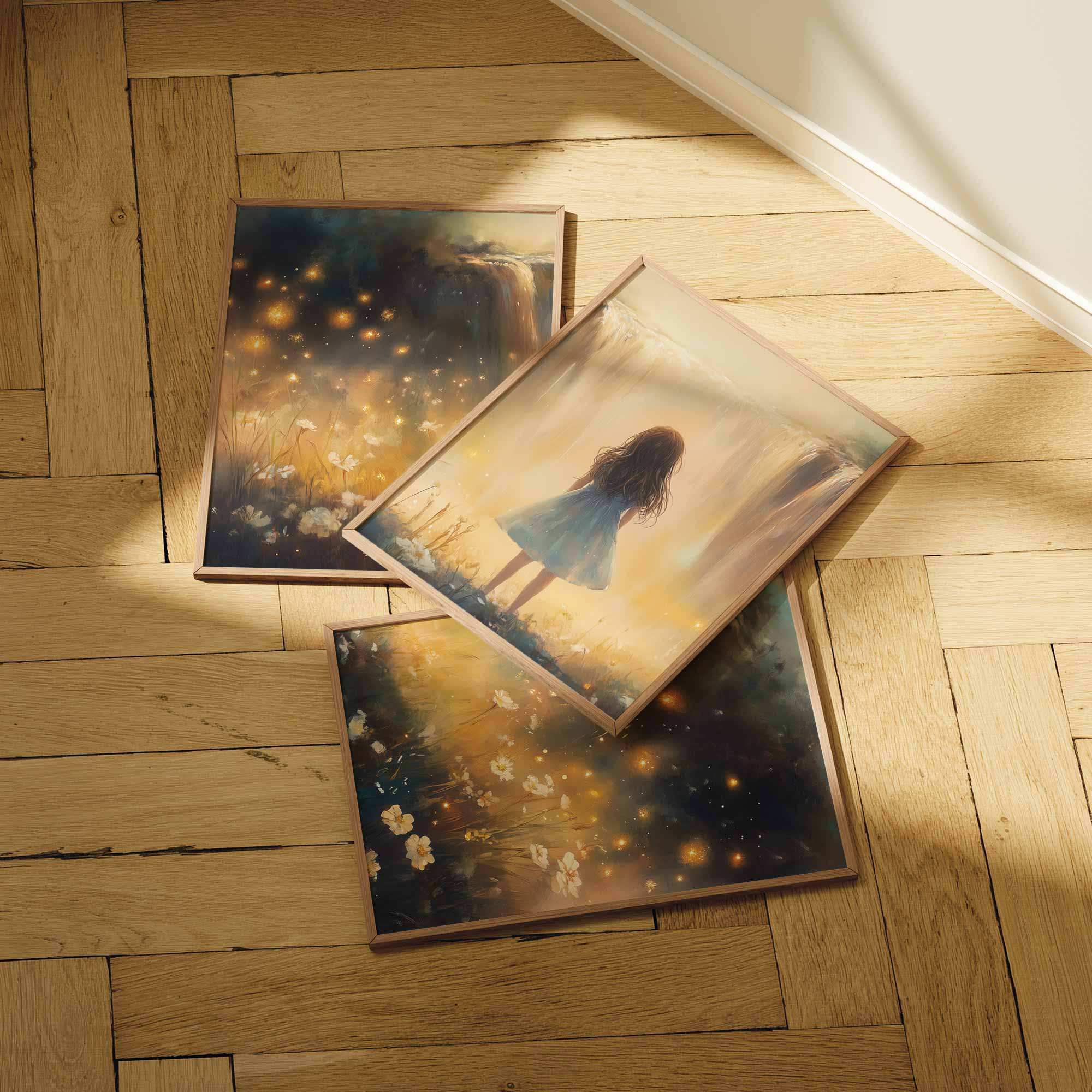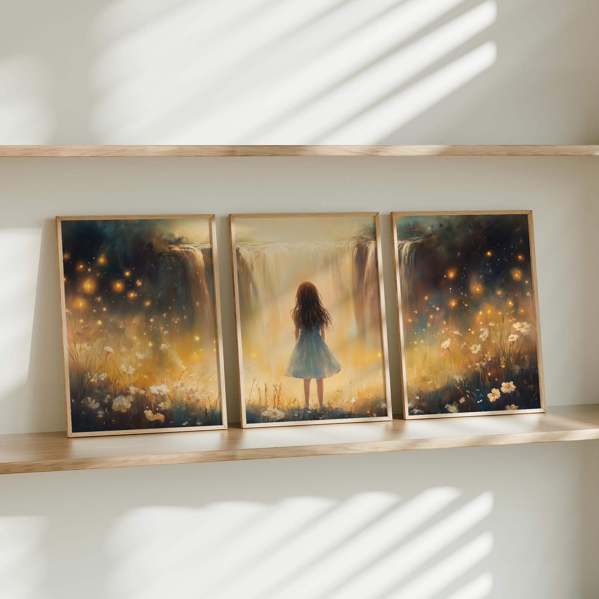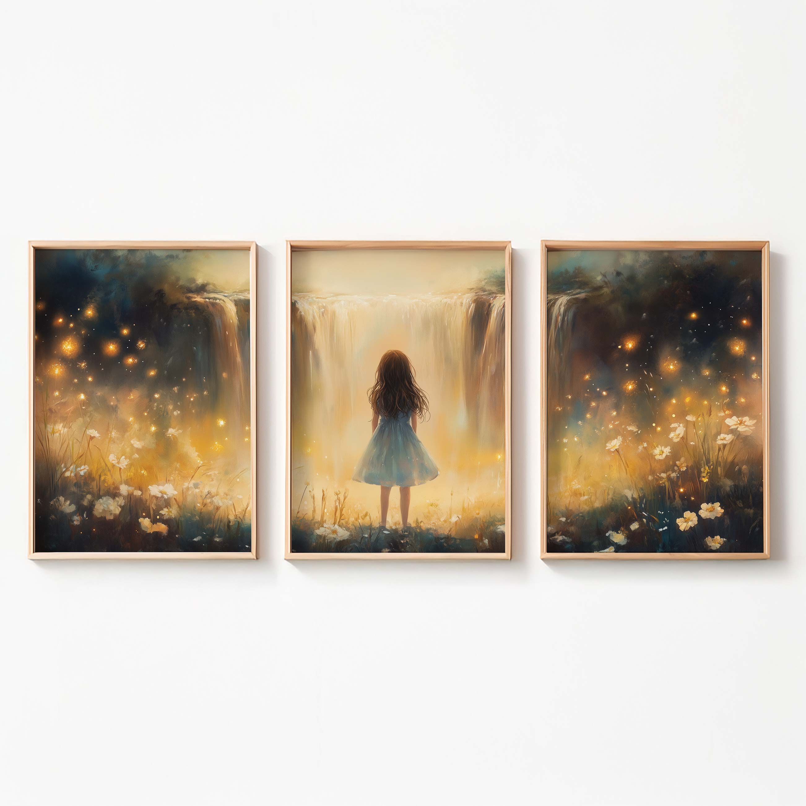 Terug naar collectie Posters Magisch Meisje bij Gouden Waterval en Bloemenveld