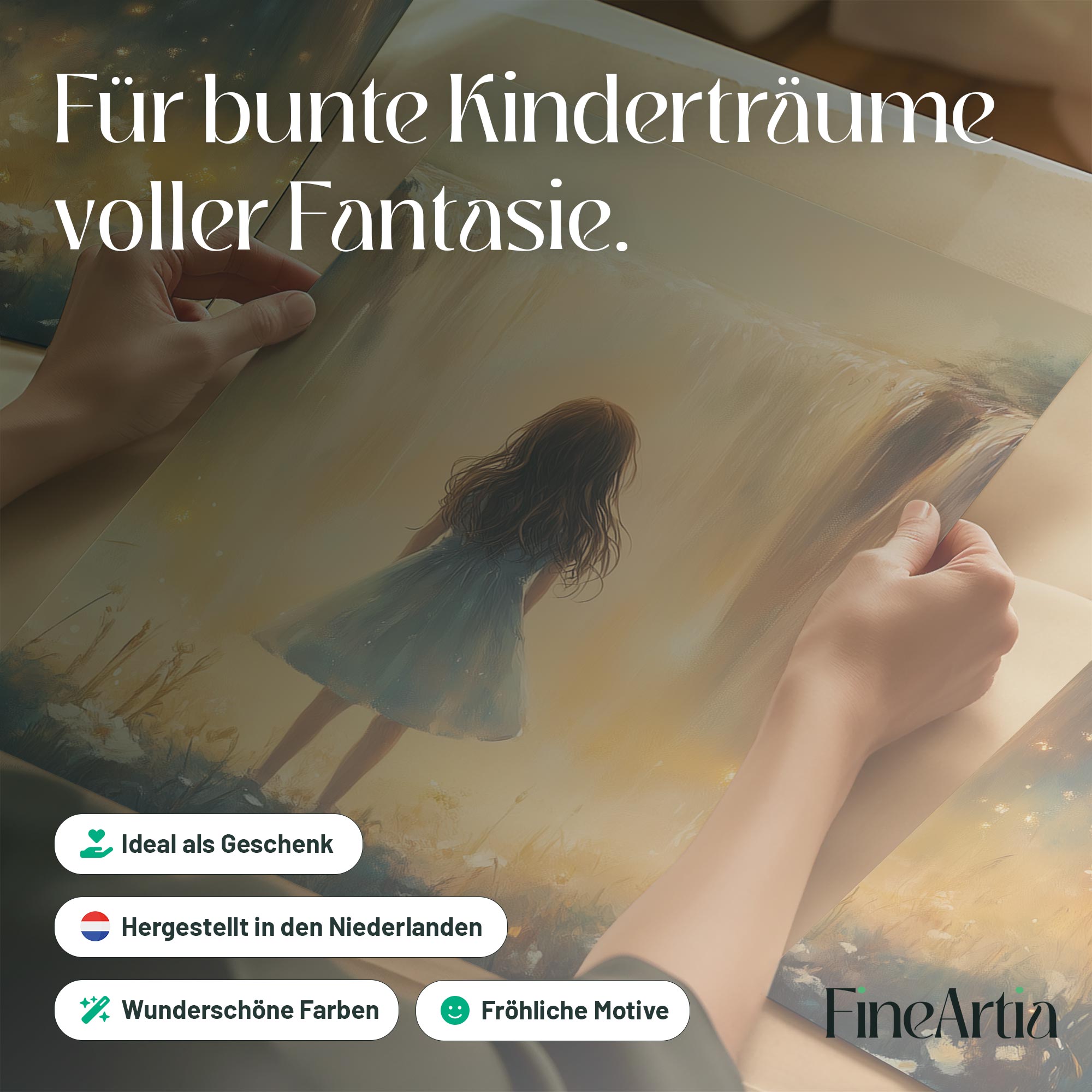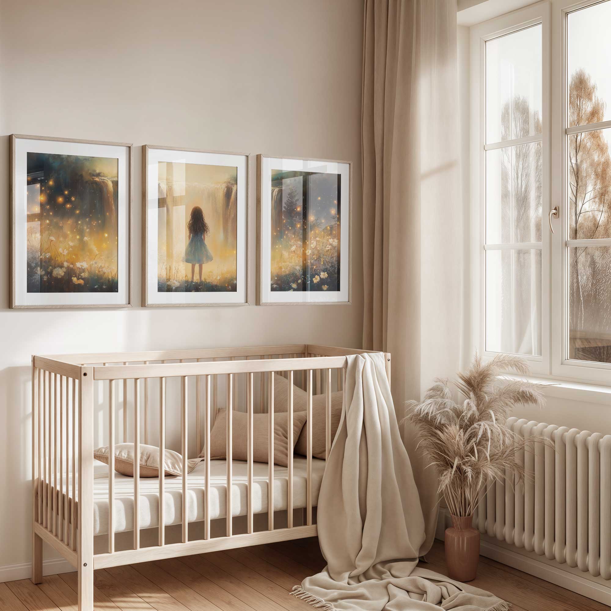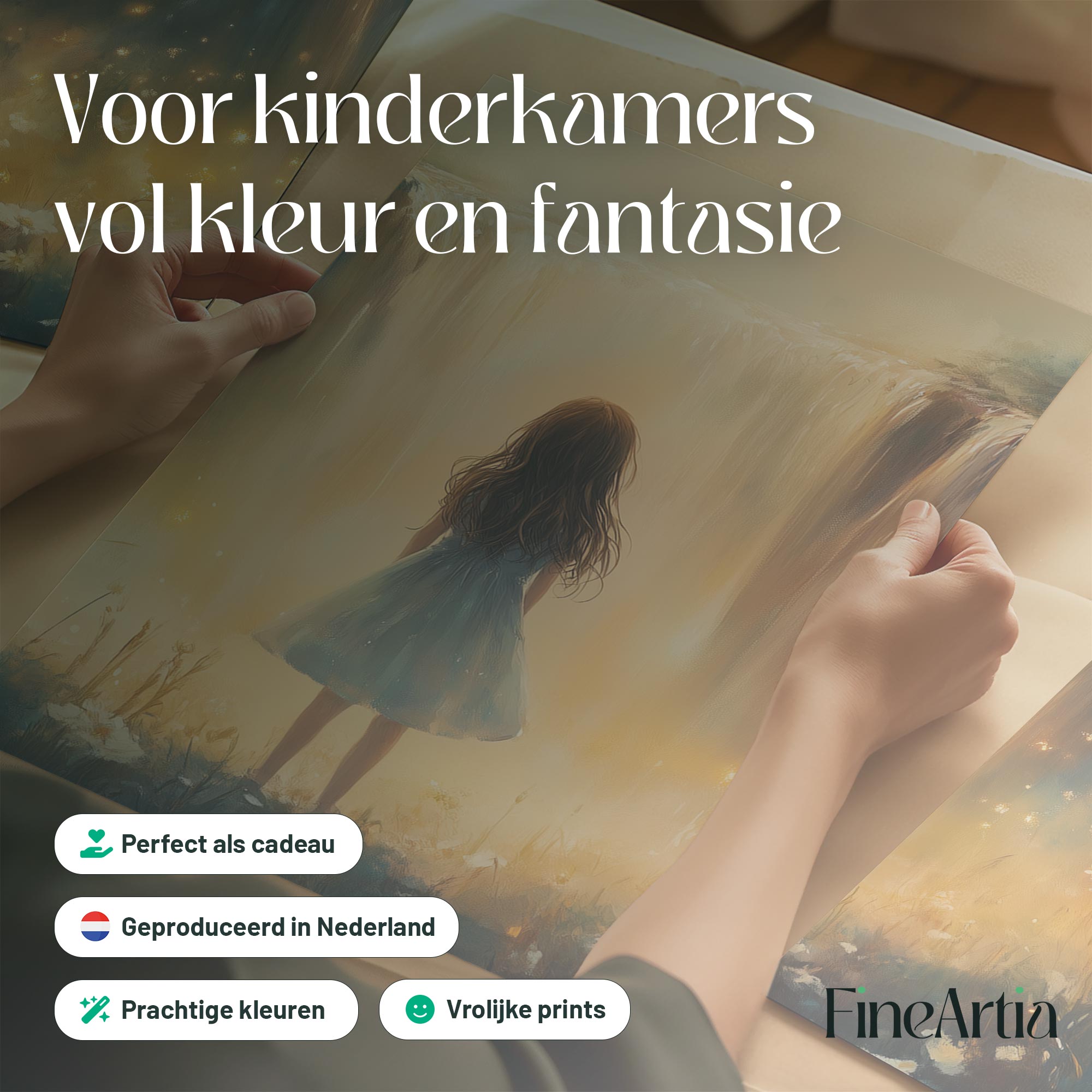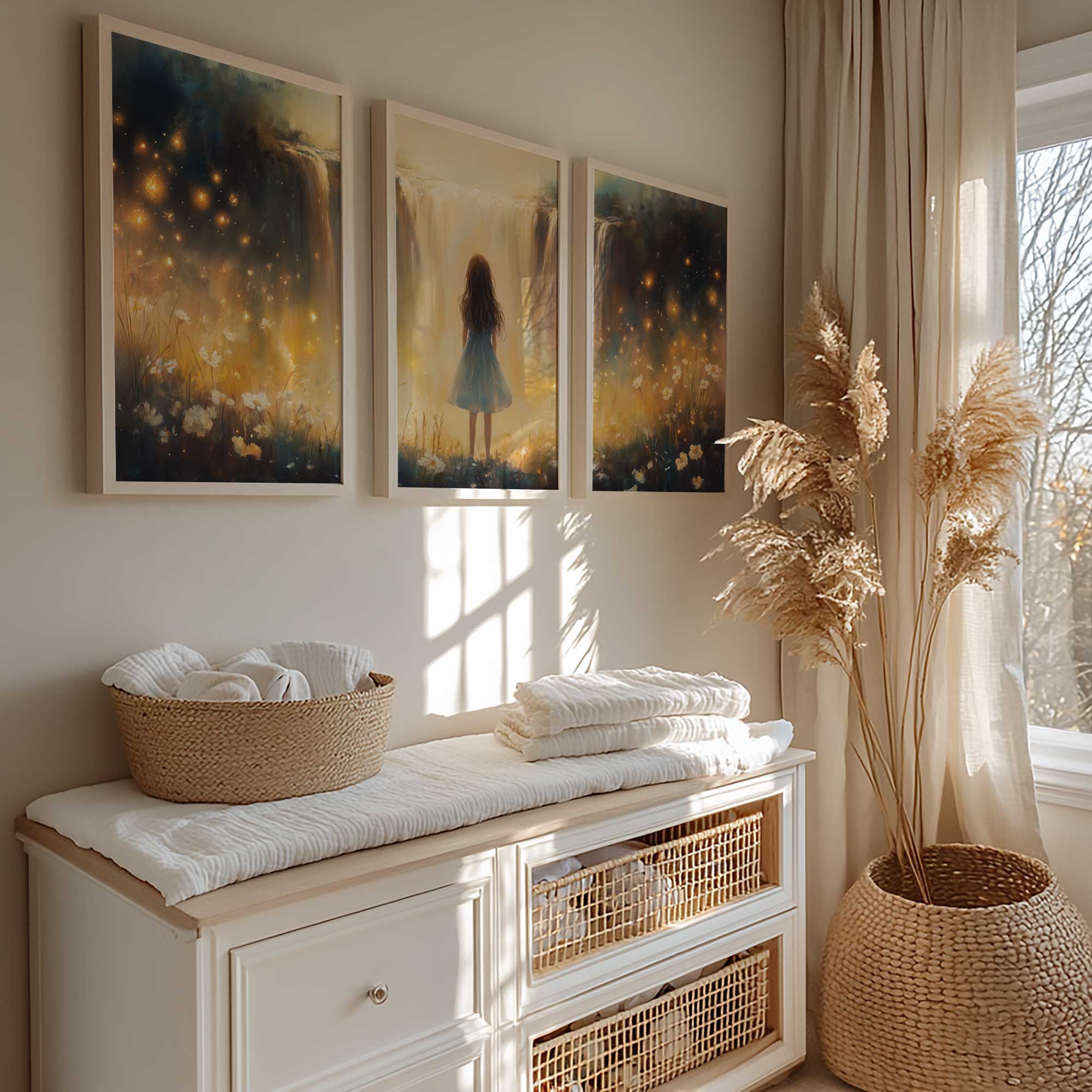 Terug naar collectie Posters Magisch Meisje bij Gouden Waterval en Bloemenveld