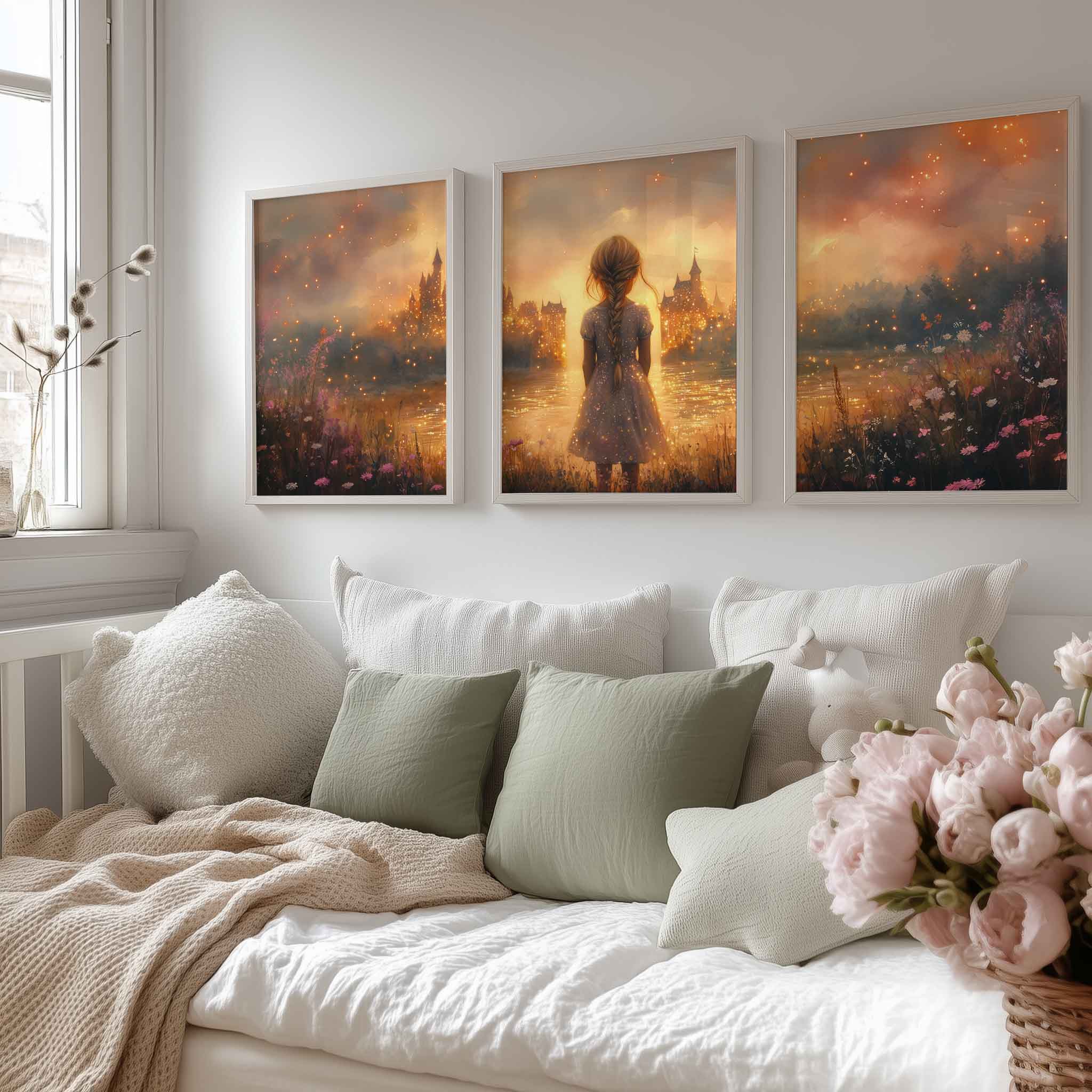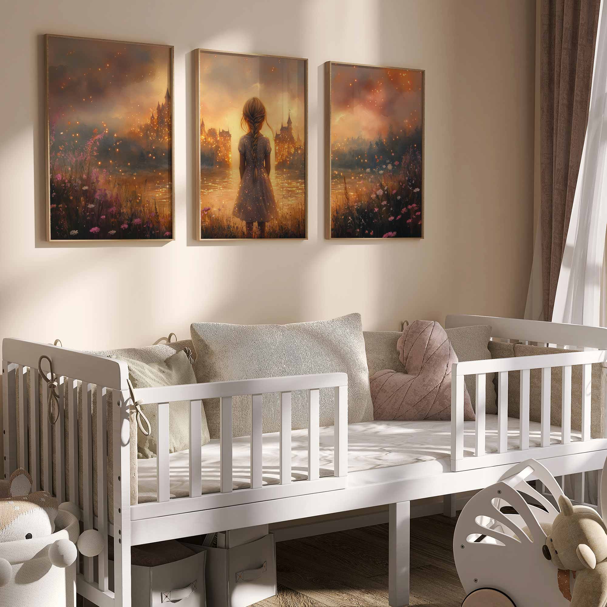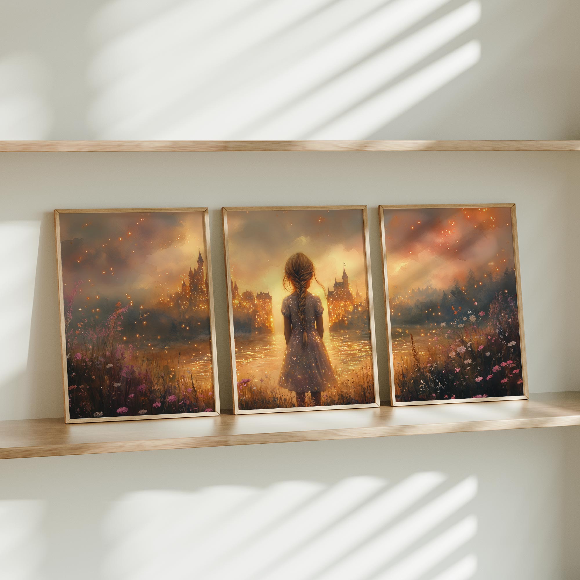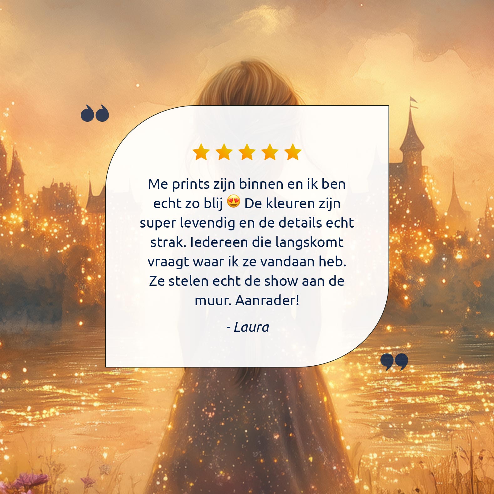 Magisch Meisje bij Verlicht Kasteel in Gouden Gloed