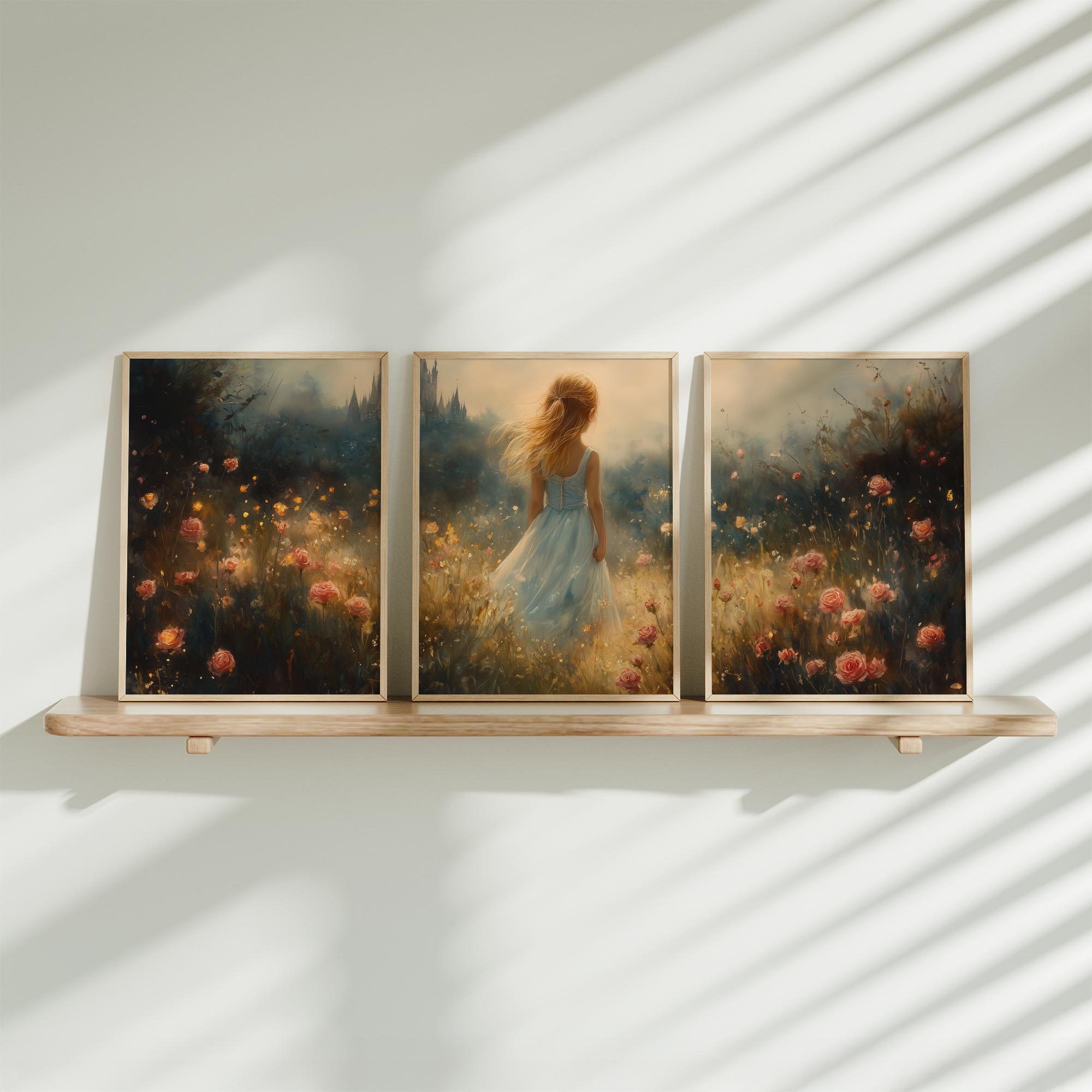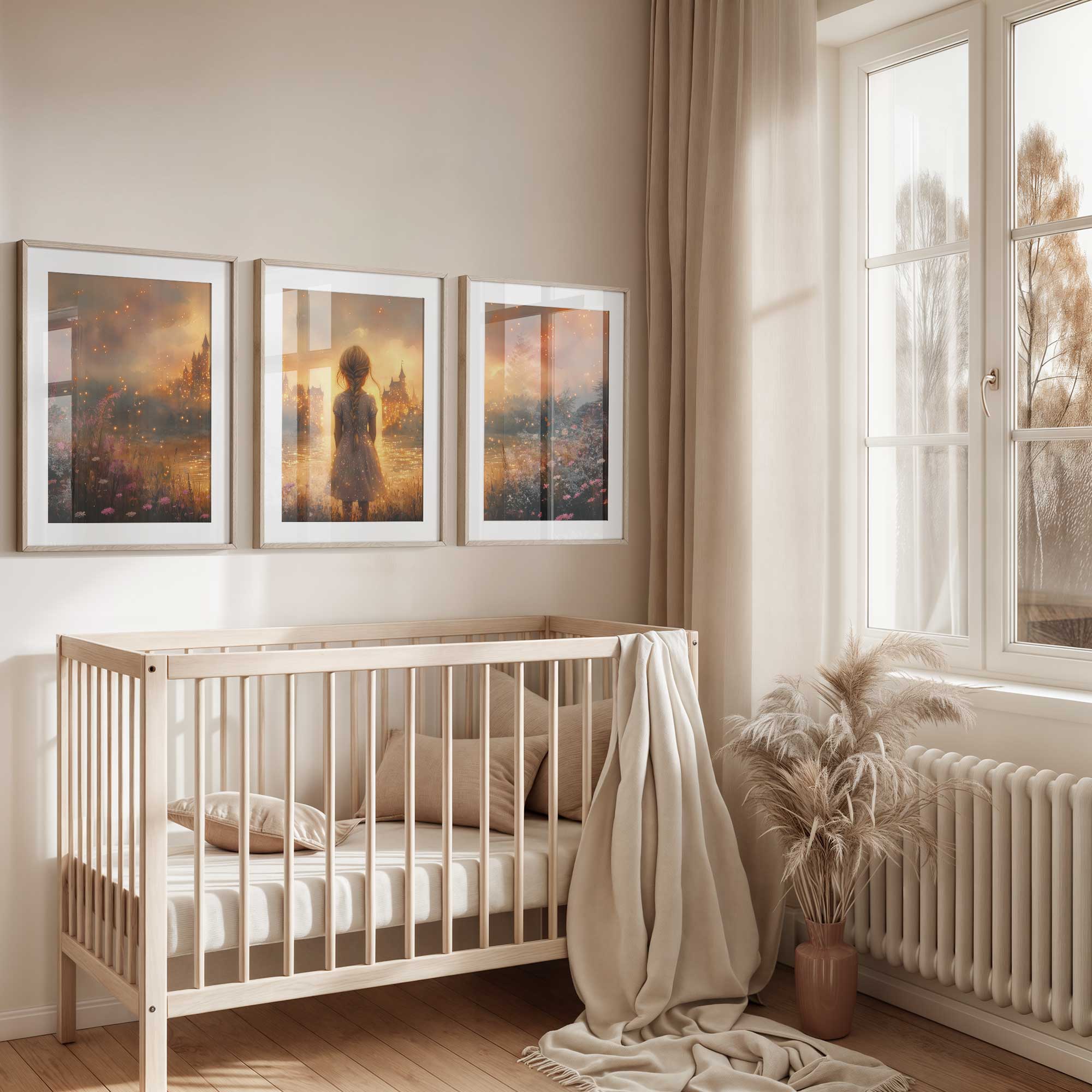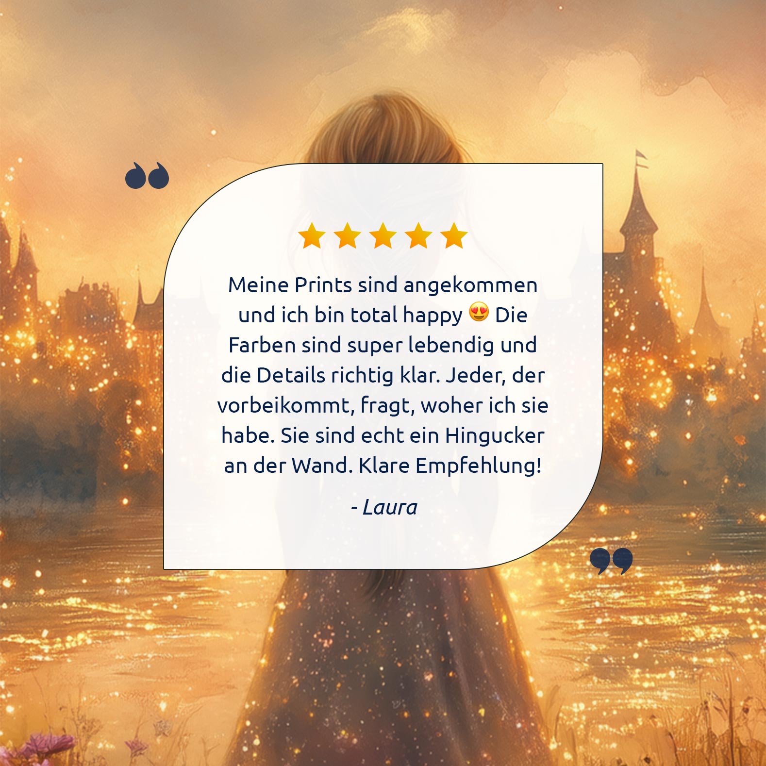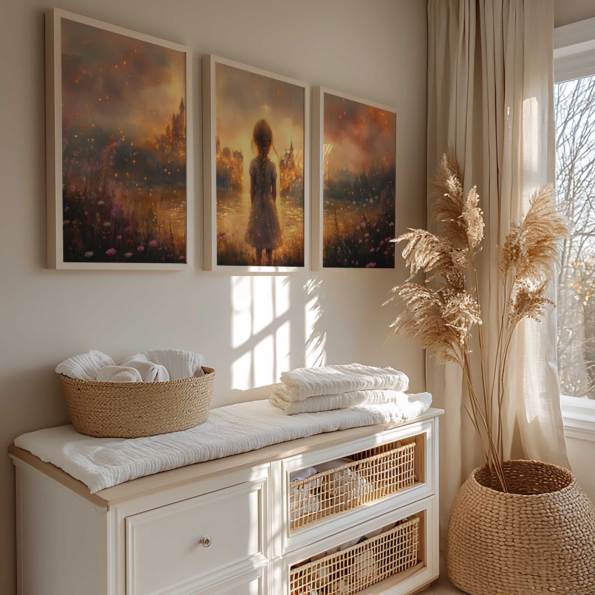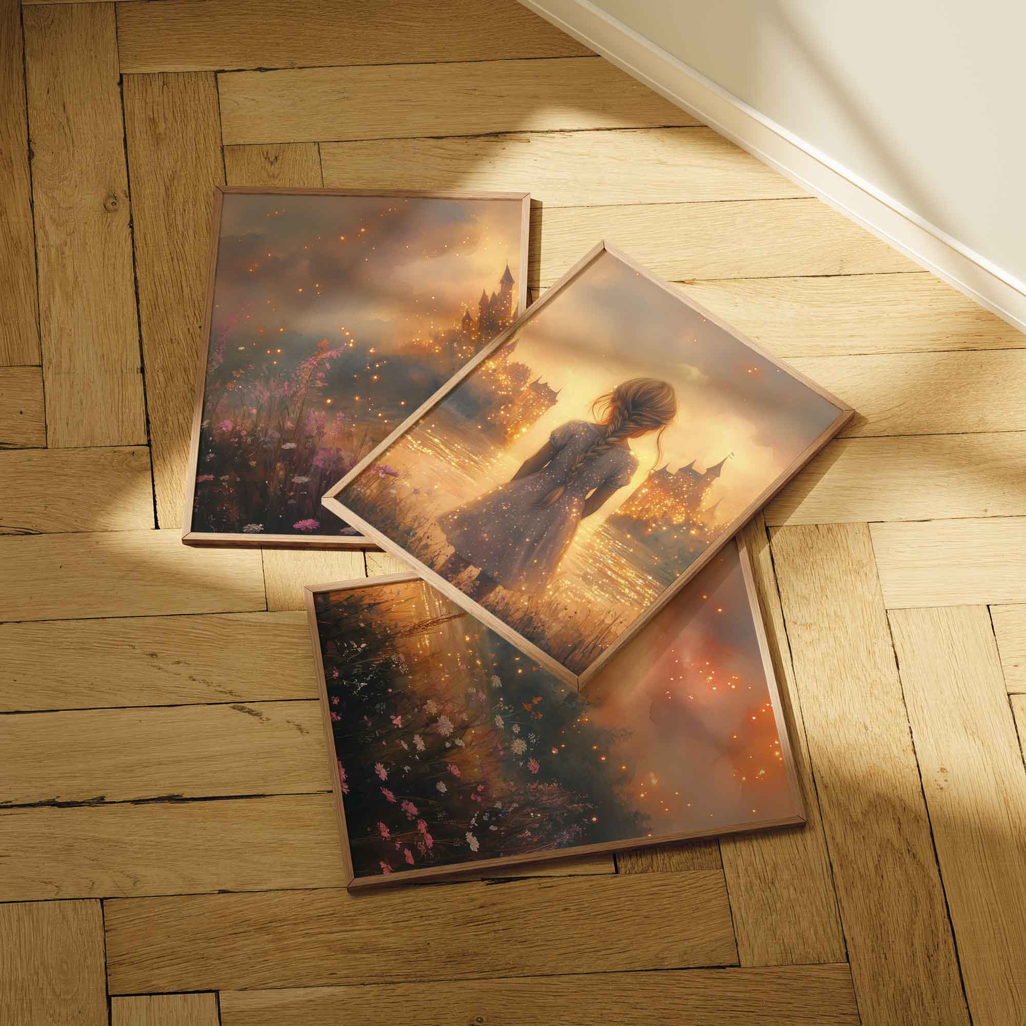 Magisch Meisje bij Verlicht Kasteel in Gouden Gloed
