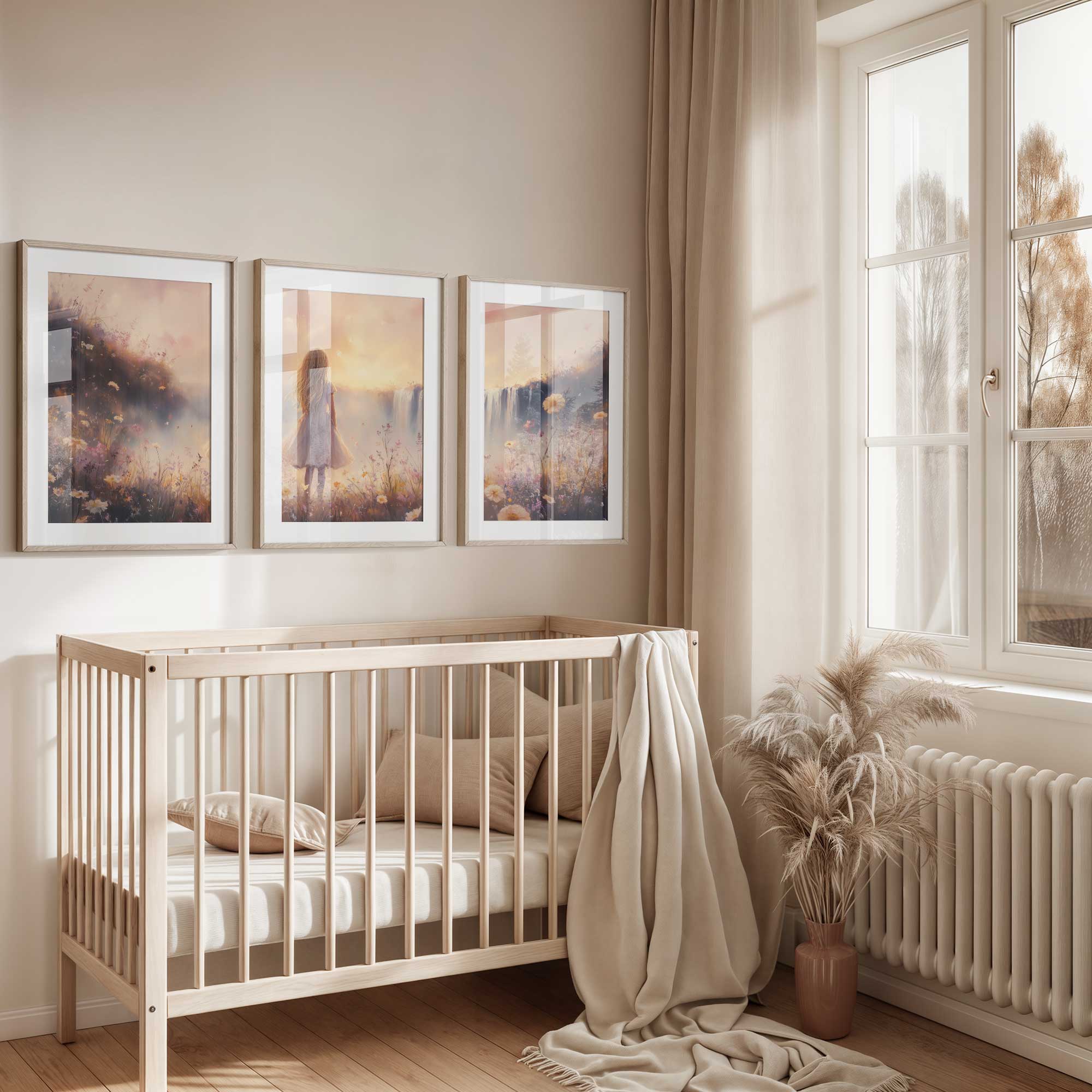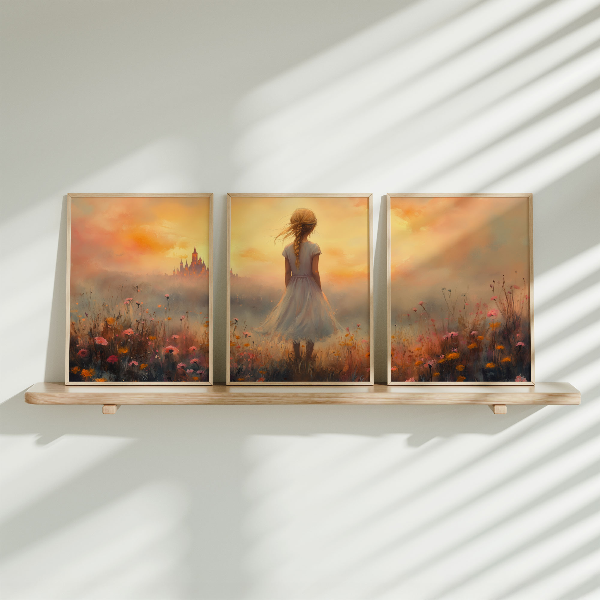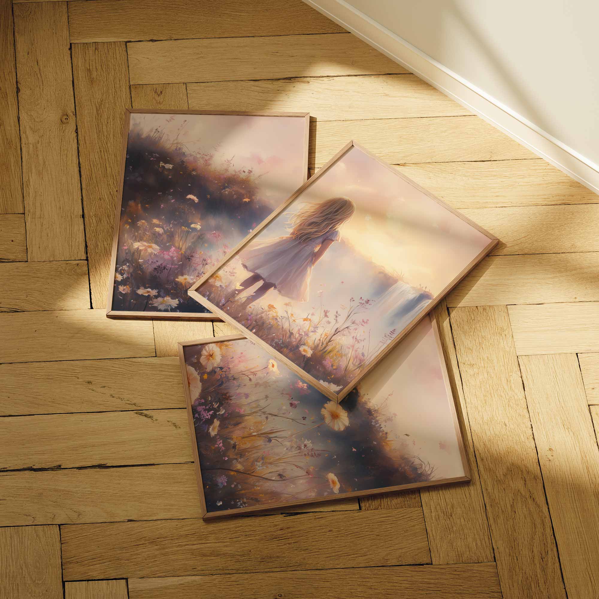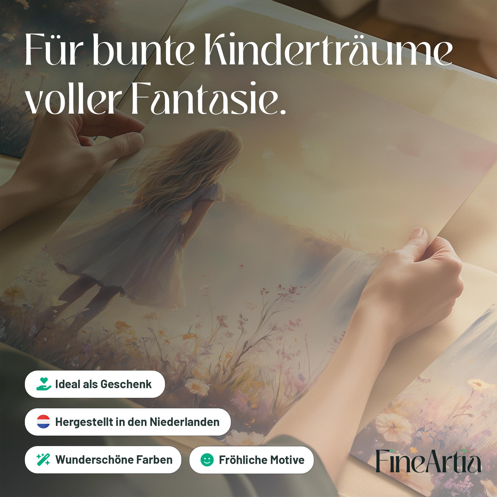 Magisch Meisje bij Waterfall en Bloemenveld