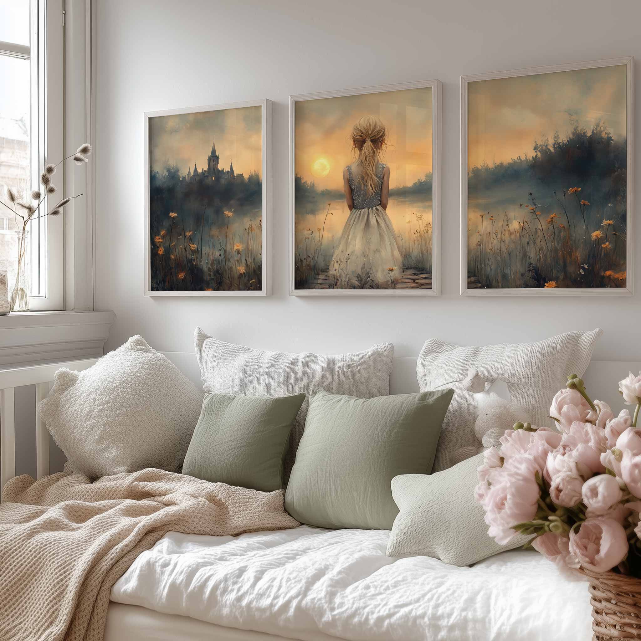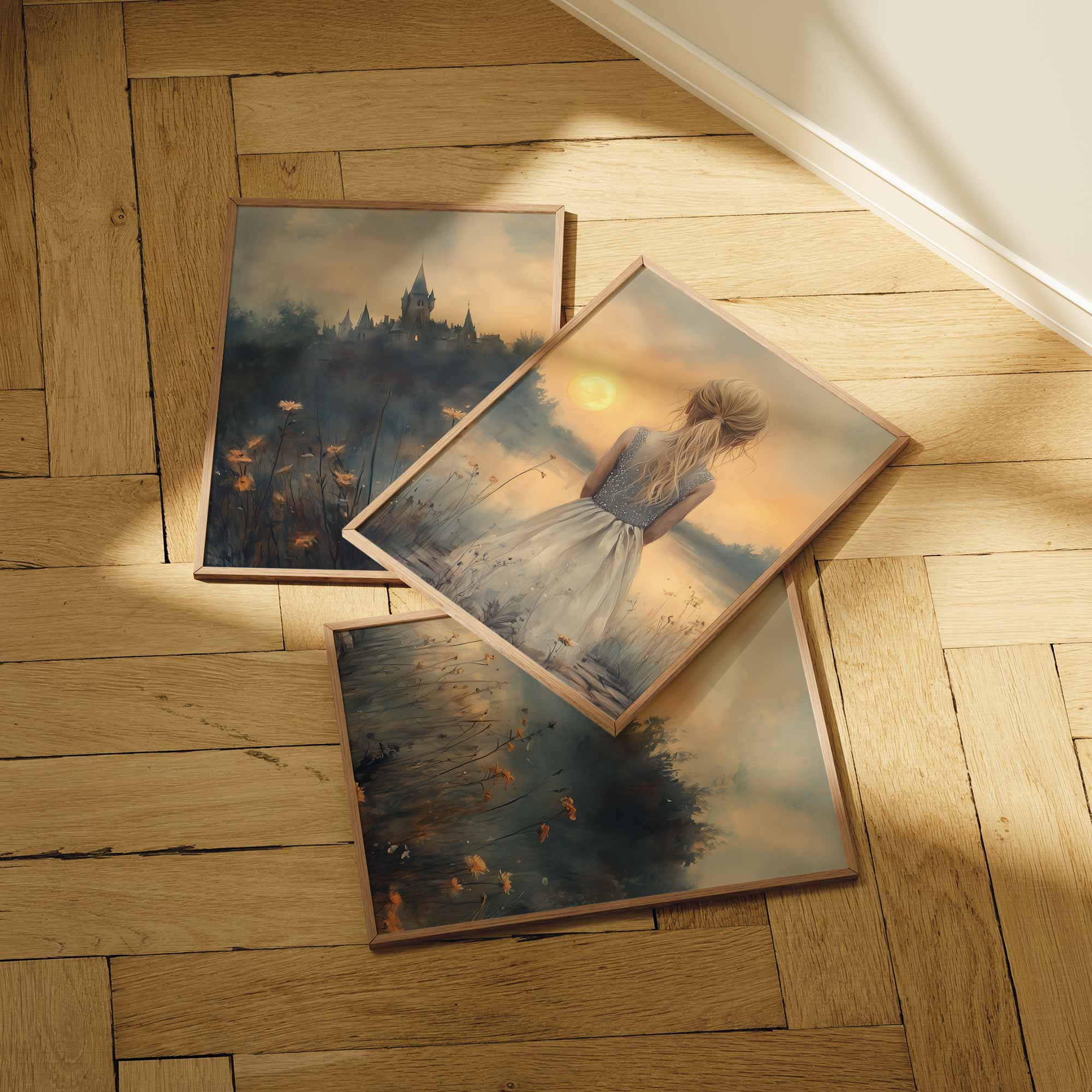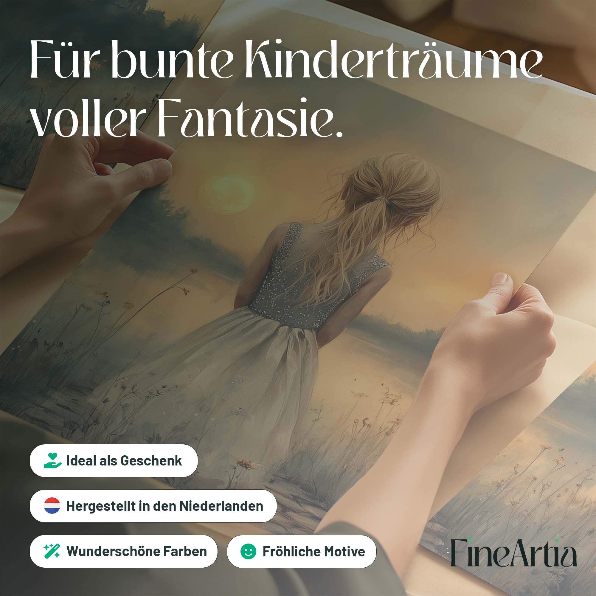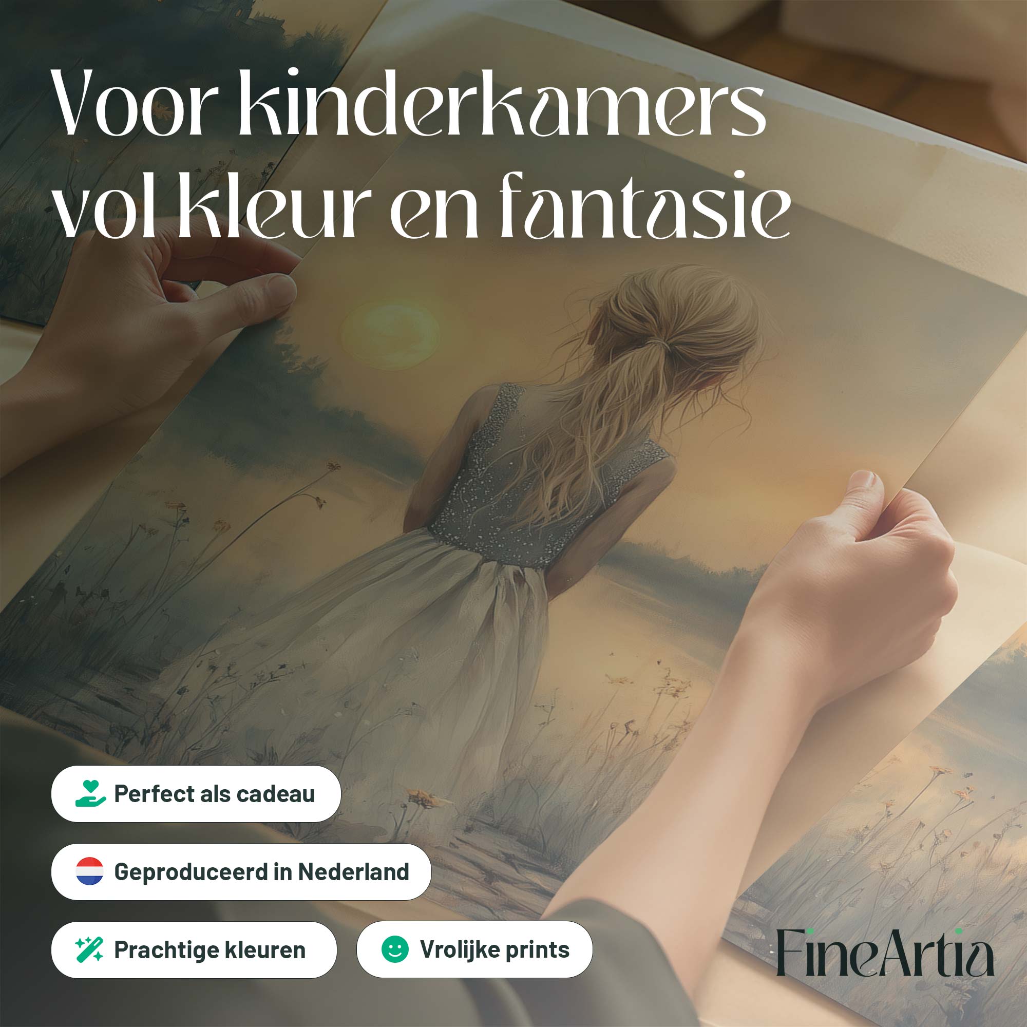 Terug naar collectie Posters Magisch Meisje bij Zonsondergang en Kasteel
