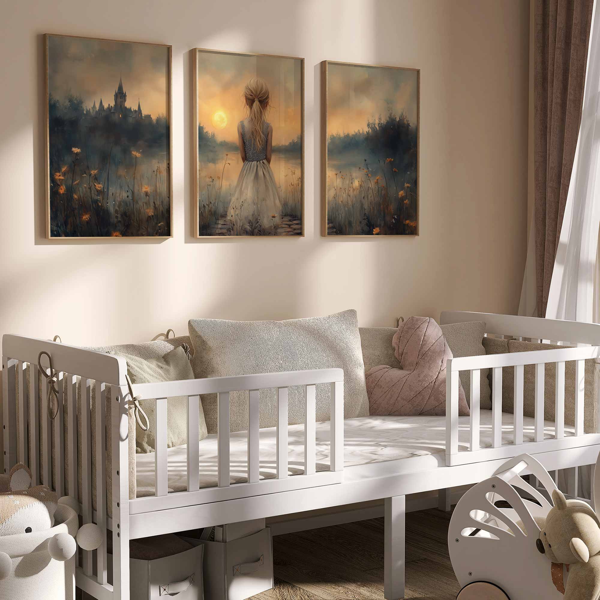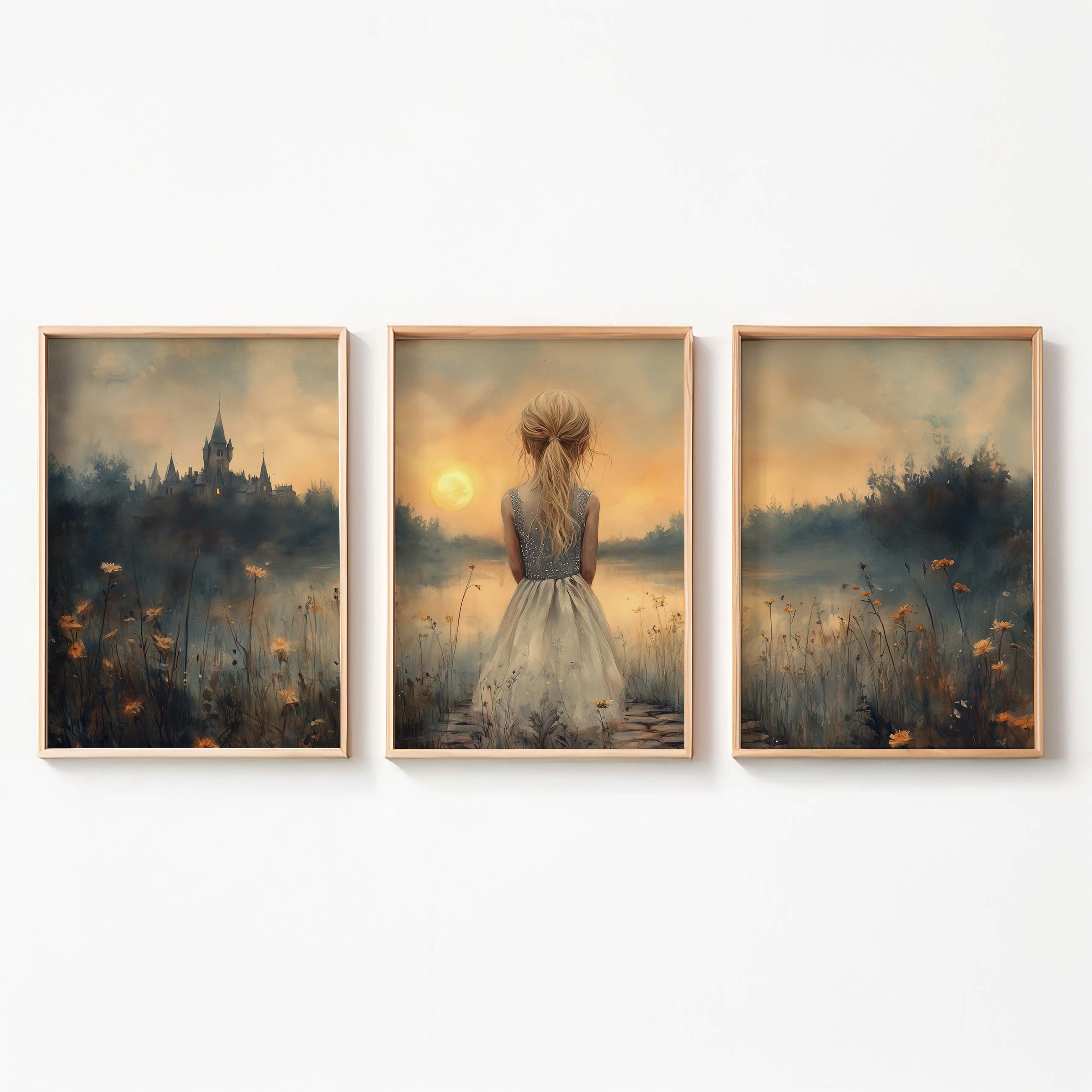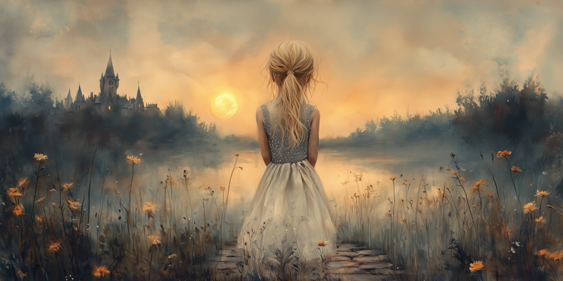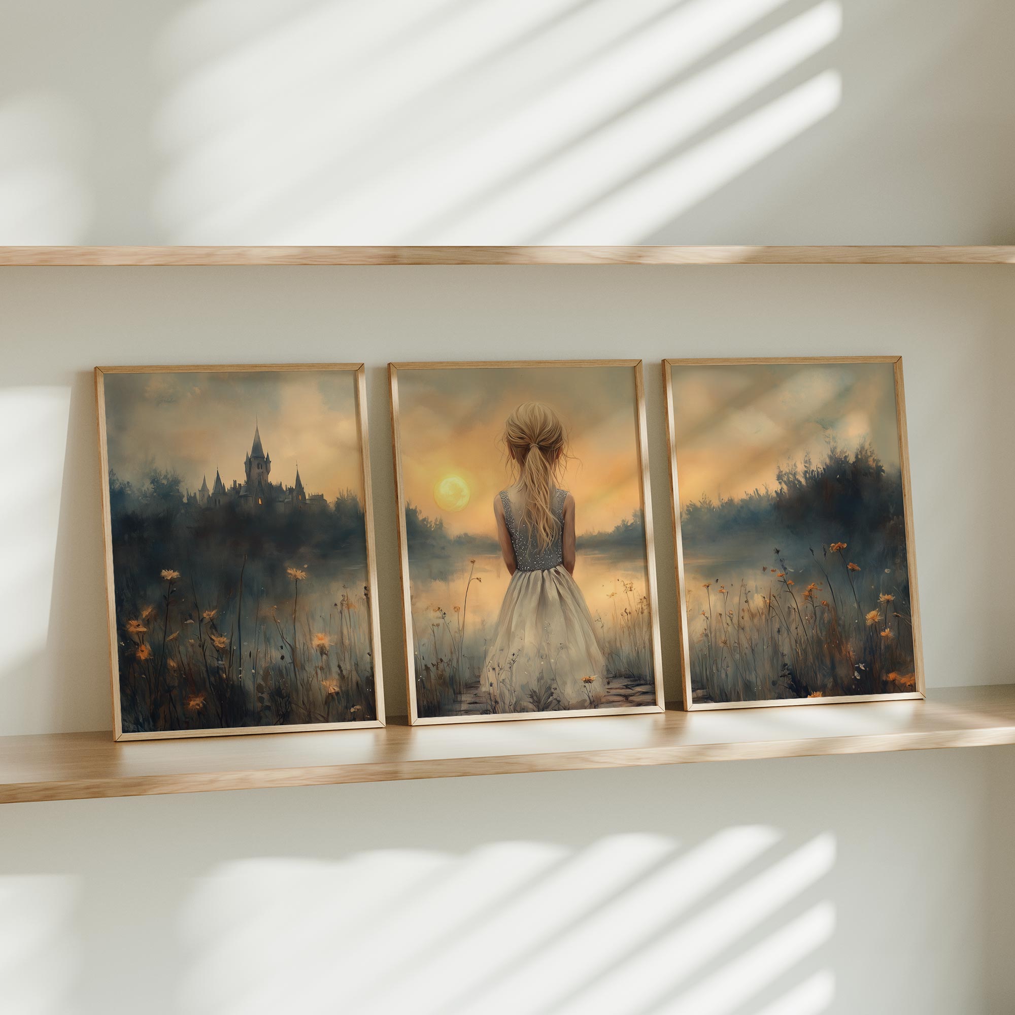 Terug naar collectie Posters Magisch Meisje bij Zonsondergang en Kasteel