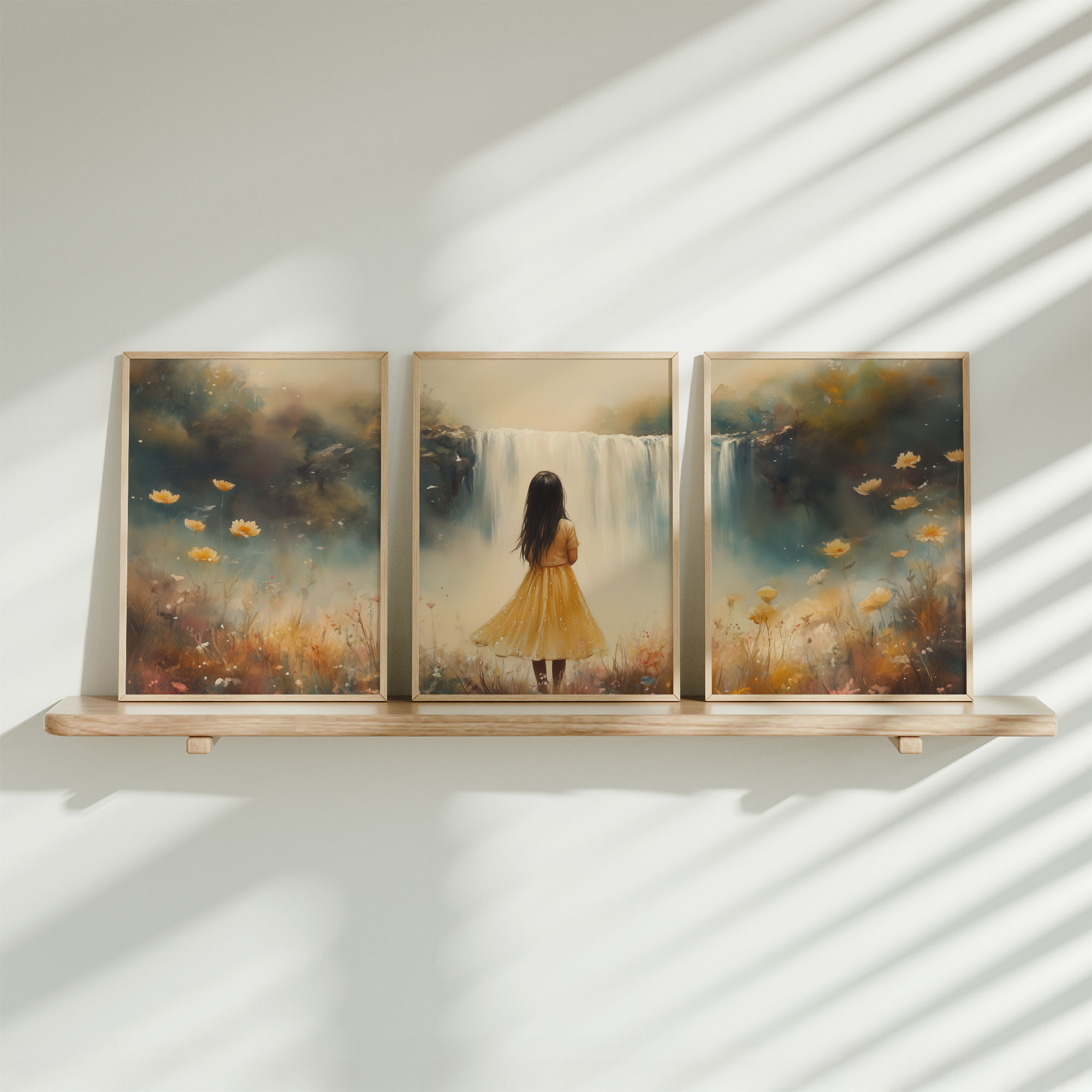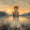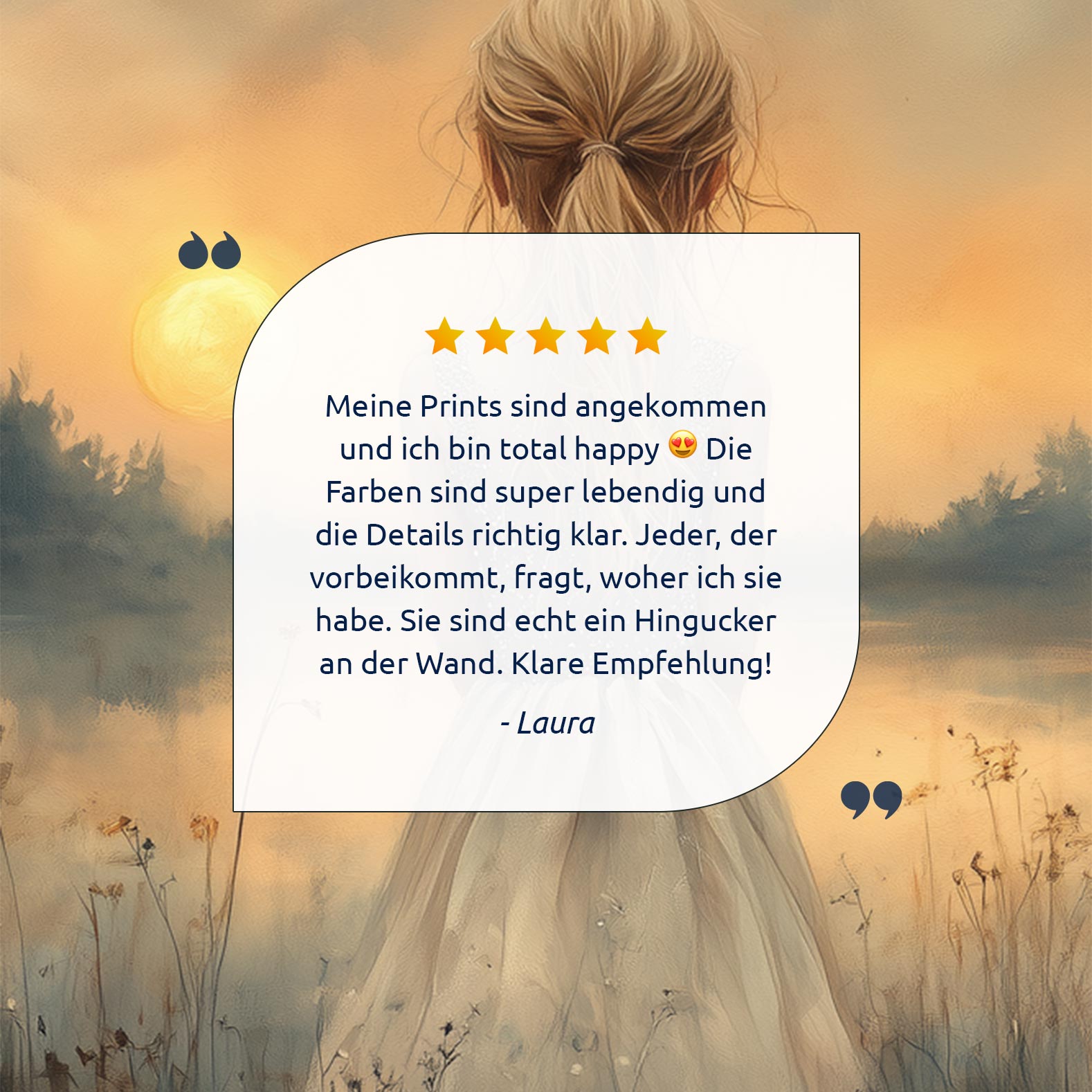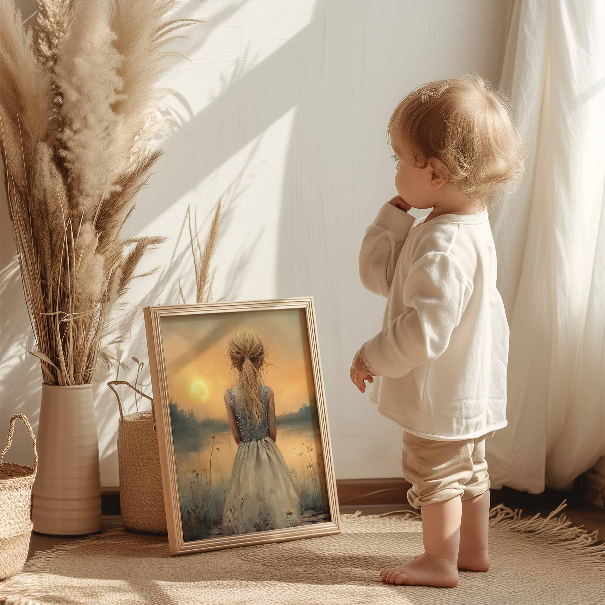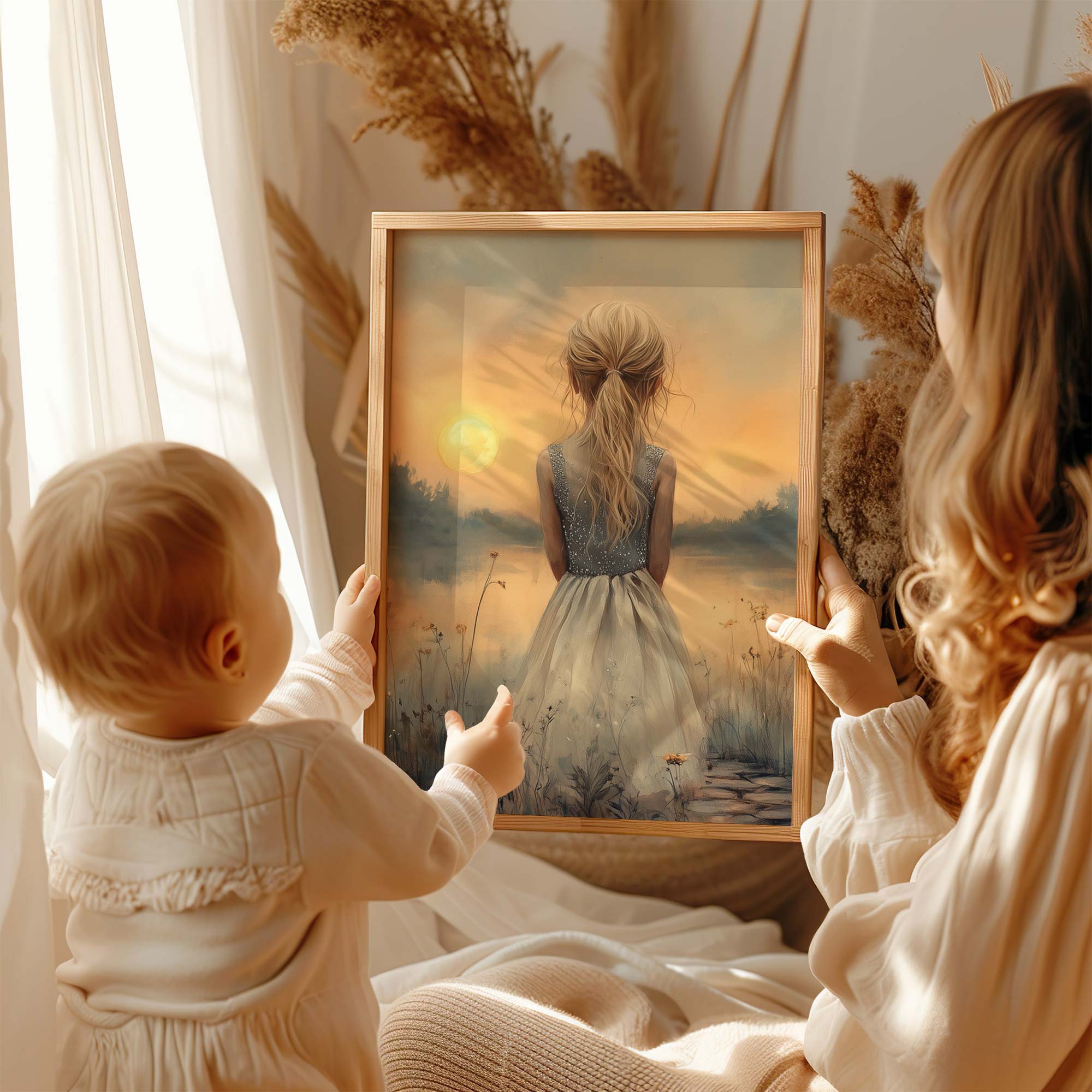 Terug naar collectie Posters Magisch Meisje bij Zonsondergang en Kasteel