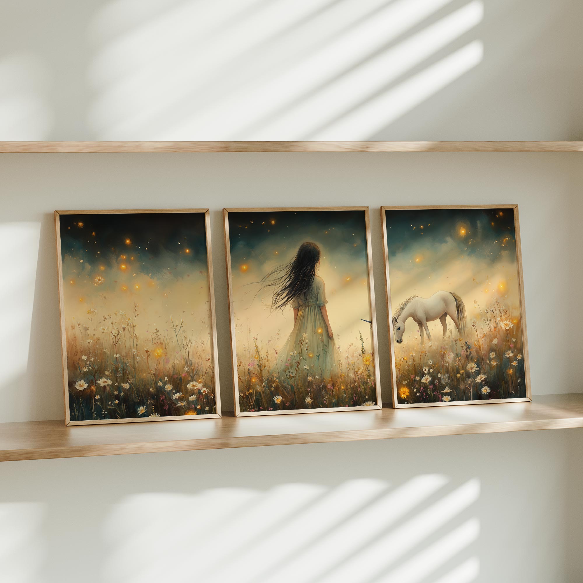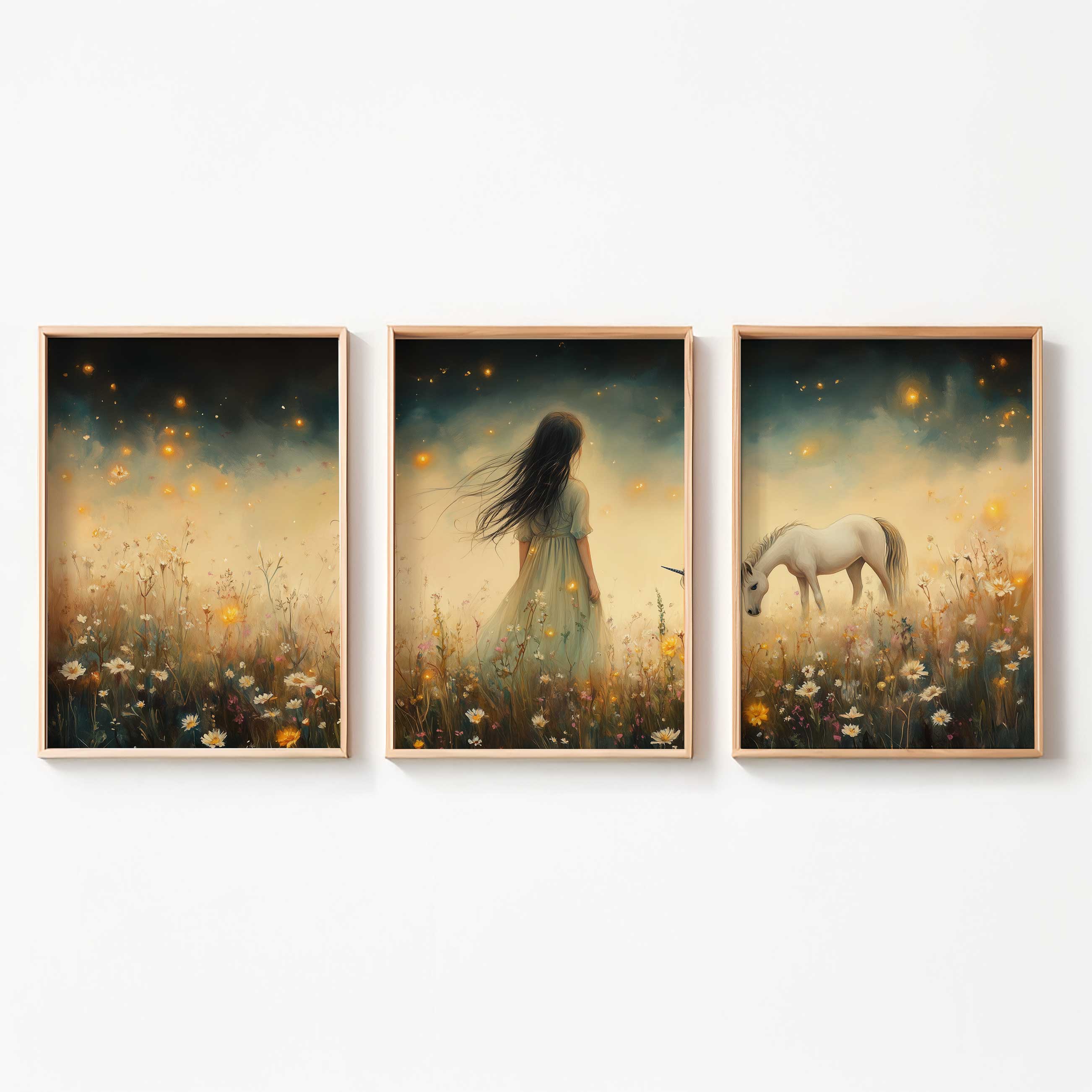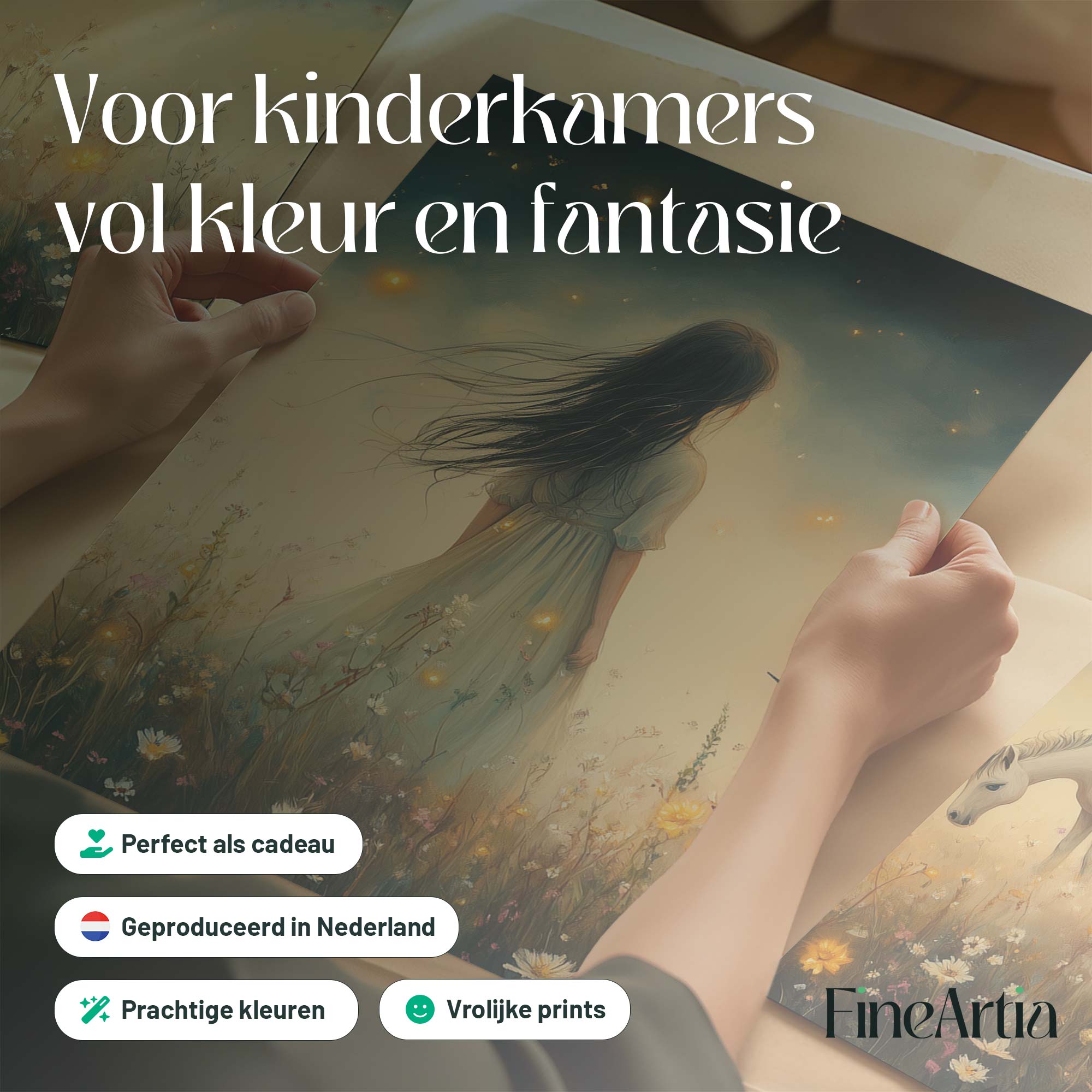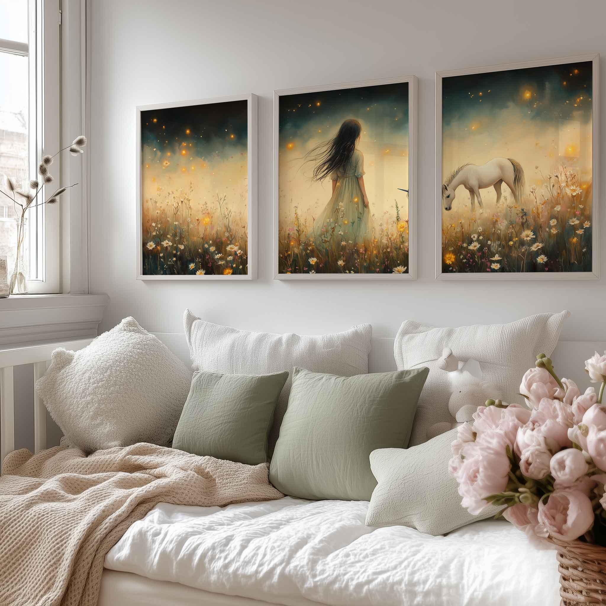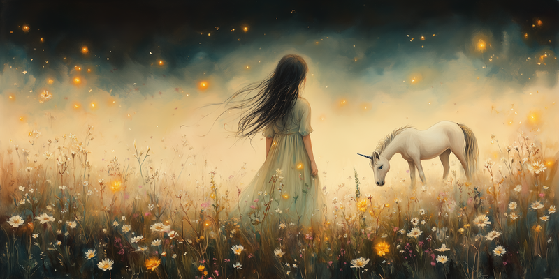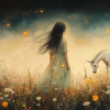 Magisch Meisje en Eenhoorn in Bloemenveld