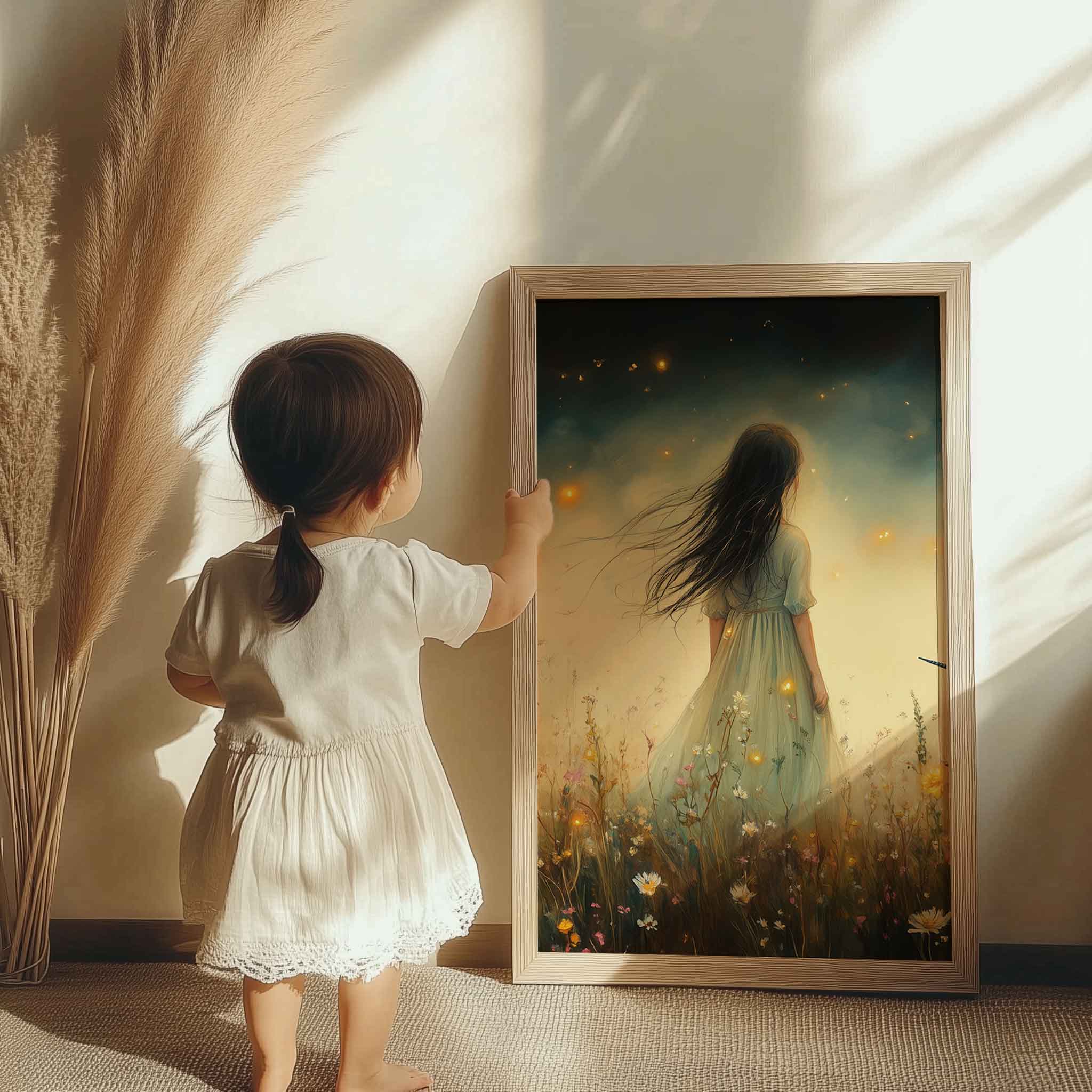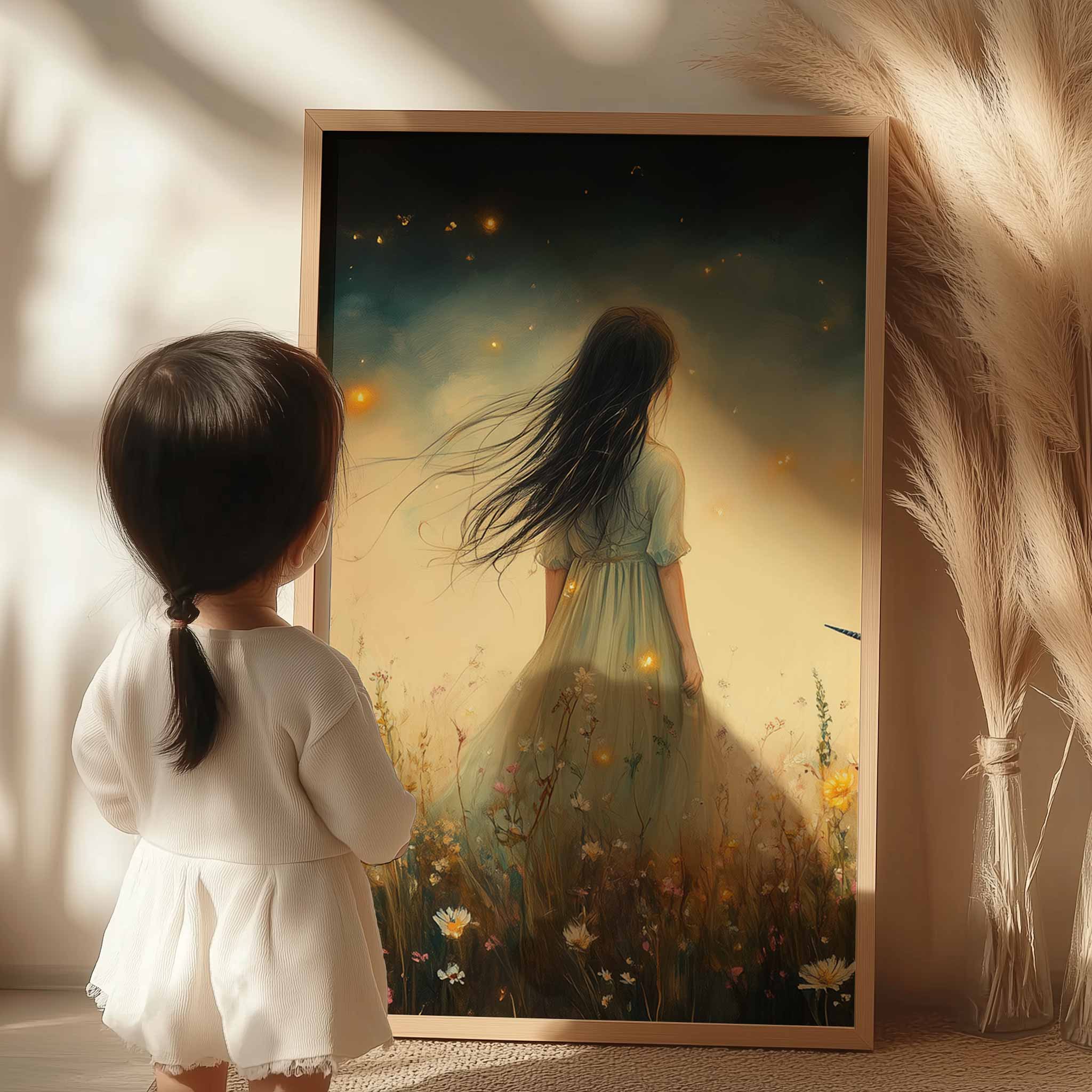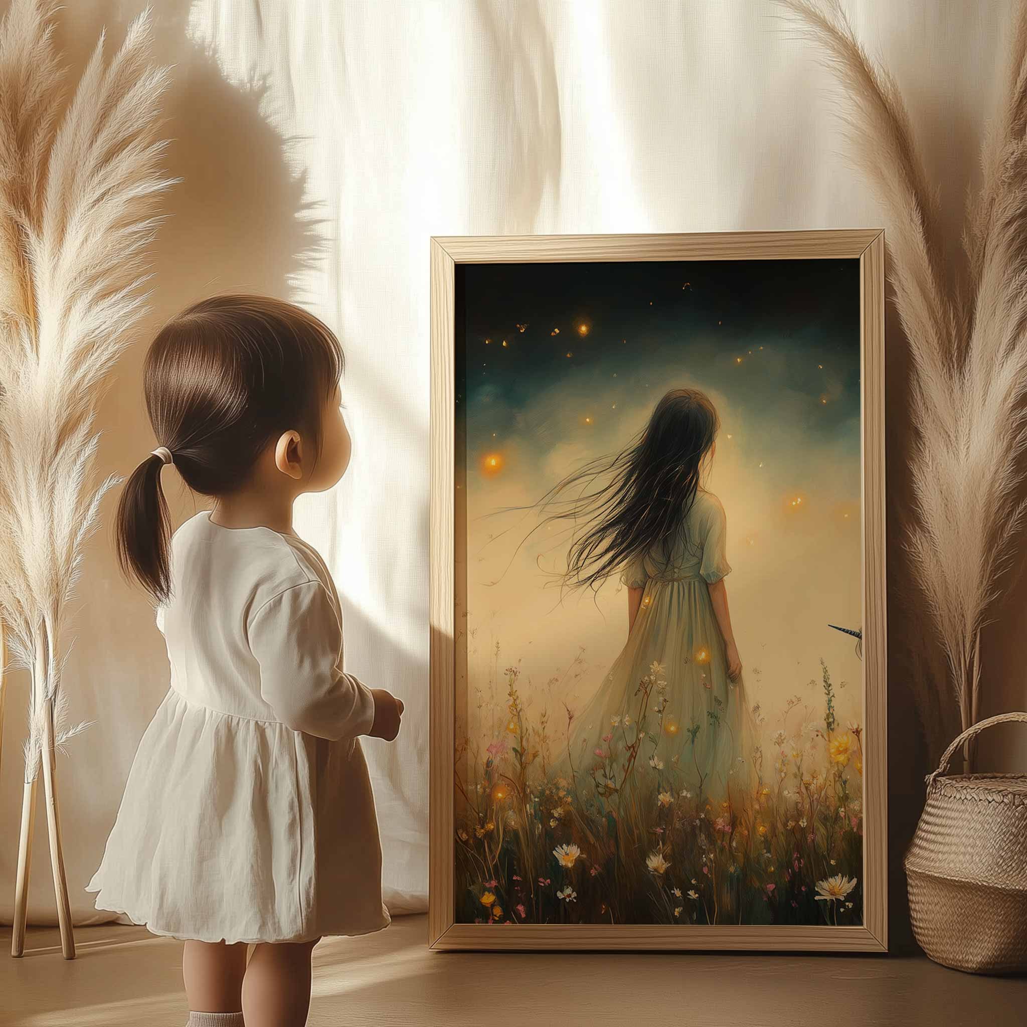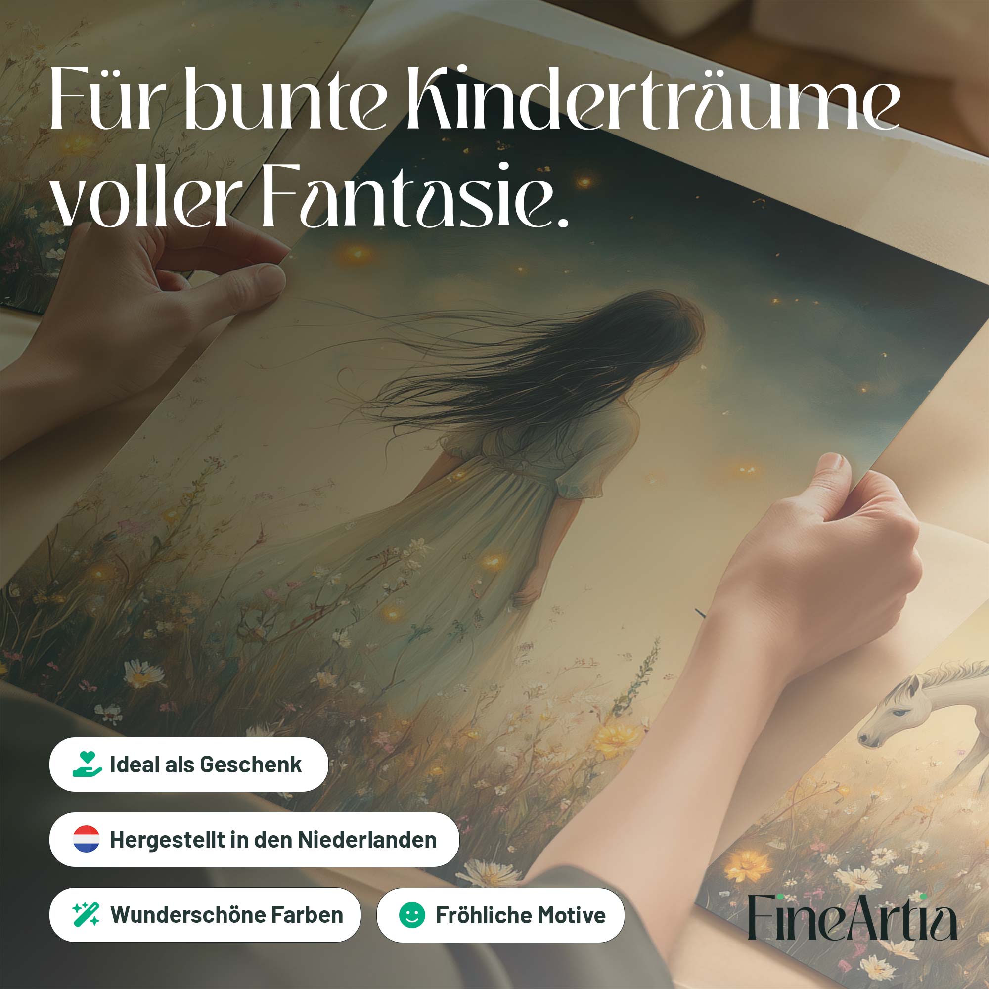 Magisch Meisje en Eenhoorn in Bloemenveld