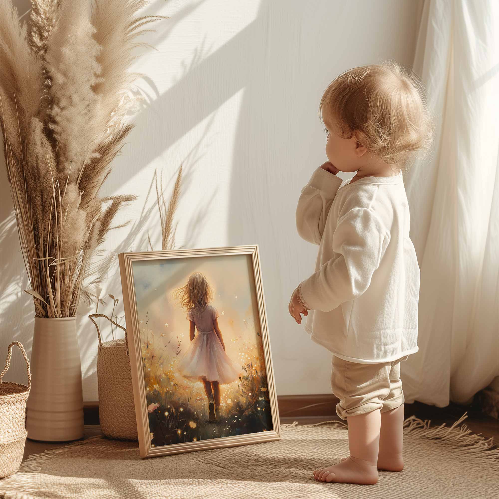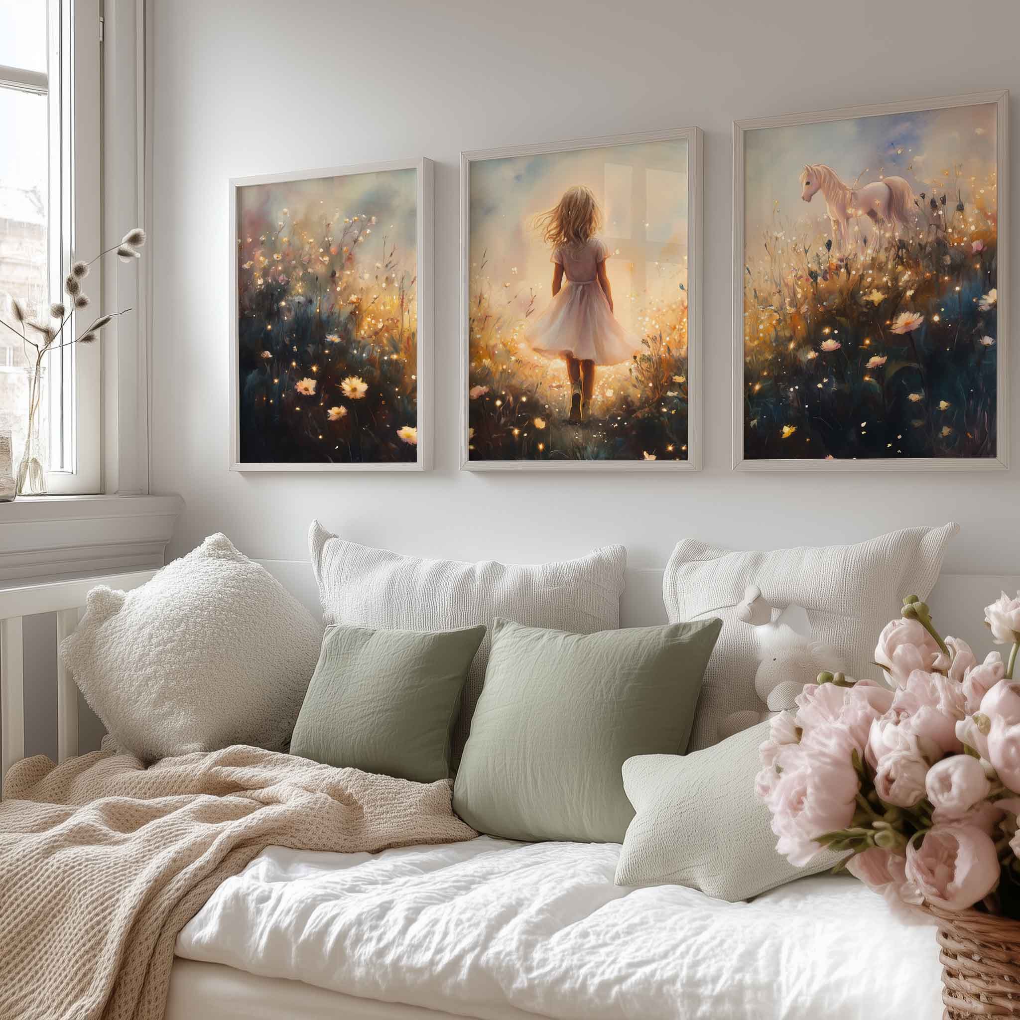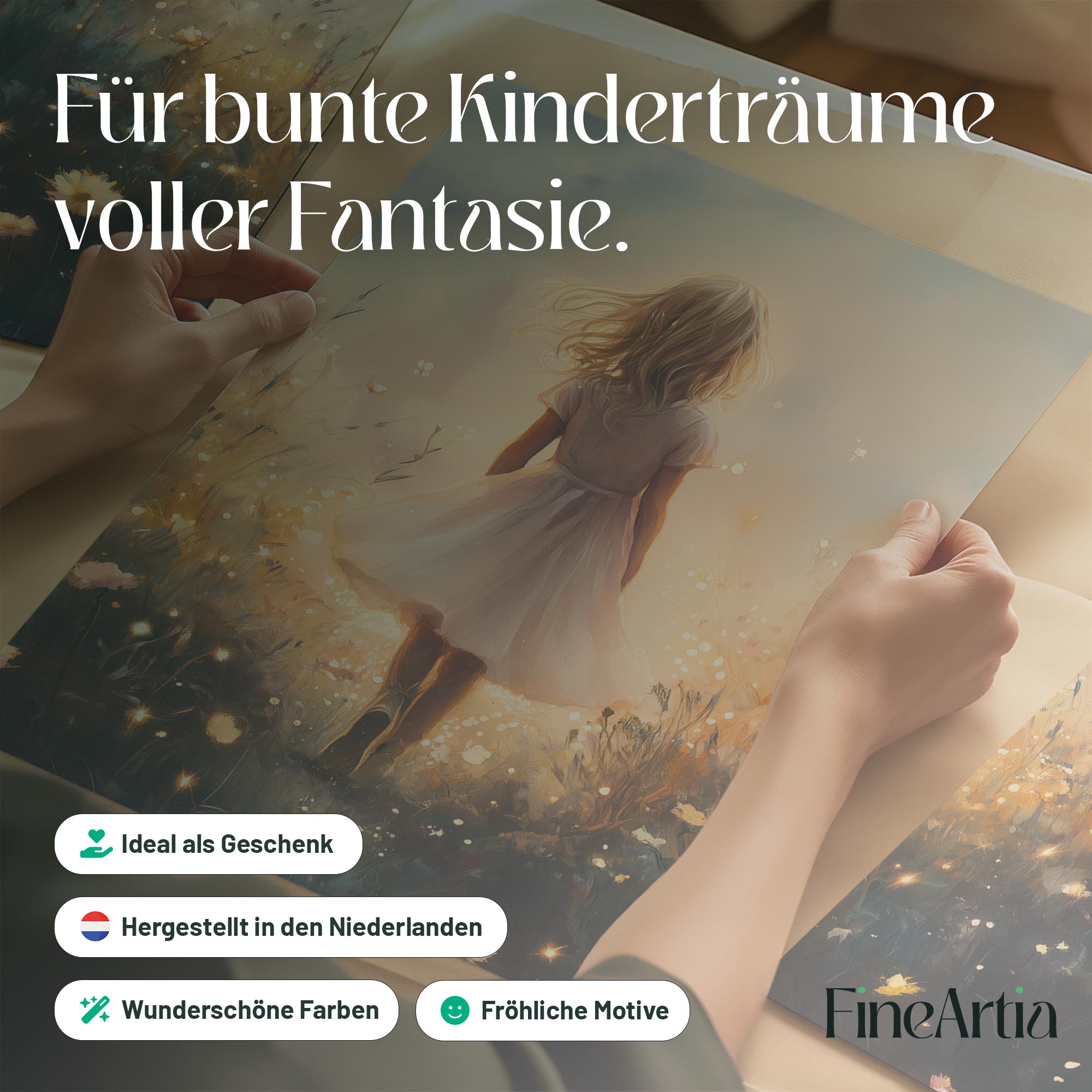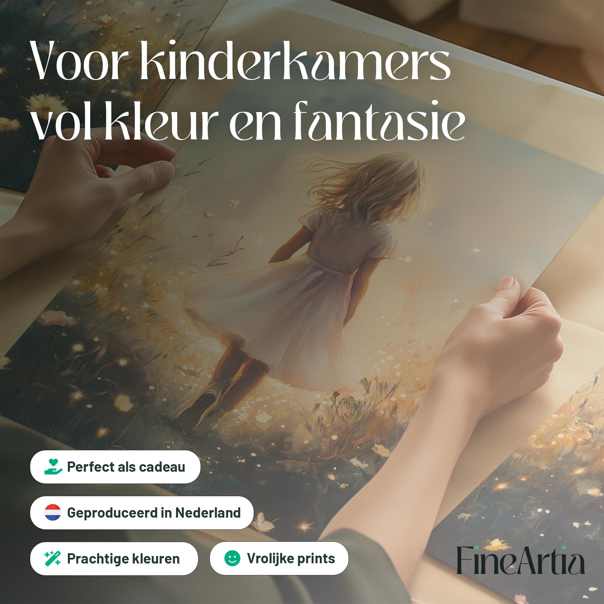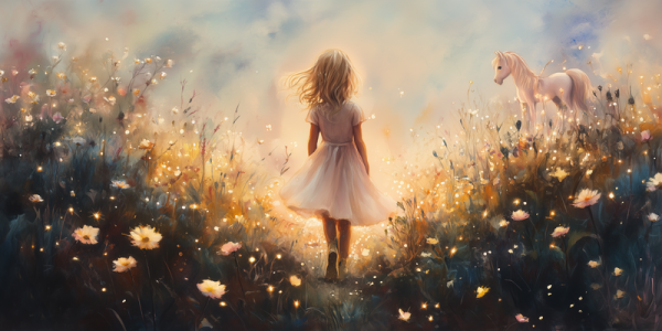 Magisch Meisje en Eenhoorn in Dromerig Bloemenveld