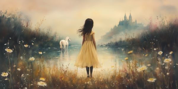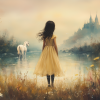 Magisch Meisje en Eenhoorn in Dromerig Landschap