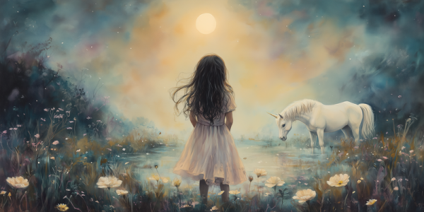 Magisch Meisje en Eenhoorn in Dromerig Landschap