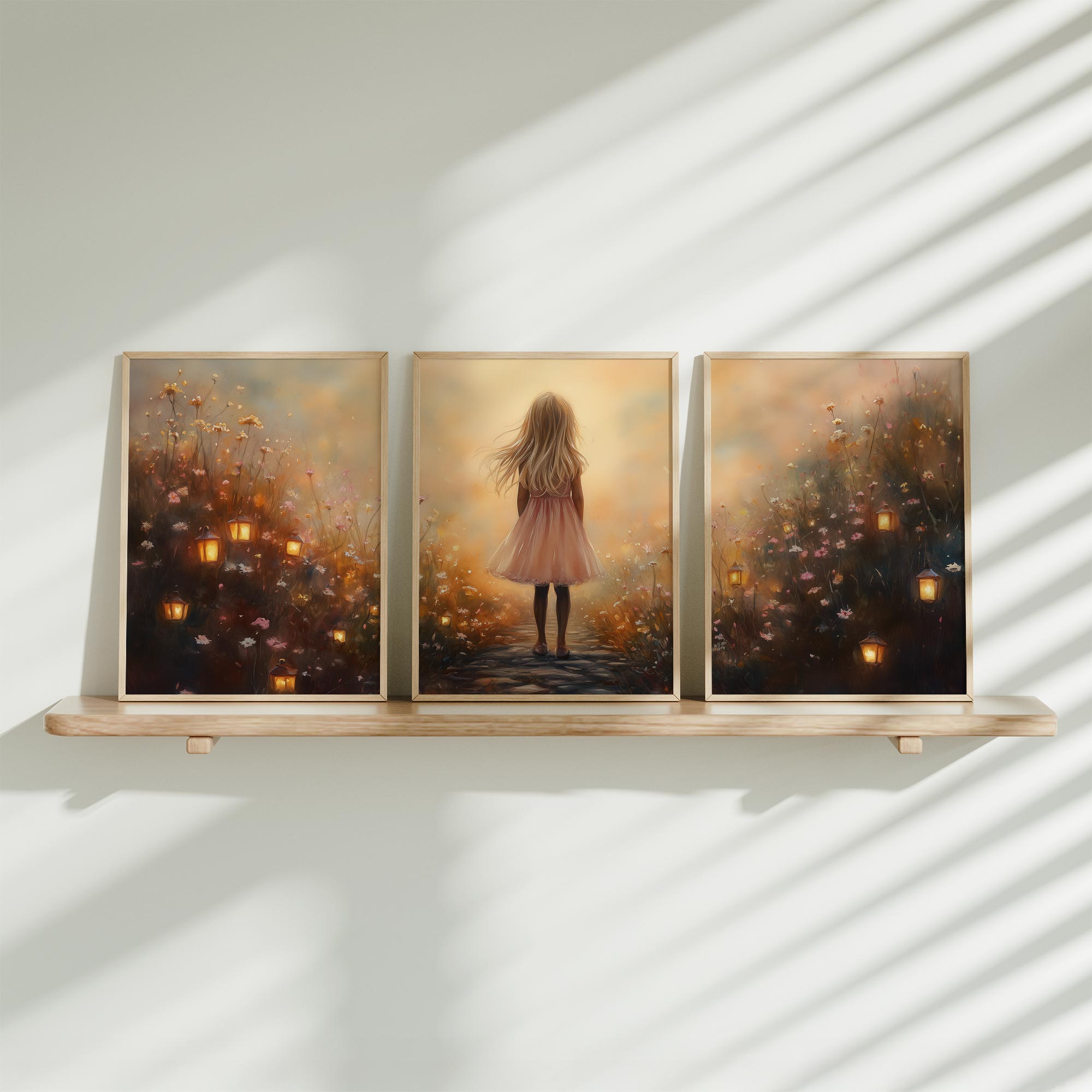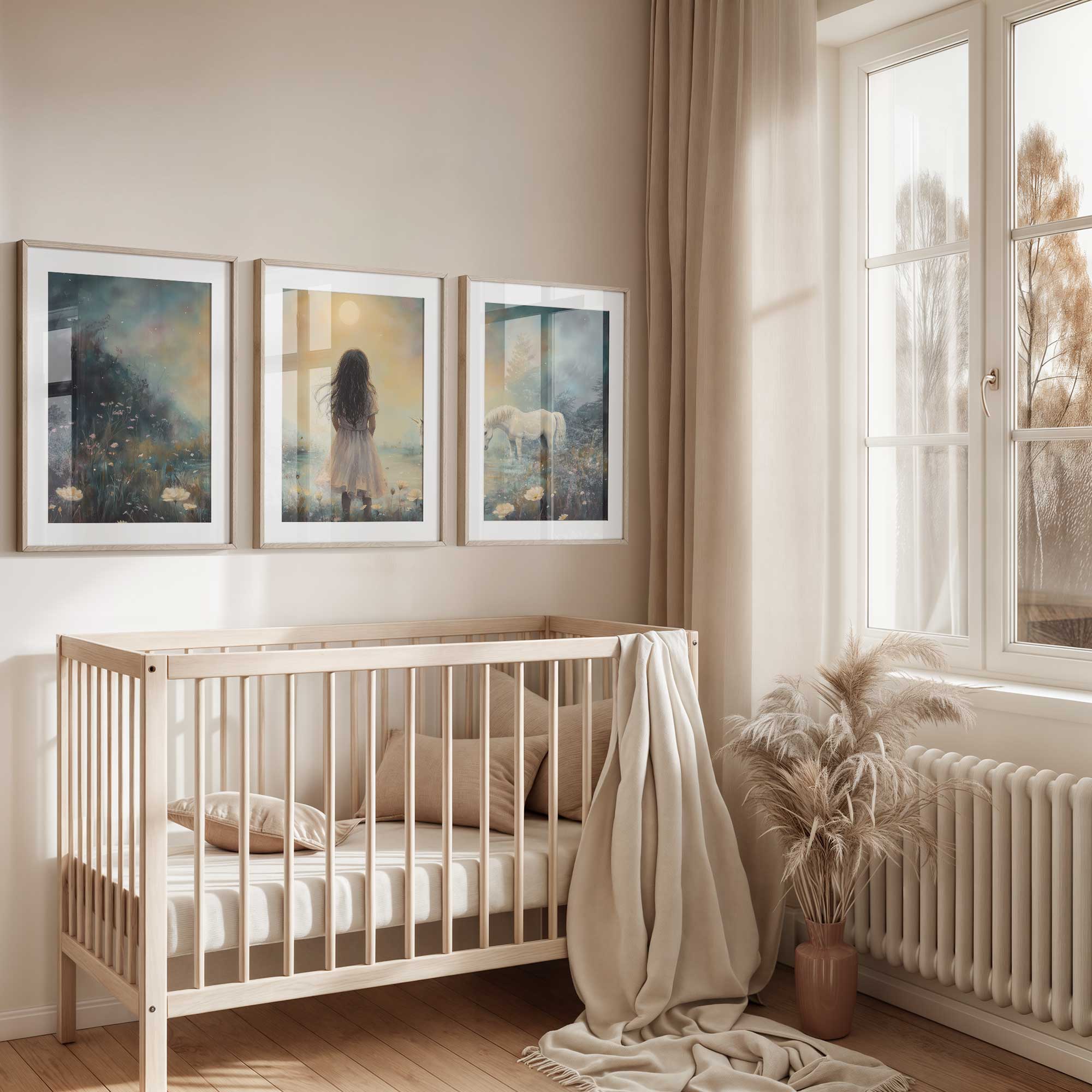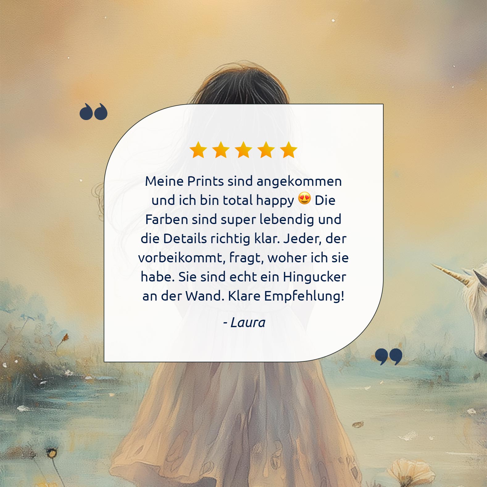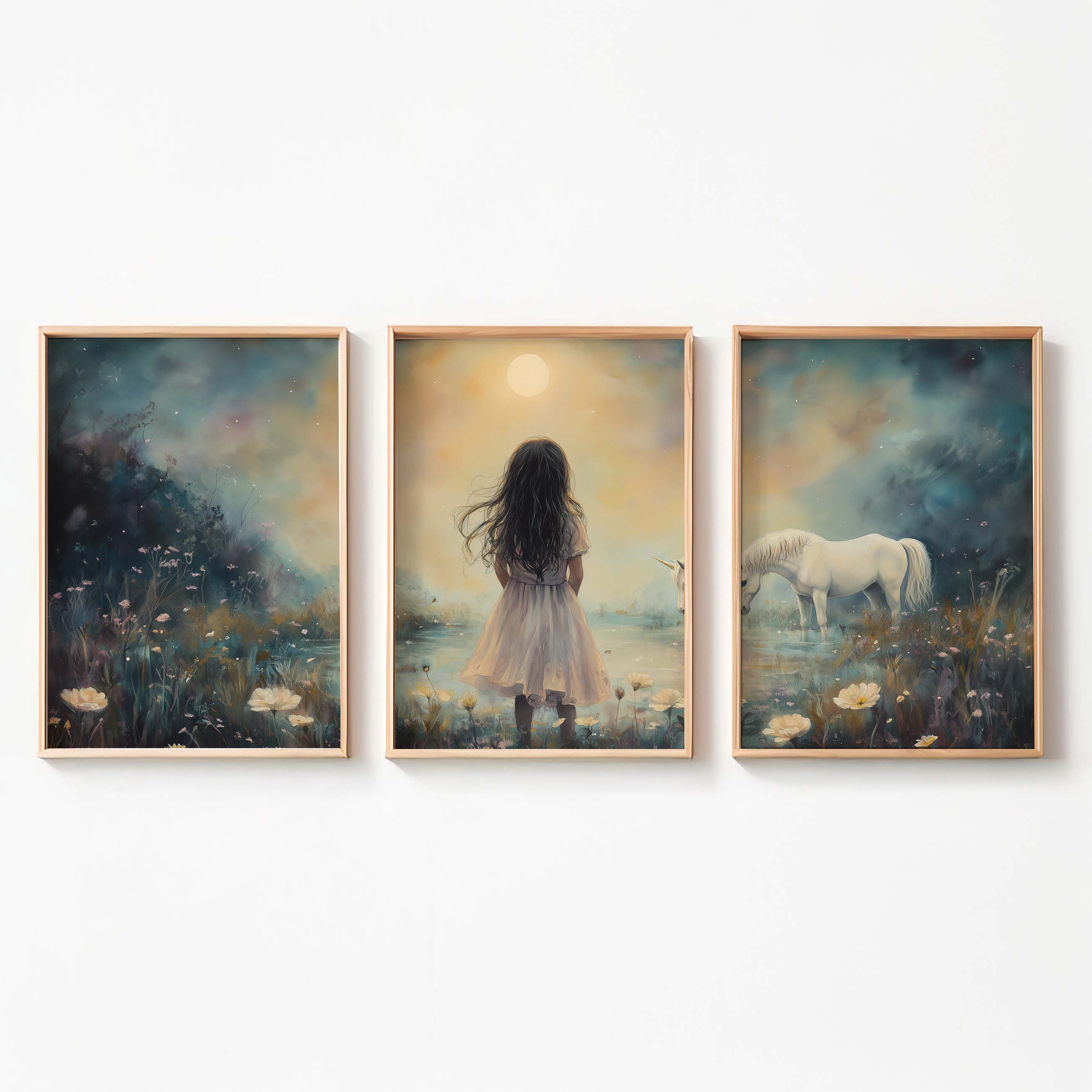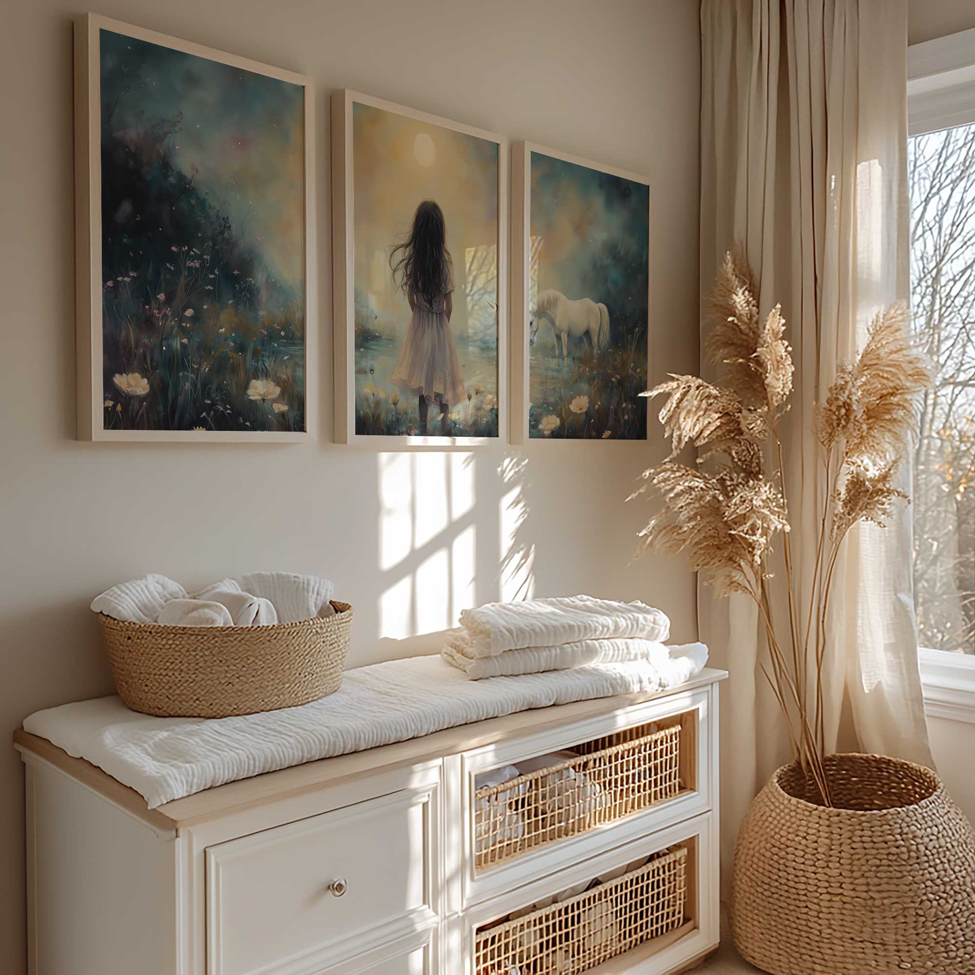 Terug naar collectie Posters Magisch Meisje en Eenhoorn in Dromerig Landschap