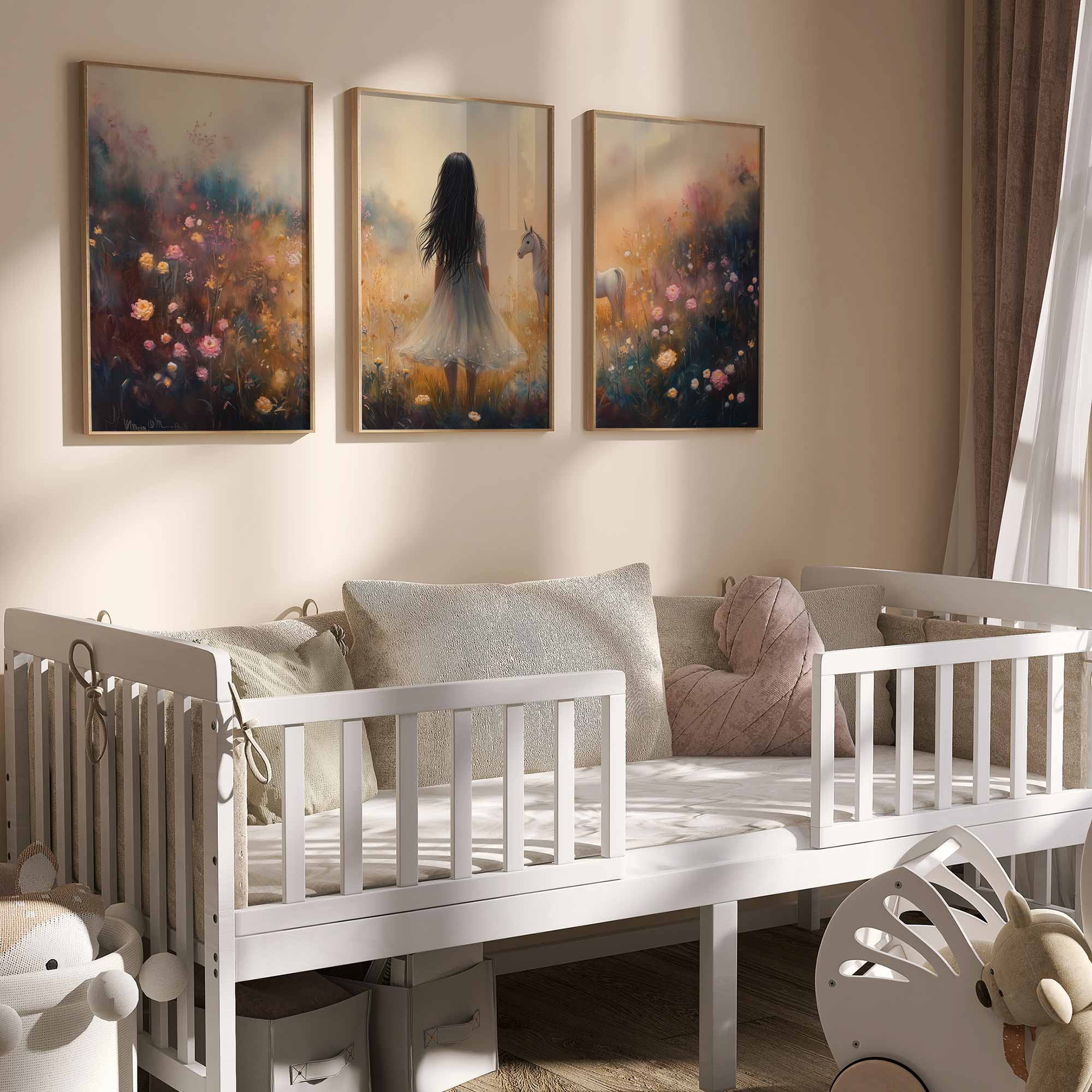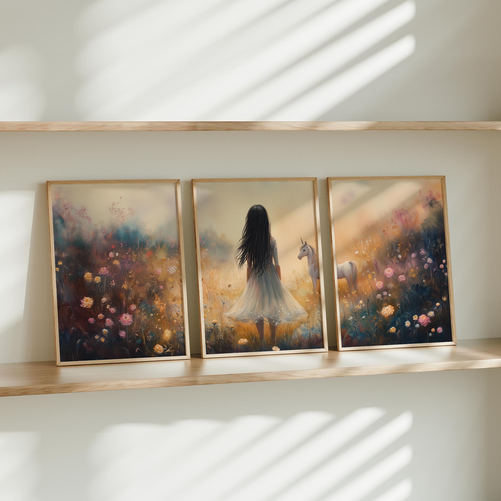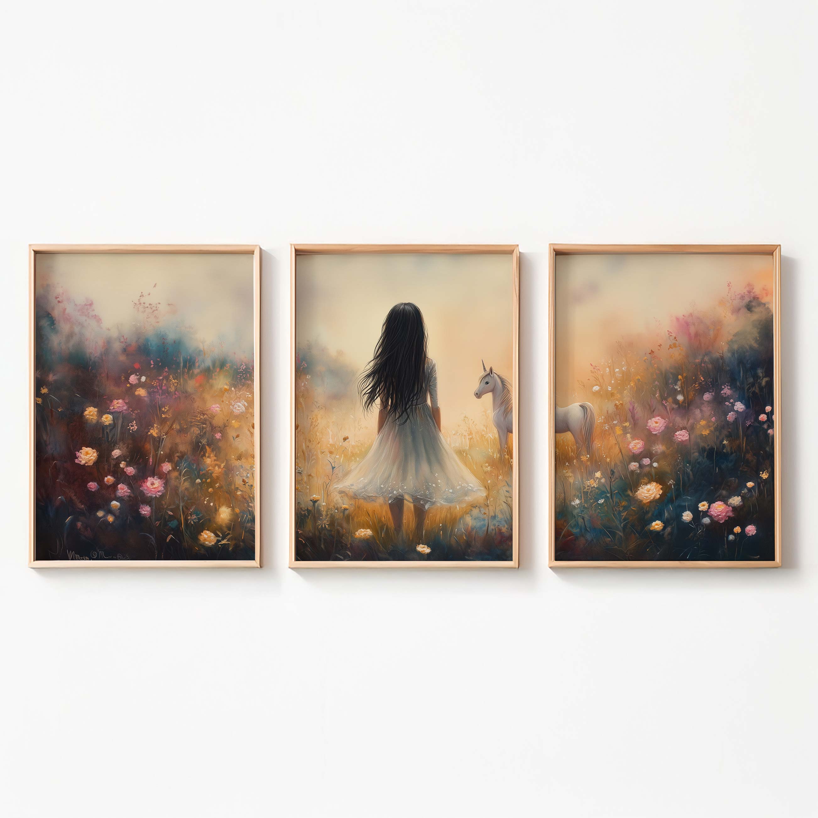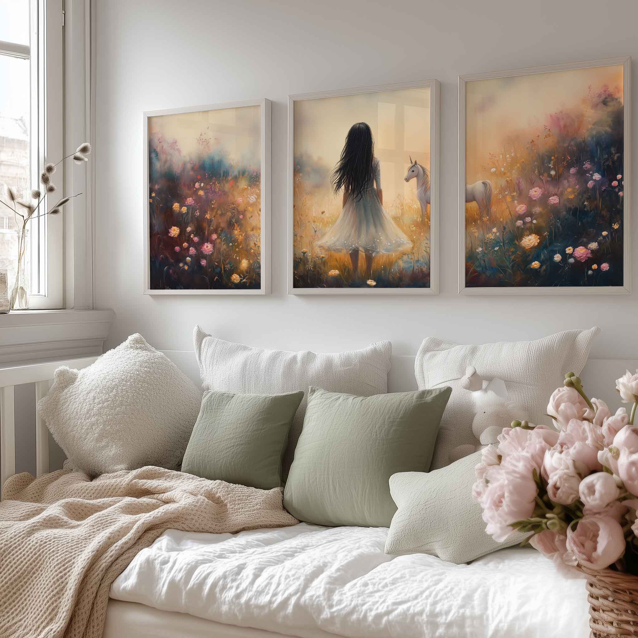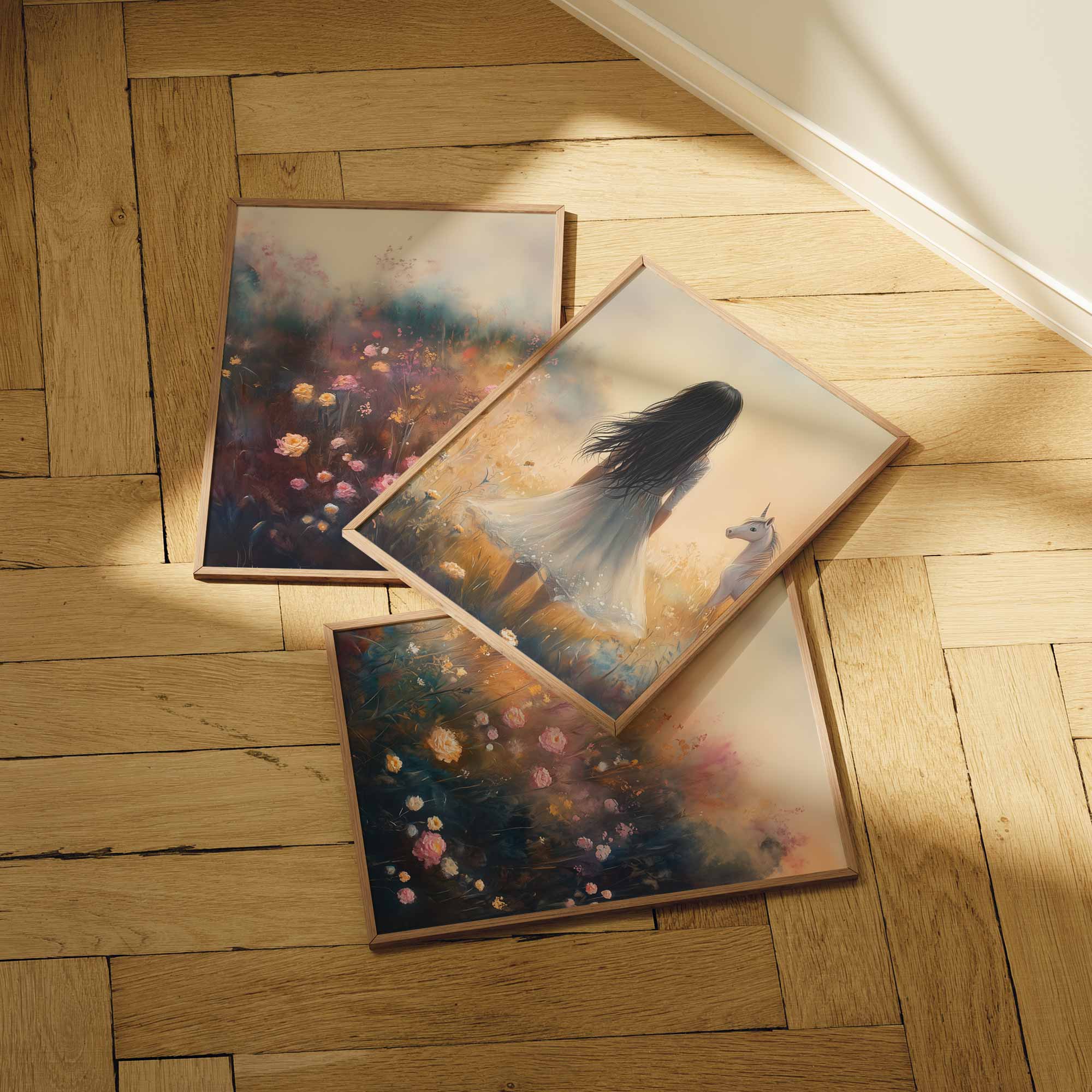 Magisch Meisje en Eenhoorn in Pastel Bloemenveld