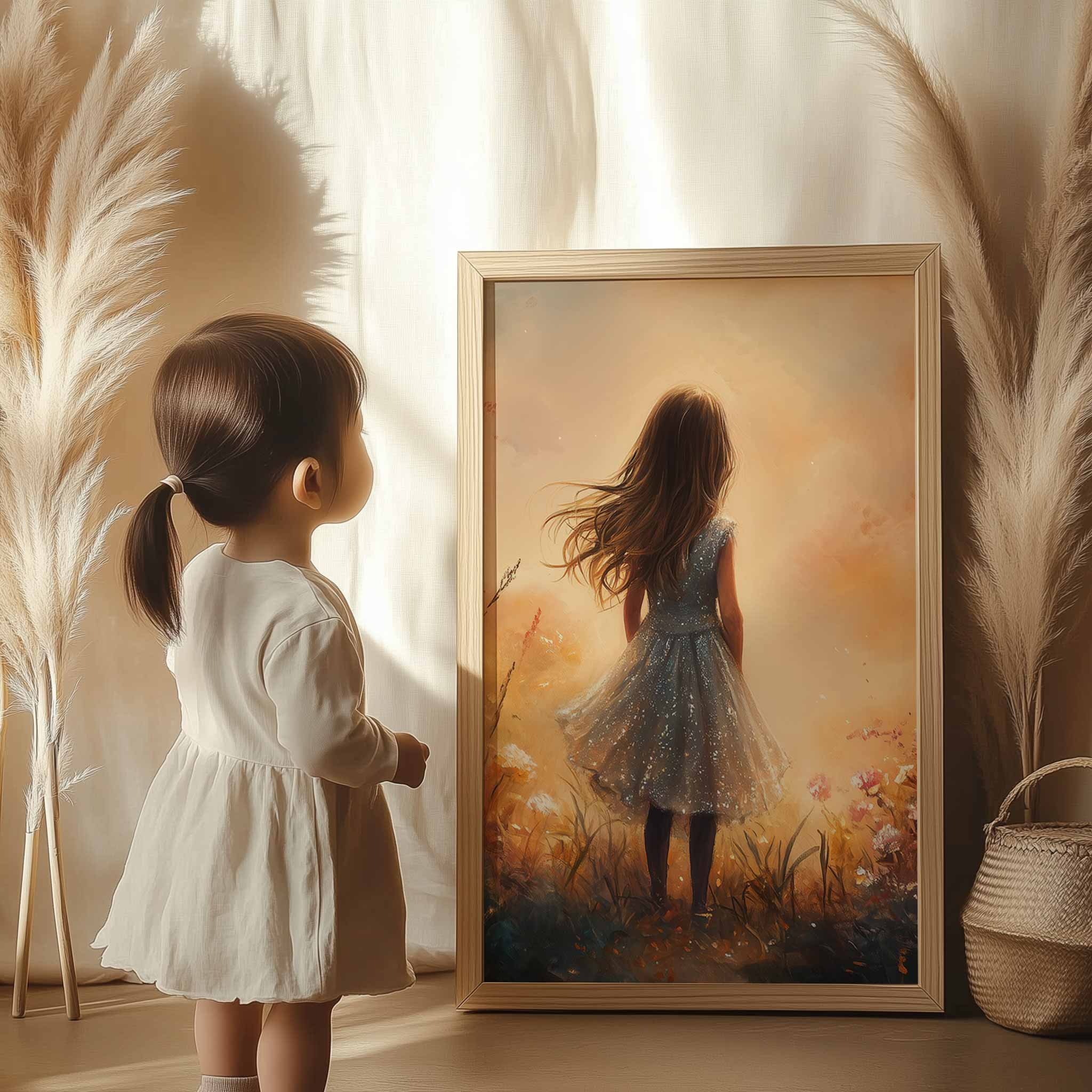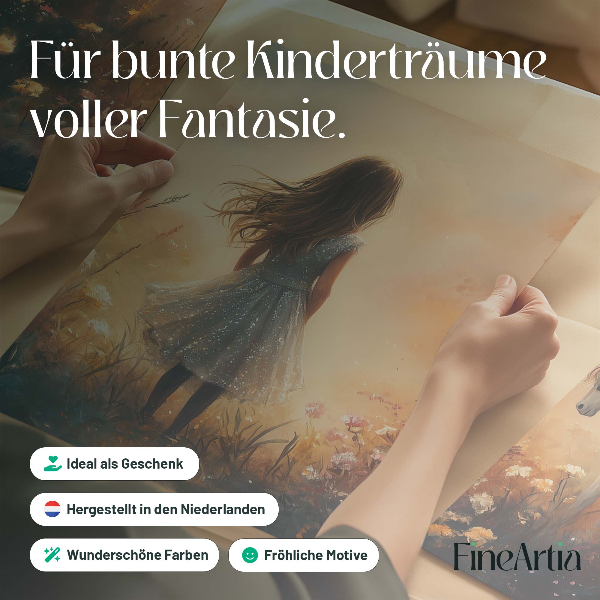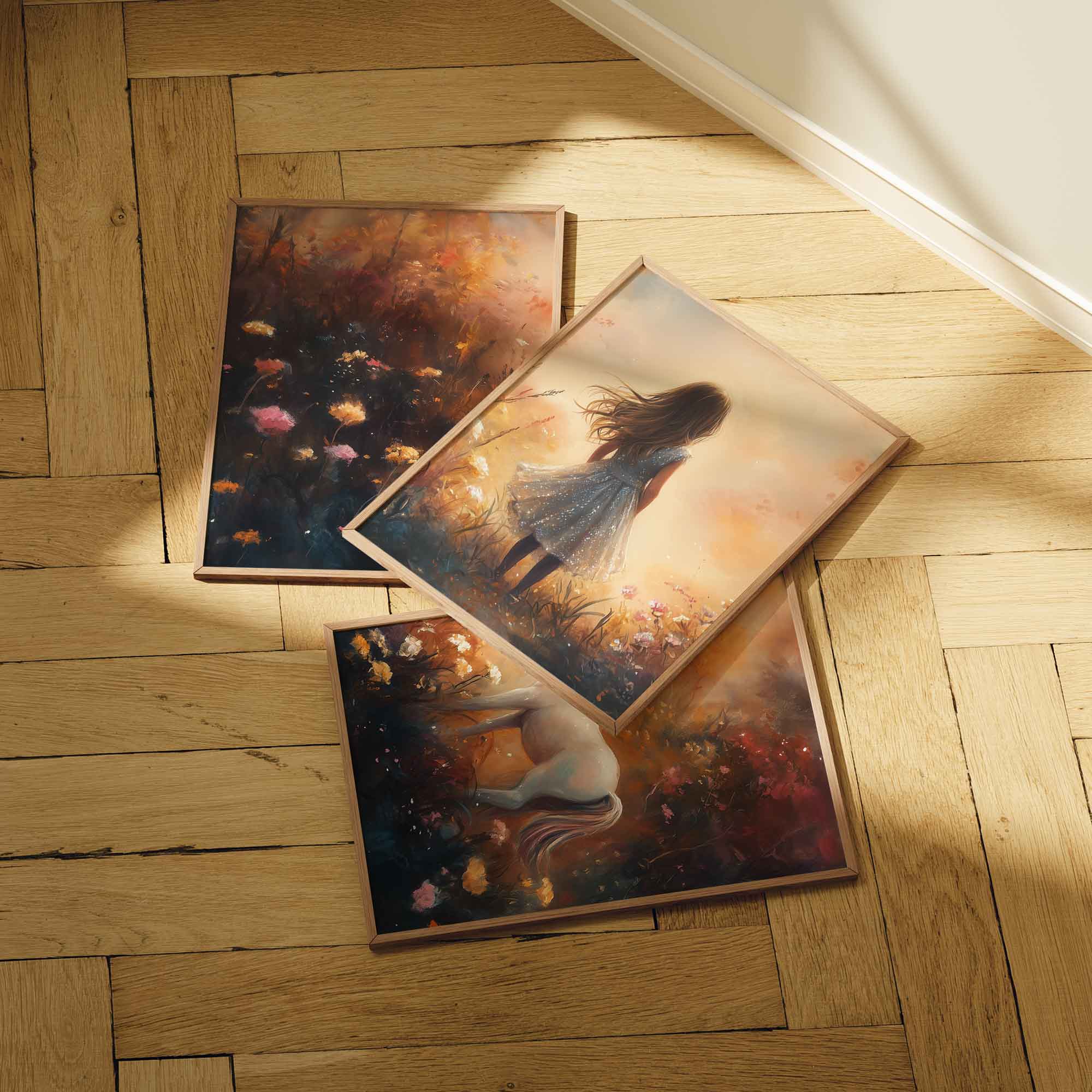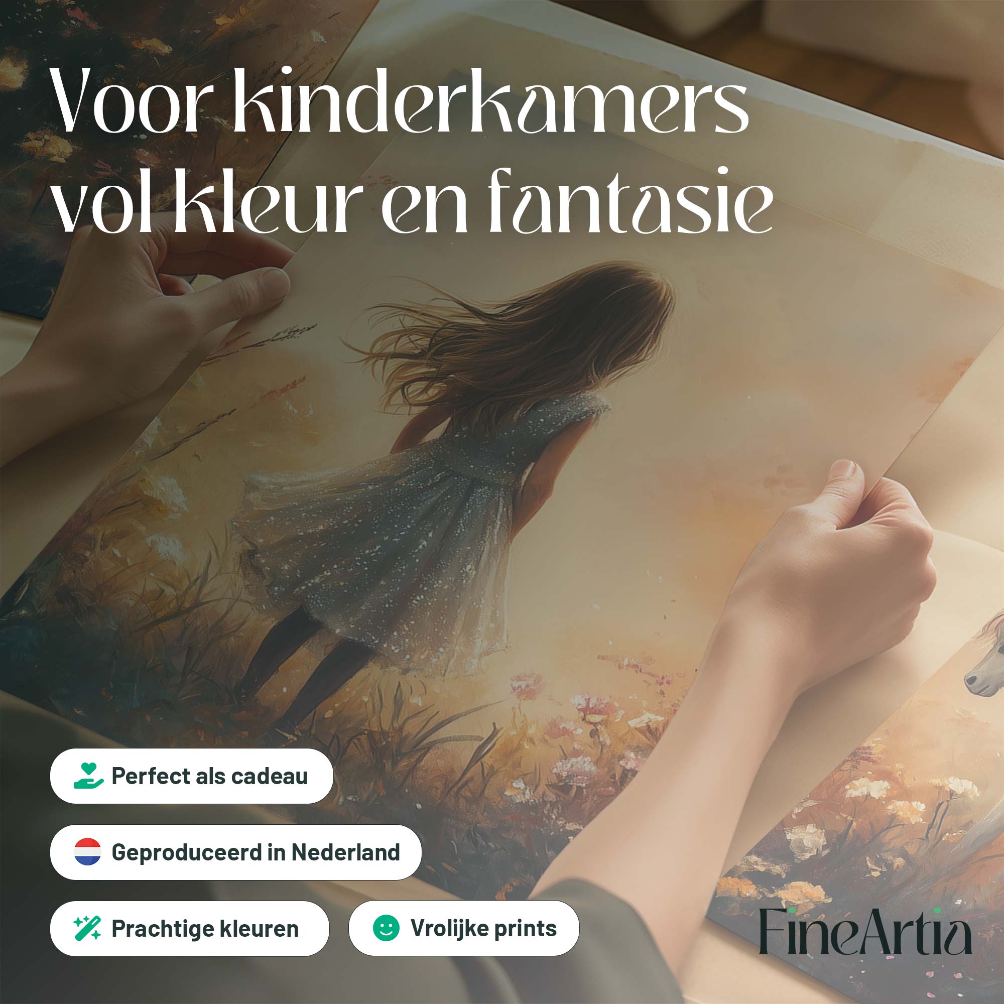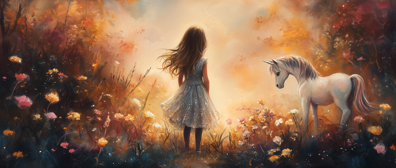 Magisch Meisje en Eenhoorn in Pastel Bloemenveld