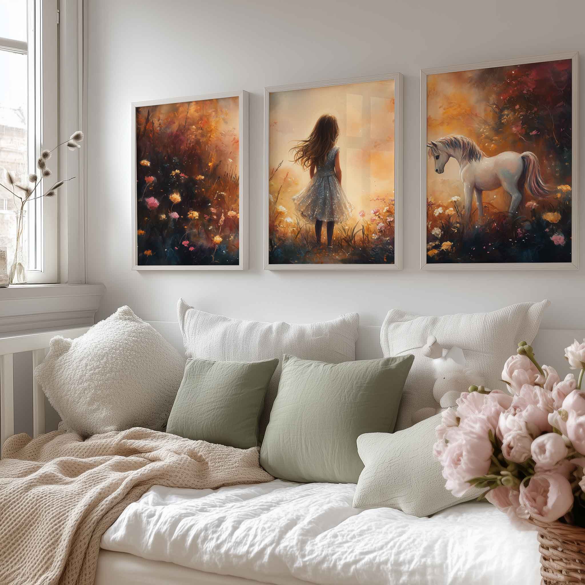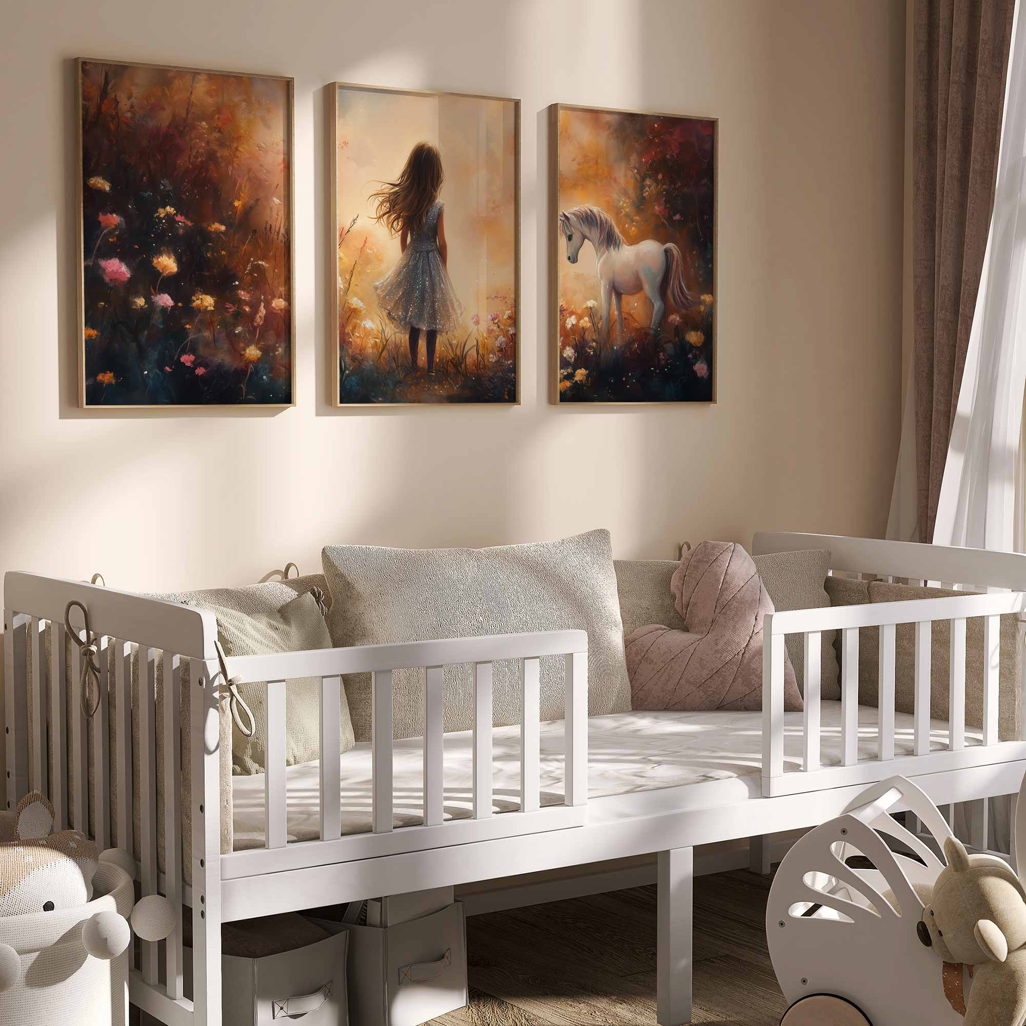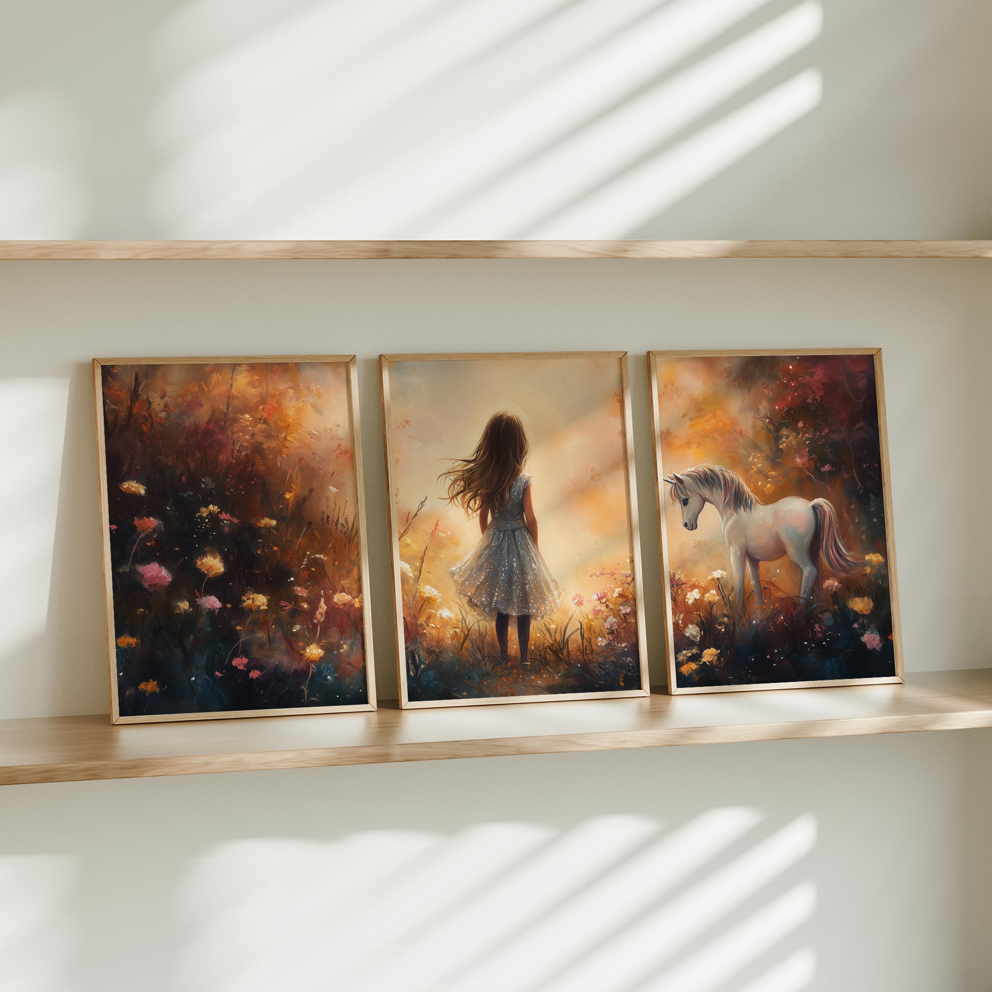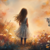 Magisch Meisje en Eenhoorn in Pastel Bloemenveld