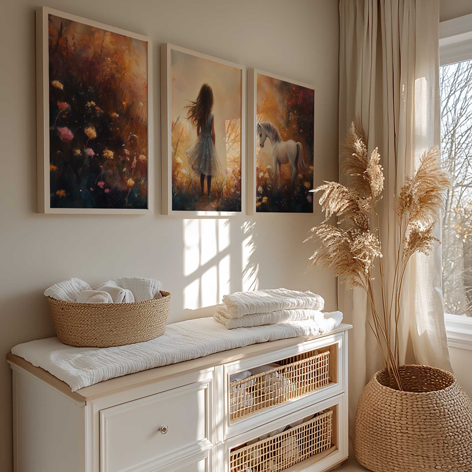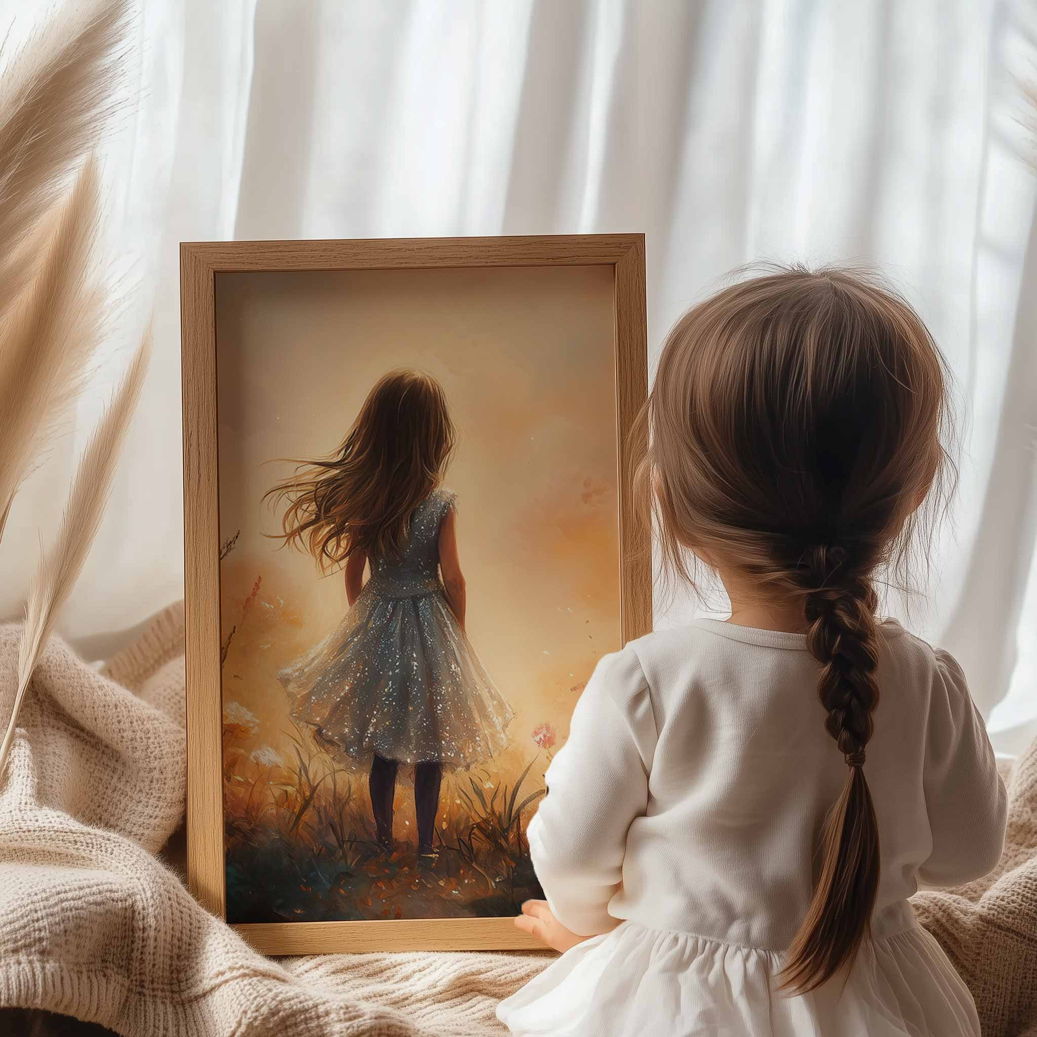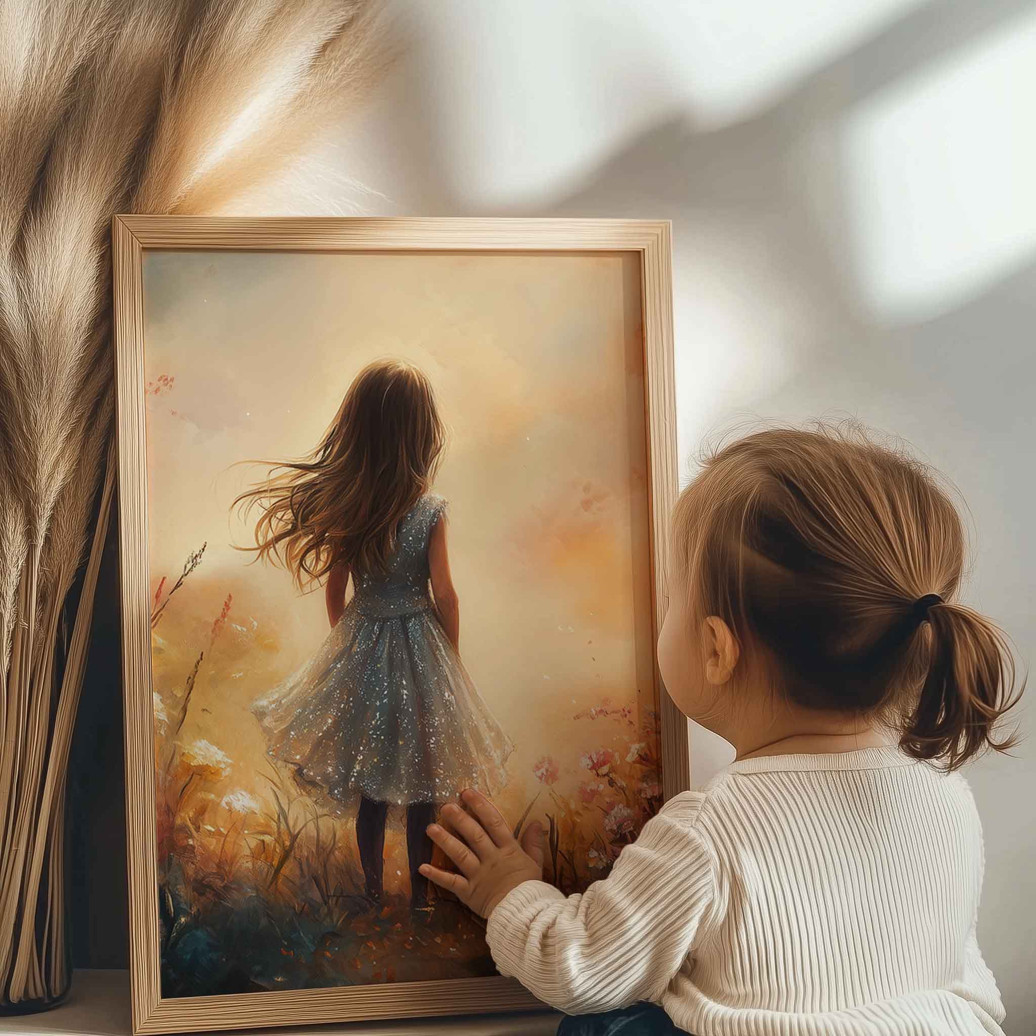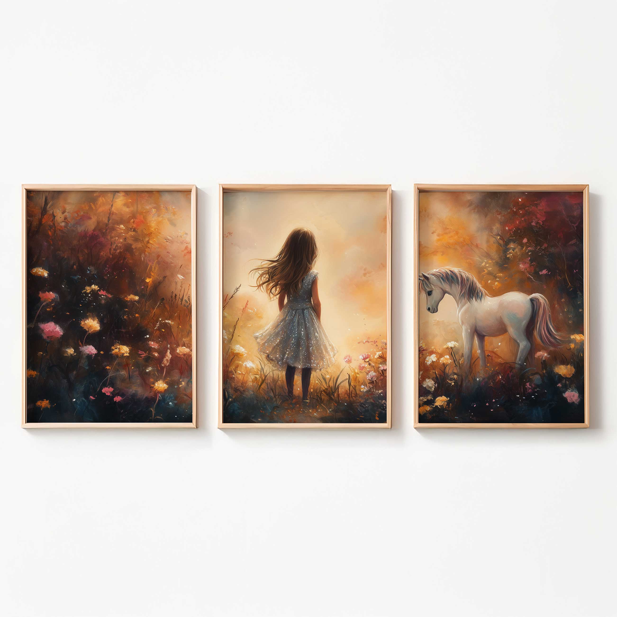 Magisch Meisje en Eenhoorn in Pastel Bloemenveld