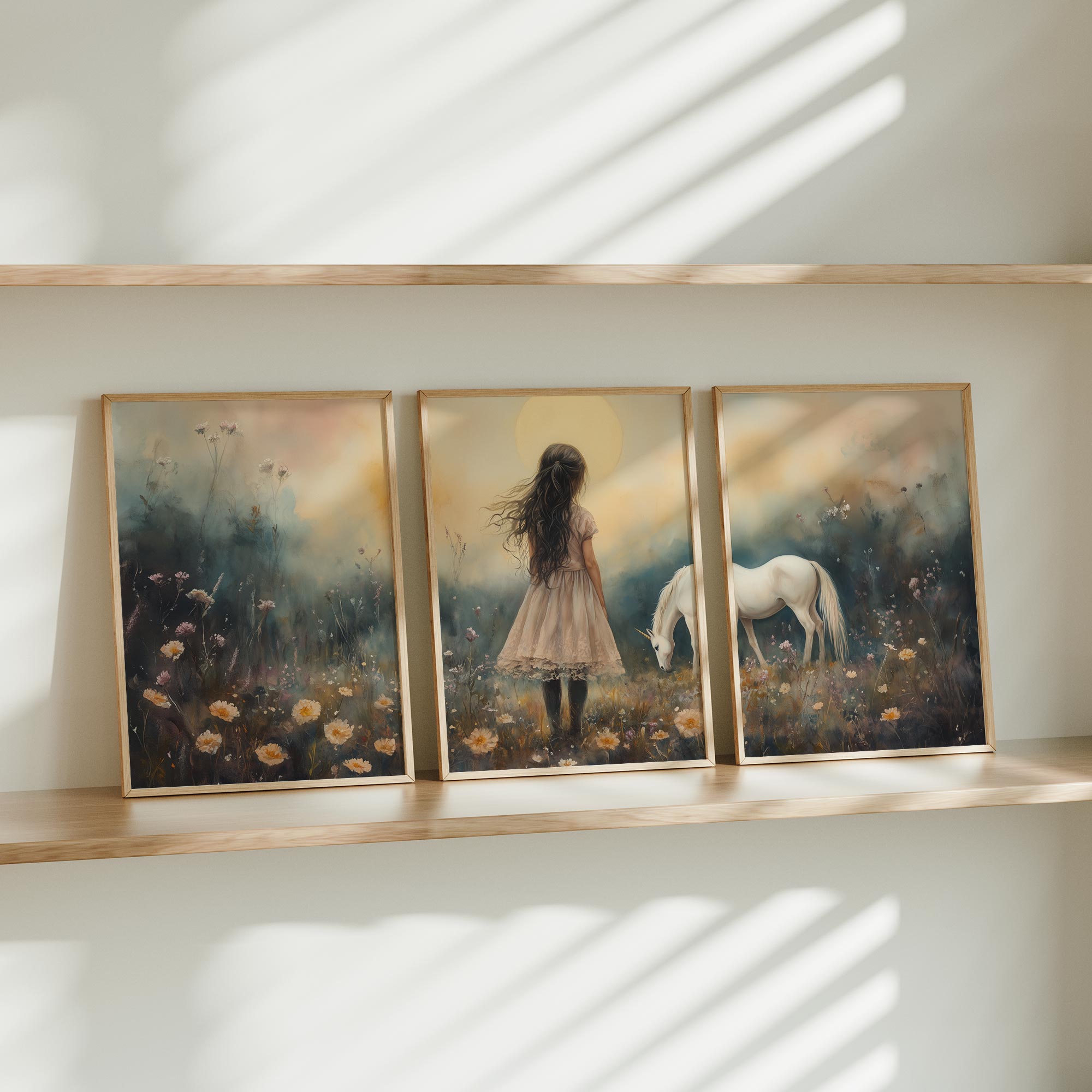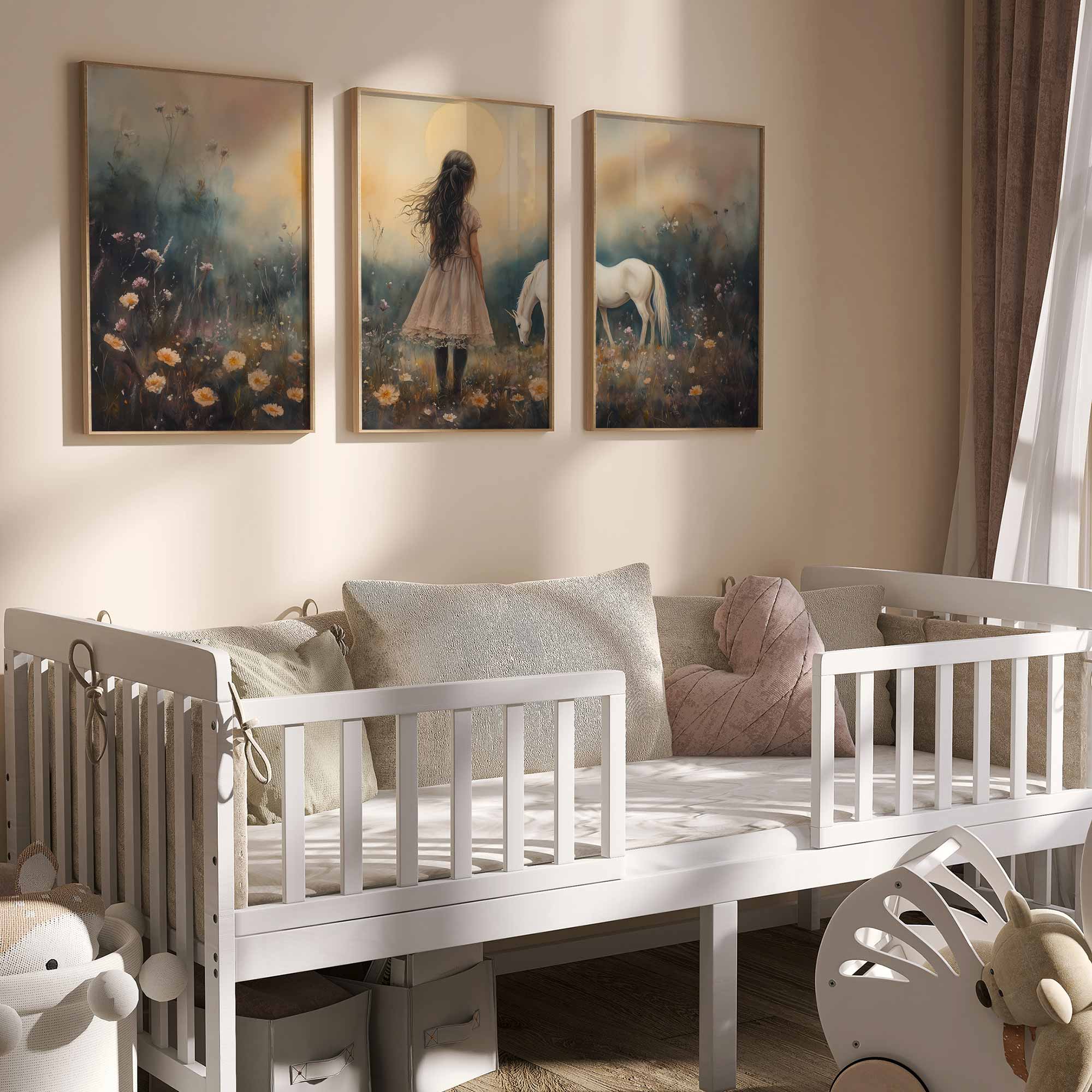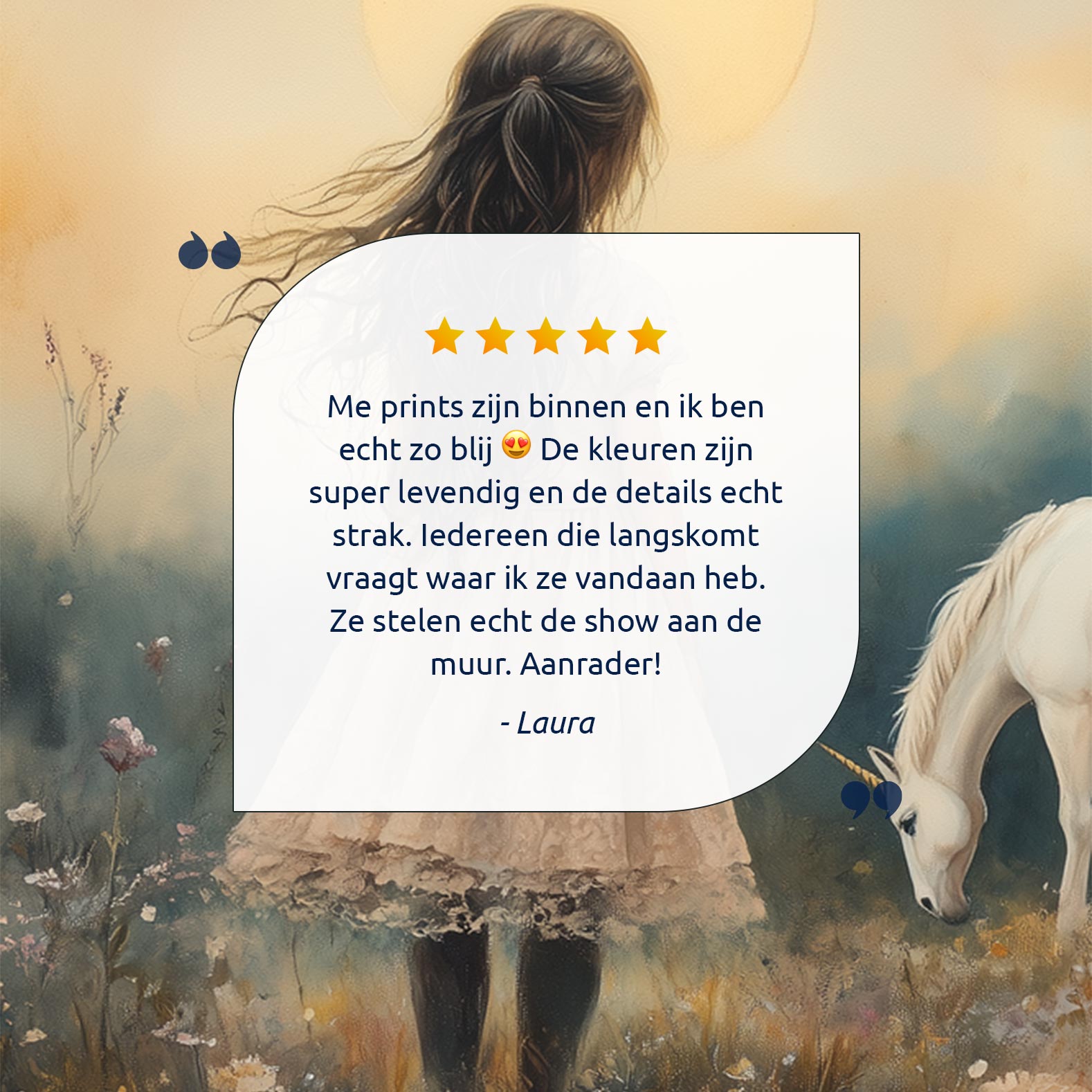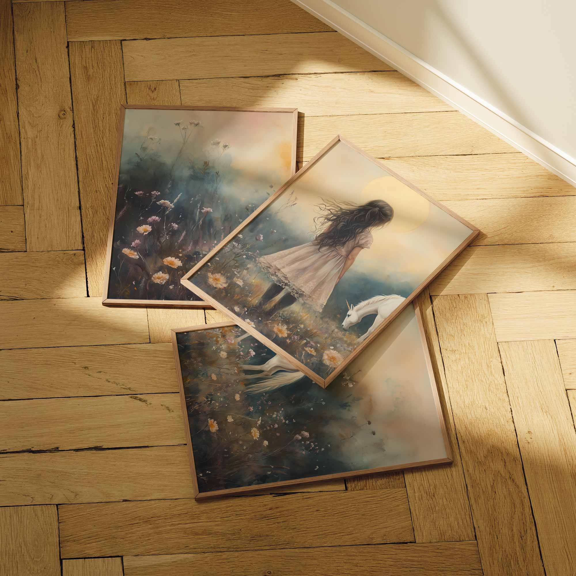 Magisch Meisje en Eenhoorn in Pastel Bloemenveld