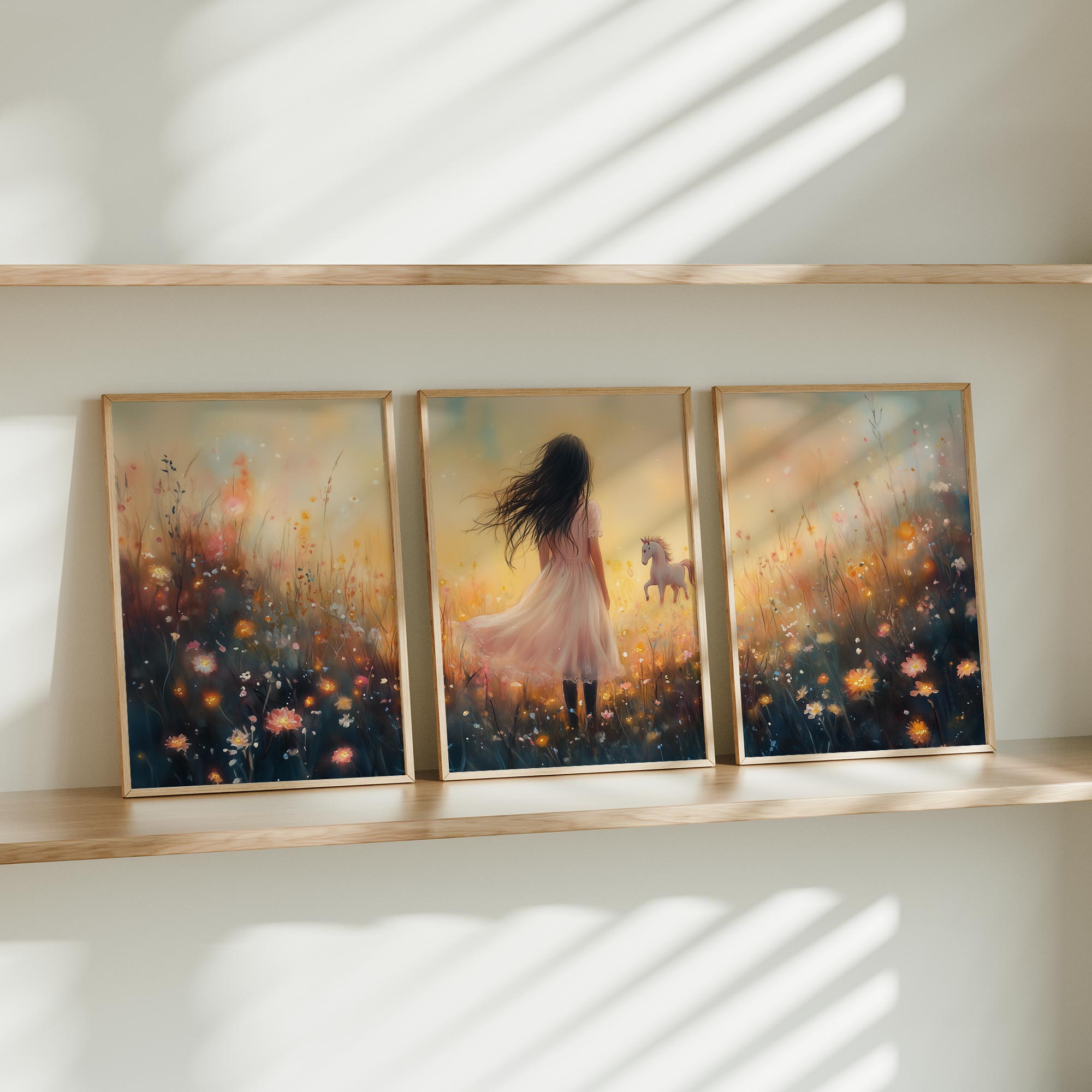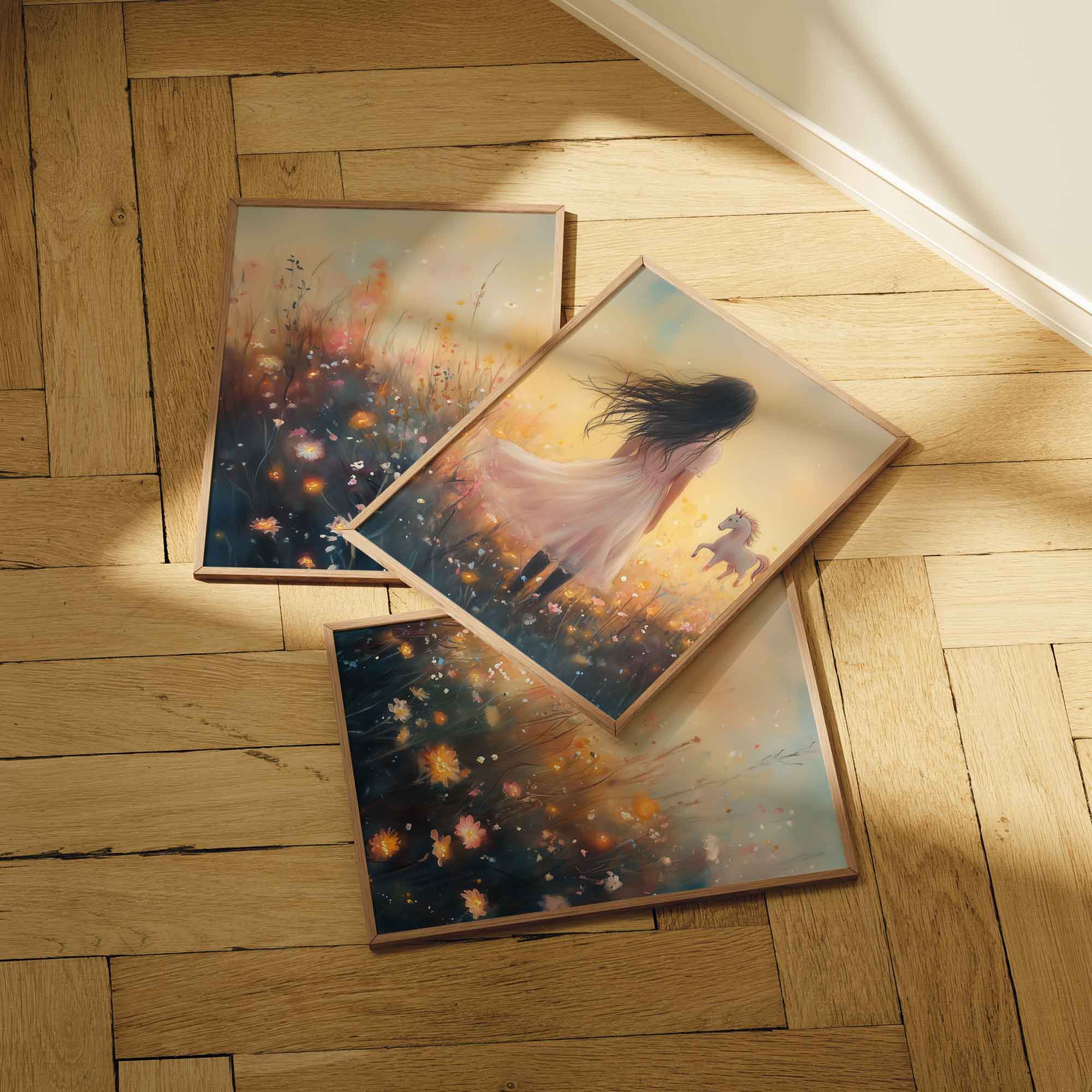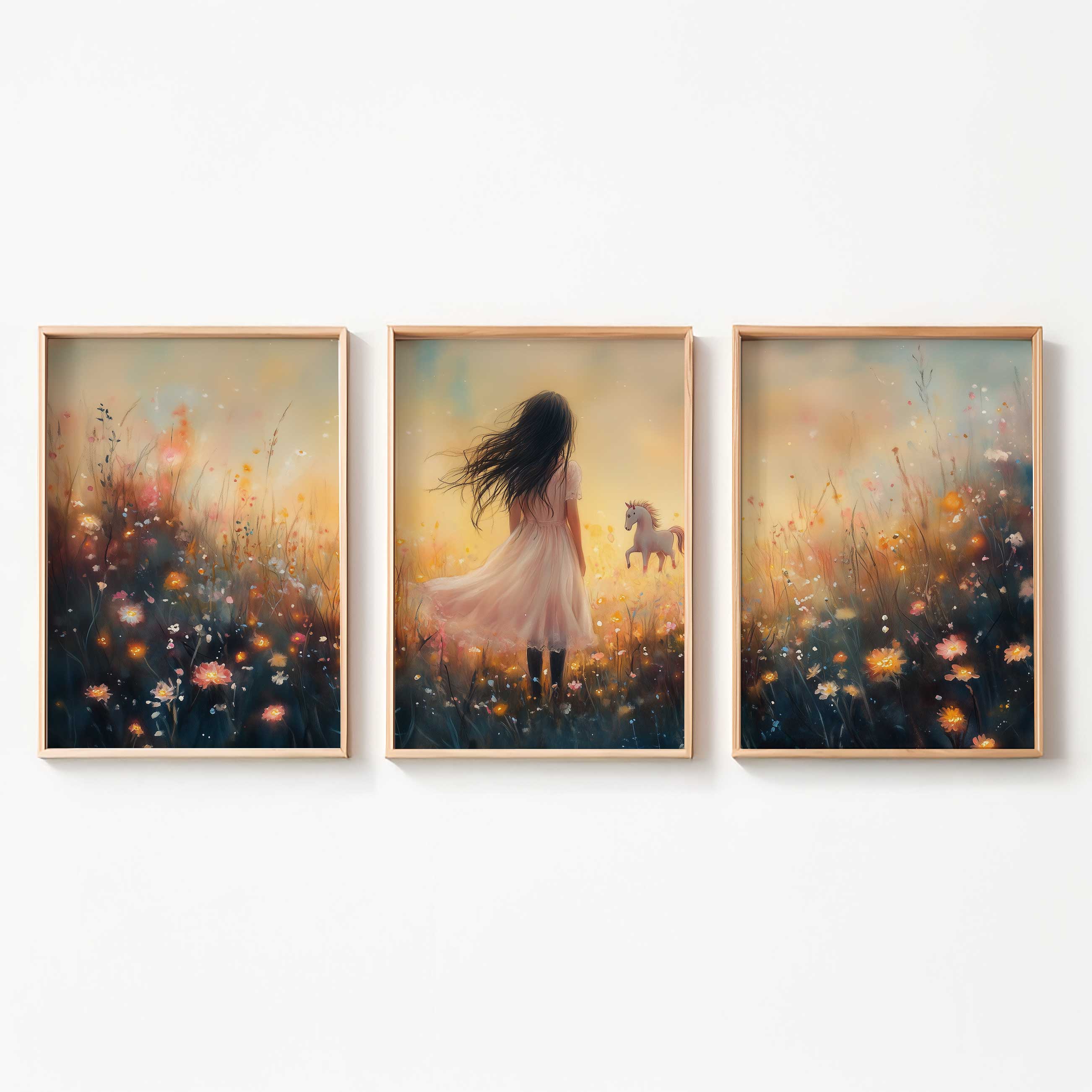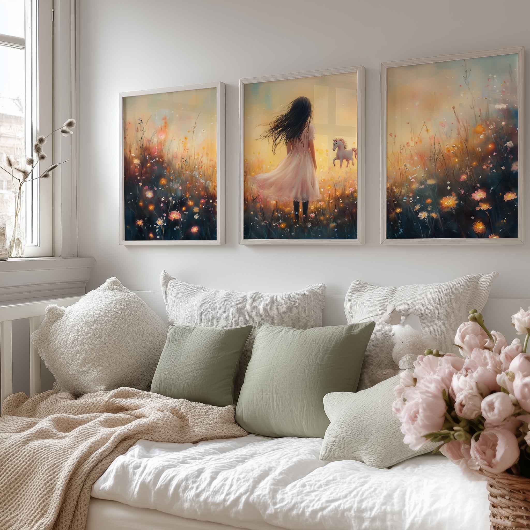 Magisch Meisje en Eenhoorn in Pastel Bloemenveld
