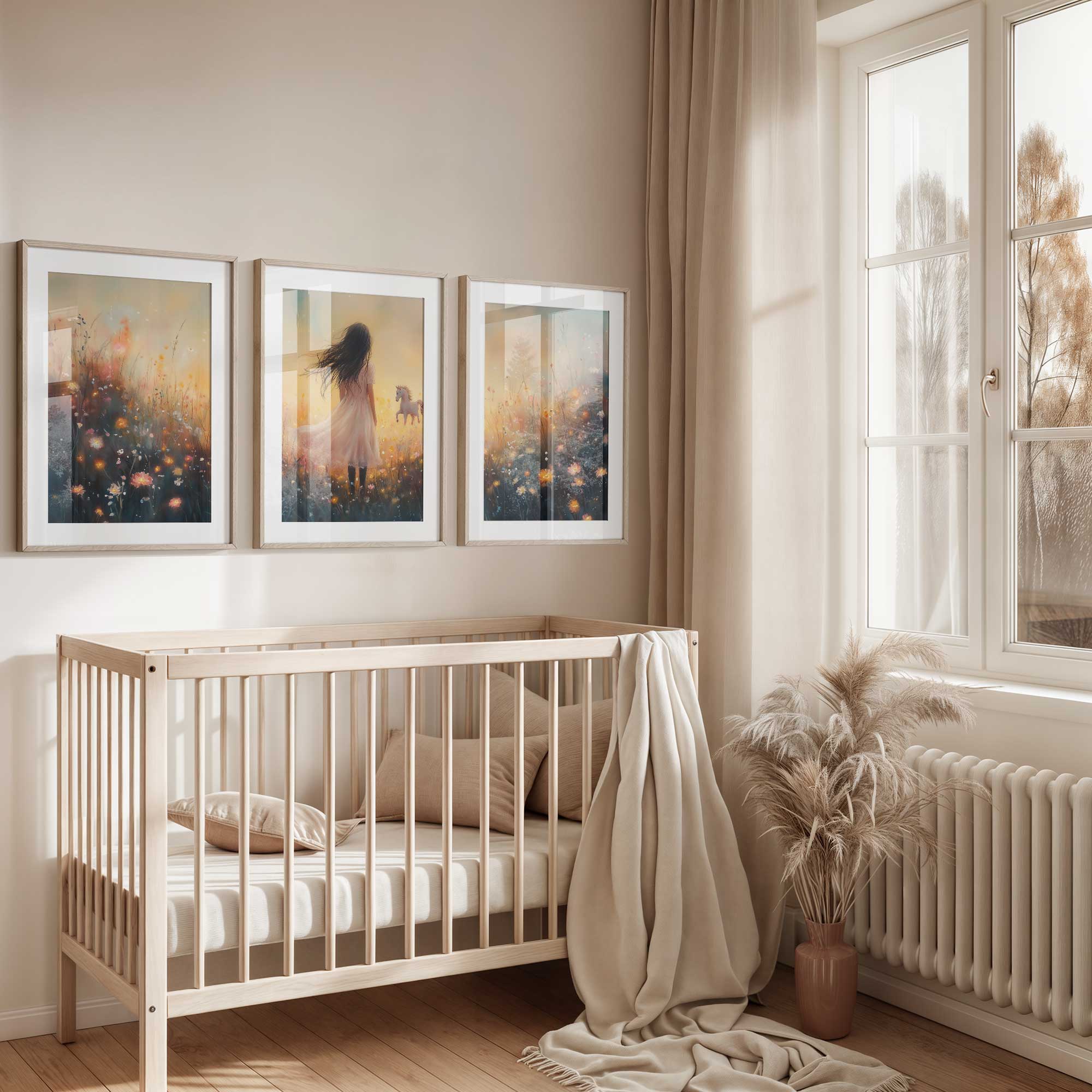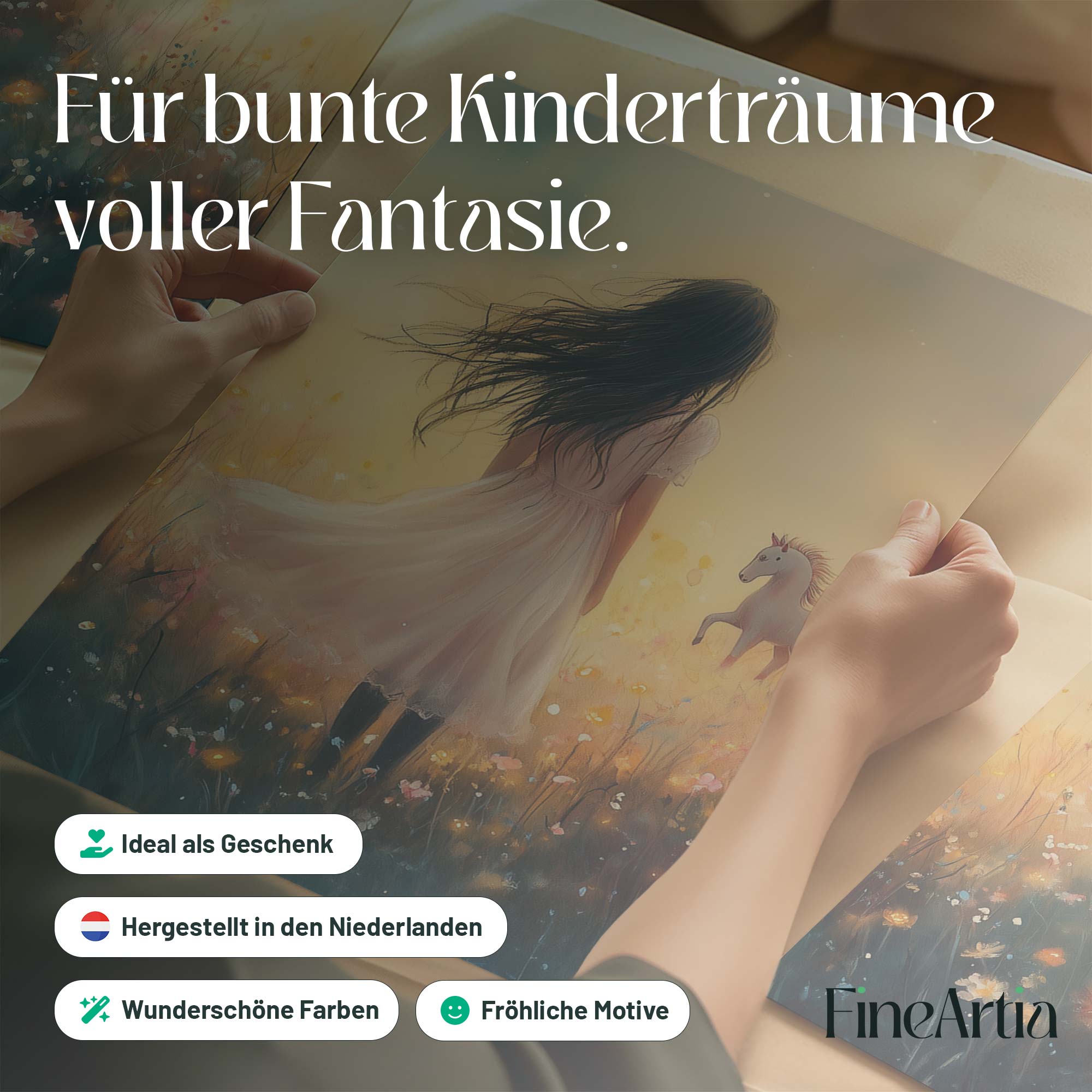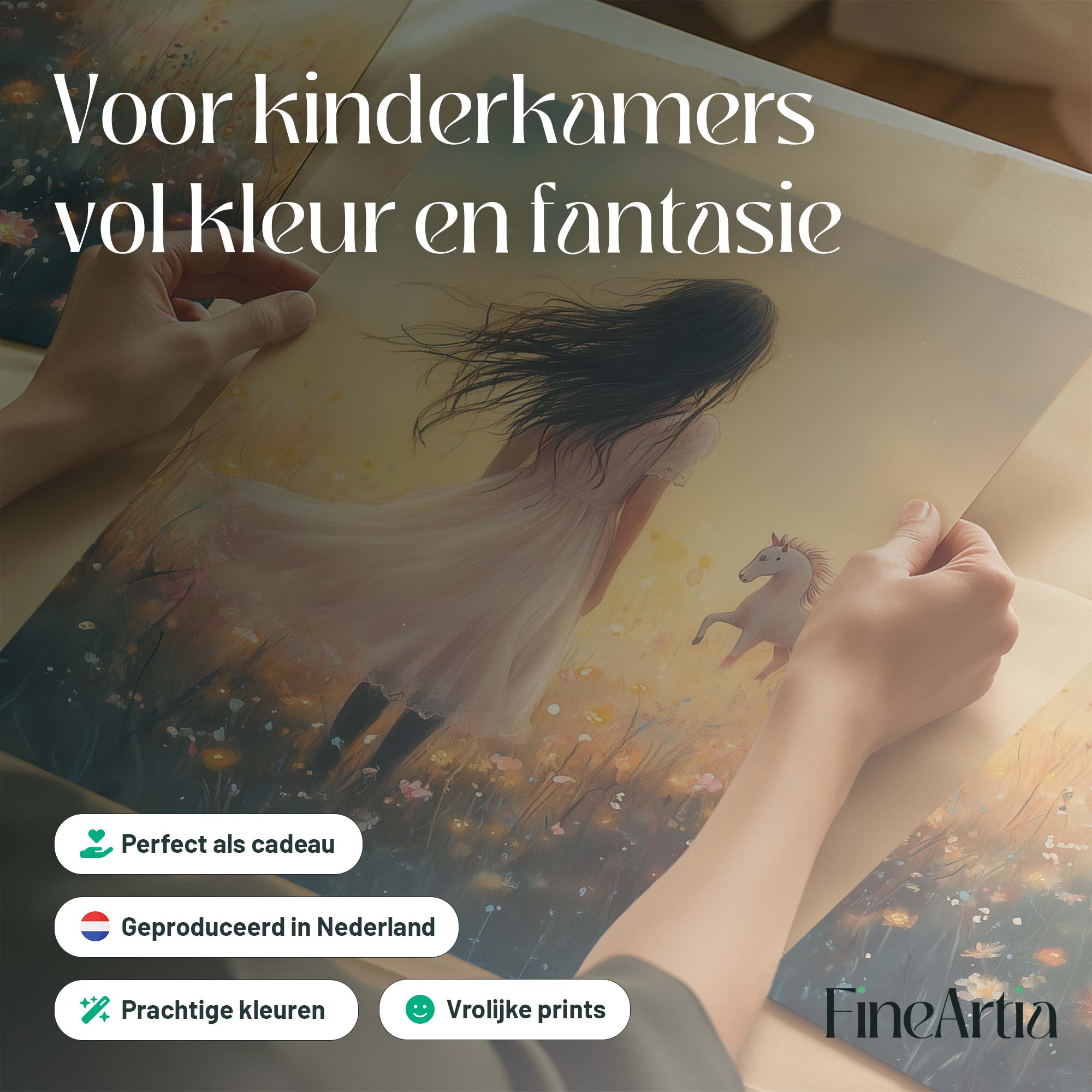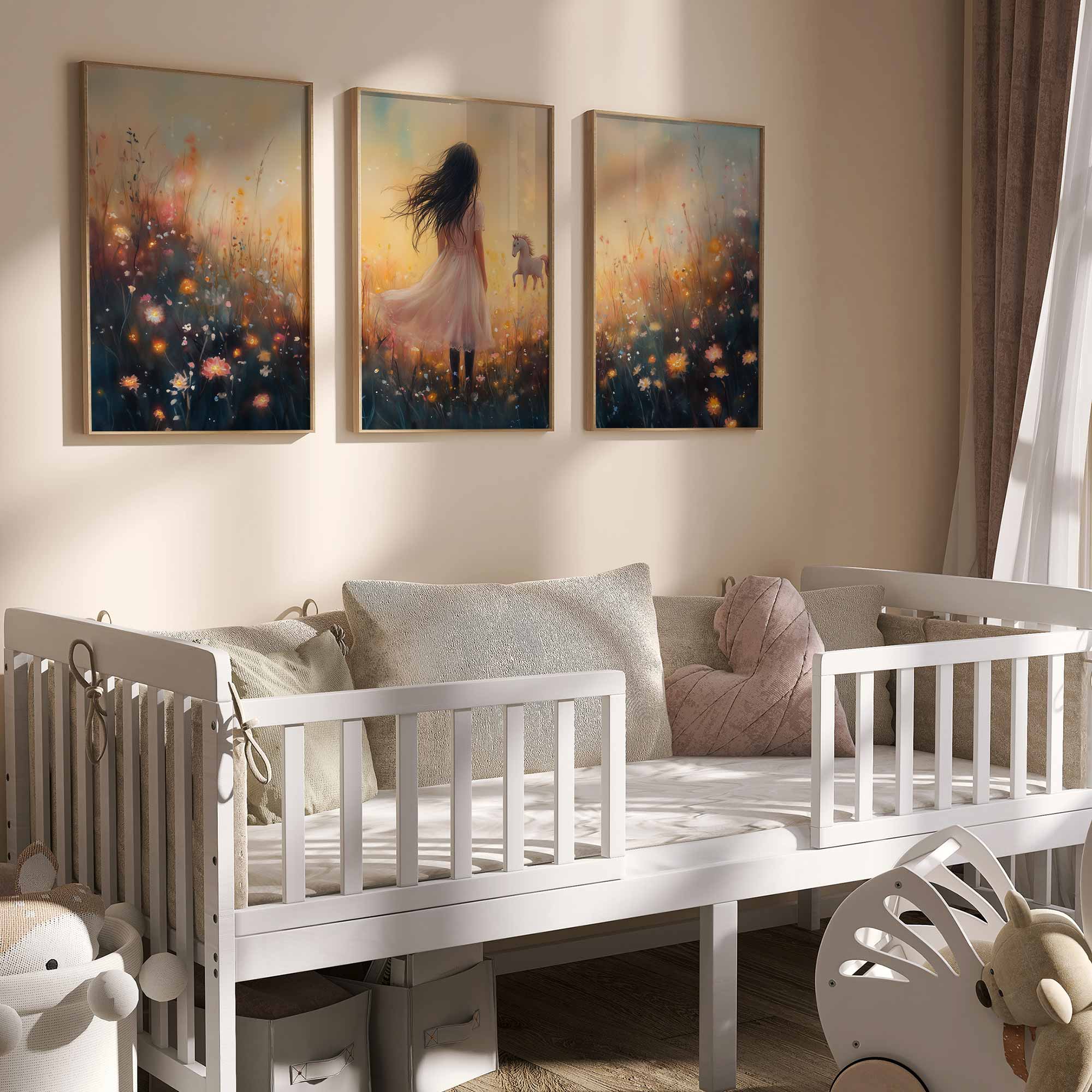 Magisch Meisje en Eenhoorn in Pastel Bloemenveld