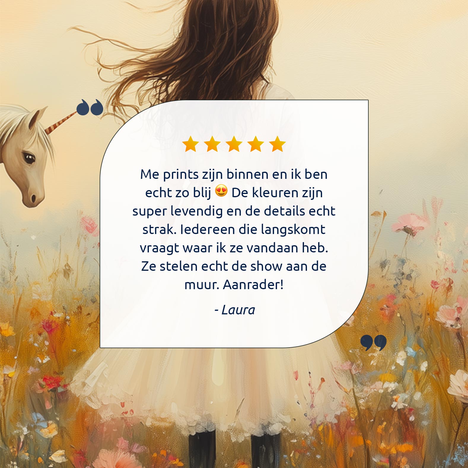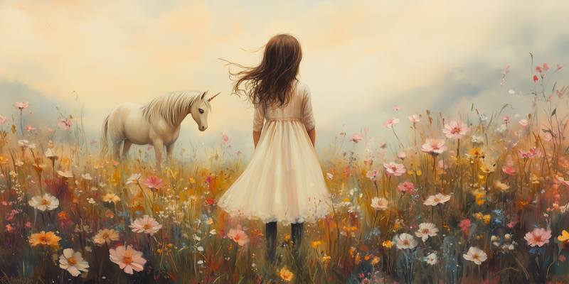 Magisch Meisje en Eenhoorn in Pastel Bloemenveld