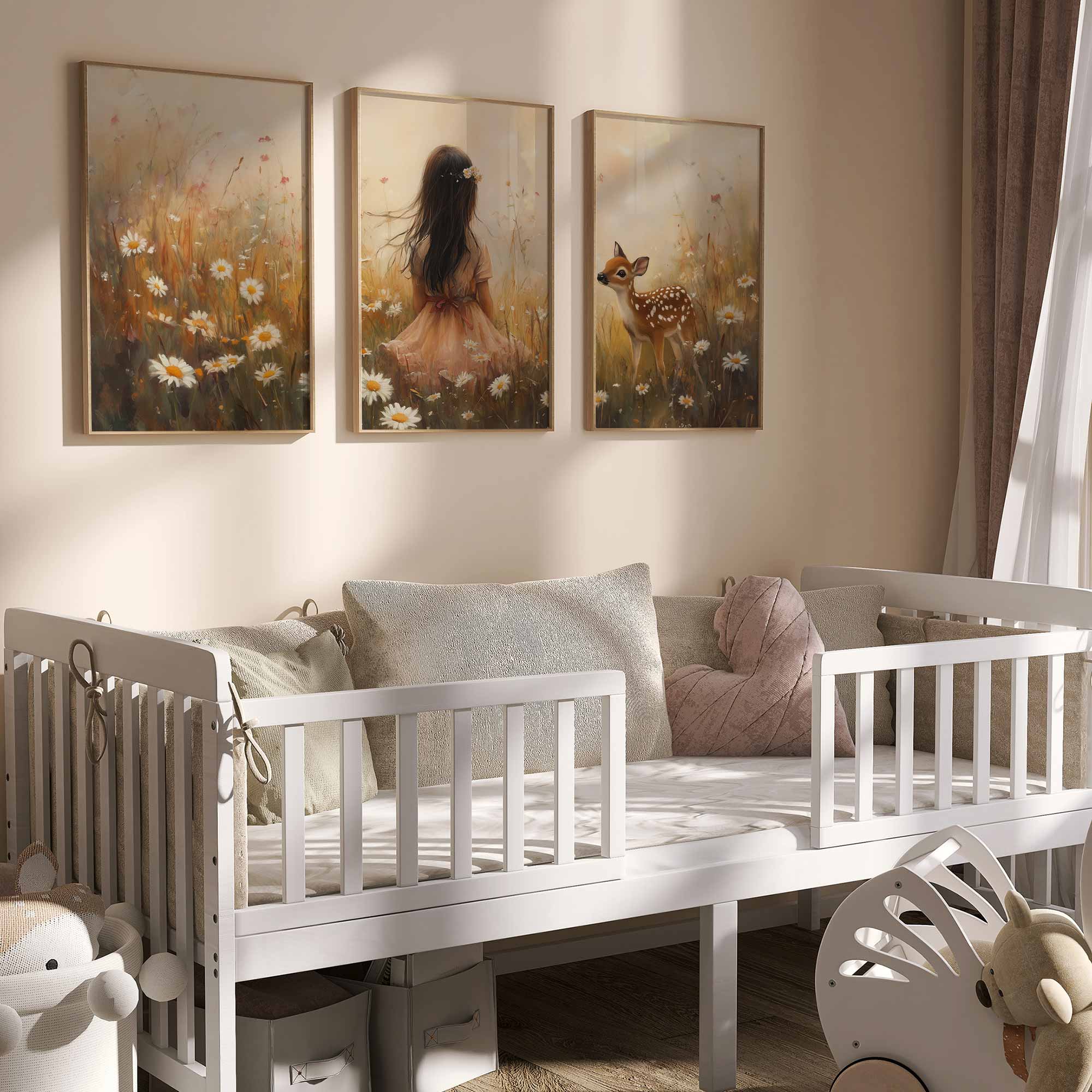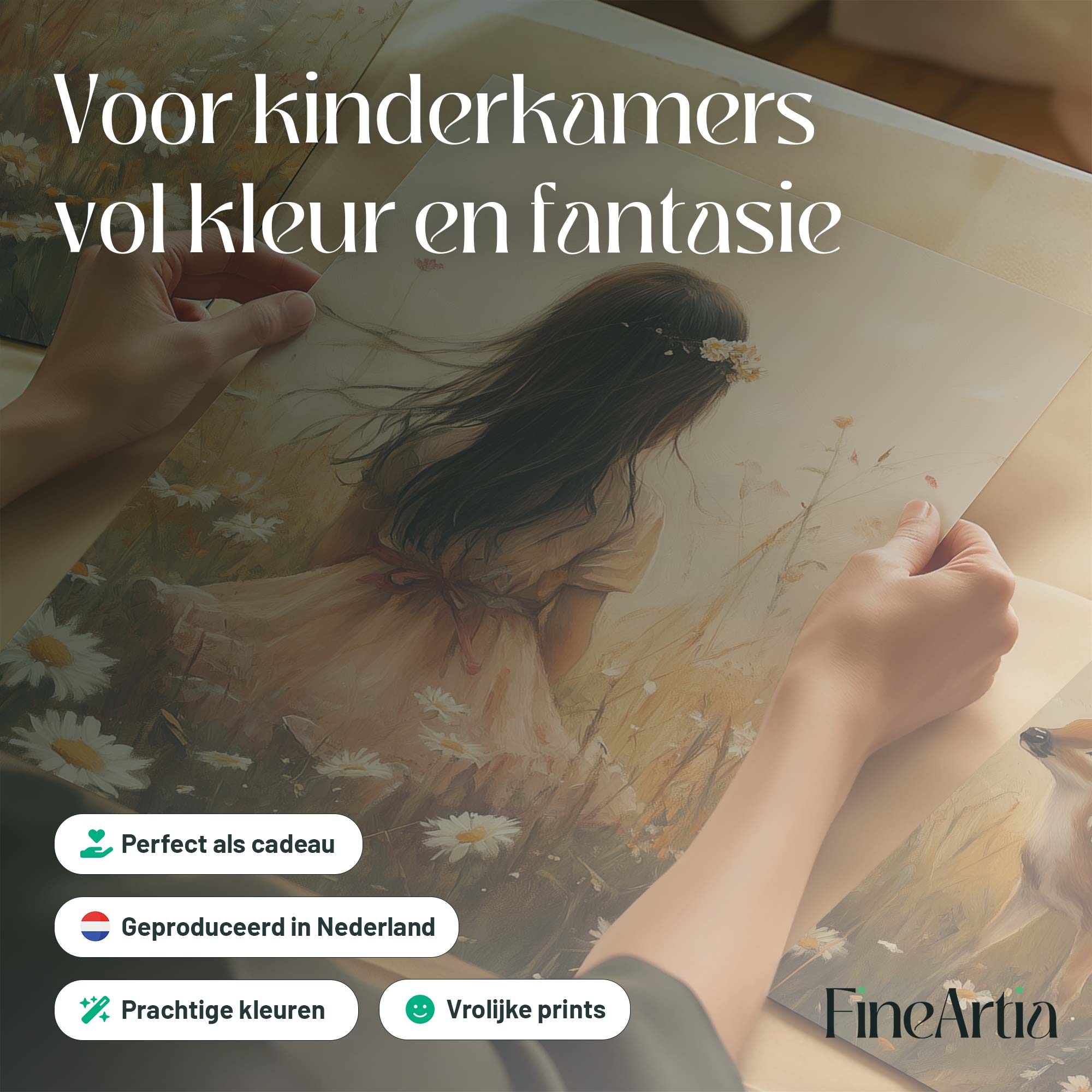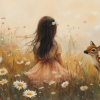 Terug naar collectie Posters Magisch Meisje en Hert in Bloemenveld