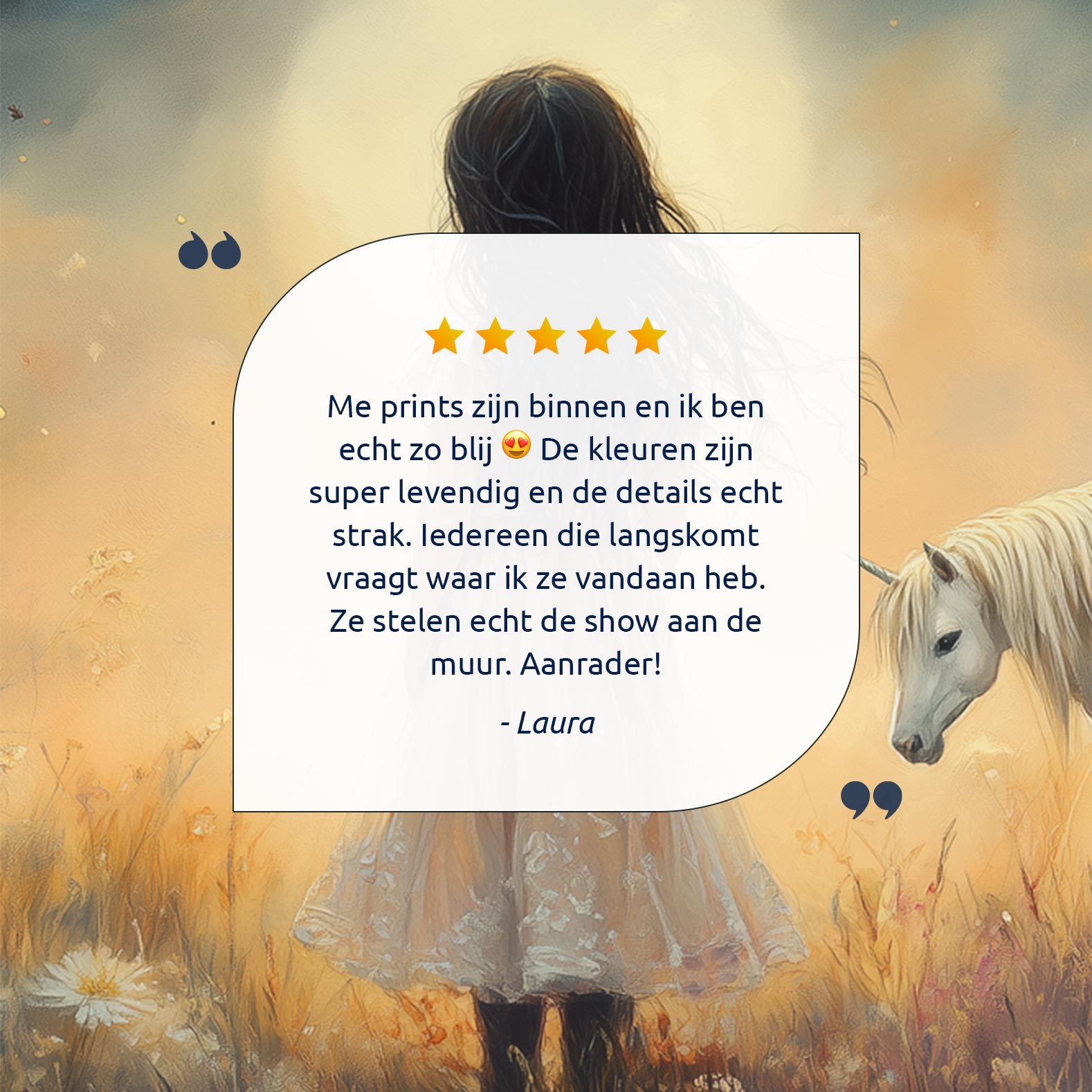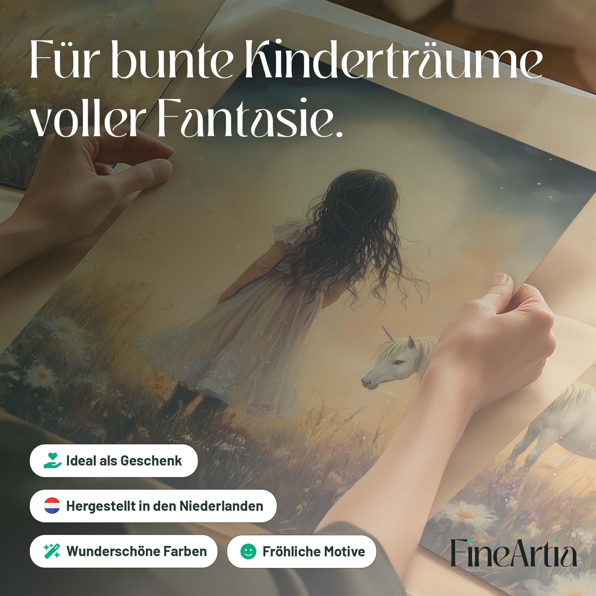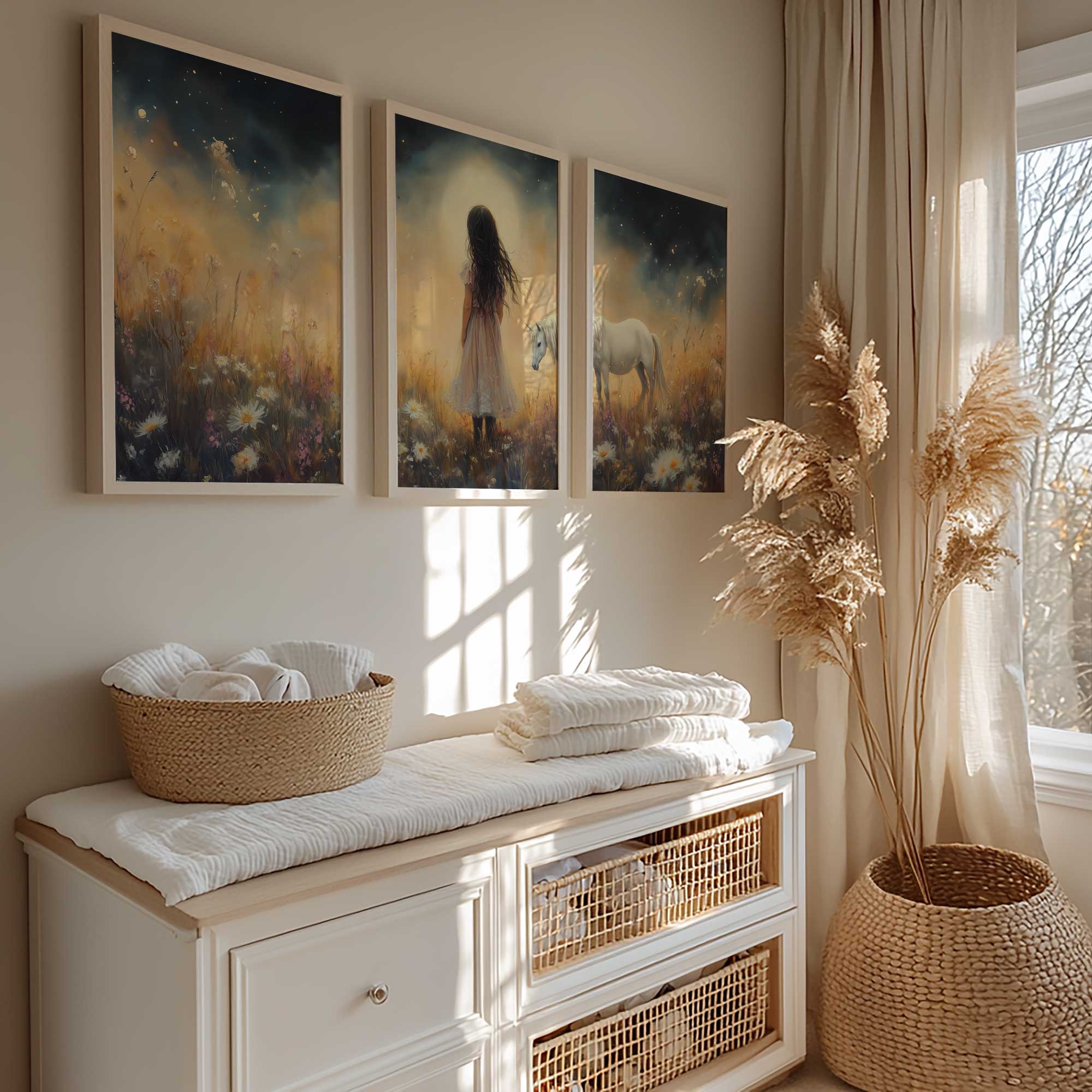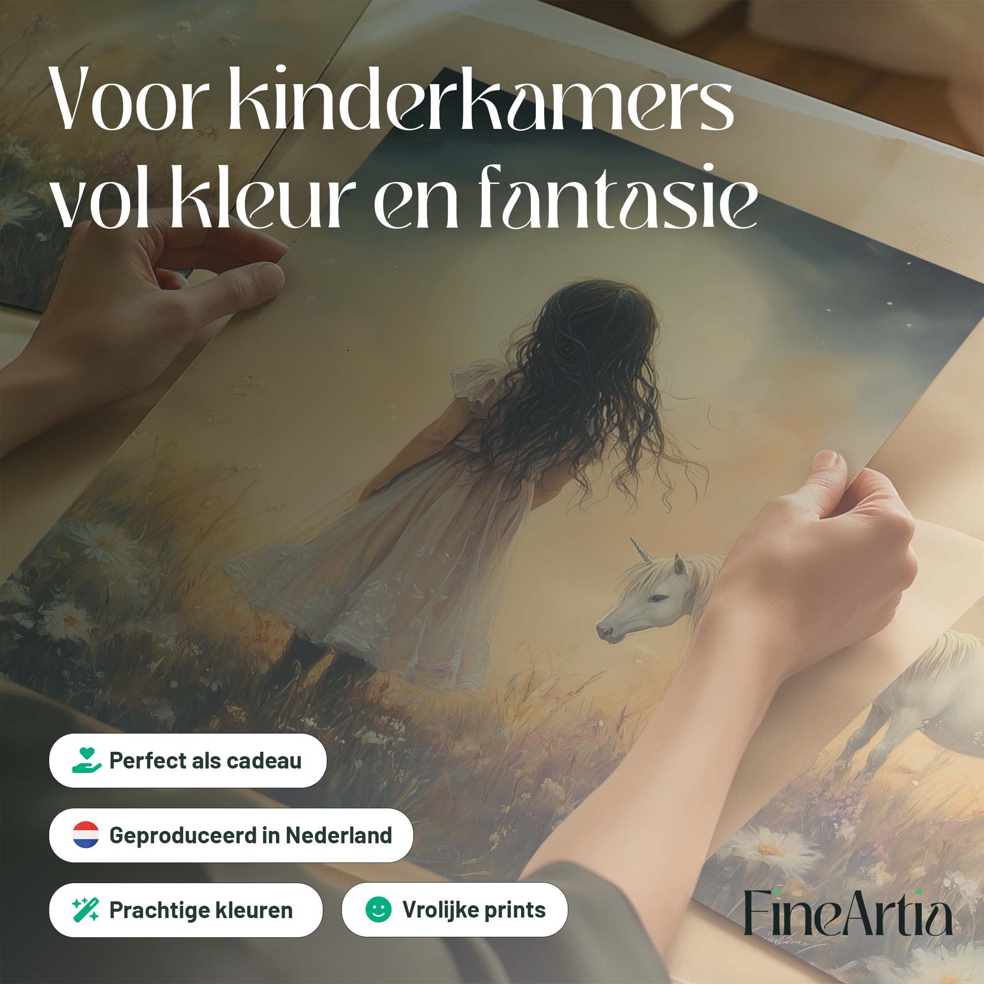 Terug naar collectie Posters Magisch Meisje en Witte Paard in Bloemenveld