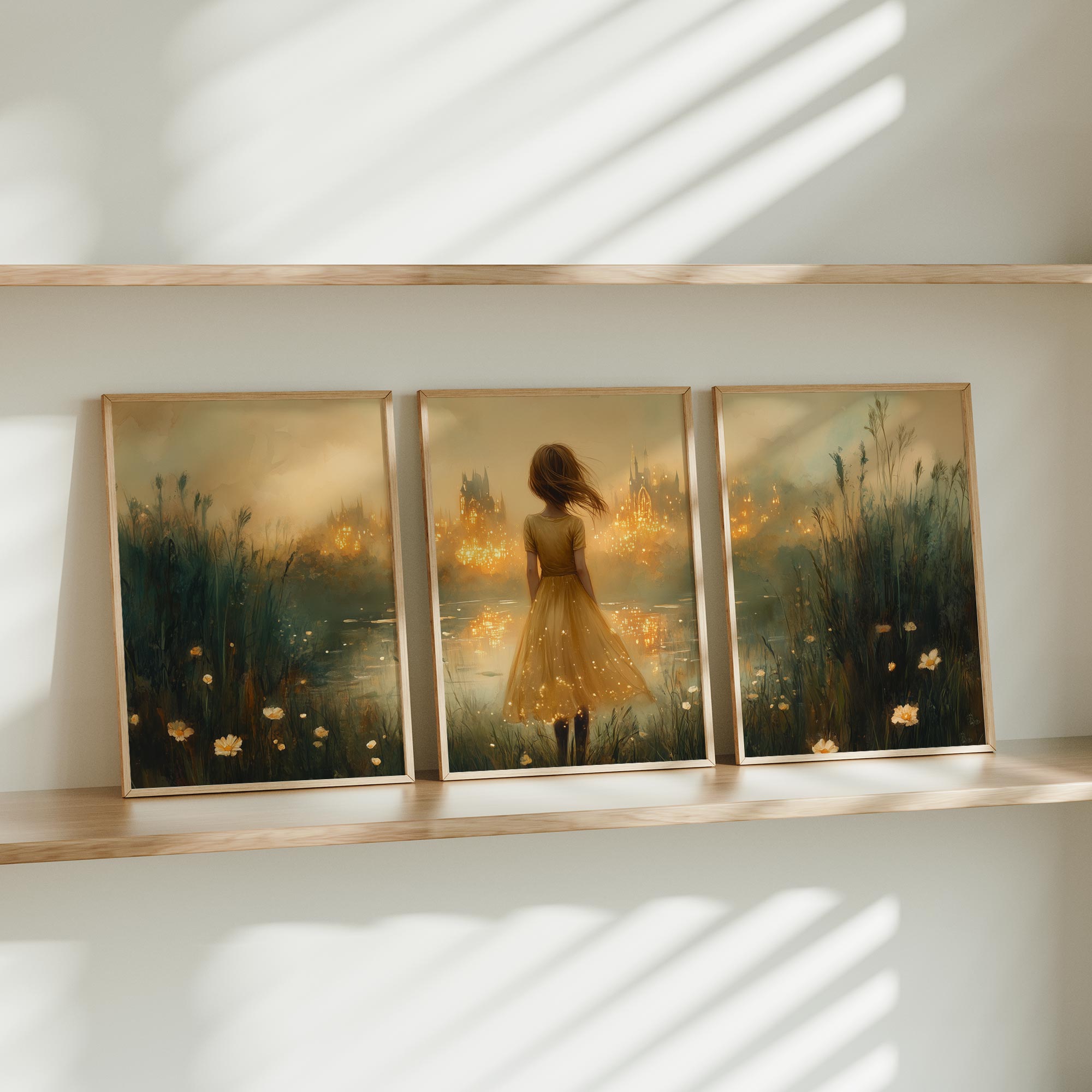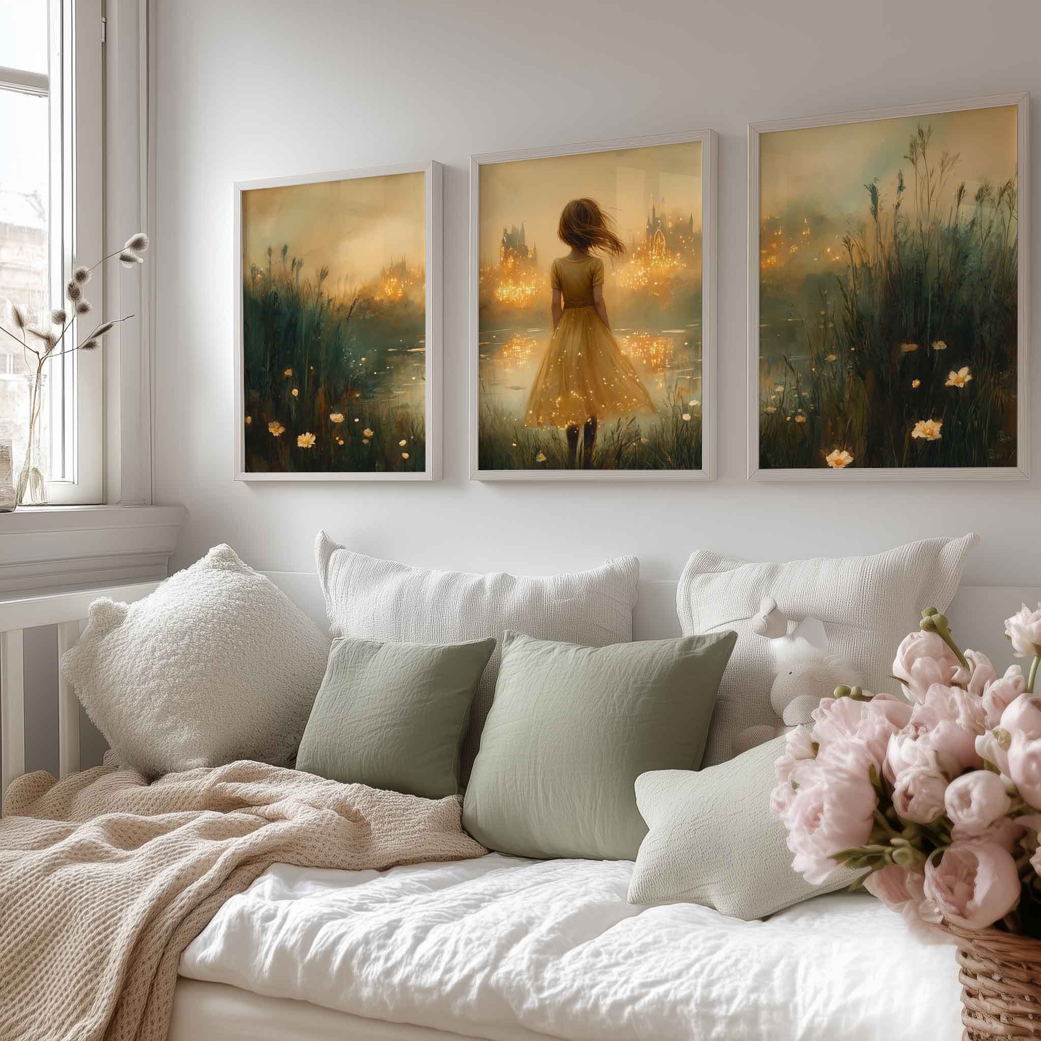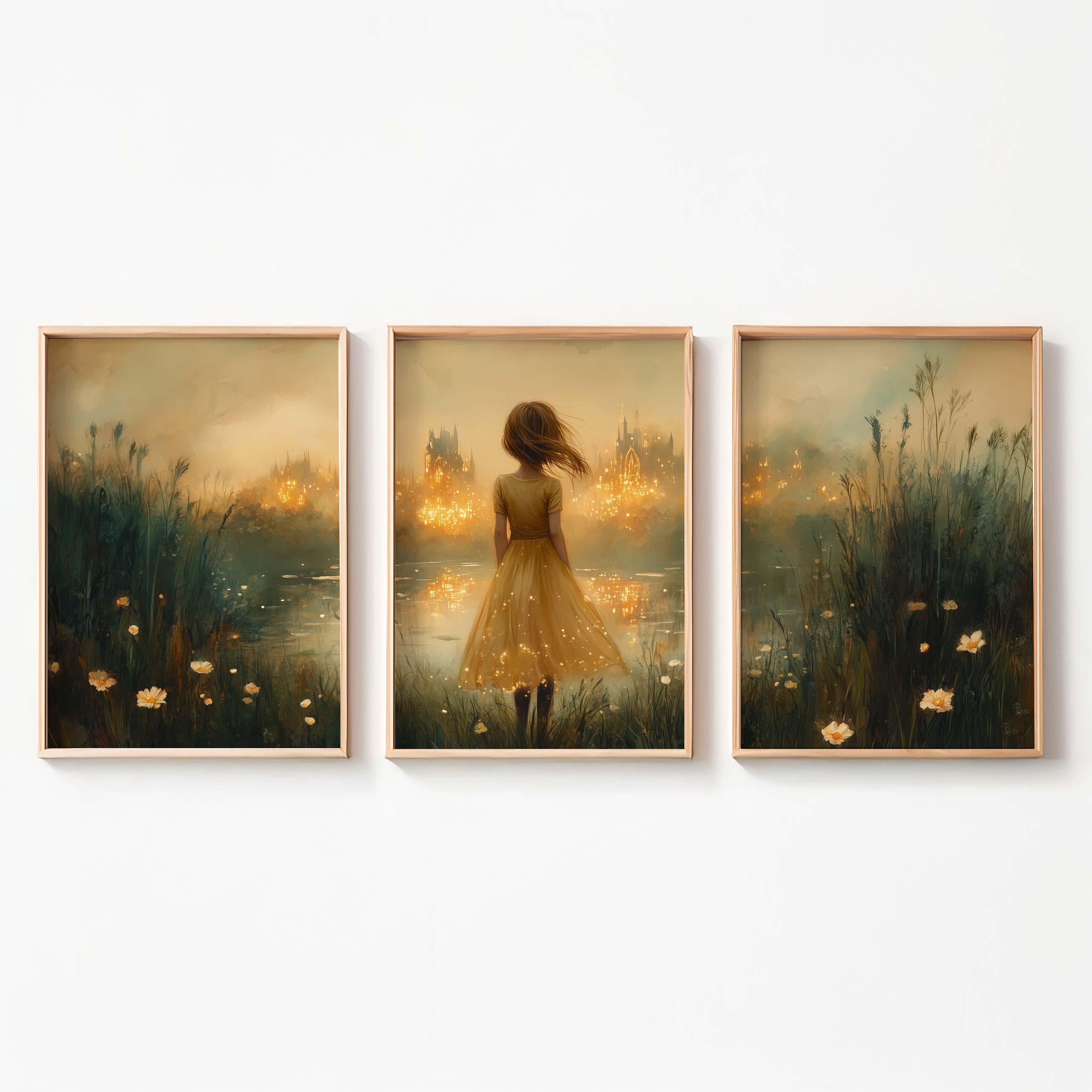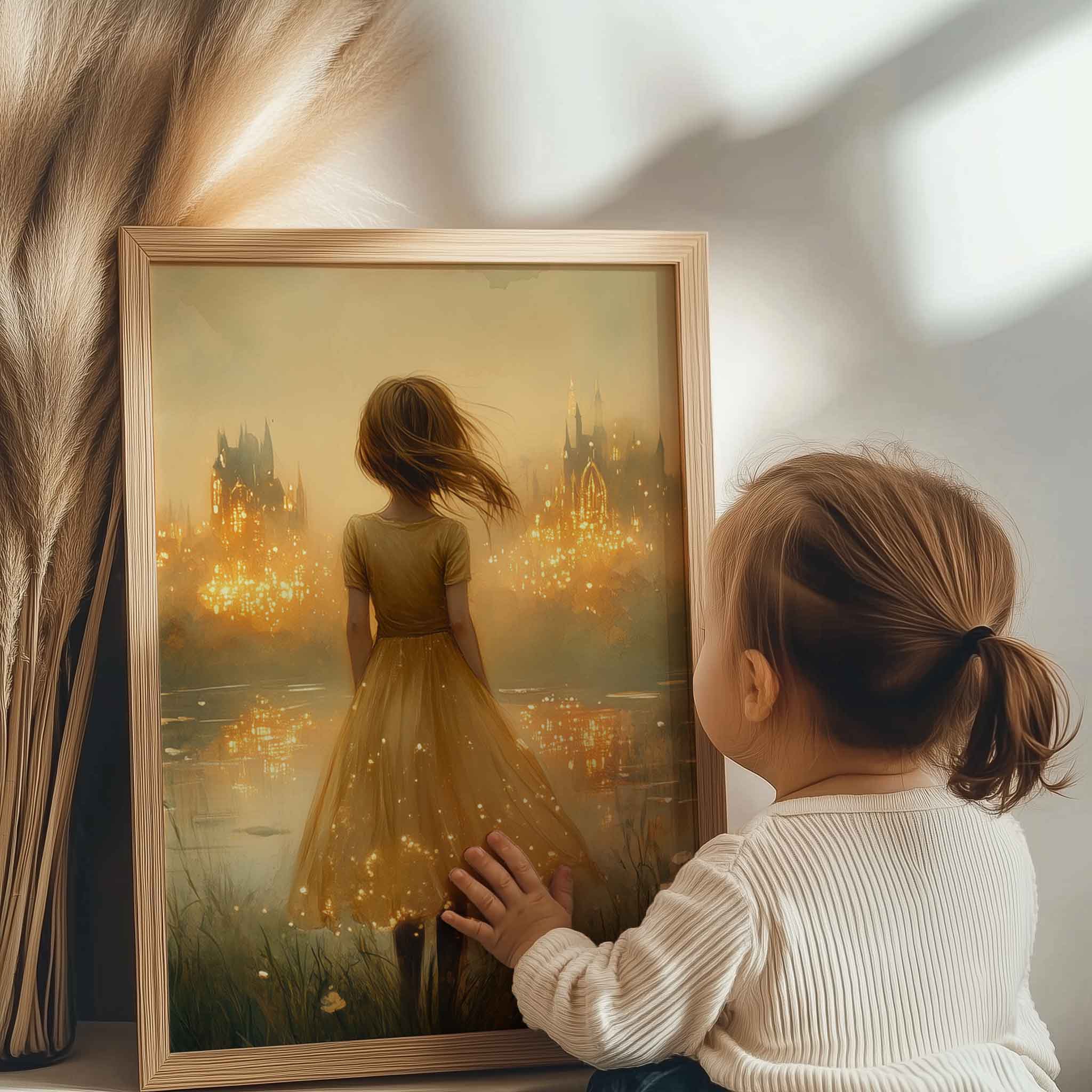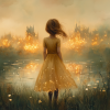Magisch Meisje in Bloeiend Bloemenveld met Kasteel