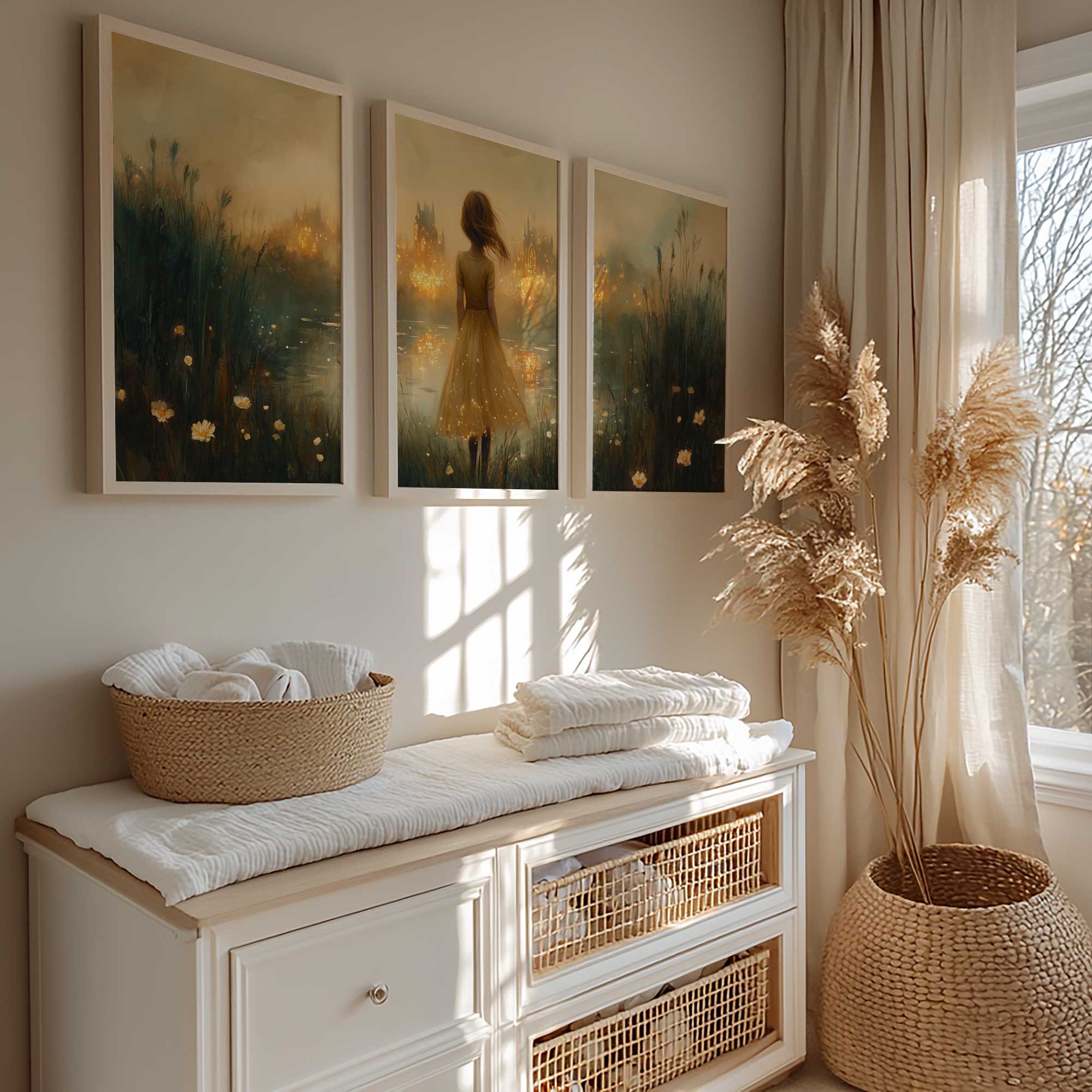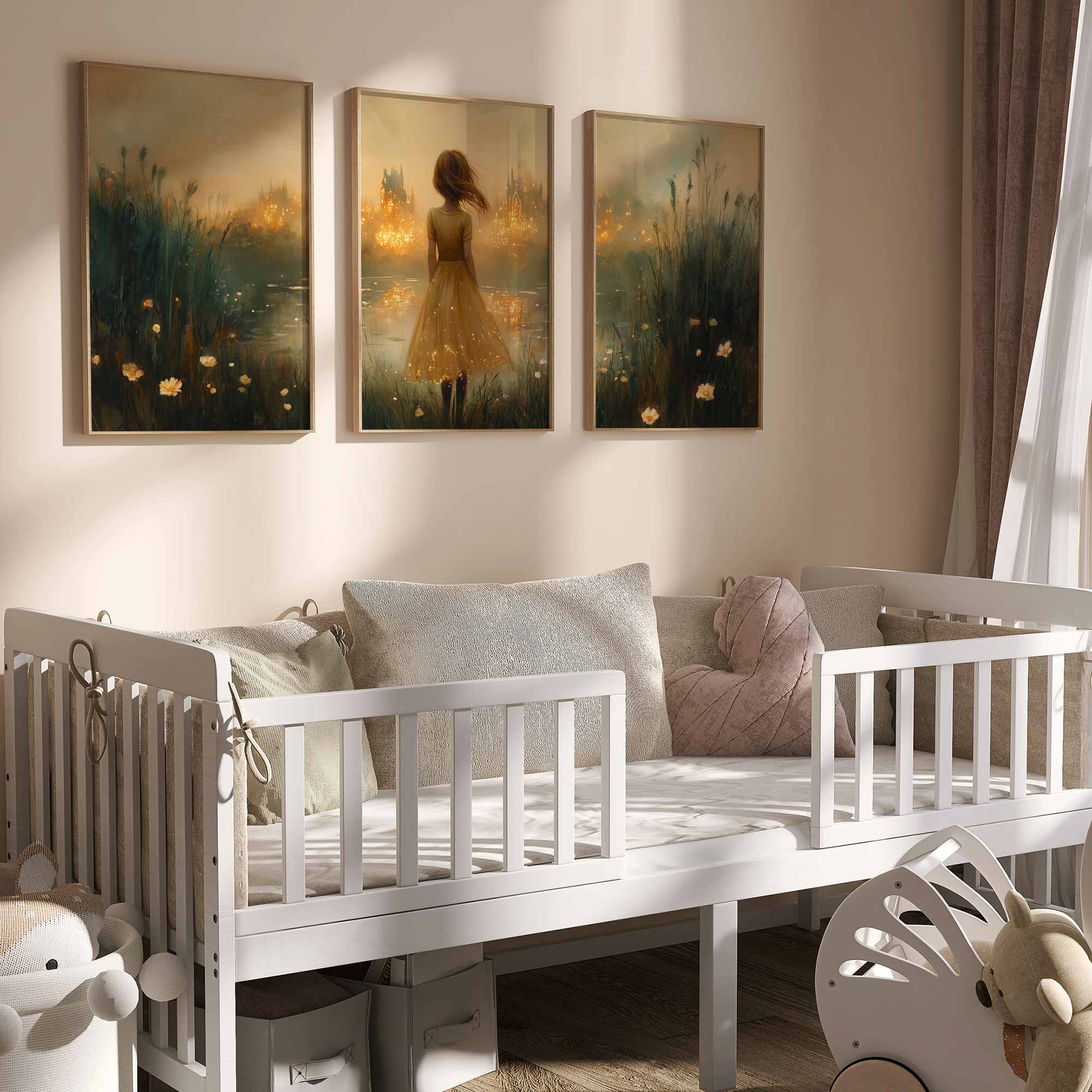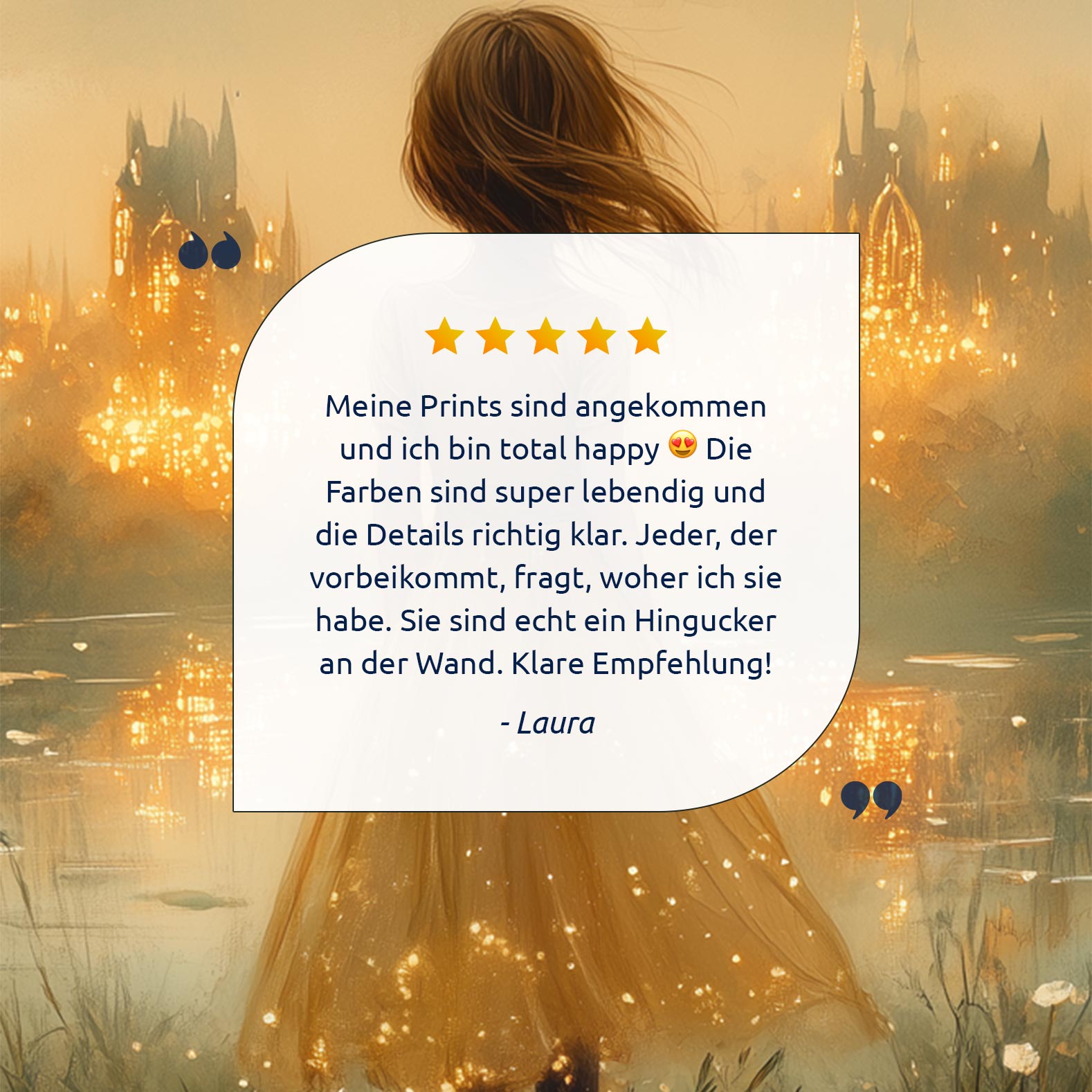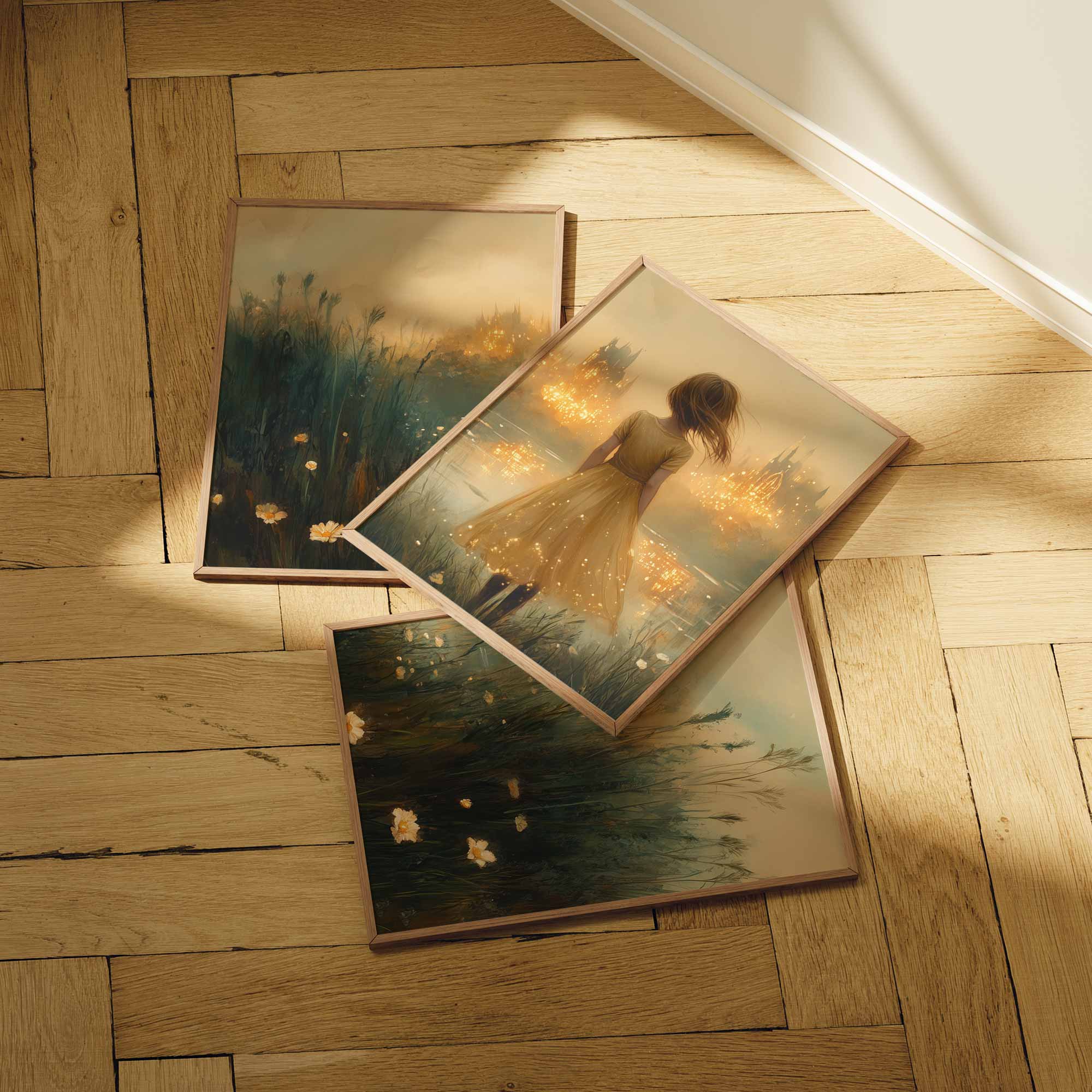 Magisch Meisje in Bloeiend Bloemenveld met Kasteel