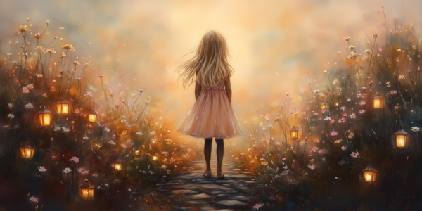 Terug naar collectie Posters Magisch Meisje in Bloeiend Bloemenveld