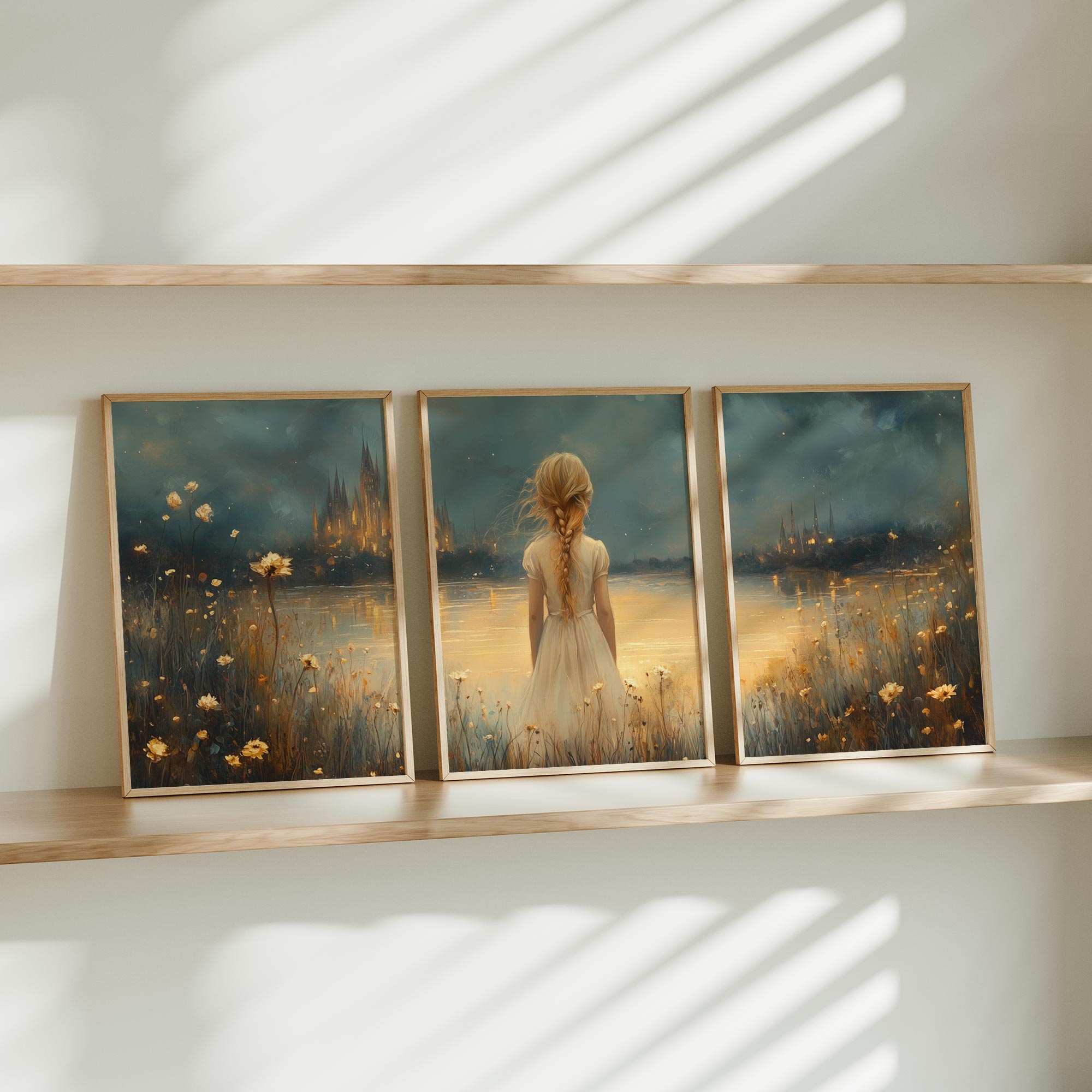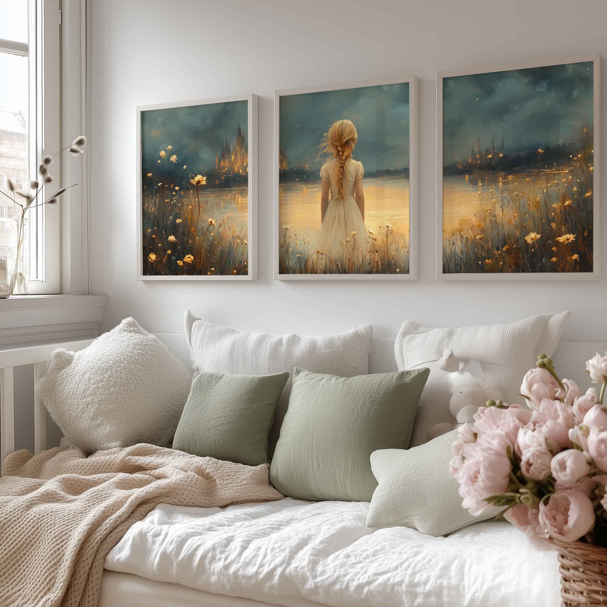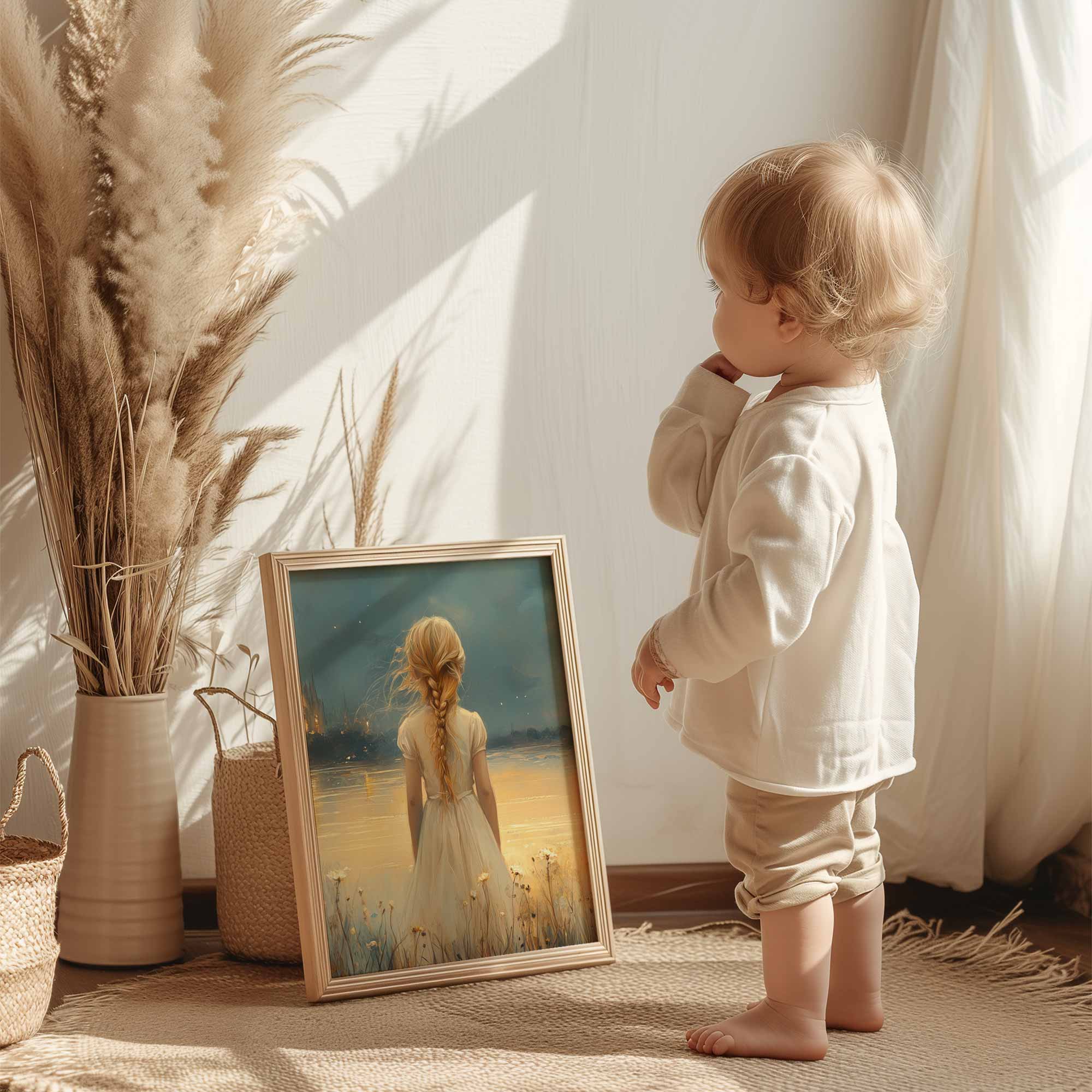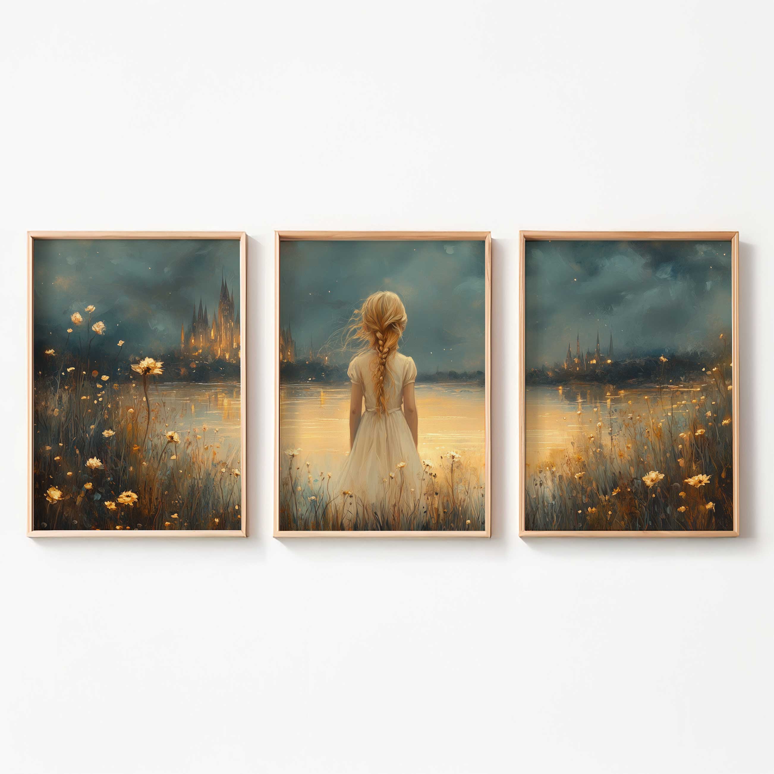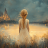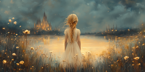 Magisch Meisje in Bloemenveld bij Betoverend Kasteel