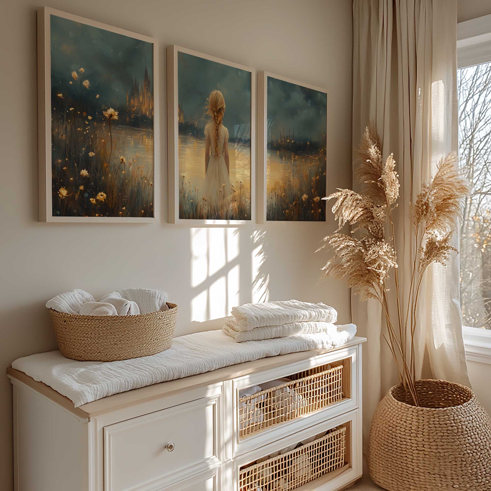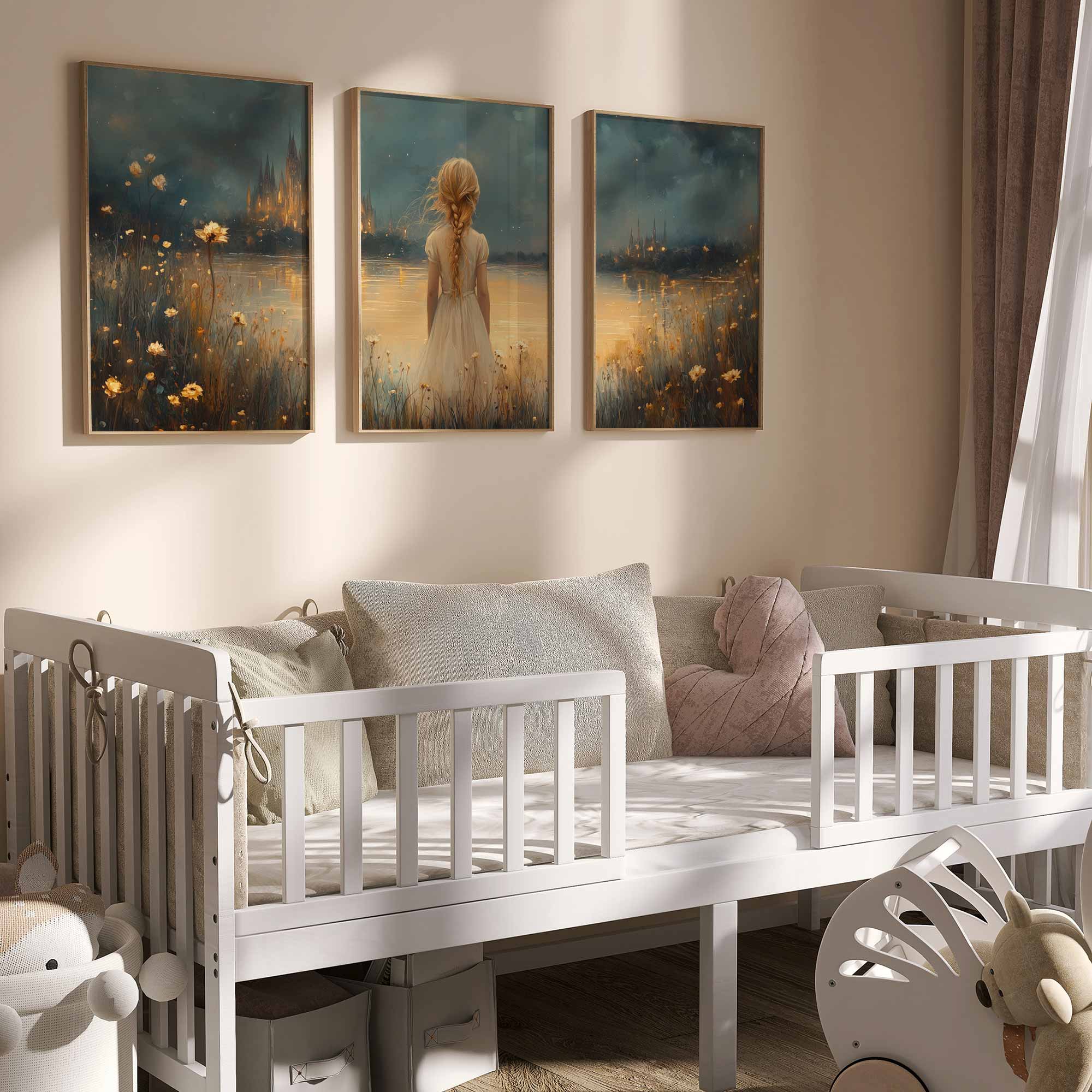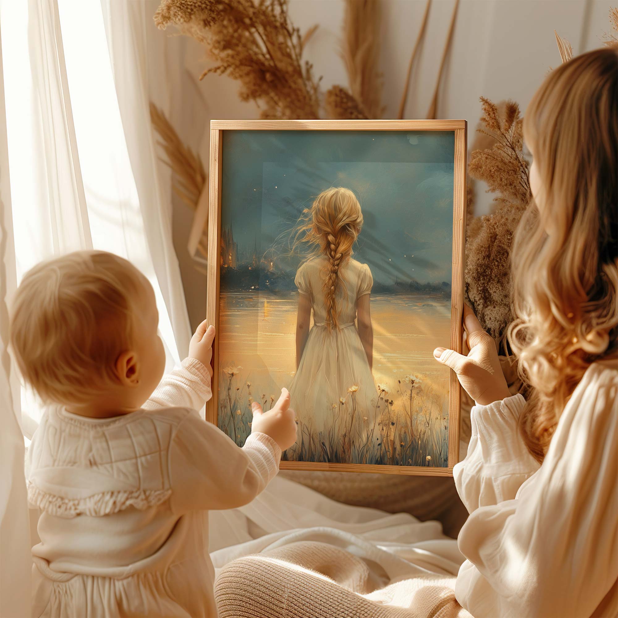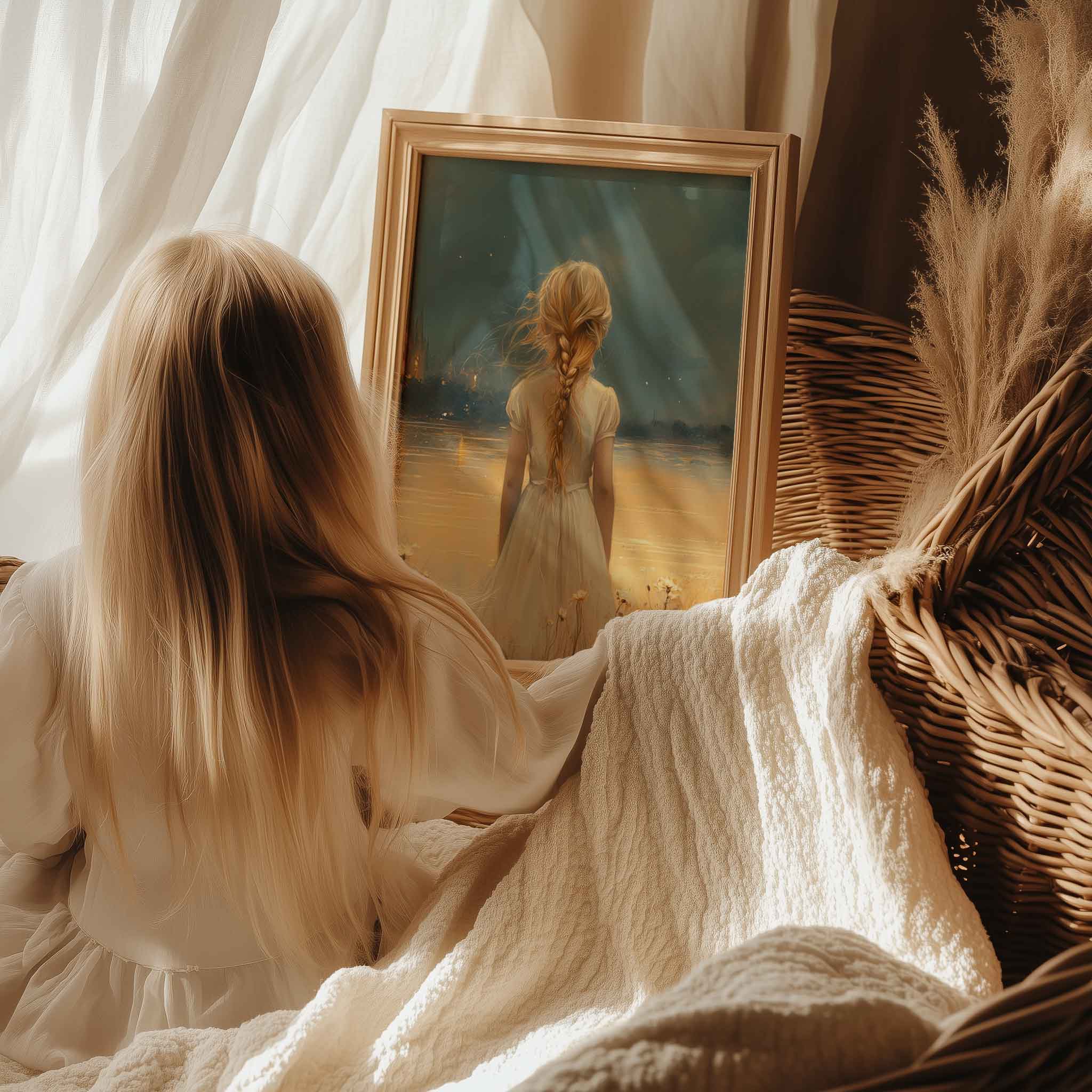 Magisch Meisje in Bloemenveld bij Betoverend Kasteel