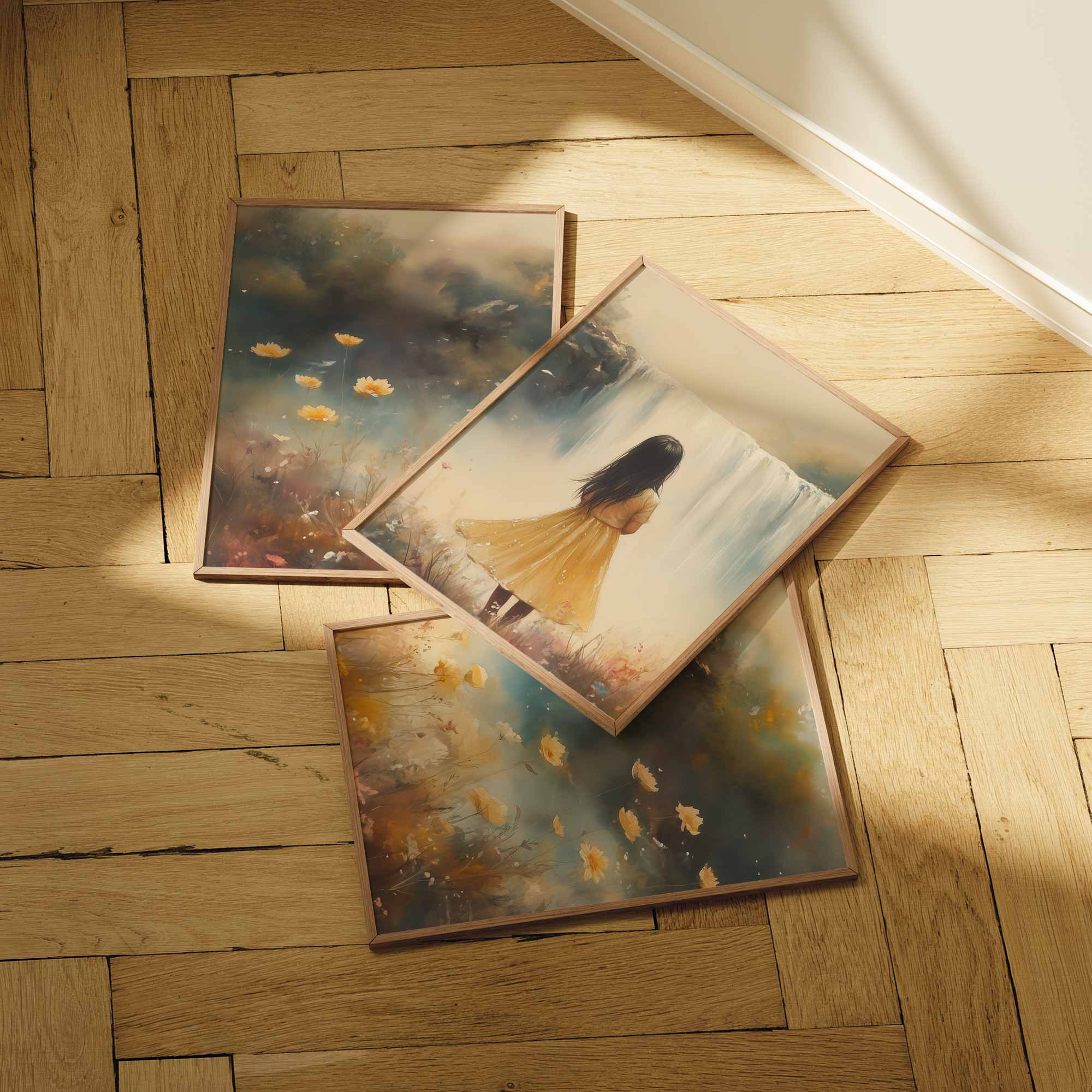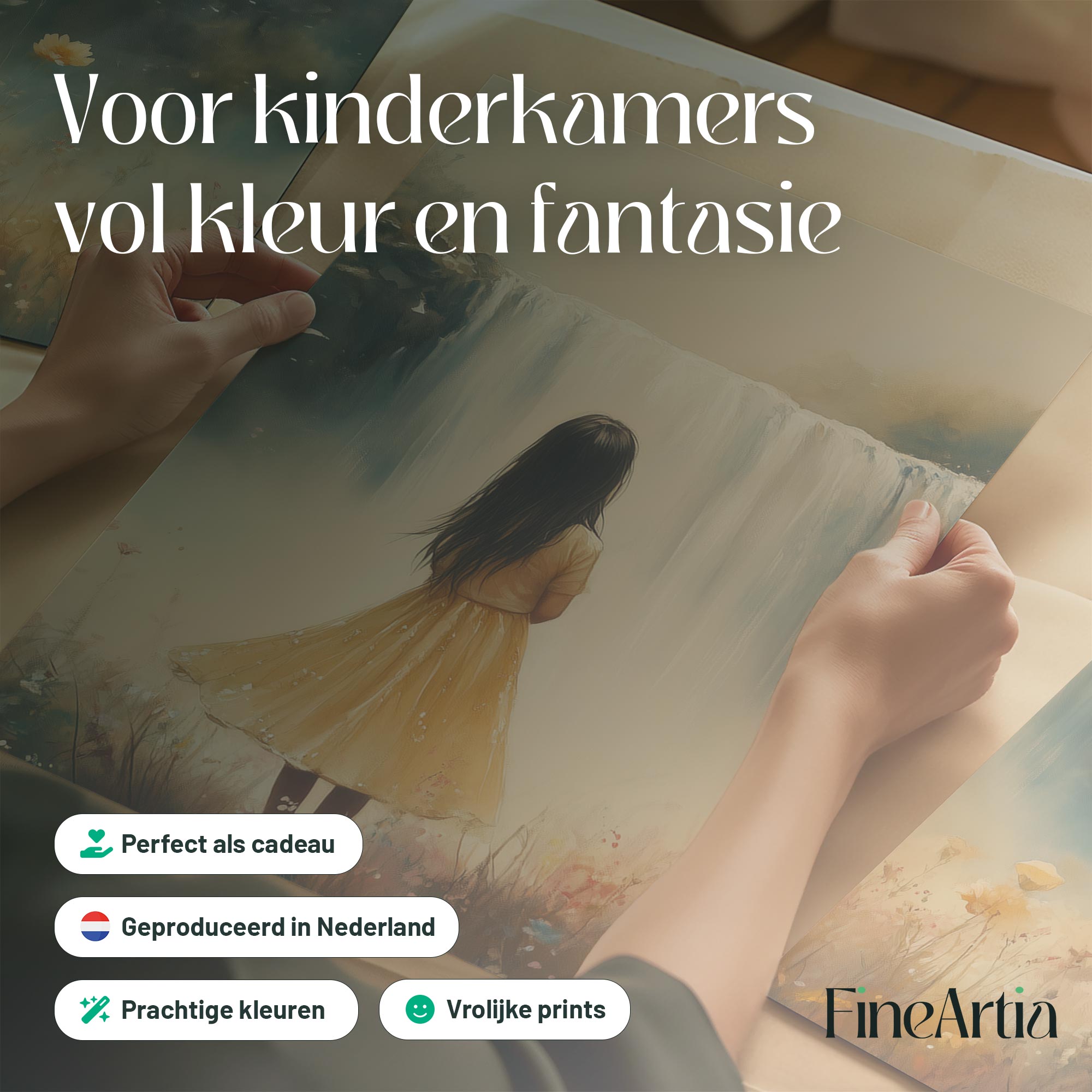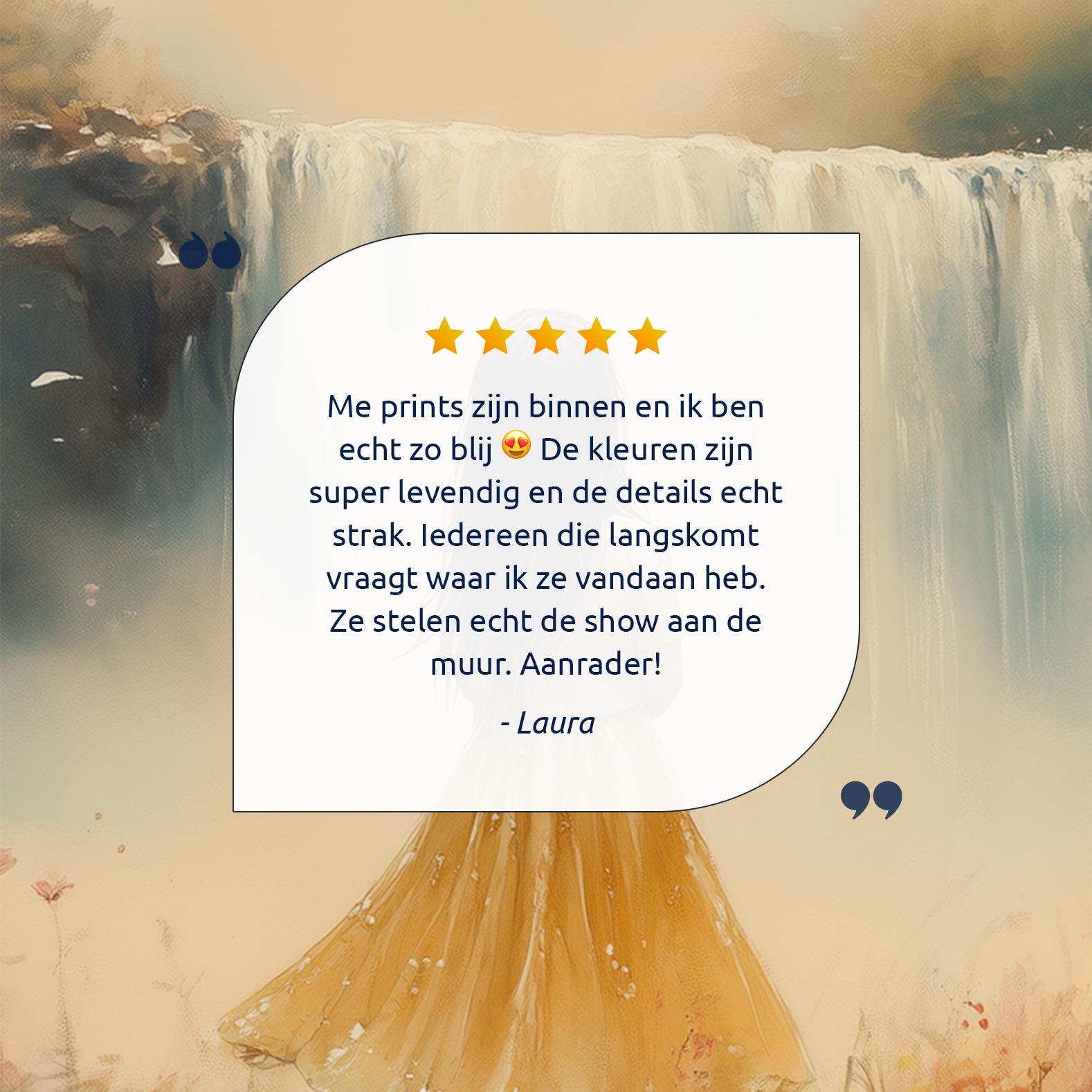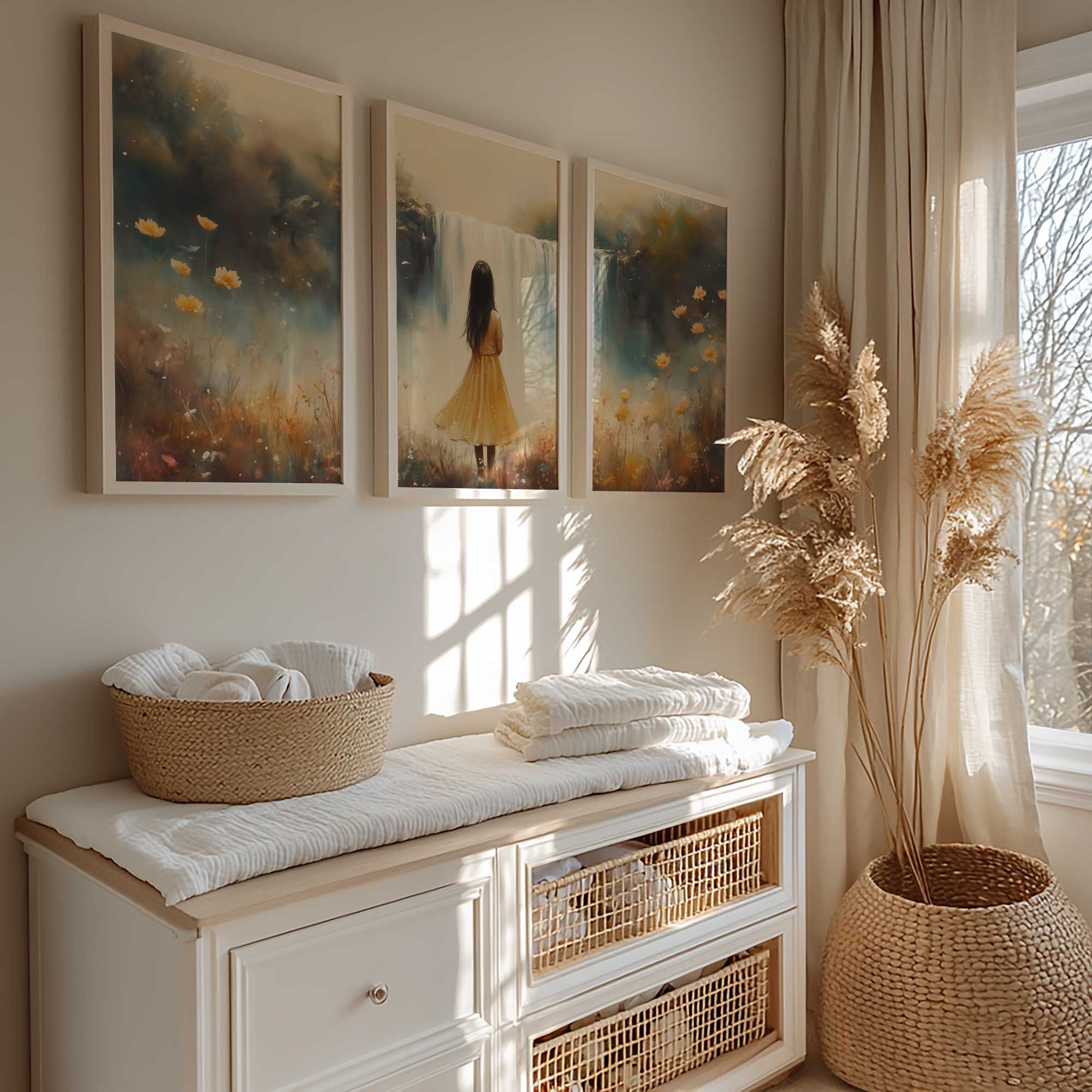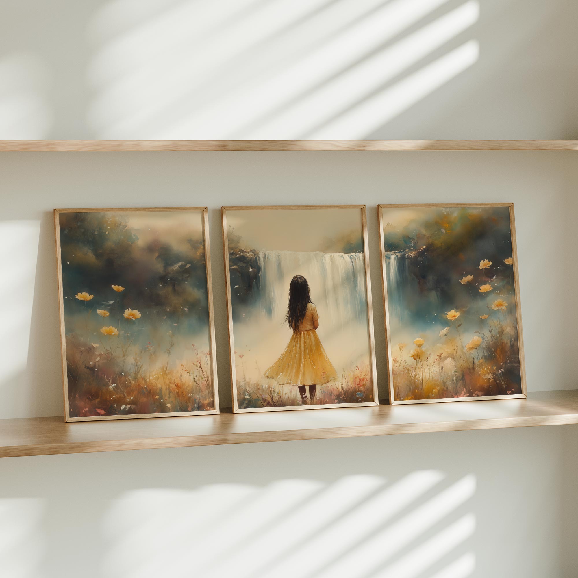 Magisch Meisje in Bloemenveld bij Waterval