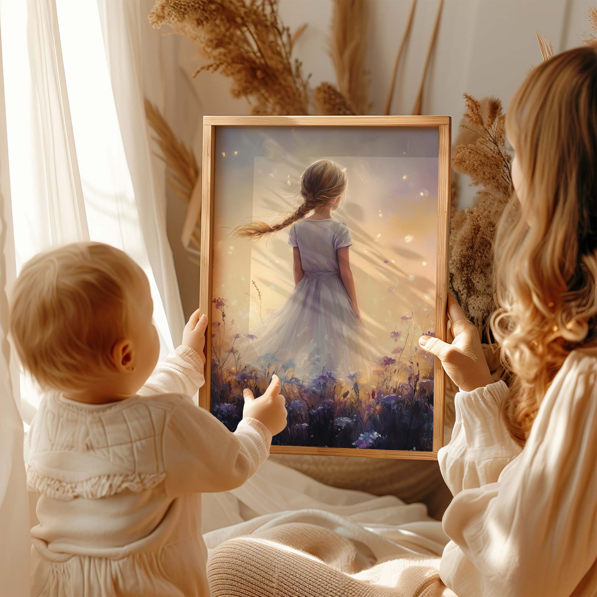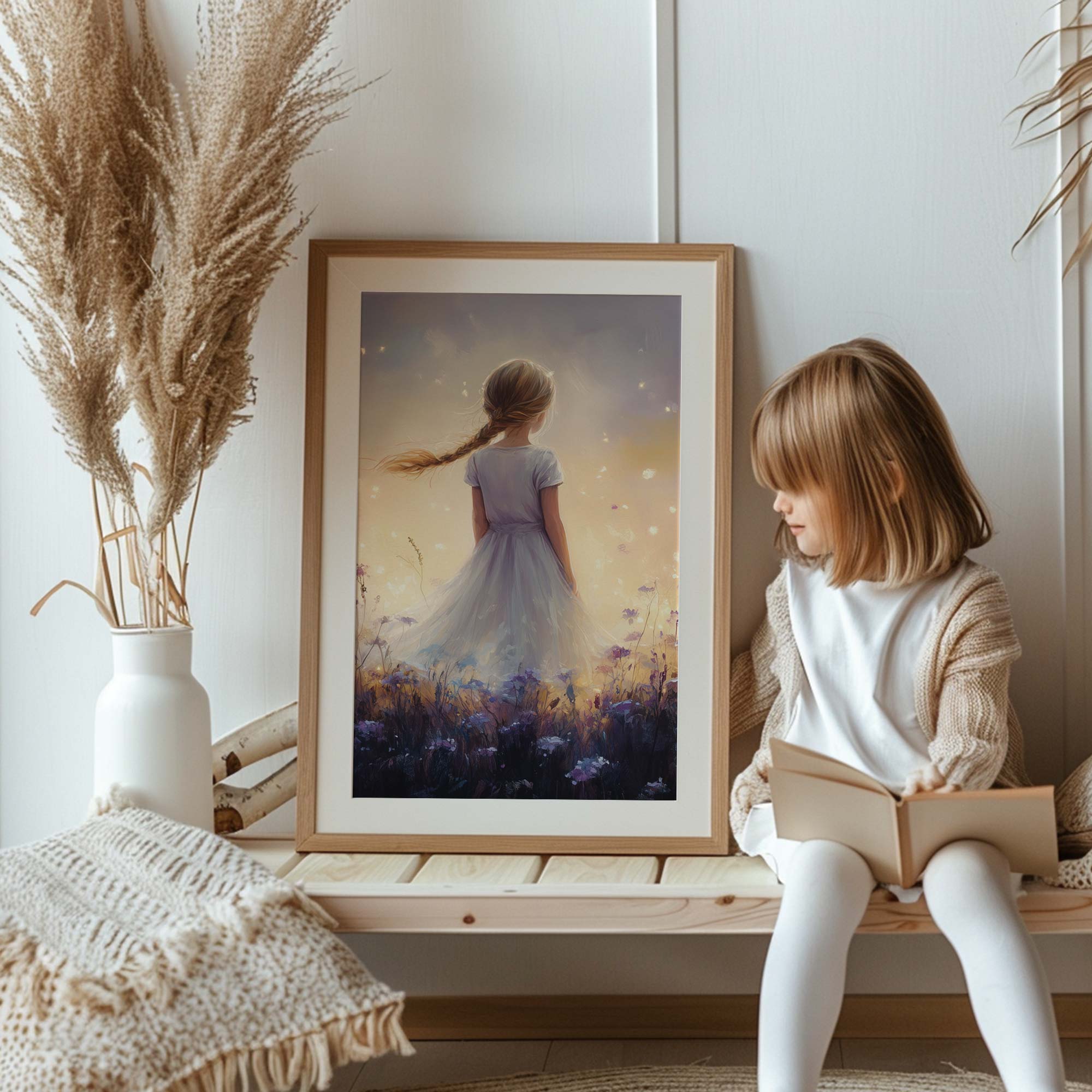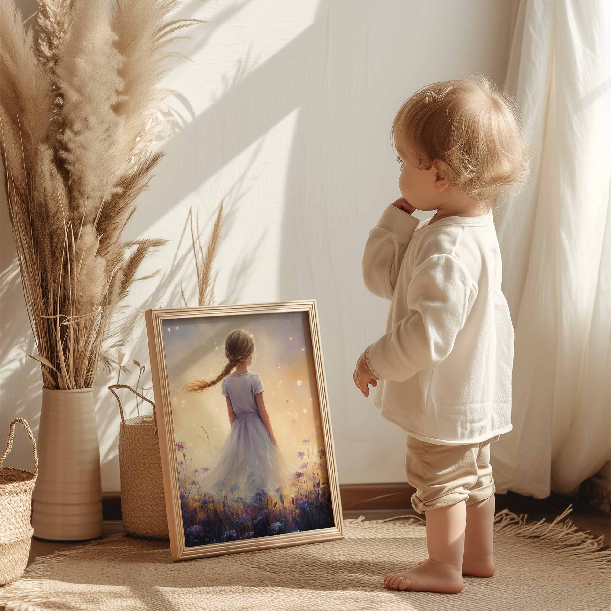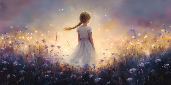Magisch Meisje in Bloemenveld – Dromerig en Onschuldig