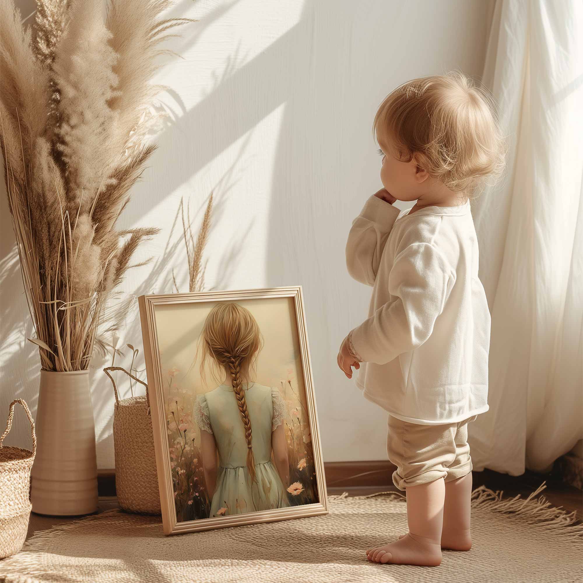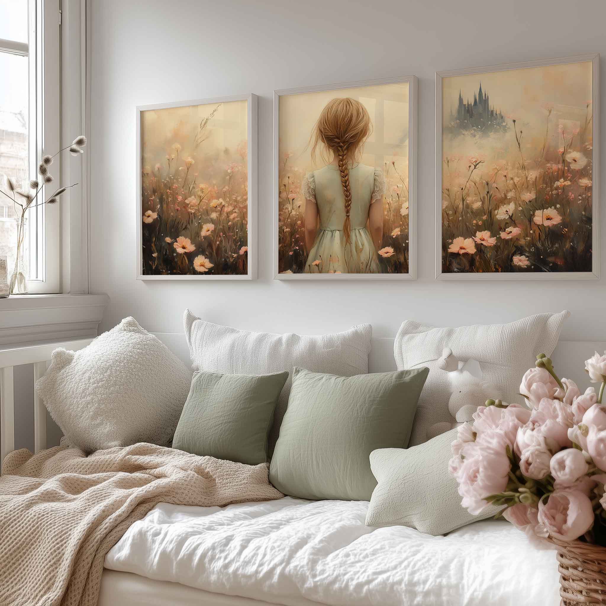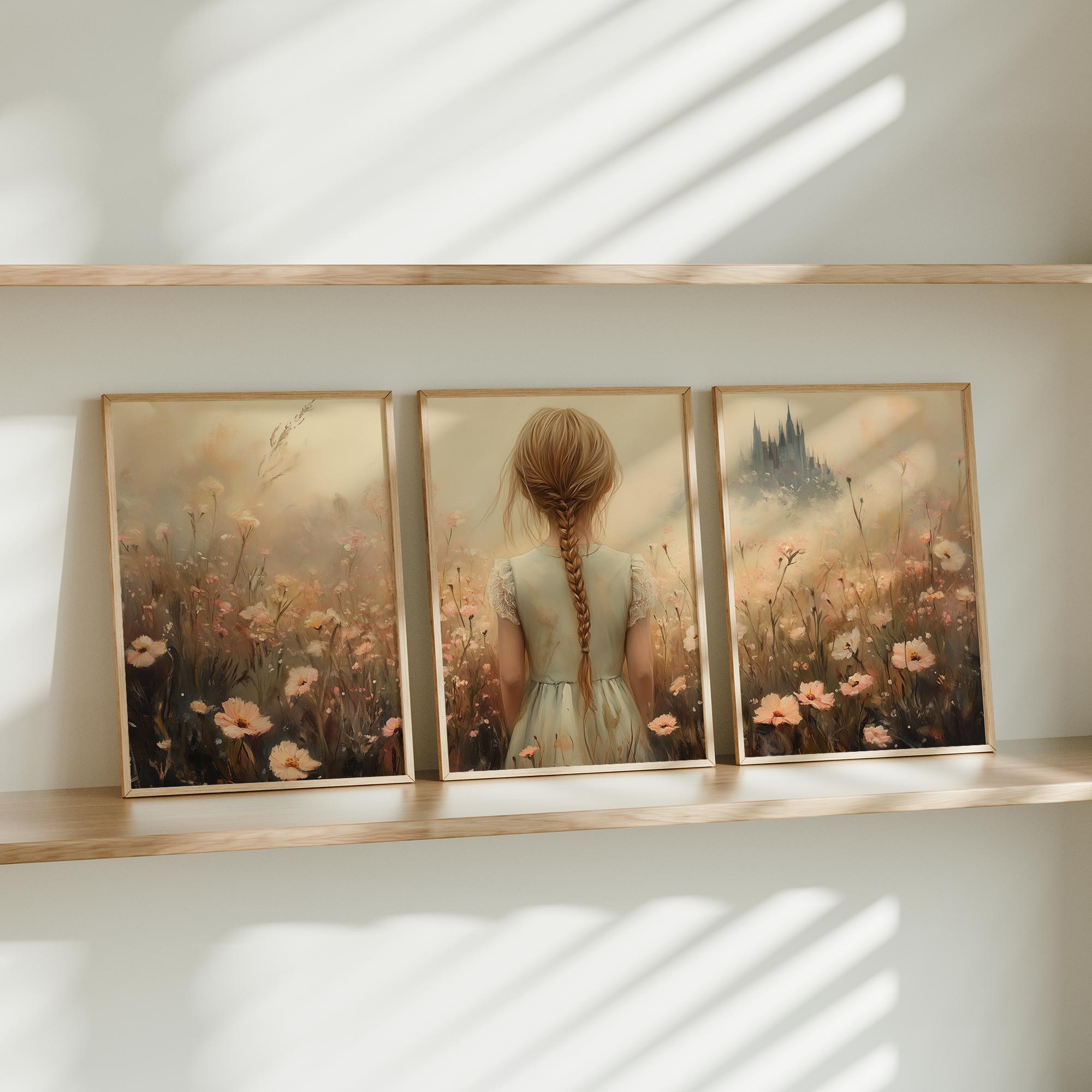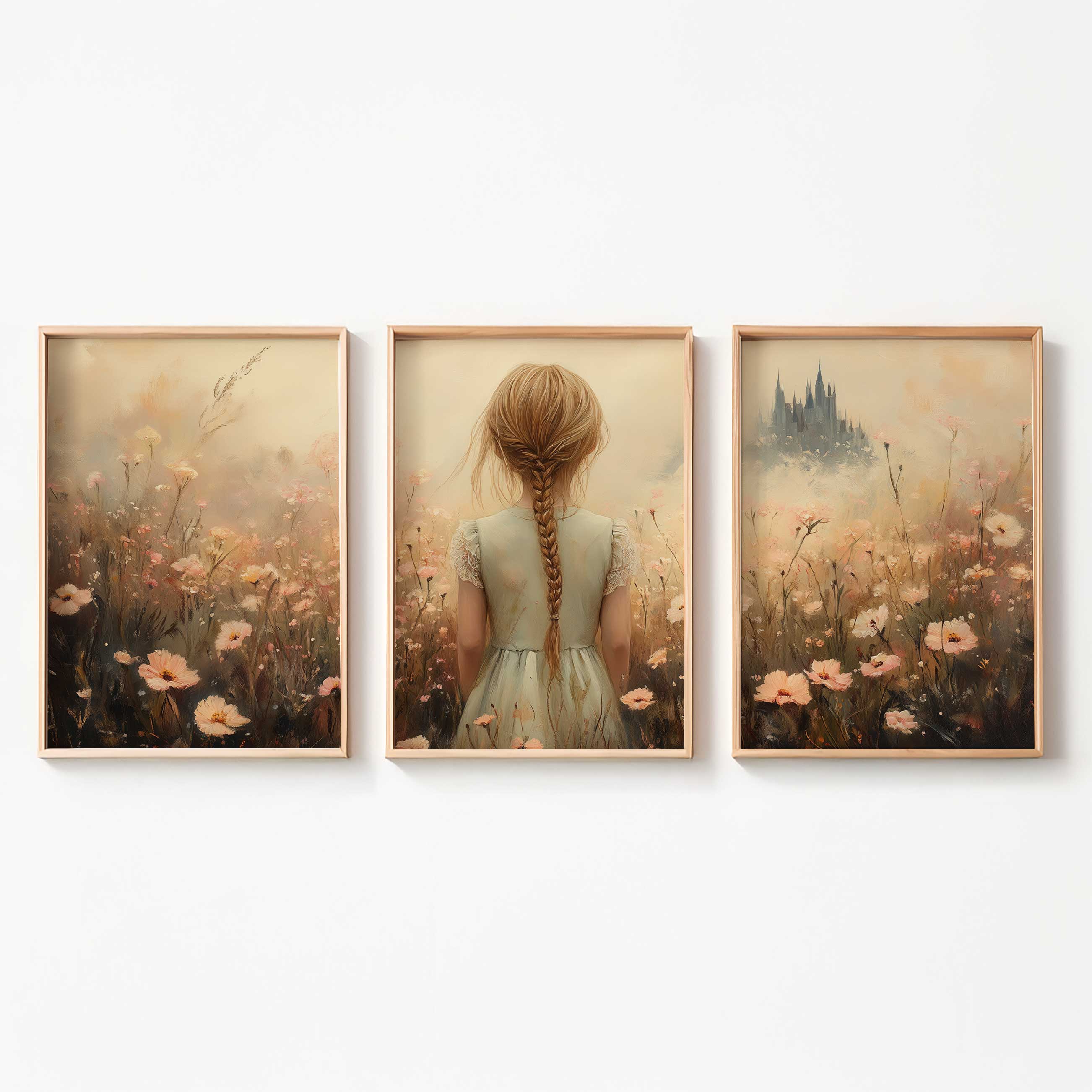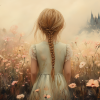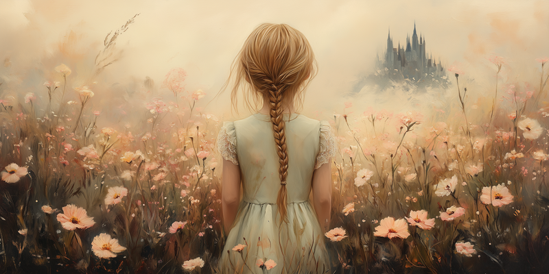 Magisch Meisje in Bloemenveld met Betoverend Kasteel