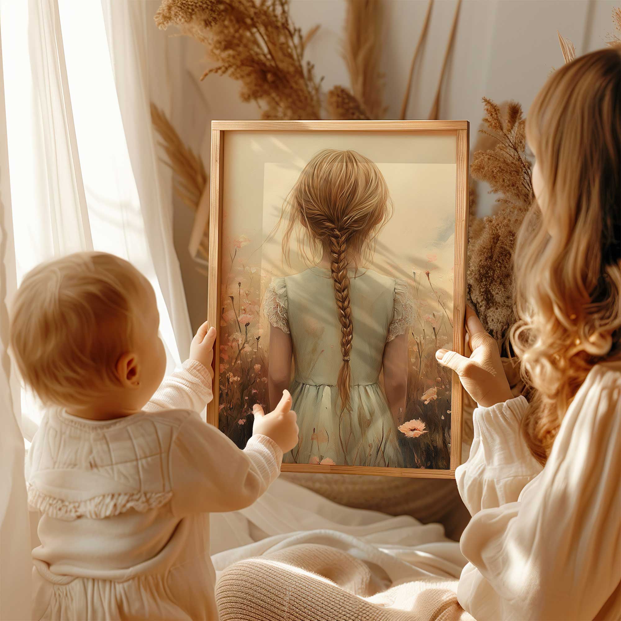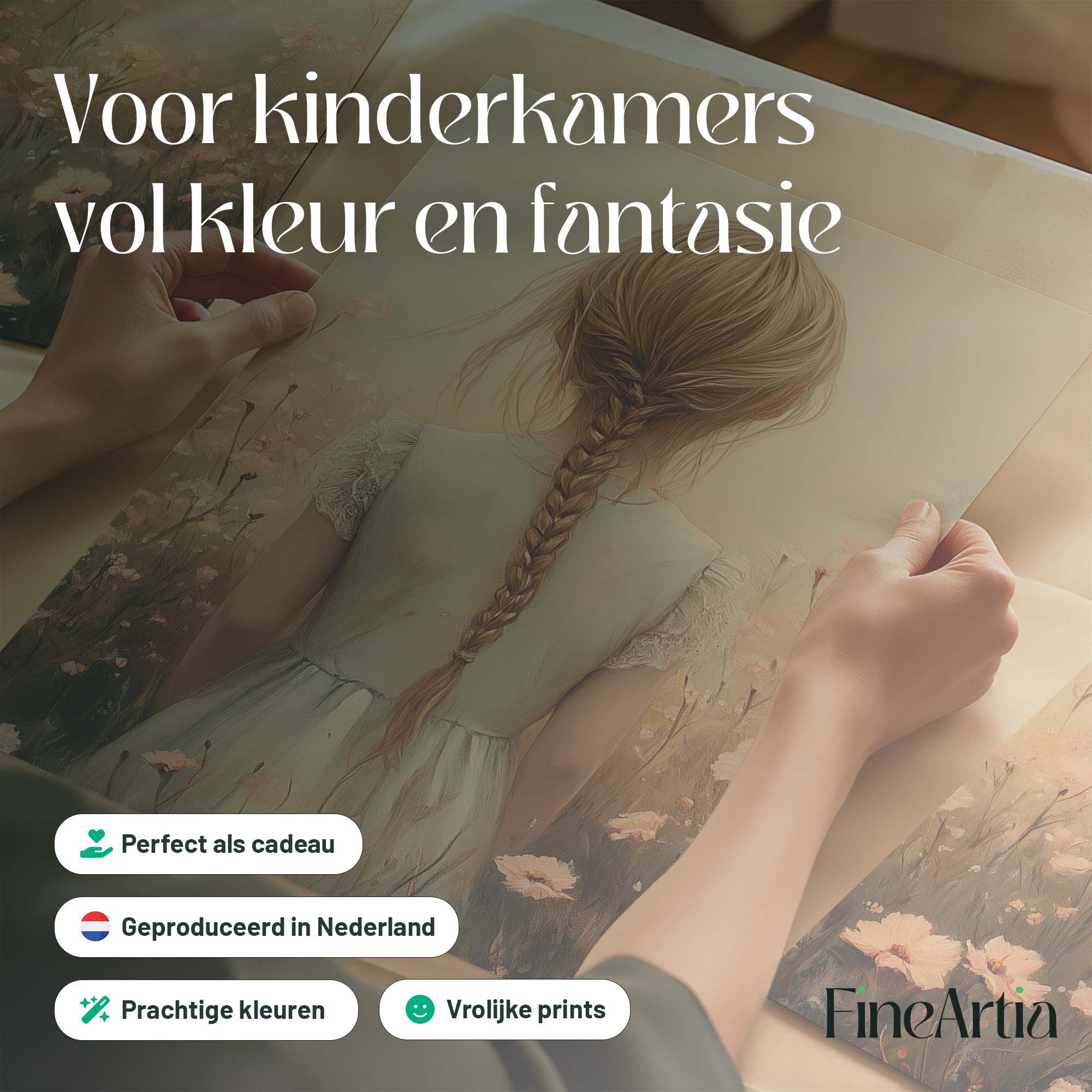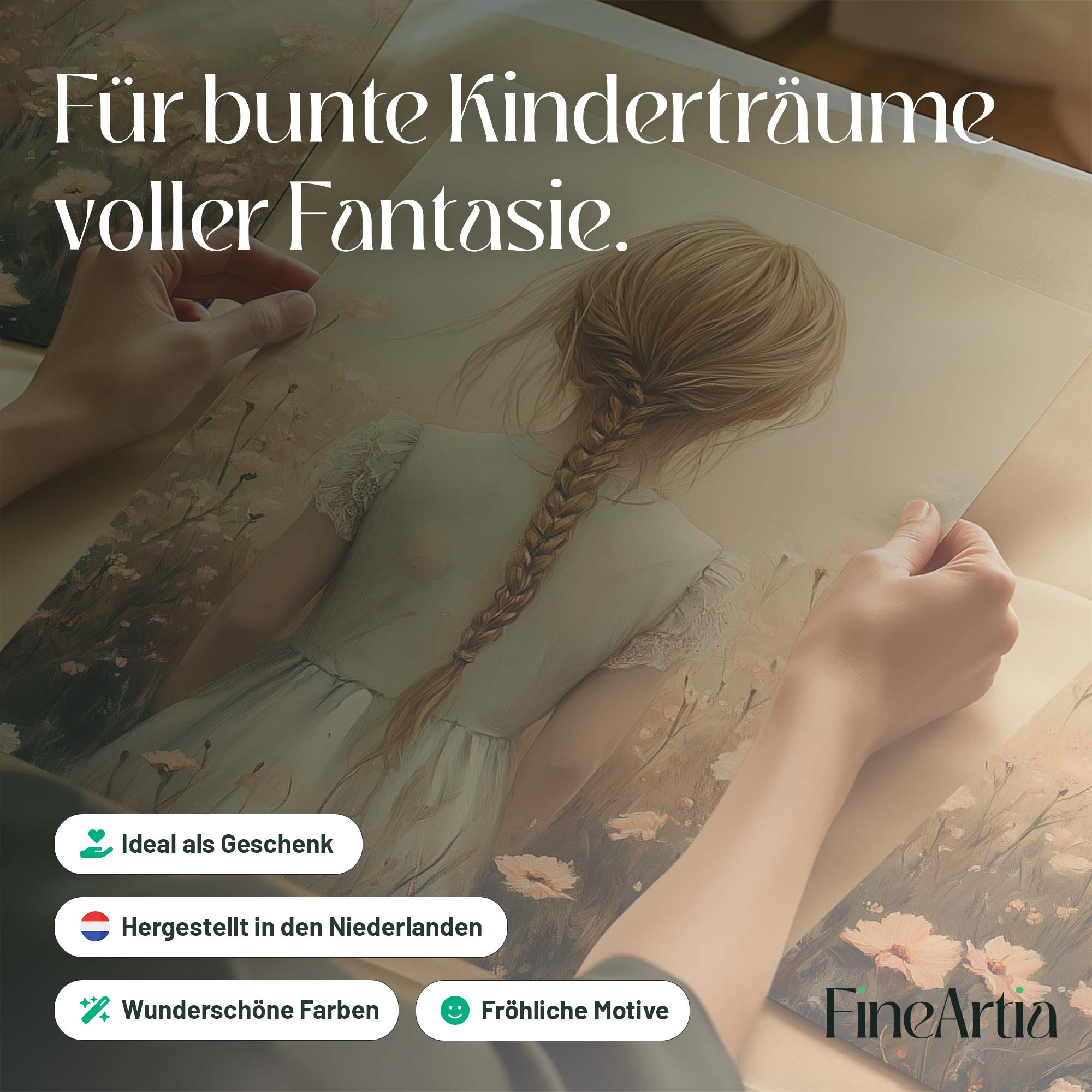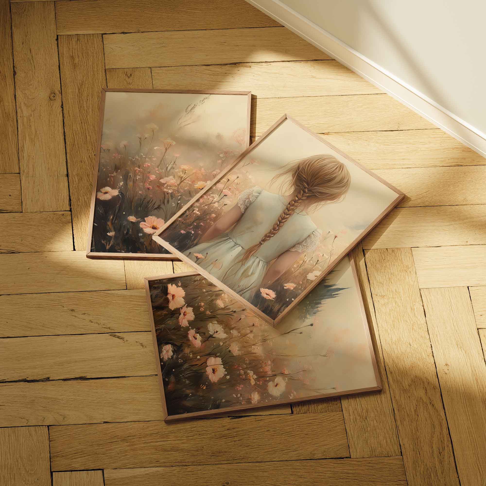 Magisch Meisje in Bloemenveld met Betoverend Kasteel