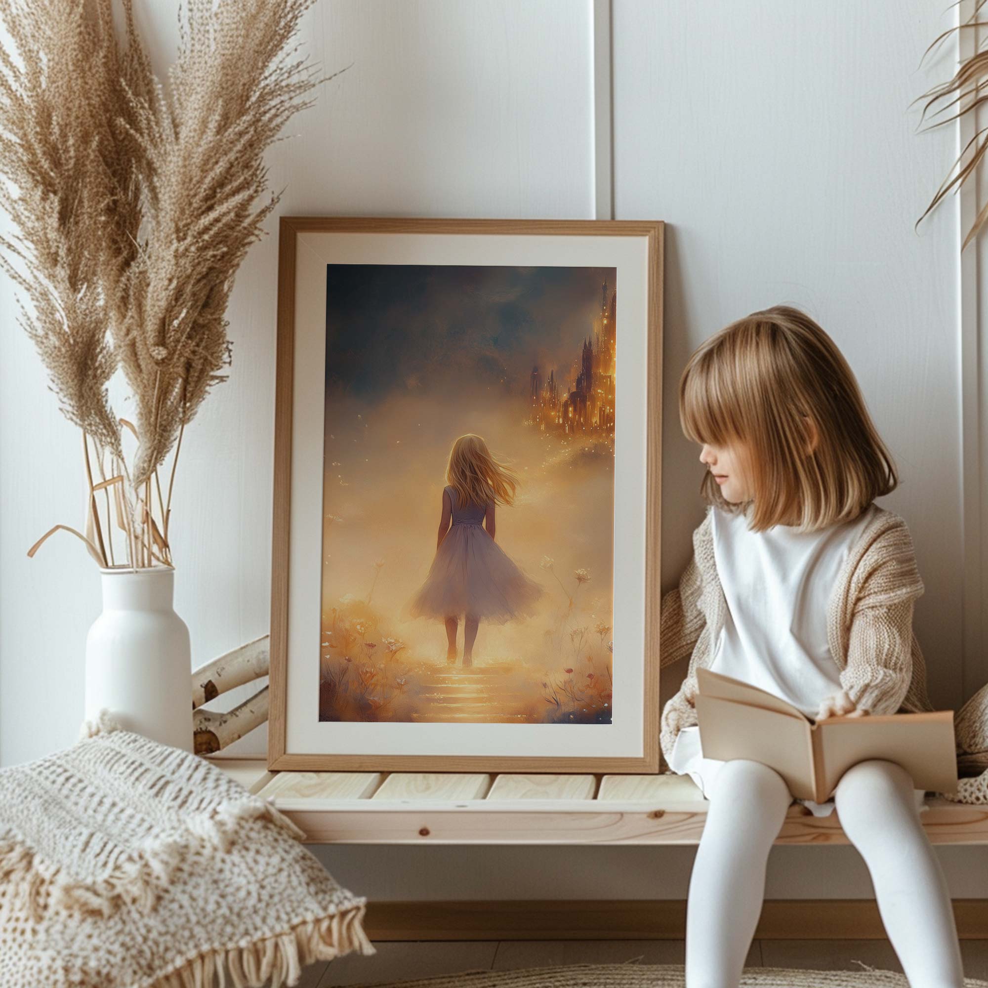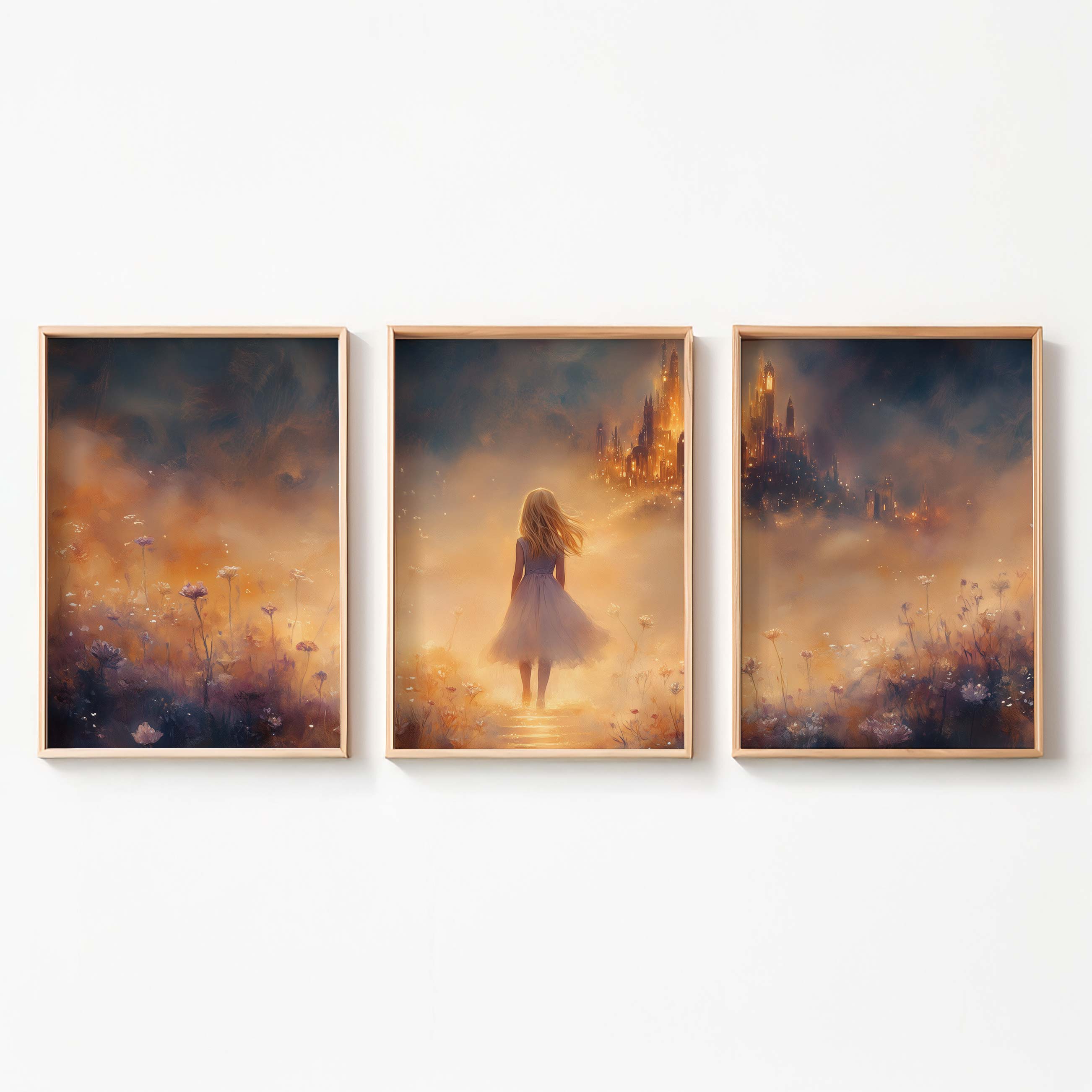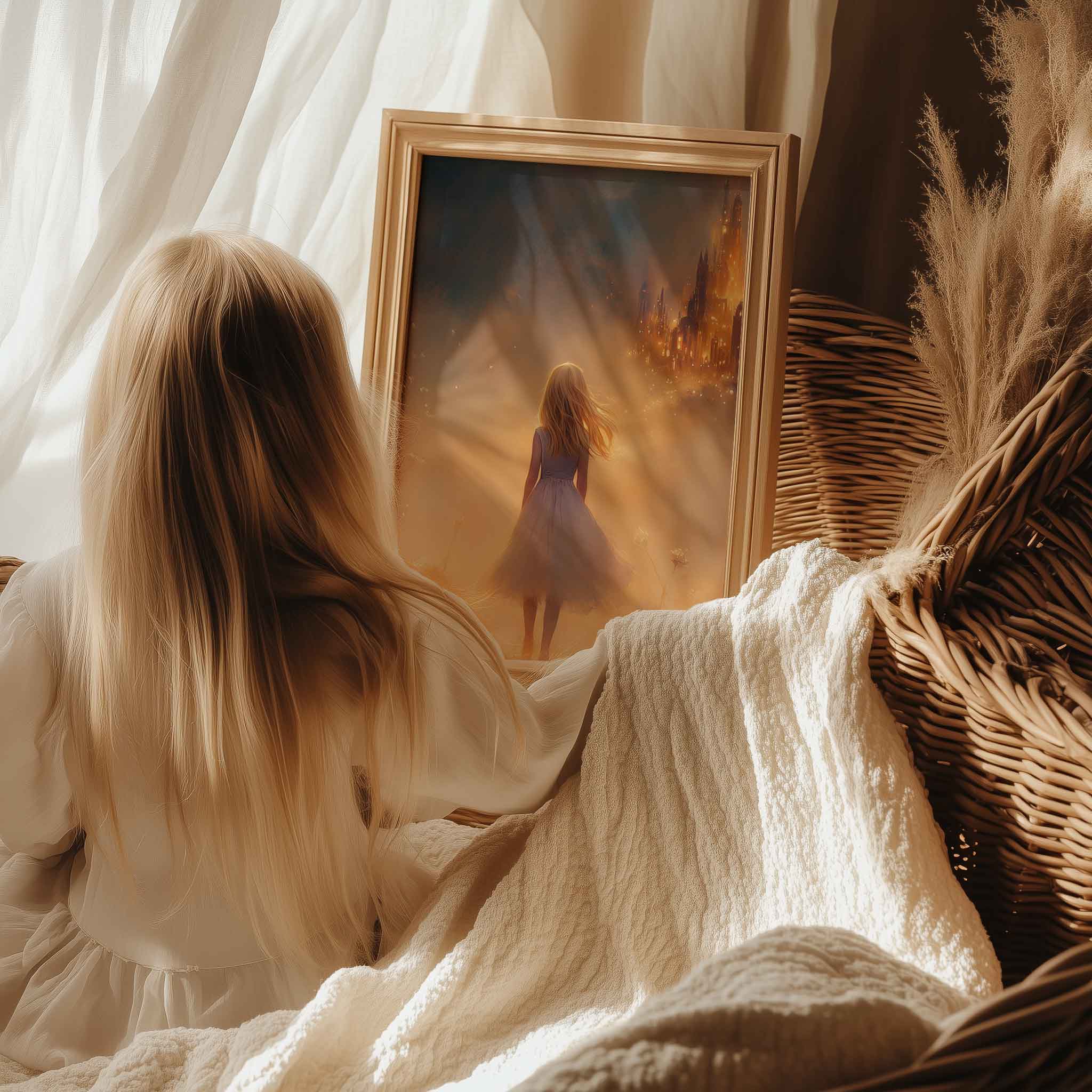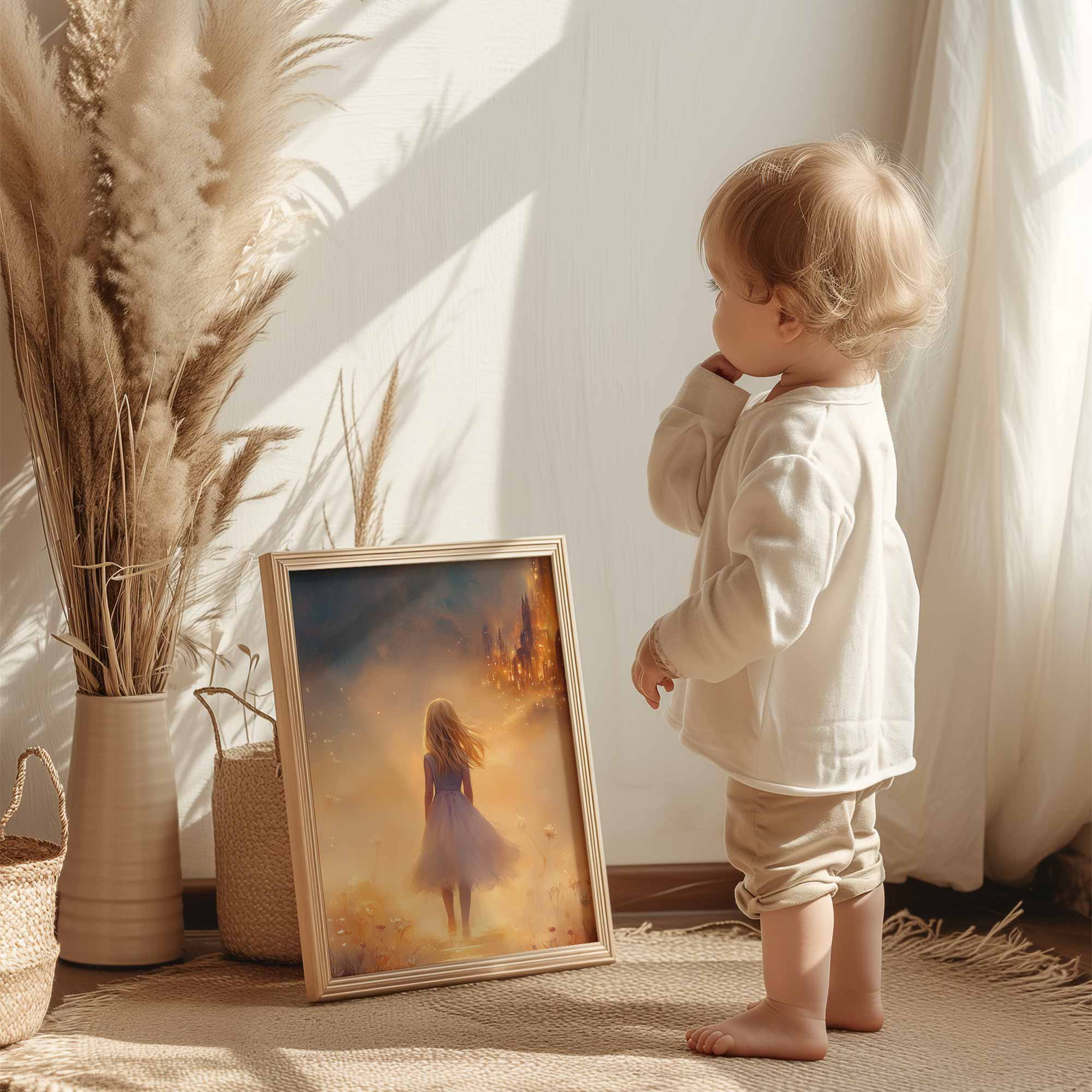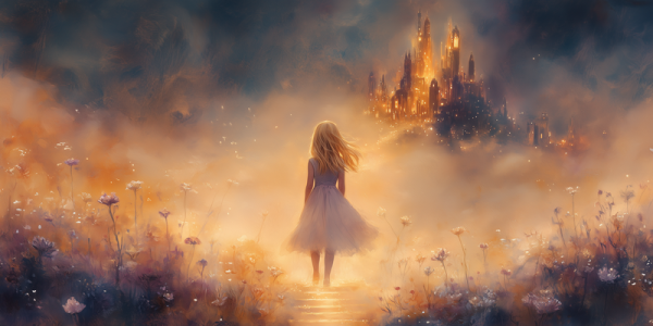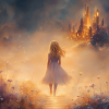 Magisch Meisje in Bloemenveld met Betoverend Kasteel