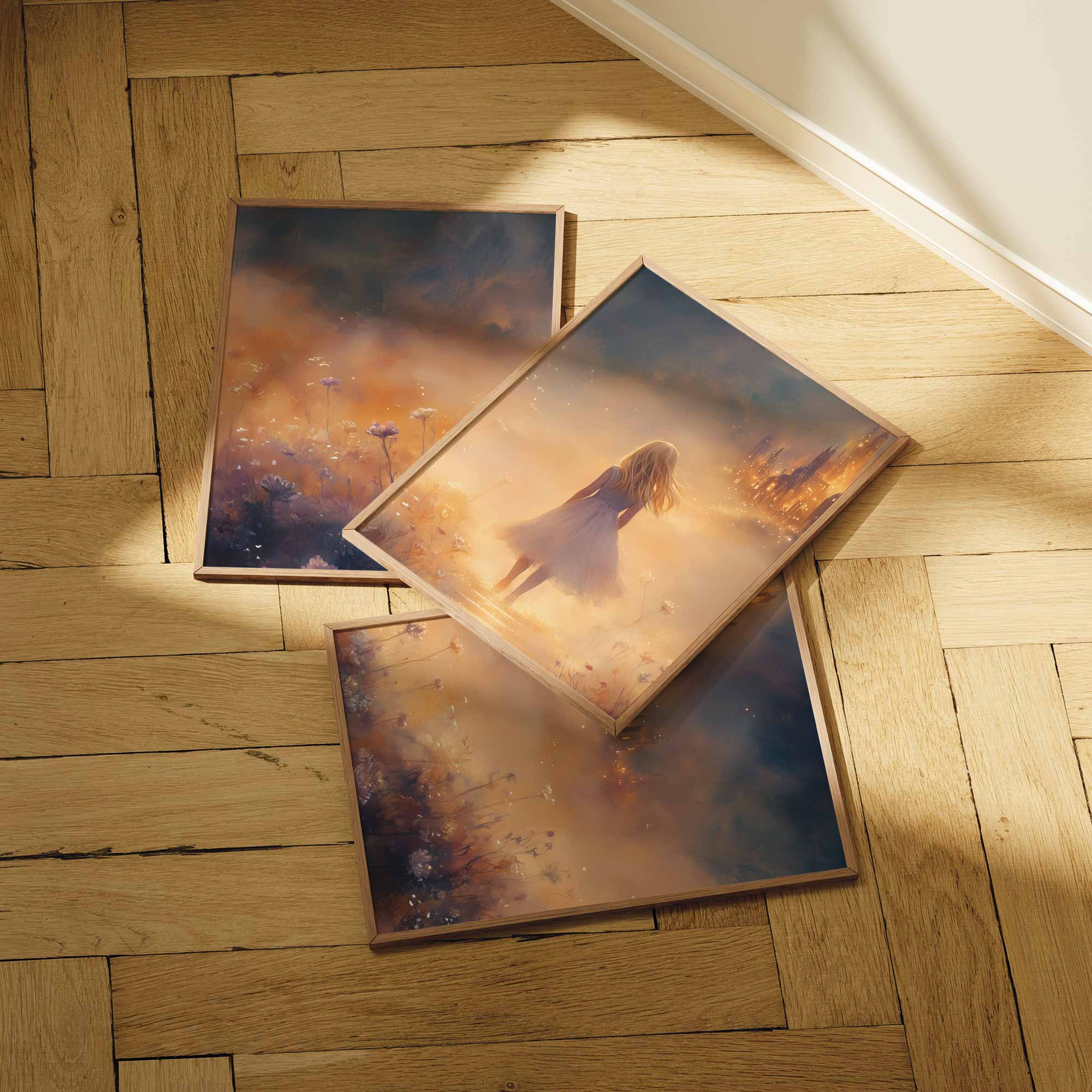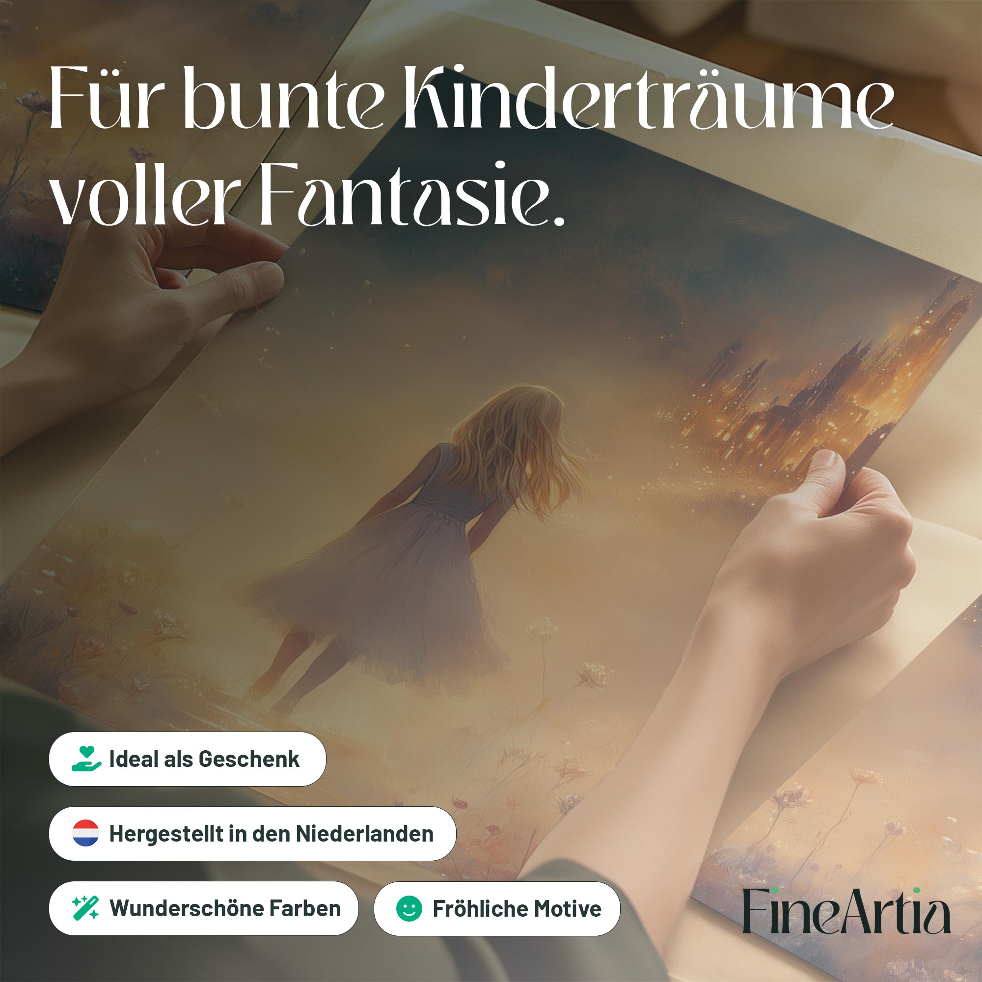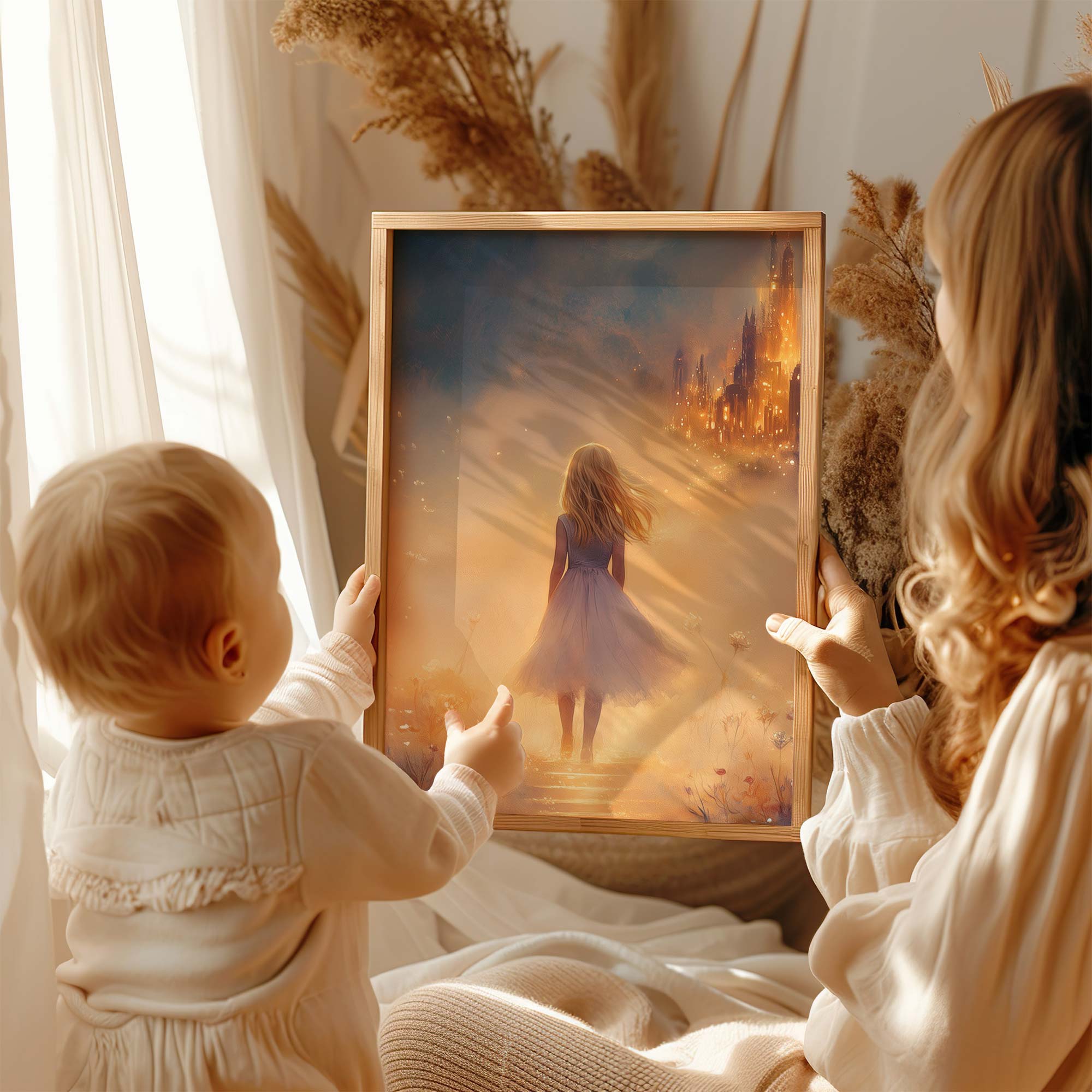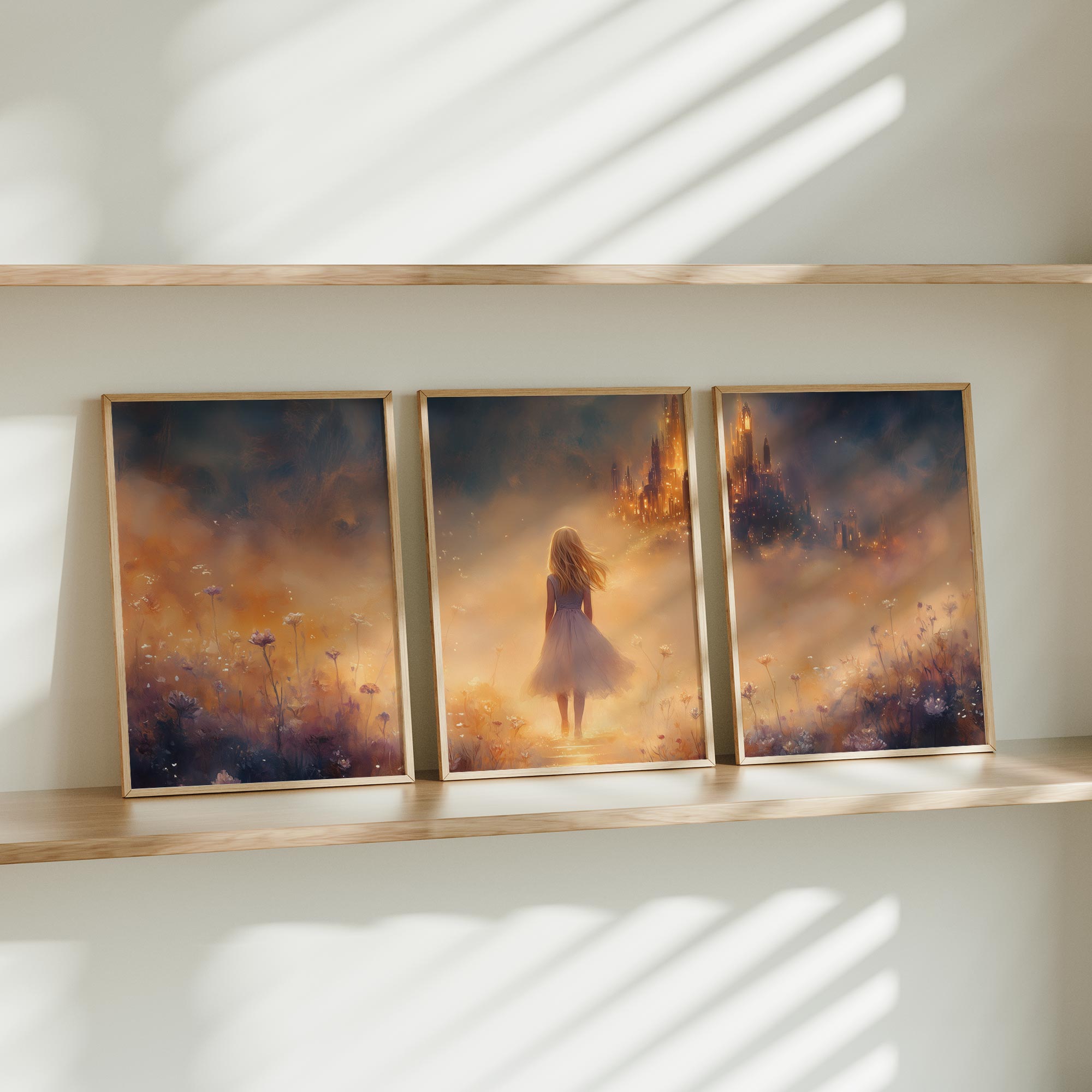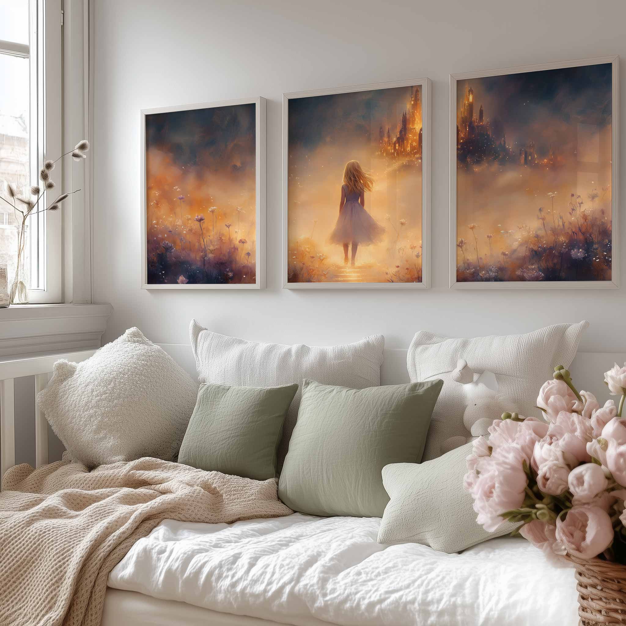 Magisch Meisje in Bloemenveld met Betoverend Kasteel