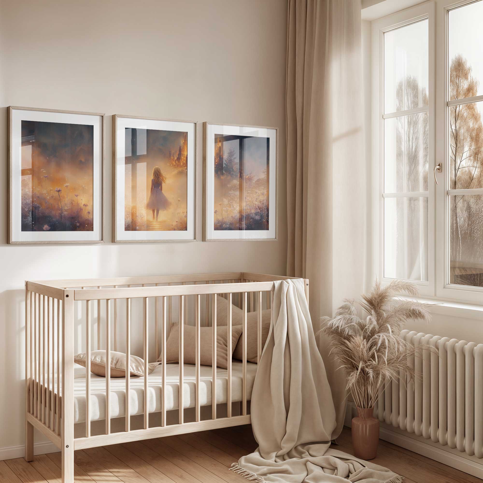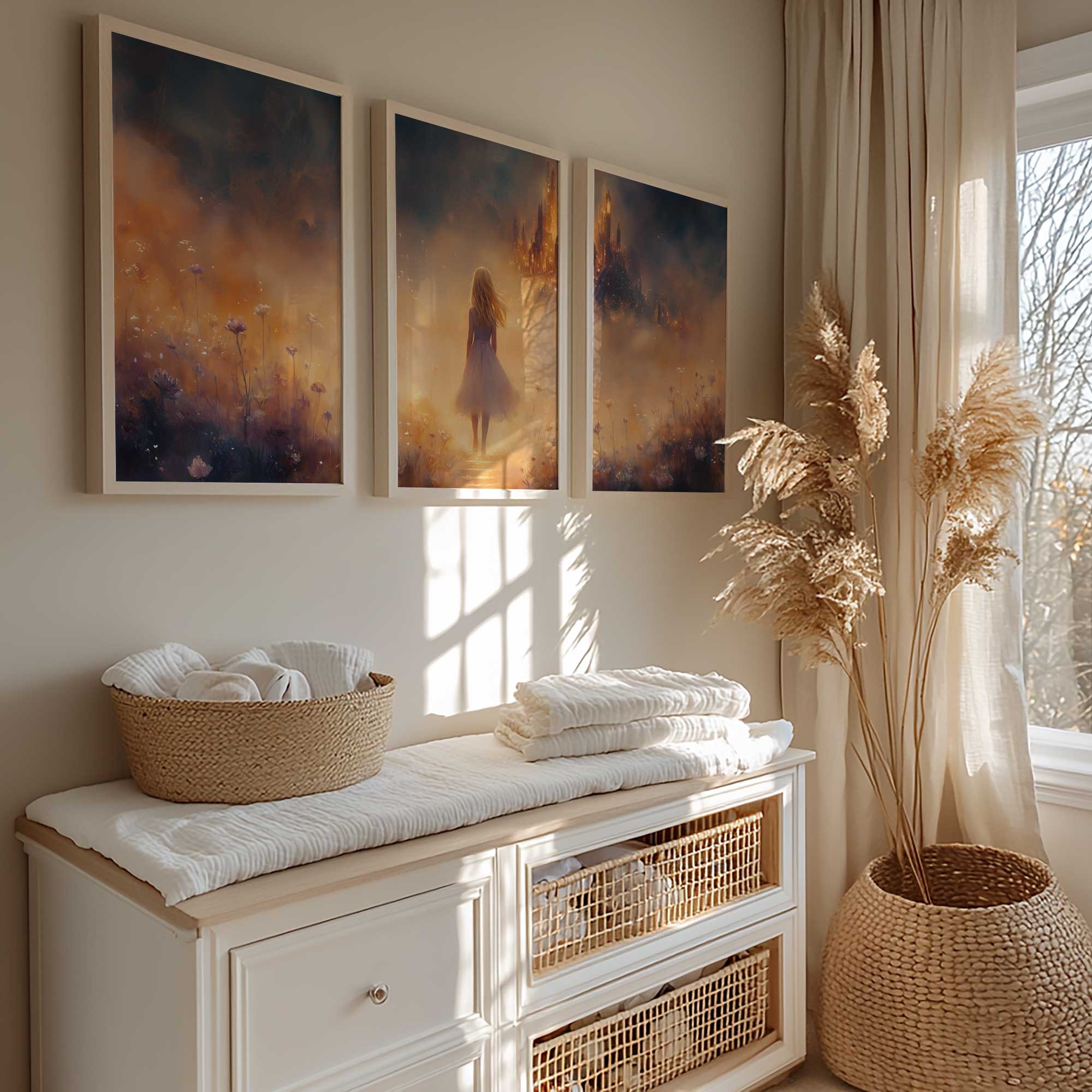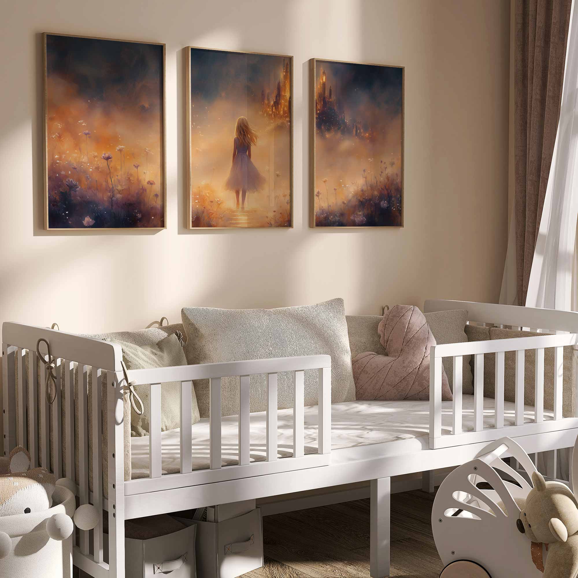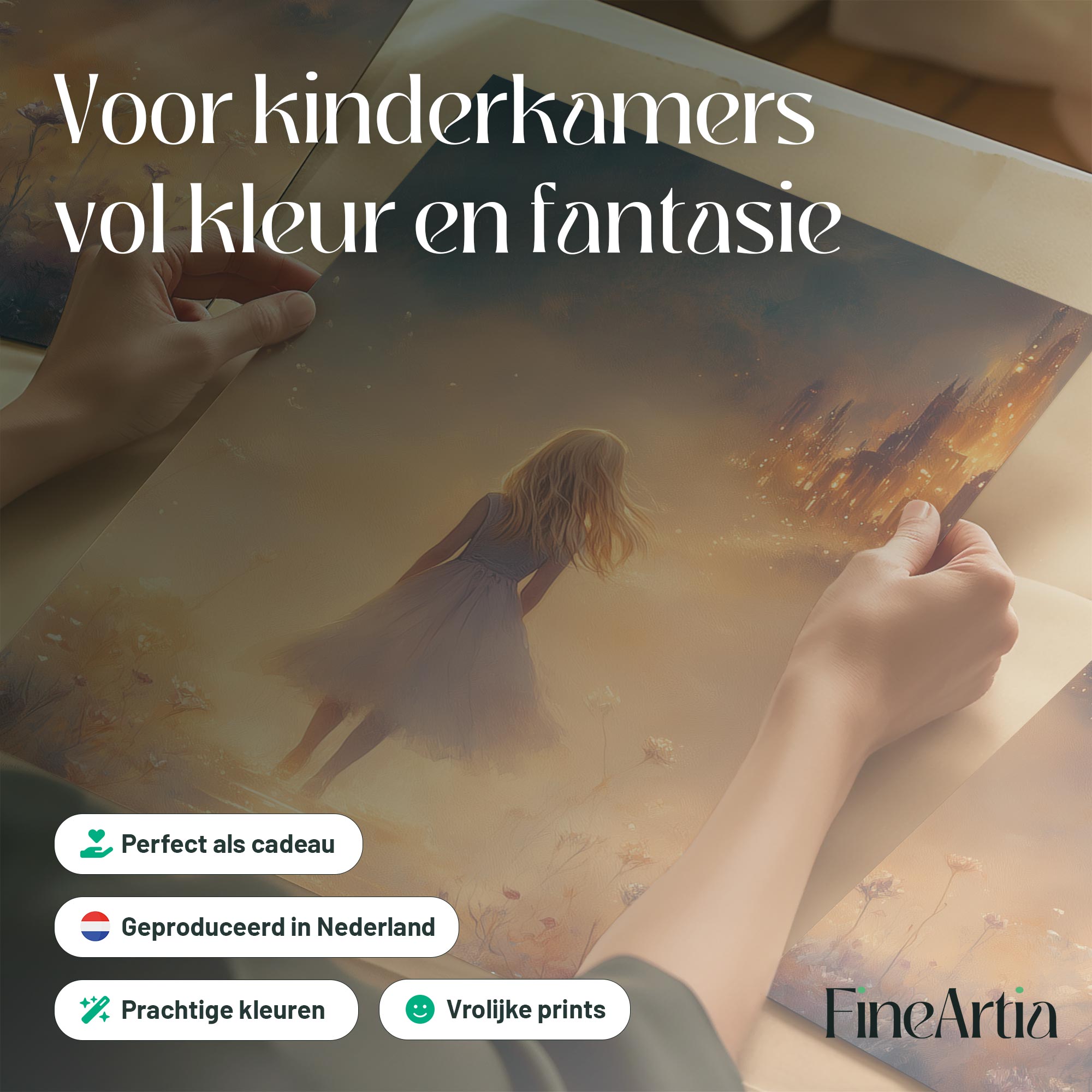Magisch Meisje in Bloemenveld met Betoverend Kasteel