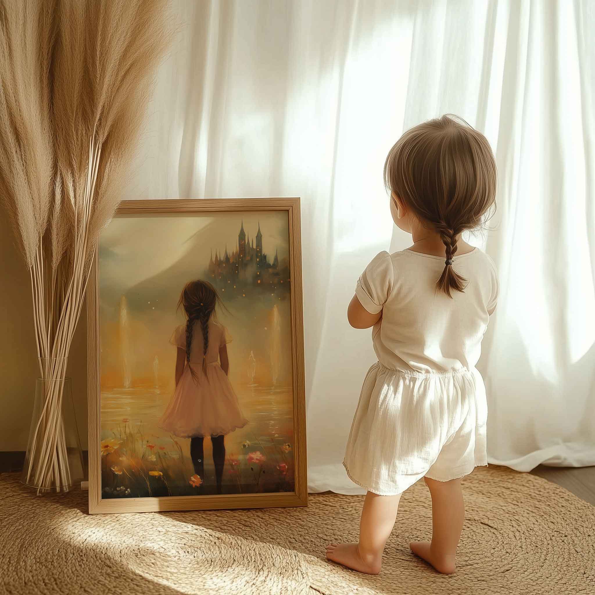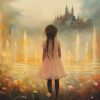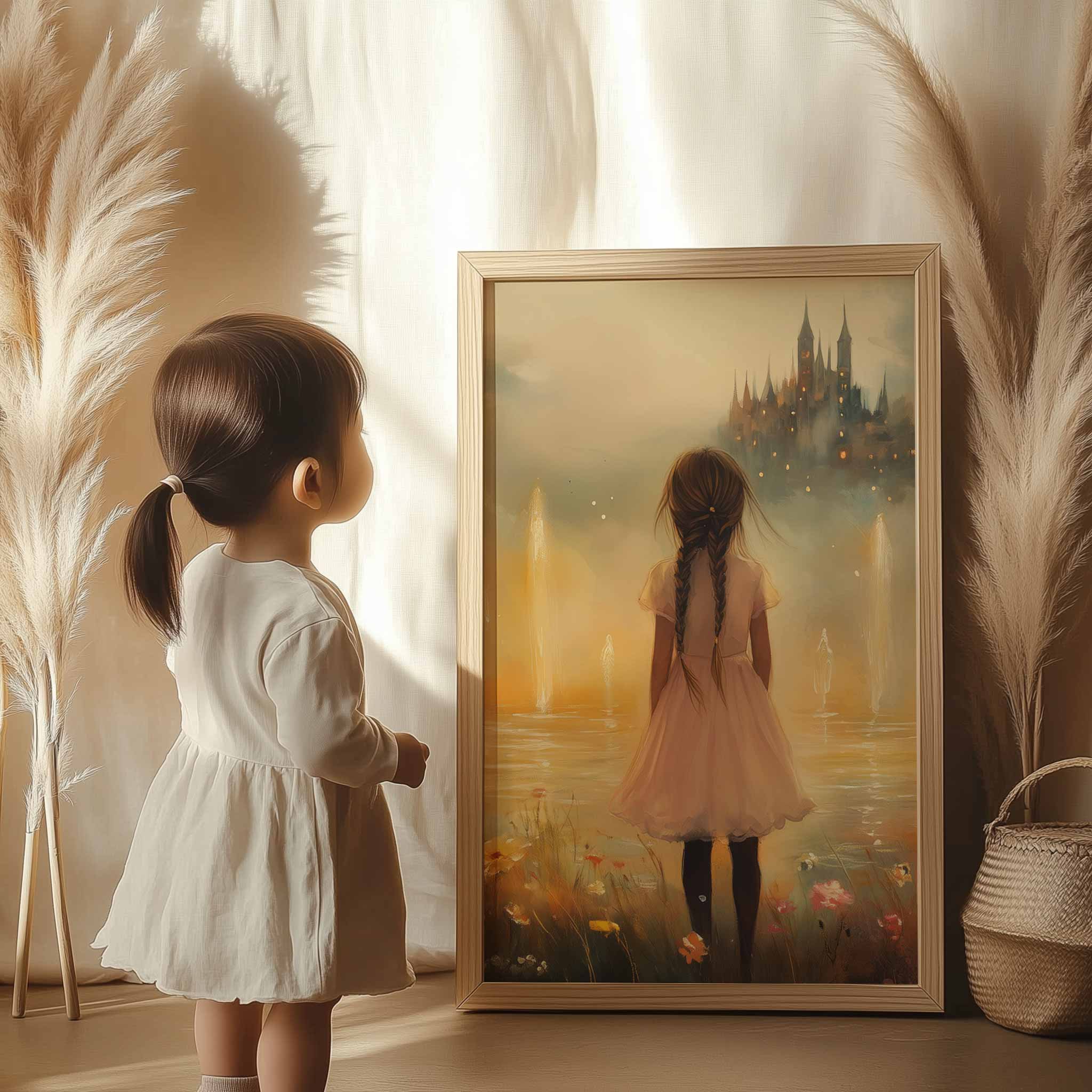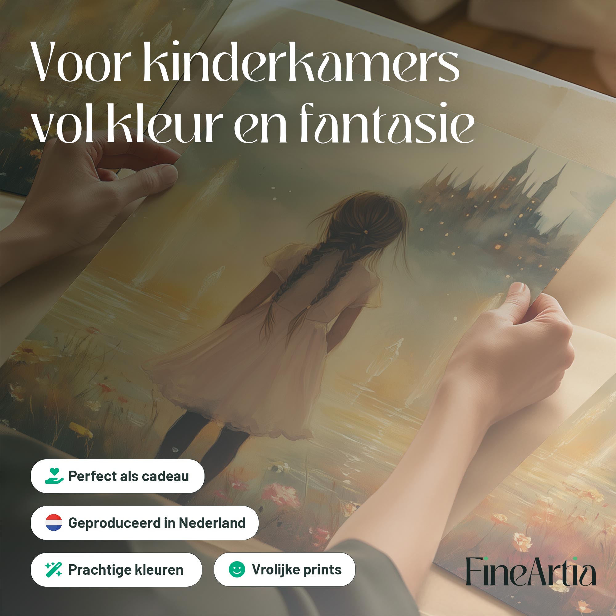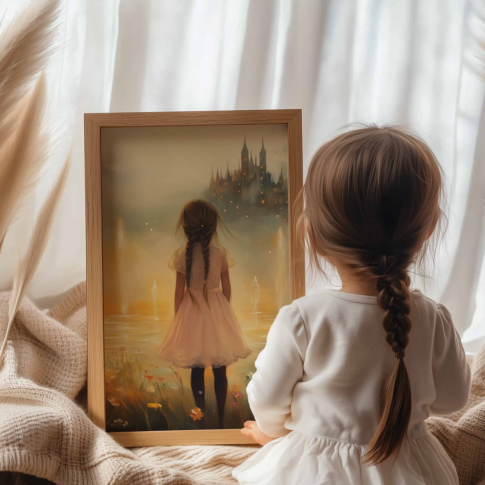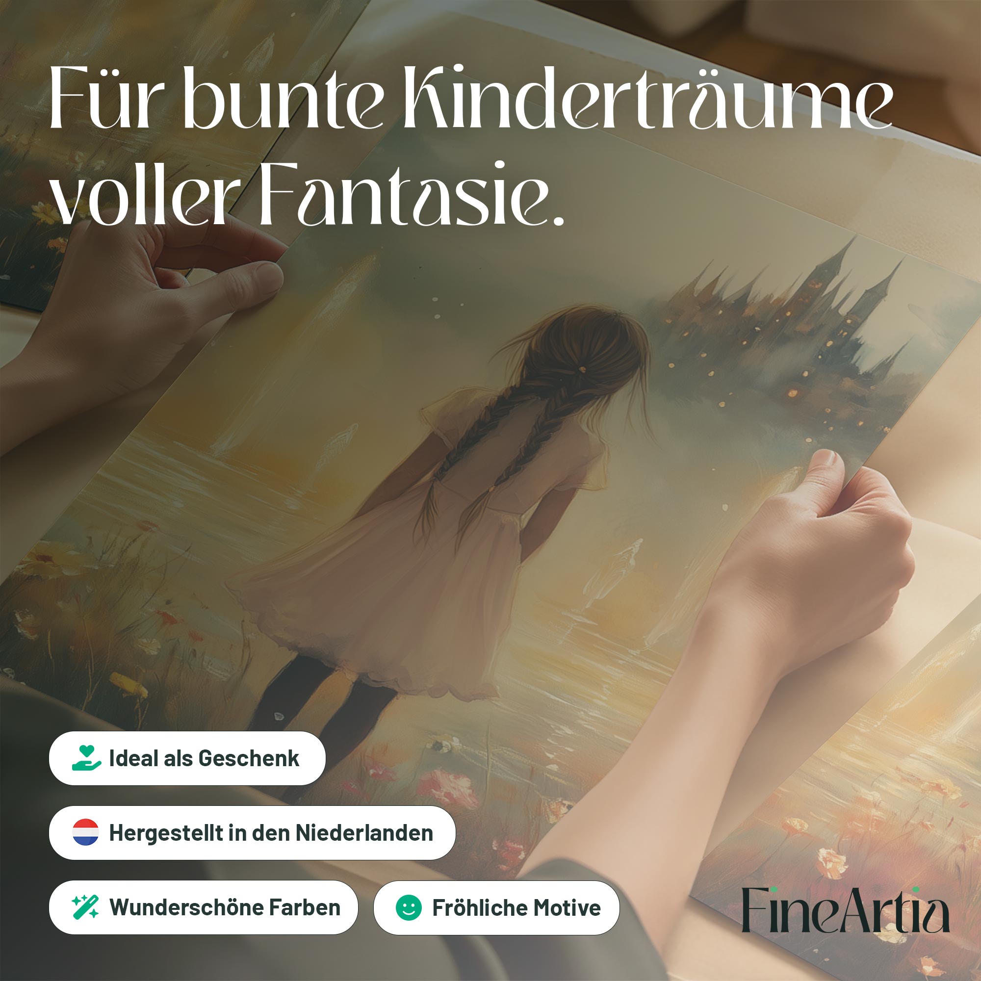 Magisch Meisje in Bloemenveld met Dromenkasteel