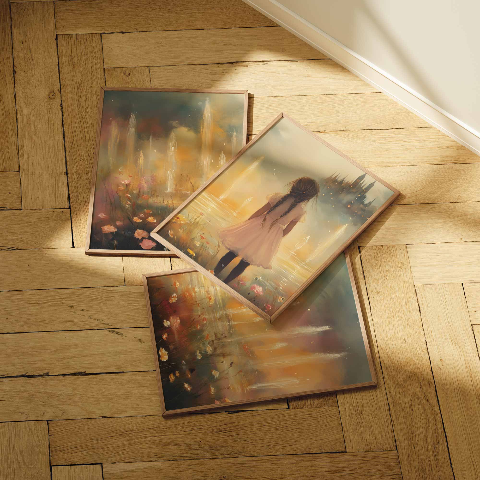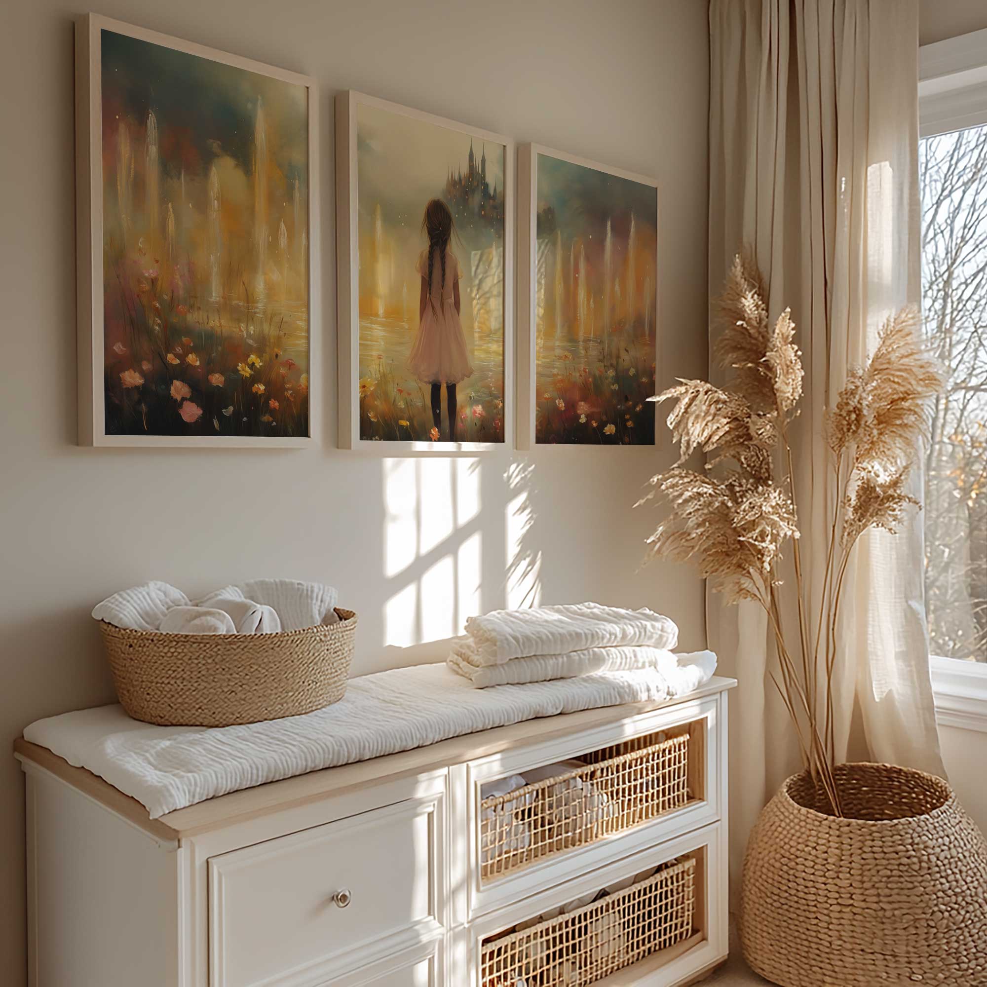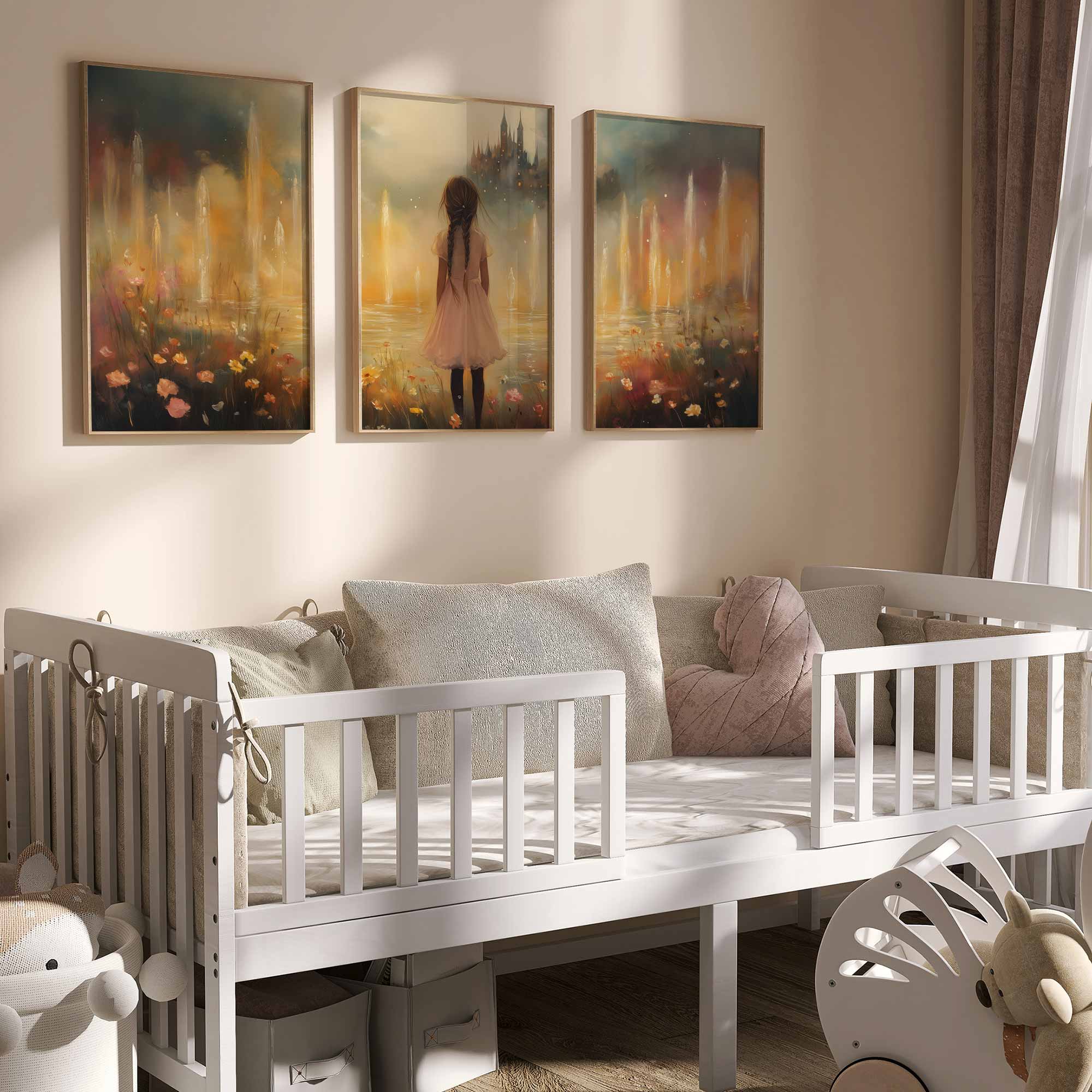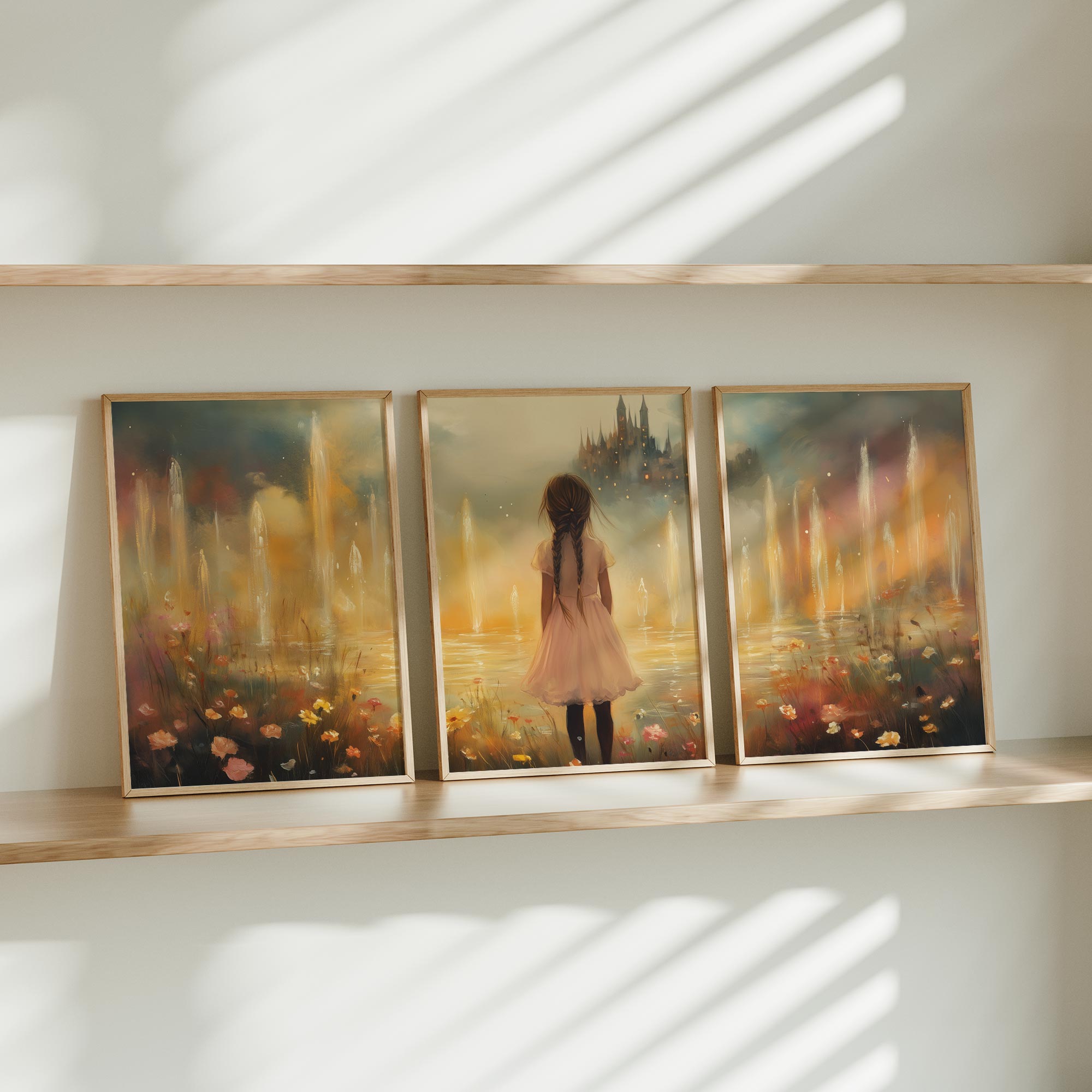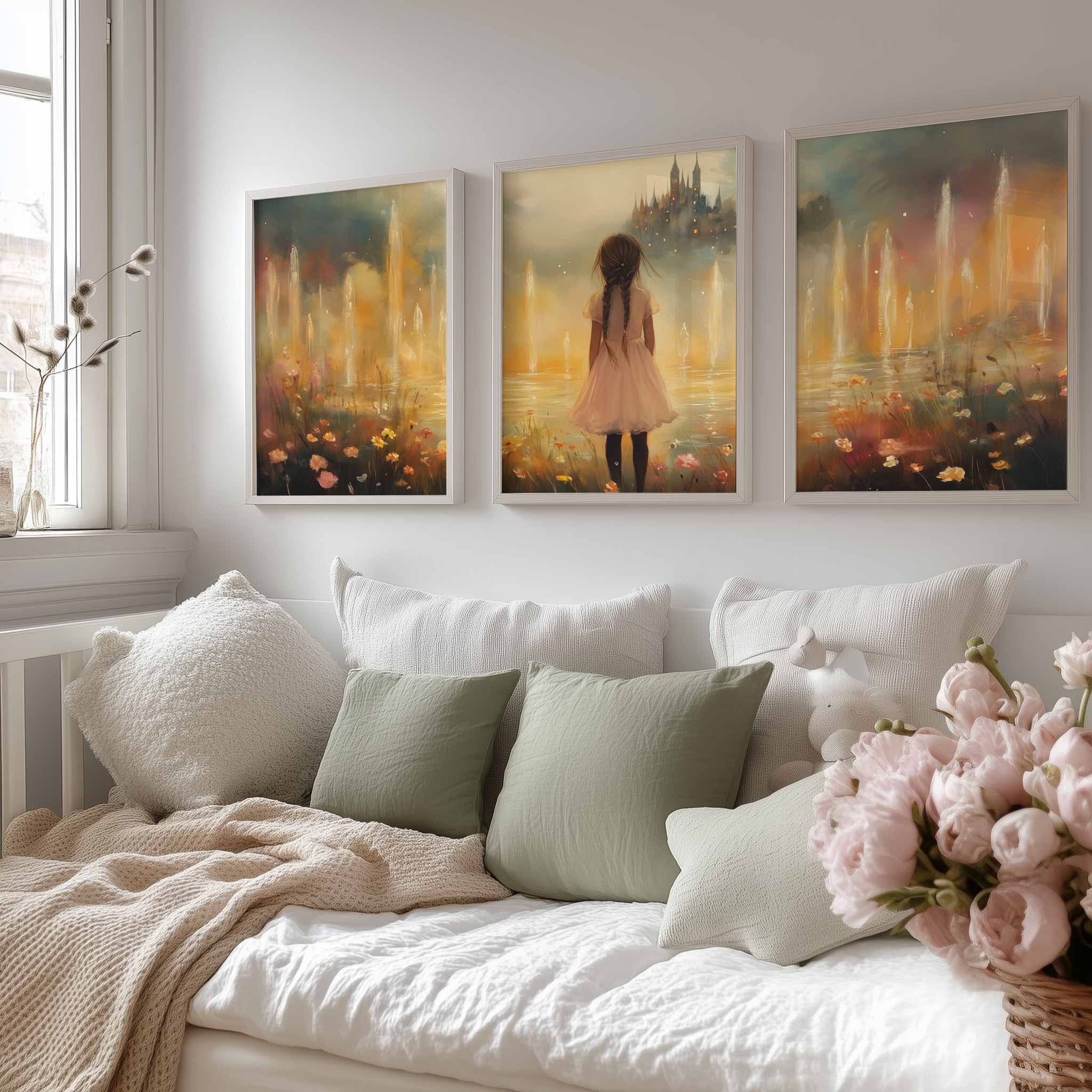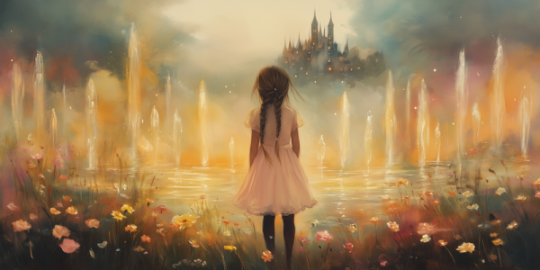 Magisch Meisje in Bloemenveld met Dromenkasteel