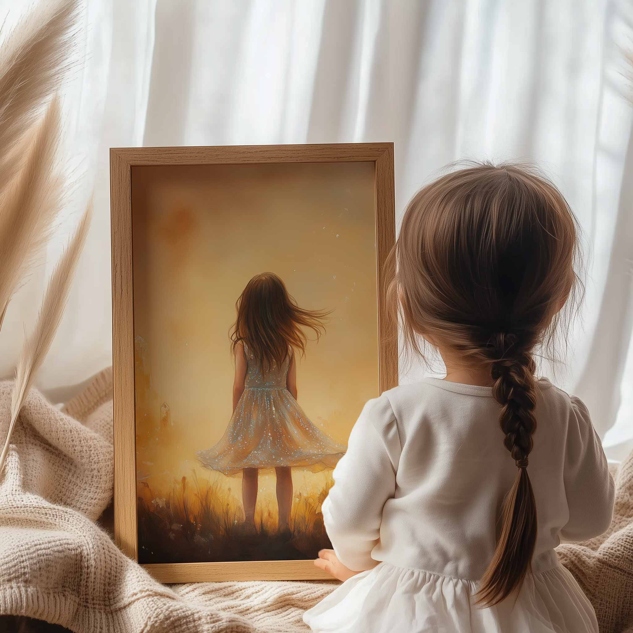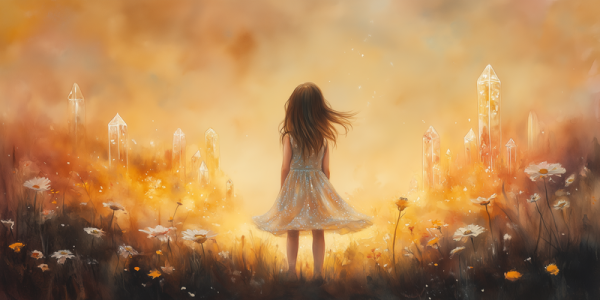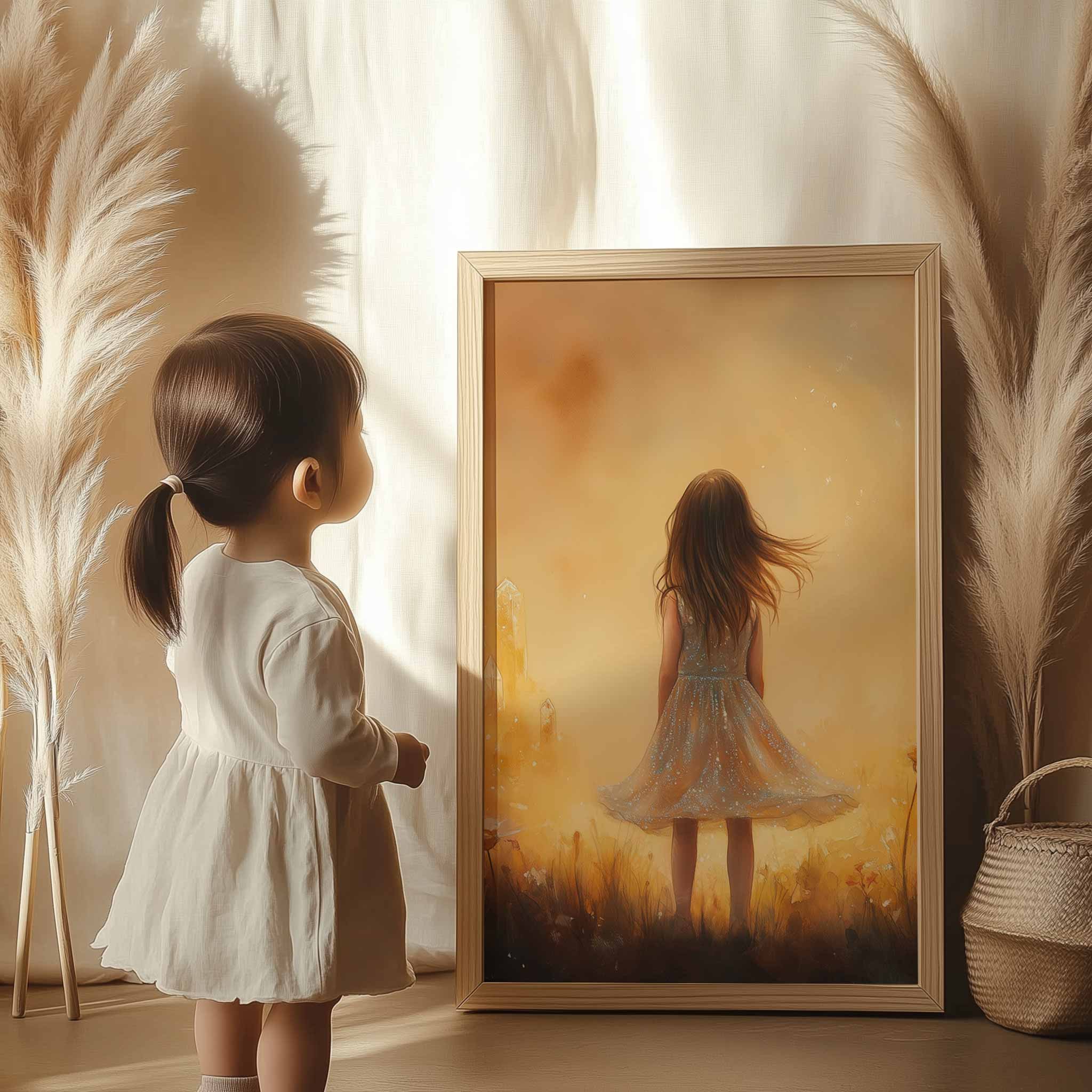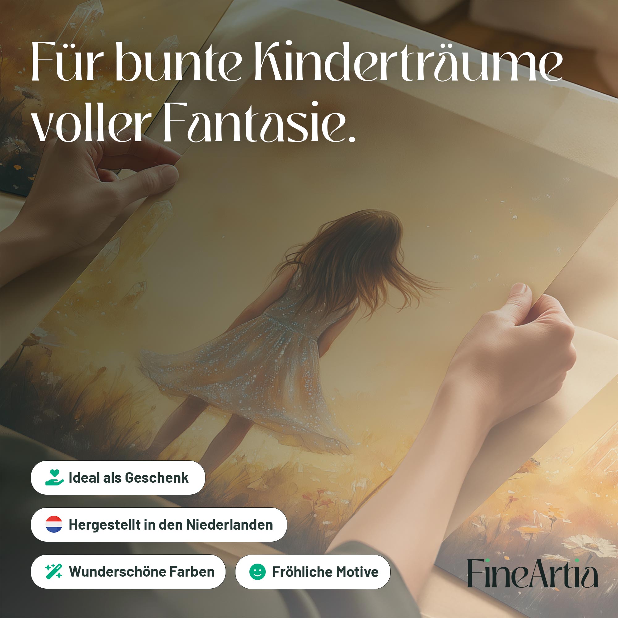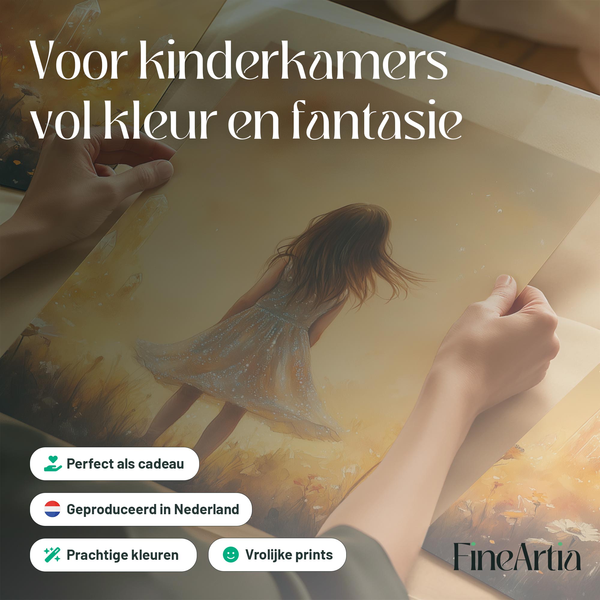 Magisch Meisje in Bloemenveld met Dromenkasteel