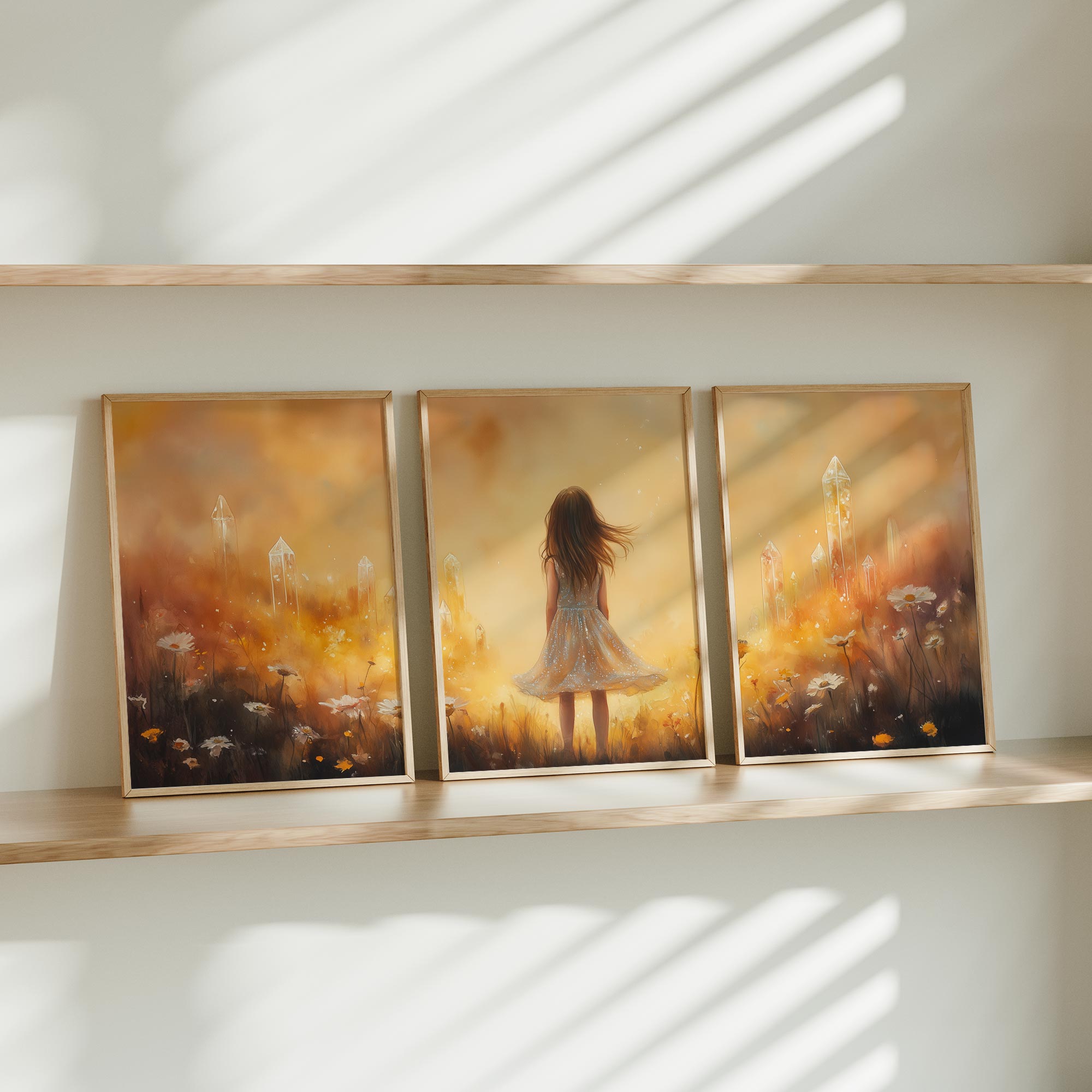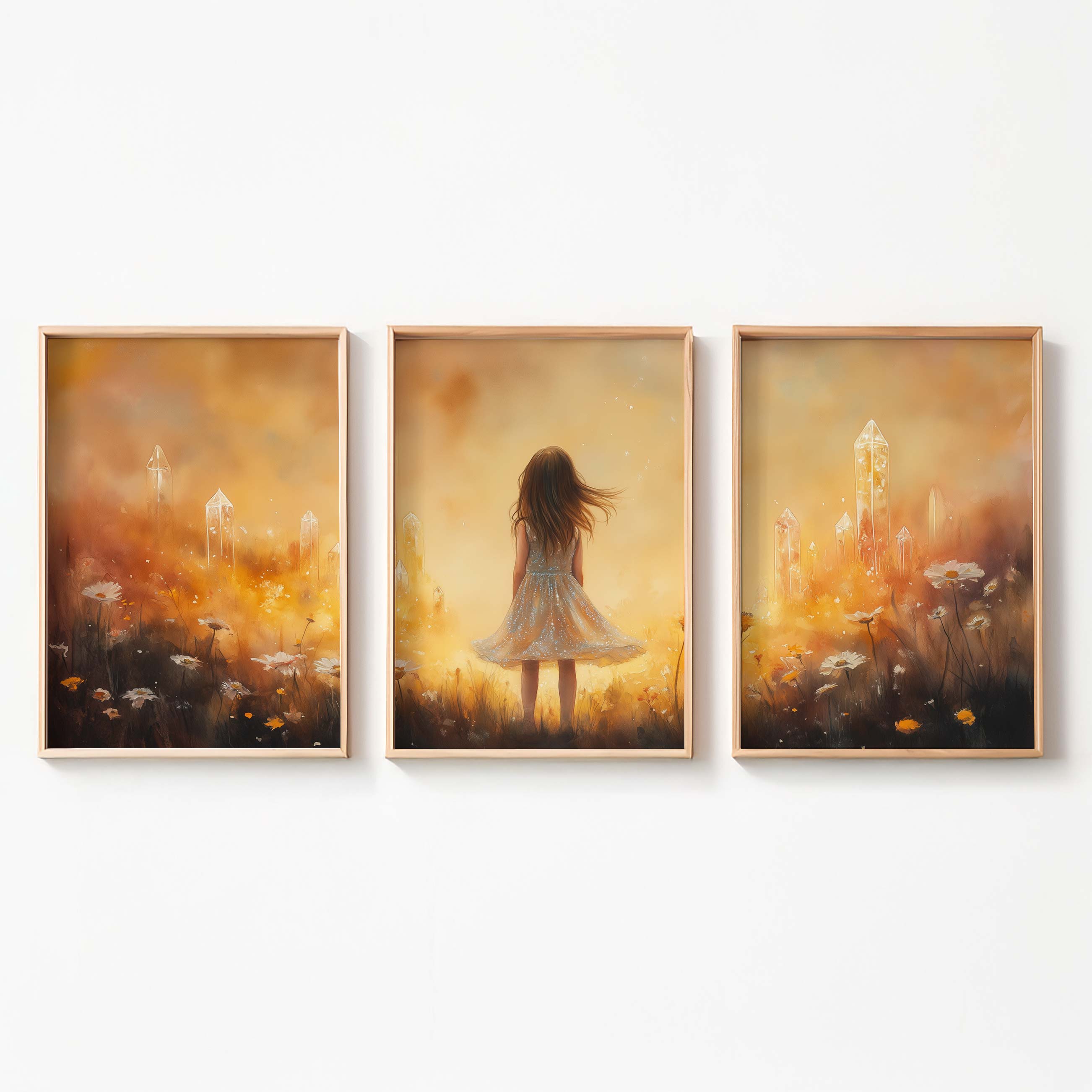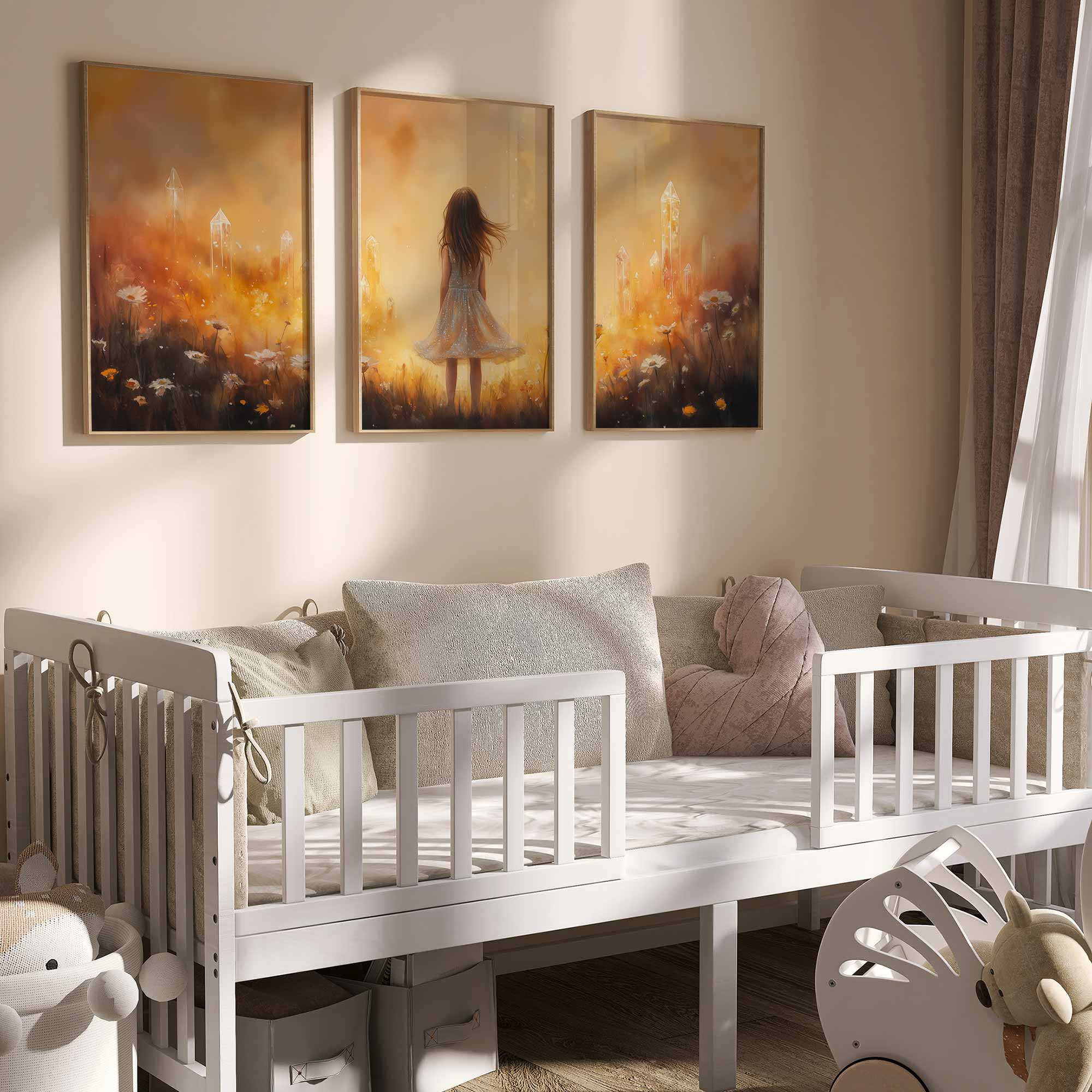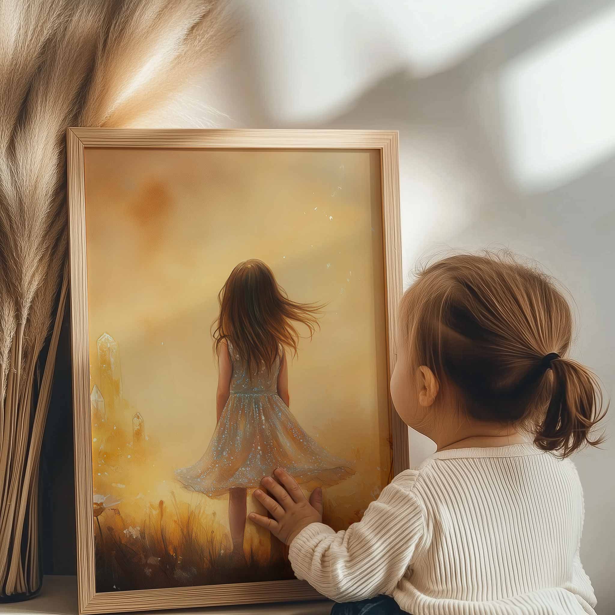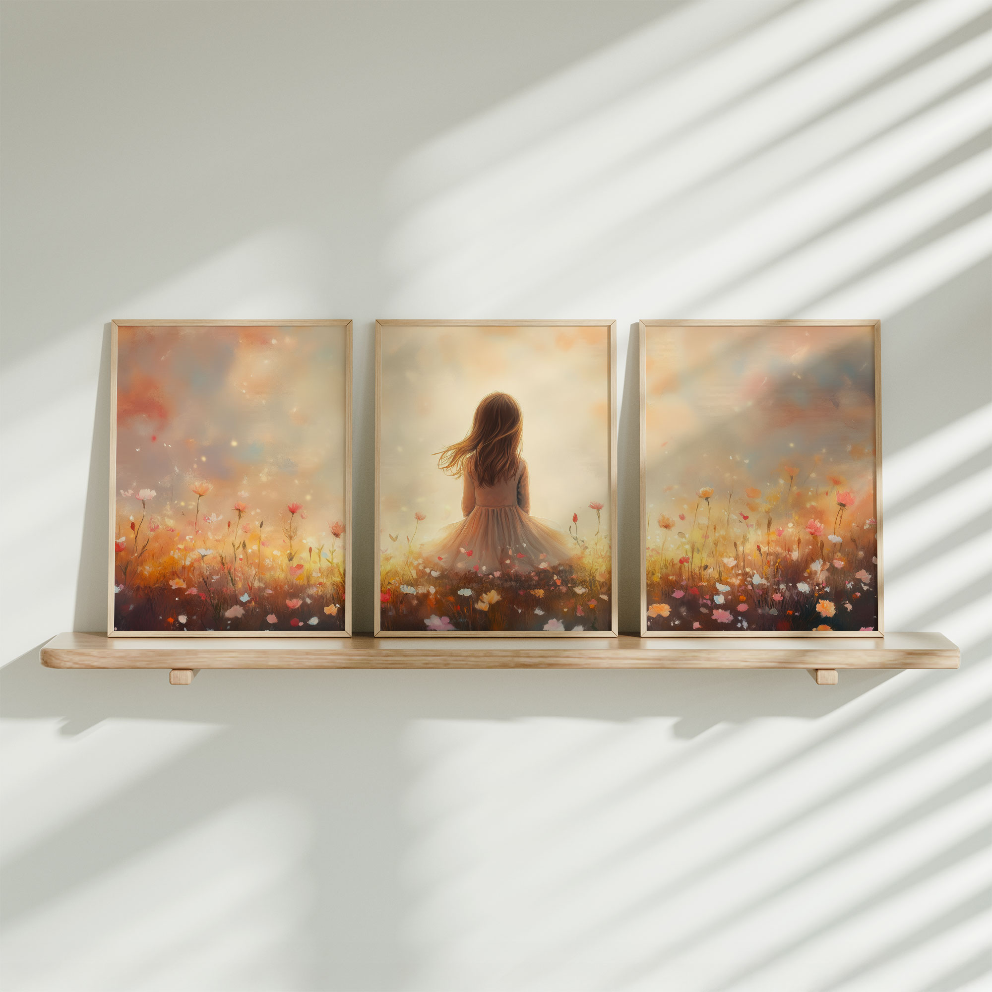 Magisch Meisje in Bloemenveld met Dromenkasteel