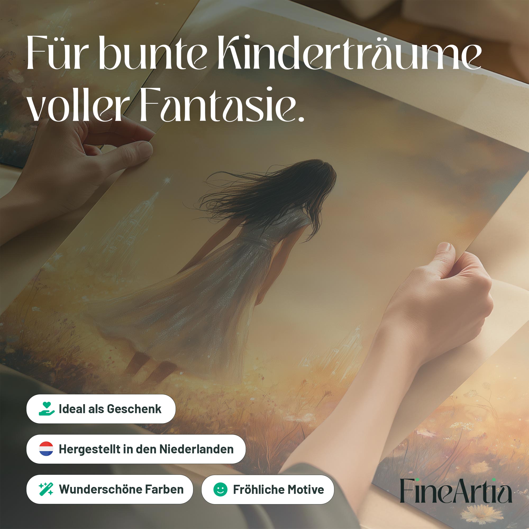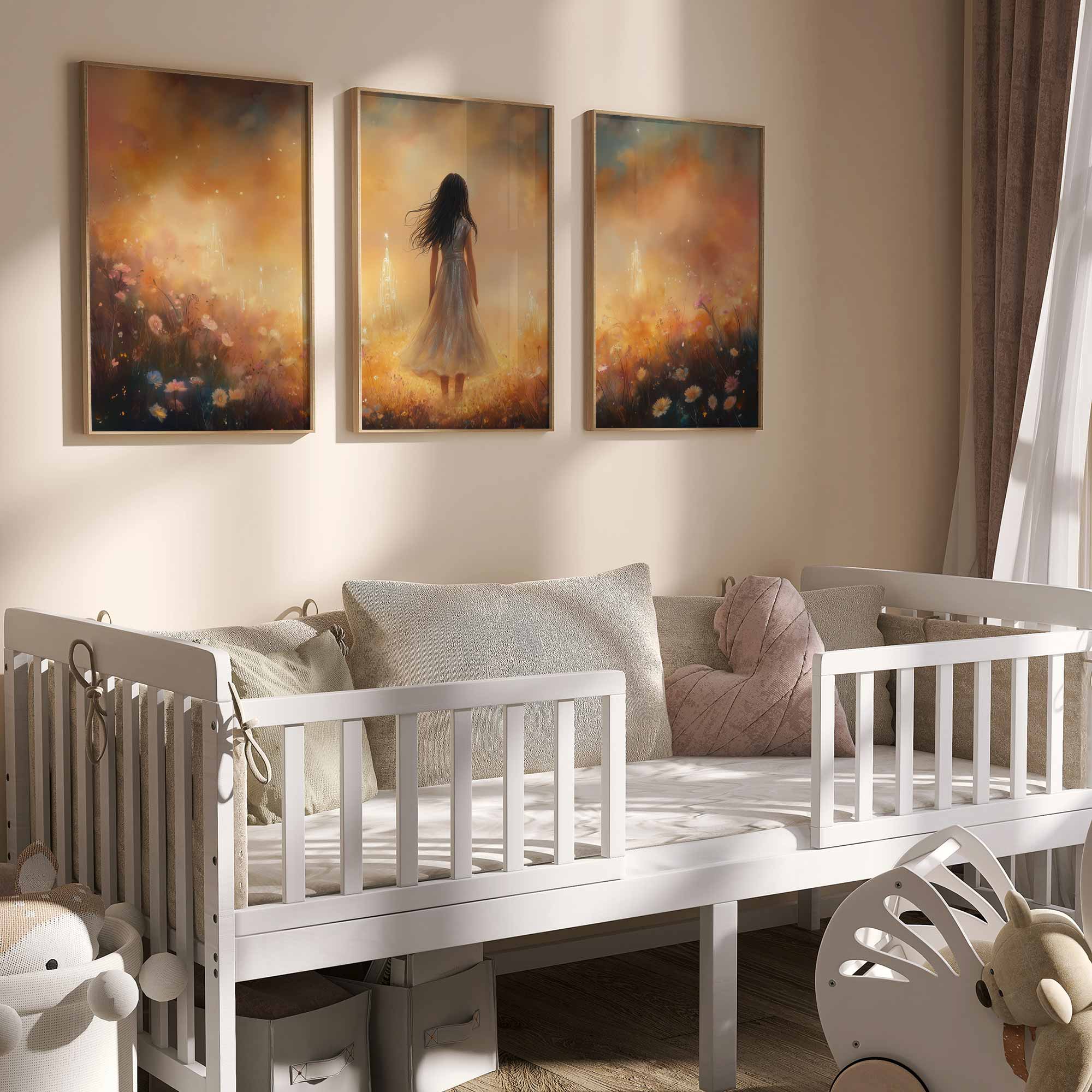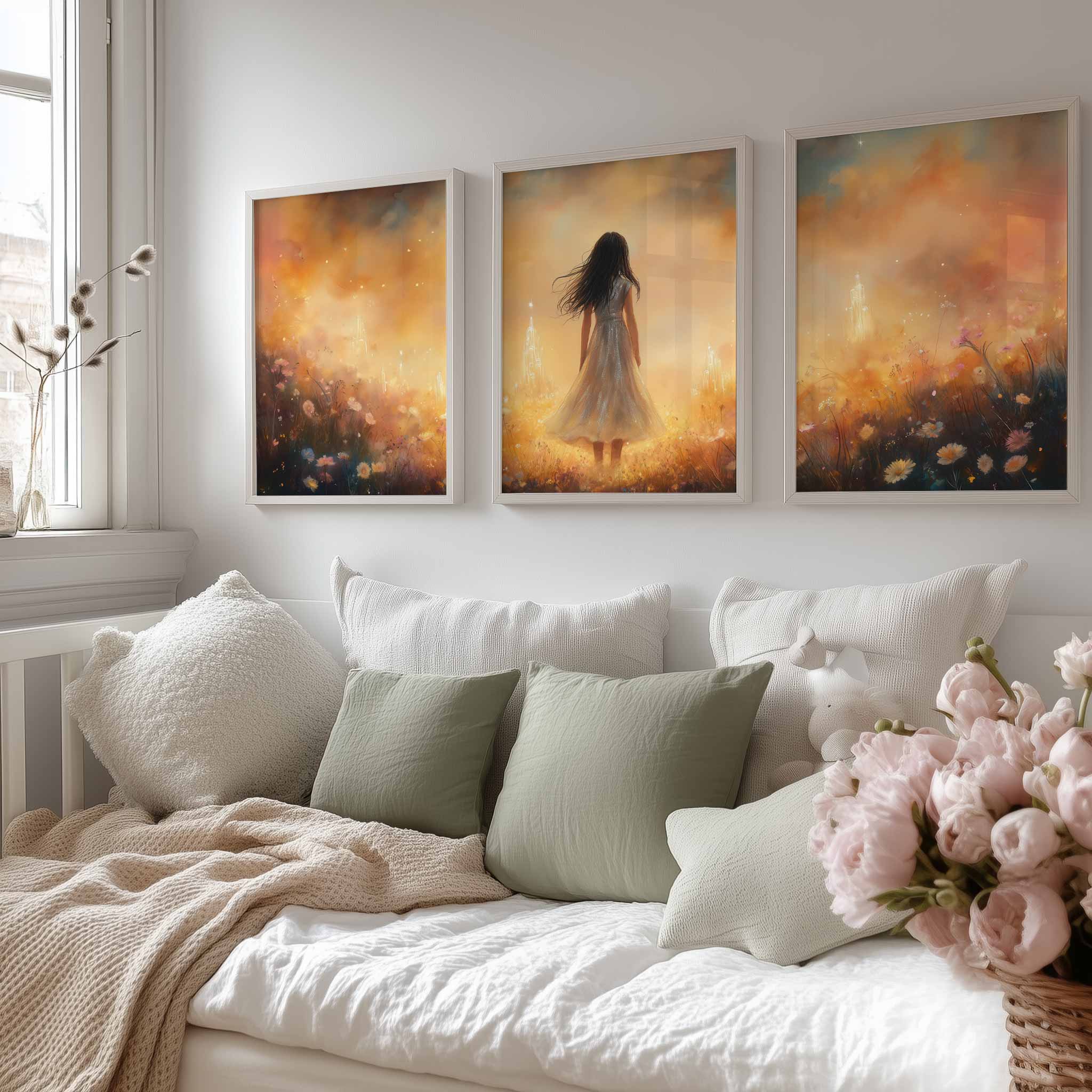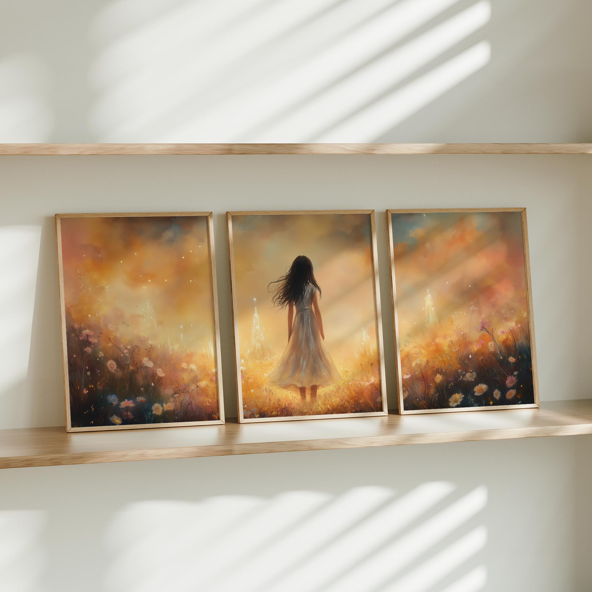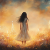 Magisch Meisje in Bloemenveld met Droomkasteel