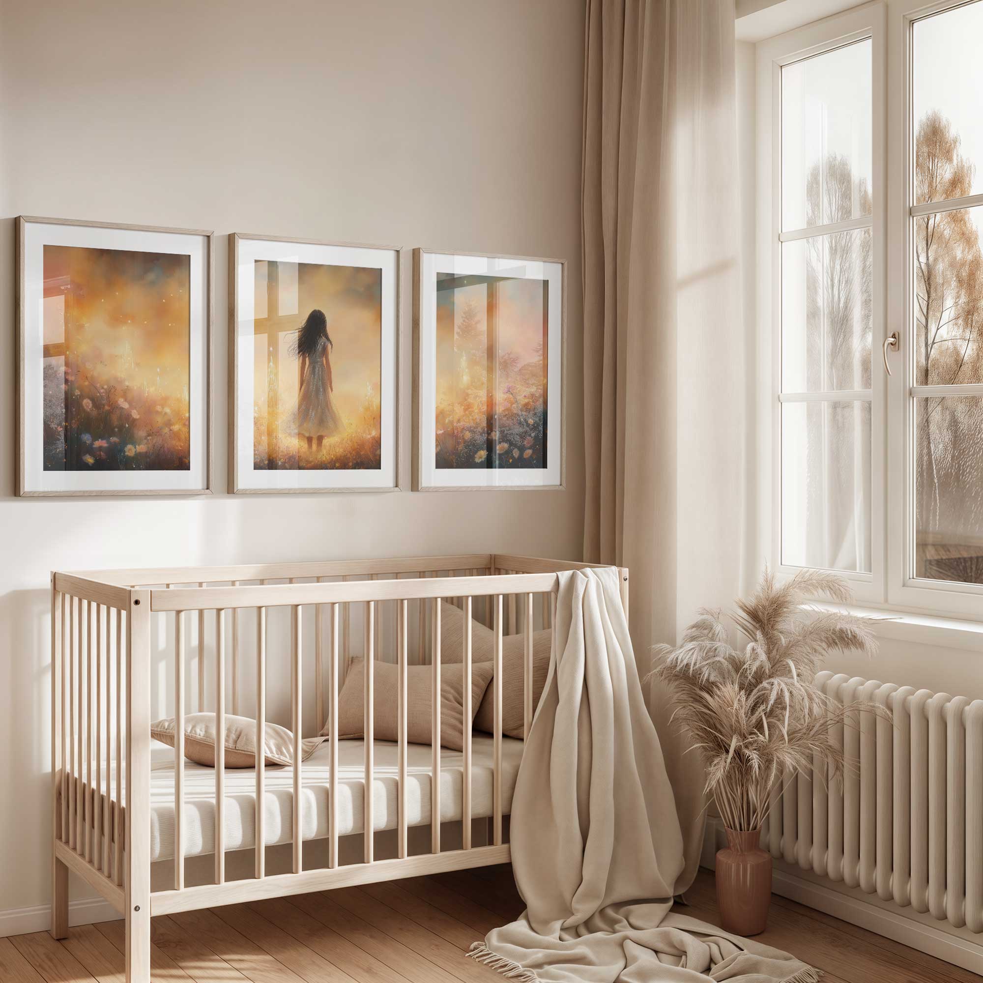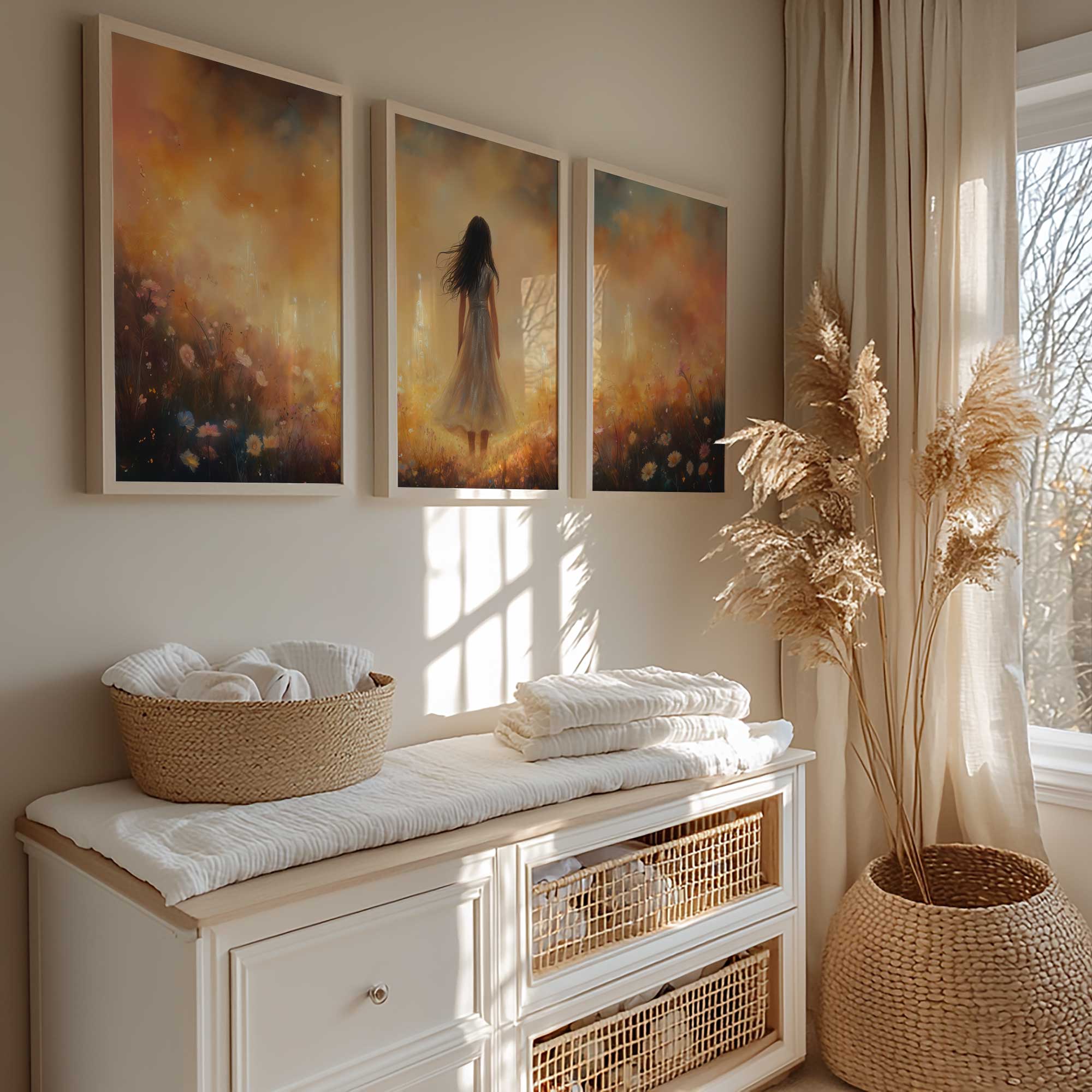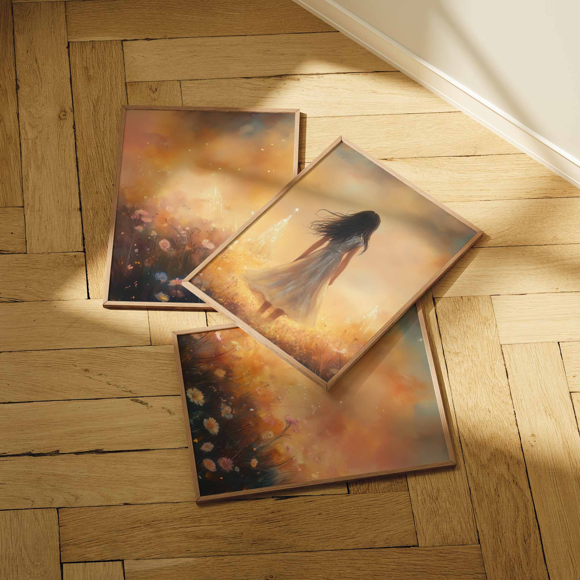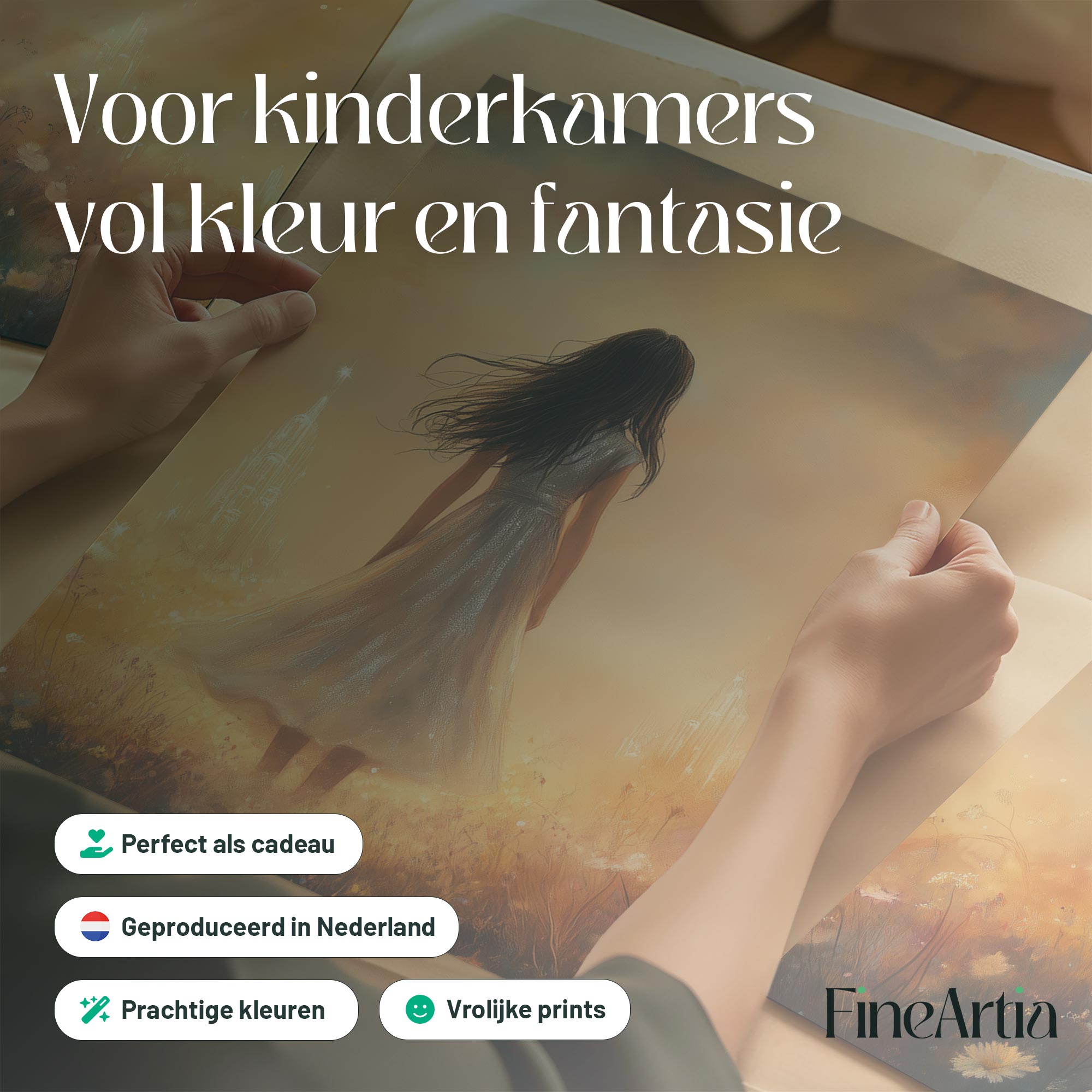 Magisch Meisje in Bloemenveld met Droomkasteel