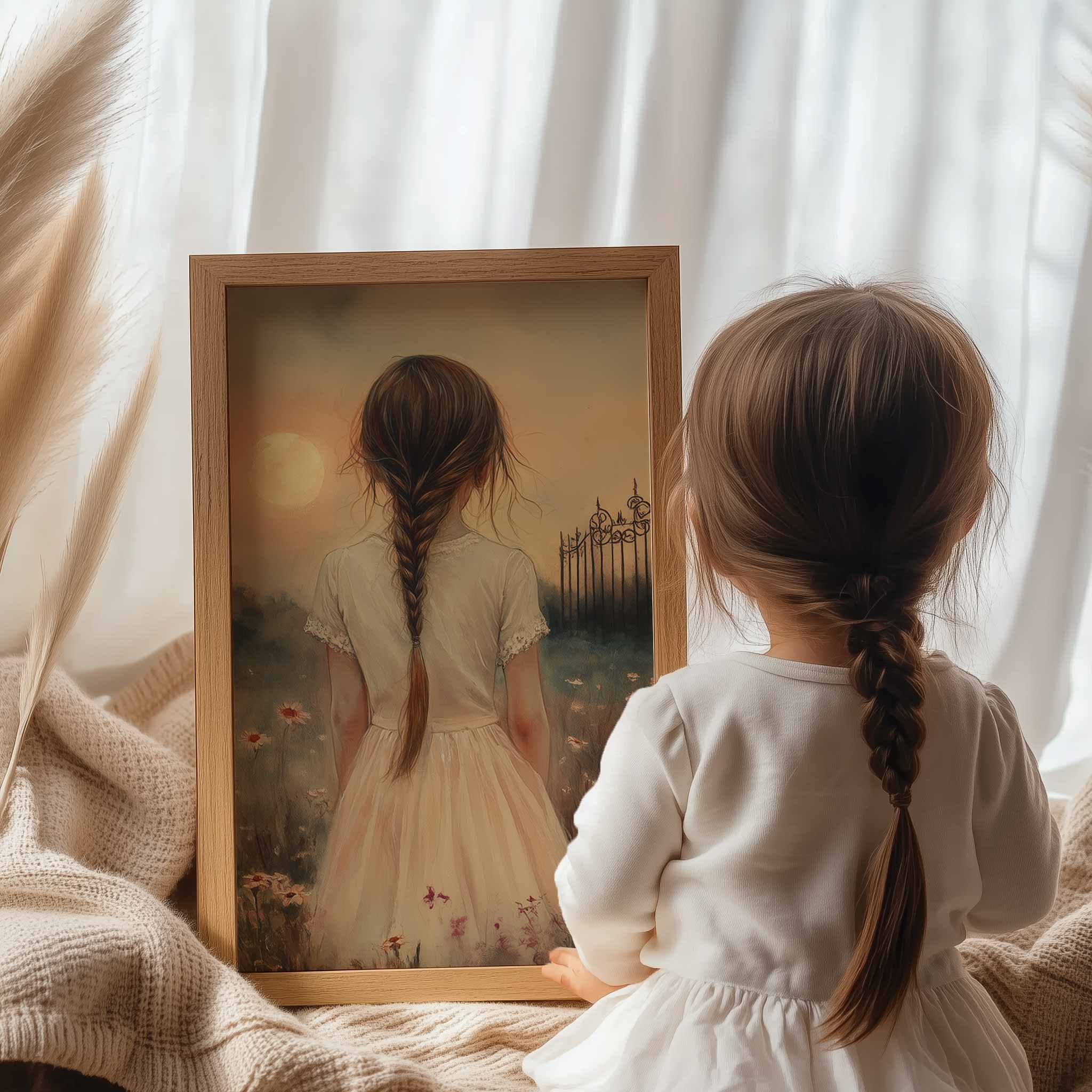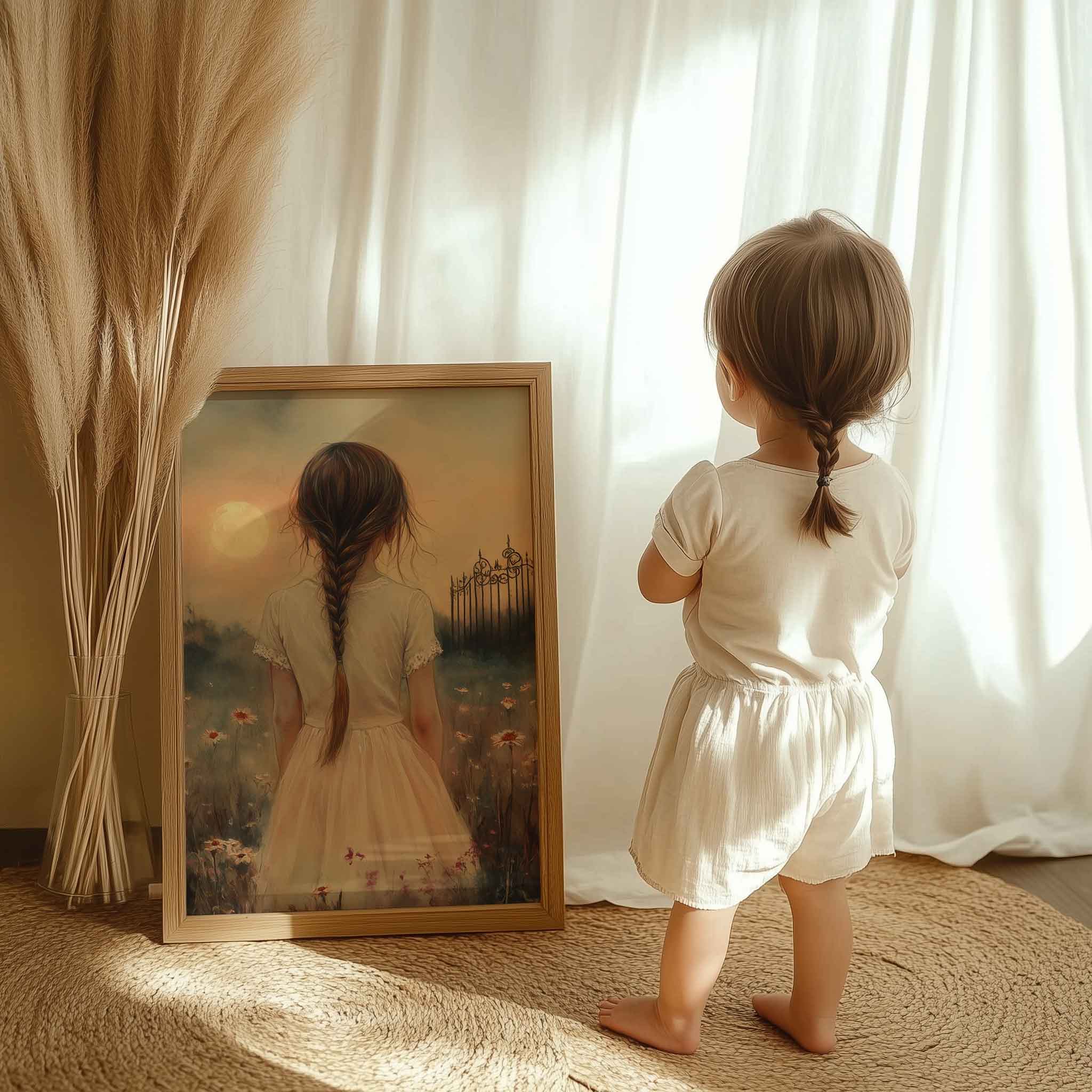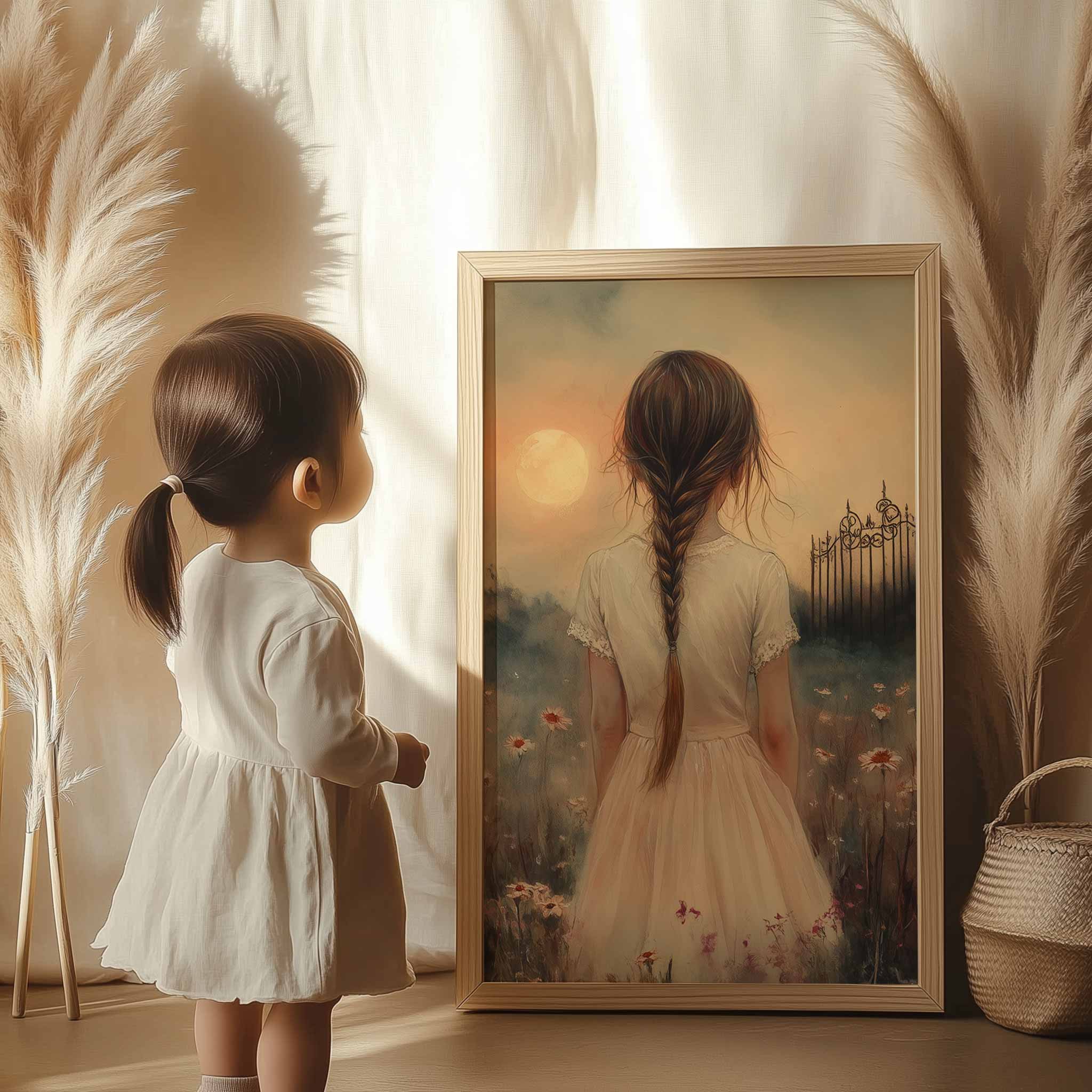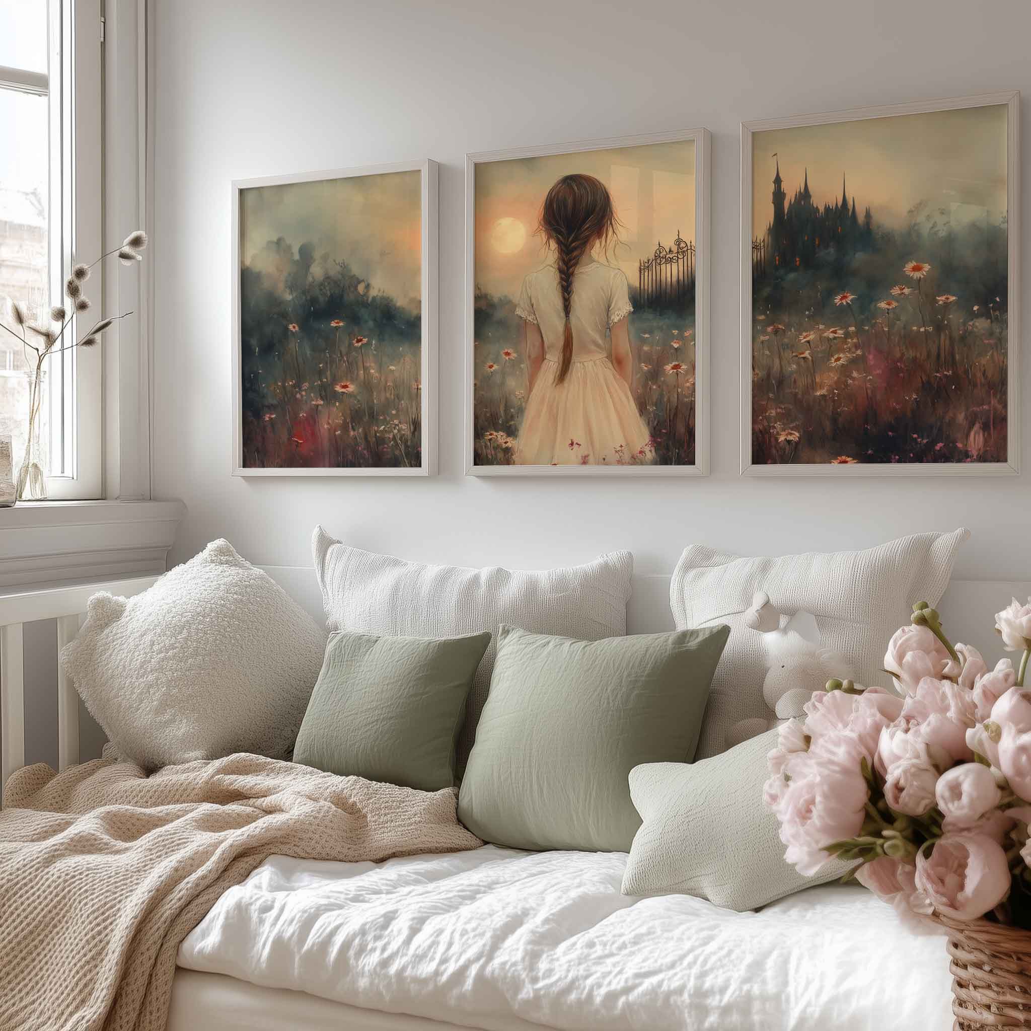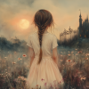 Terug naar collectie Posters Magisch Meisje in Bloemenveld met Droomkasteel
