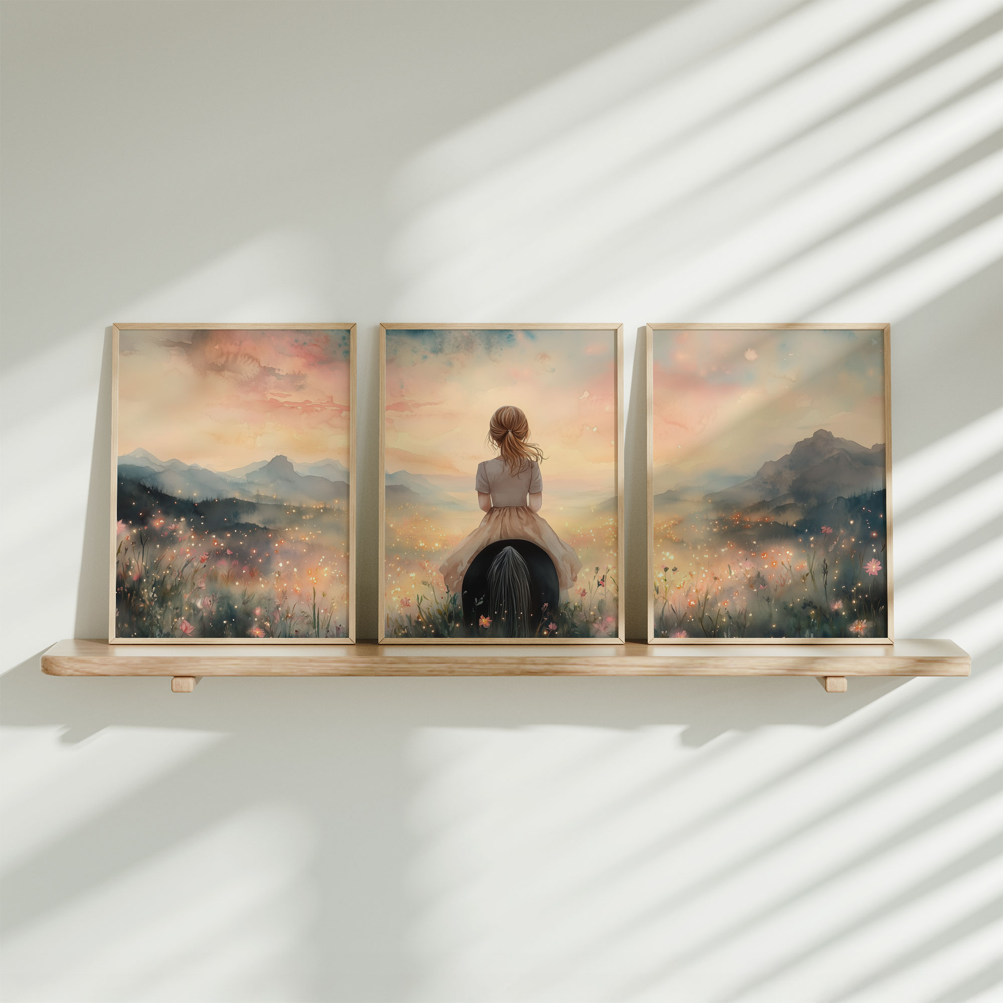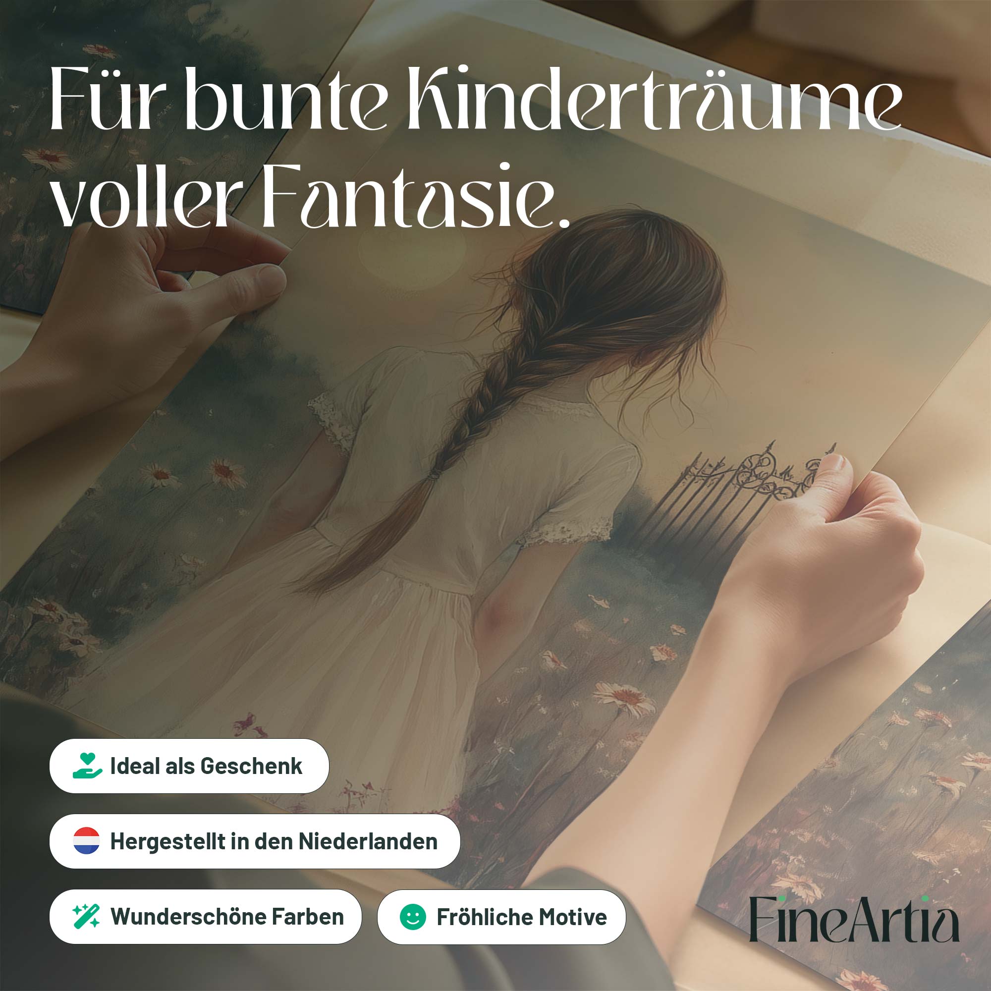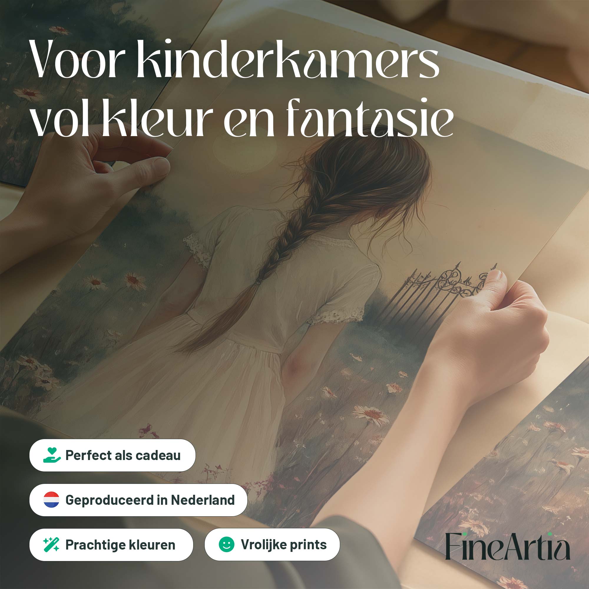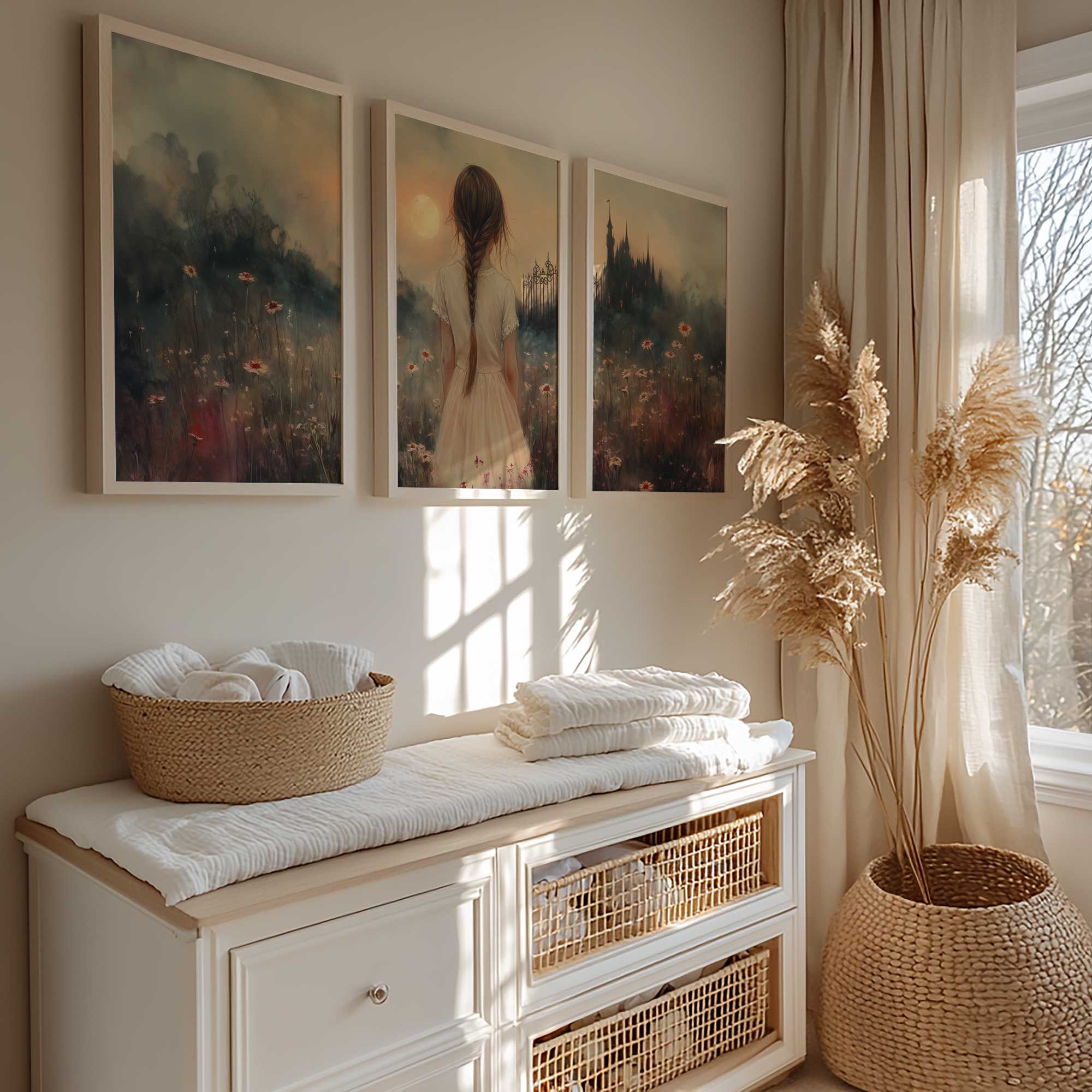 Terug naar collectie Posters Magisch Meisje in Bloemenveld met Droomkasteel